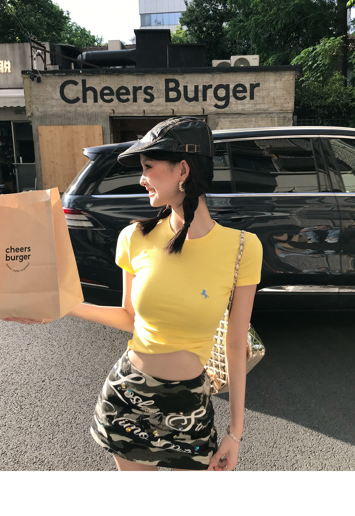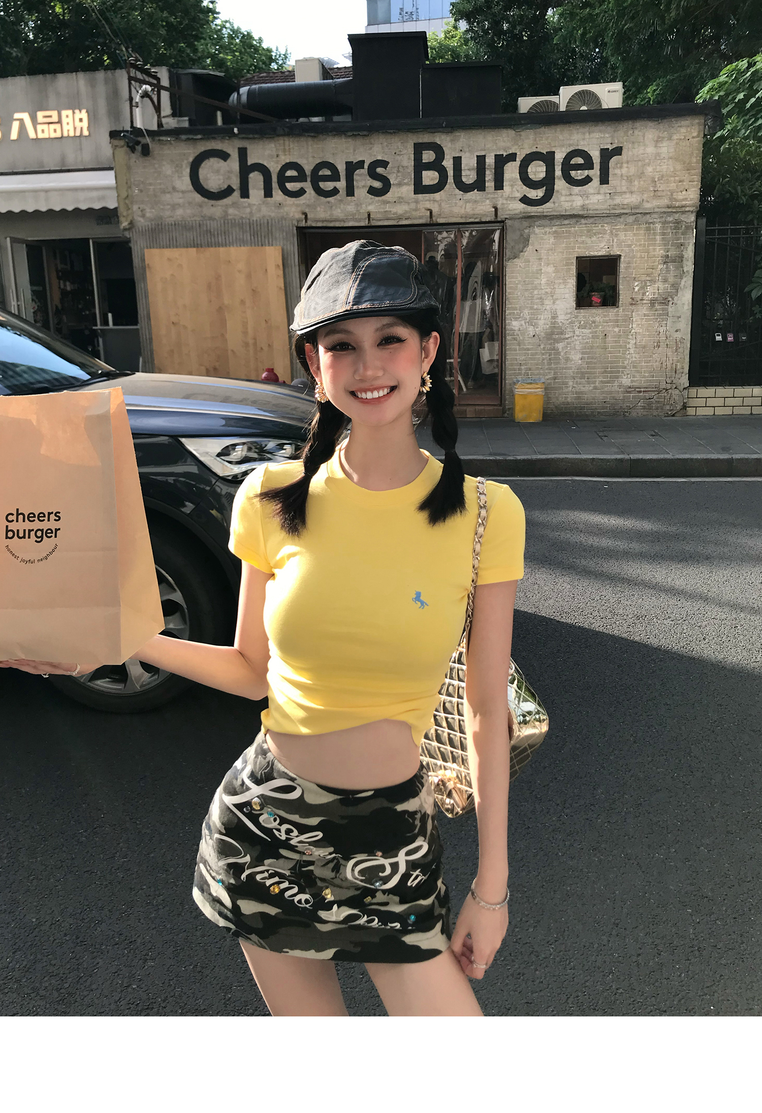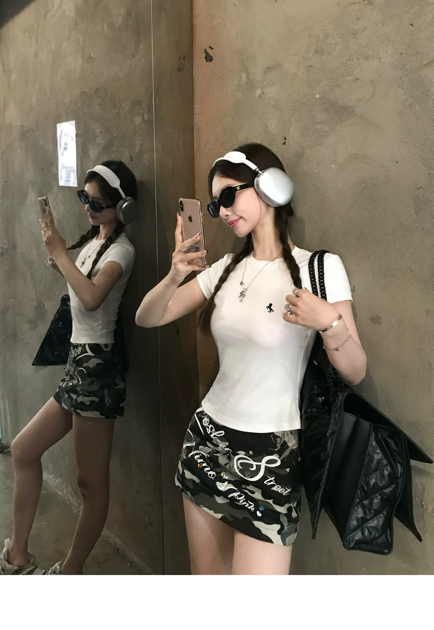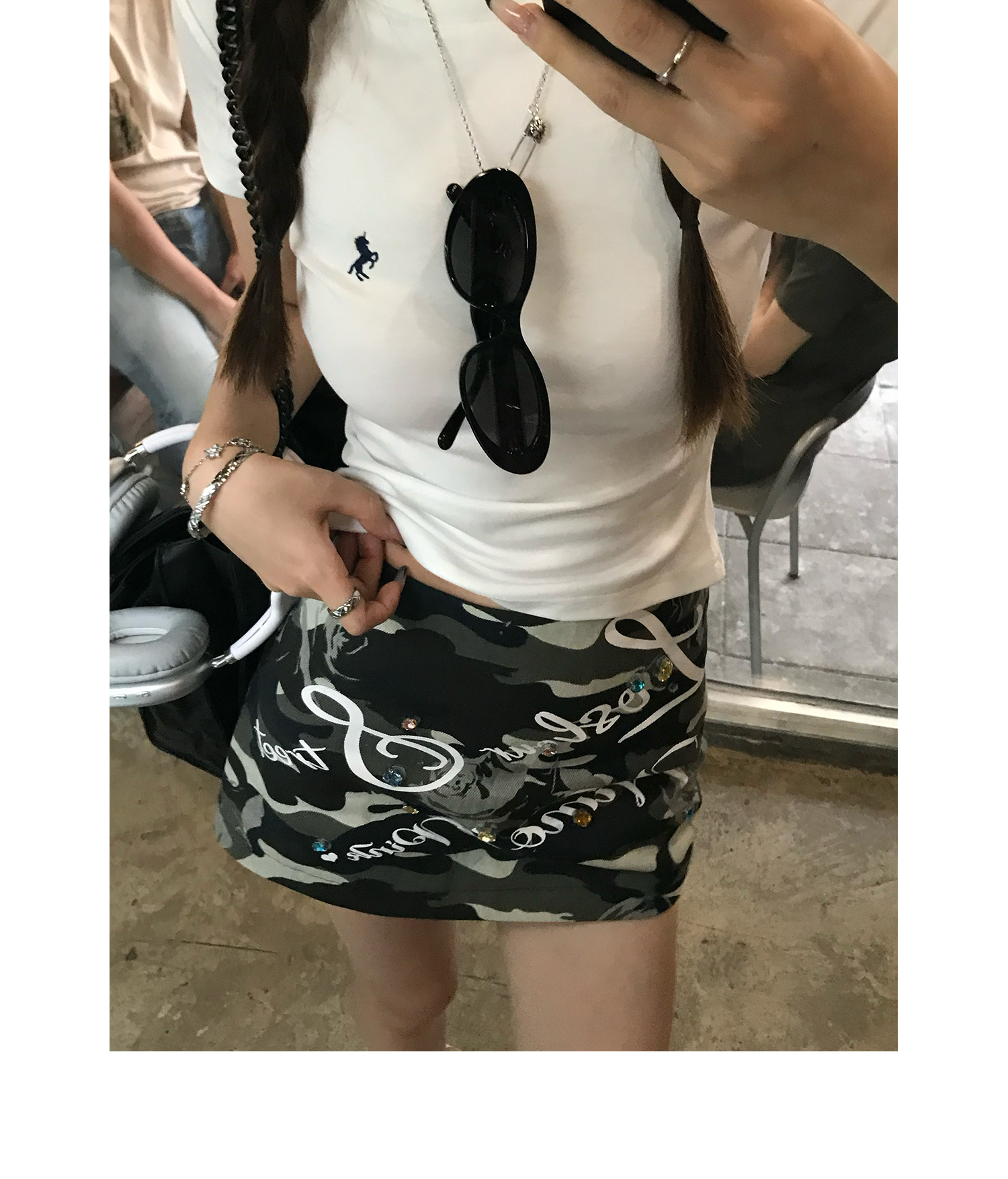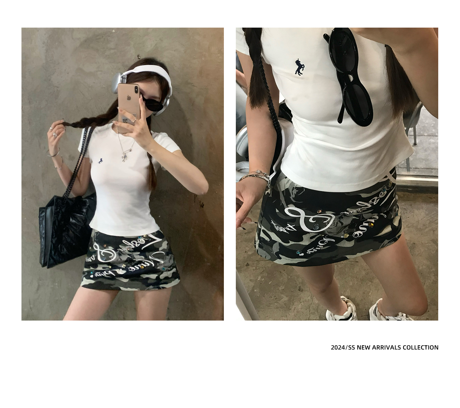 [Millennium Aesthetics] Camouflage Denim Skirt - Summer Diamond Retro Short Skirt