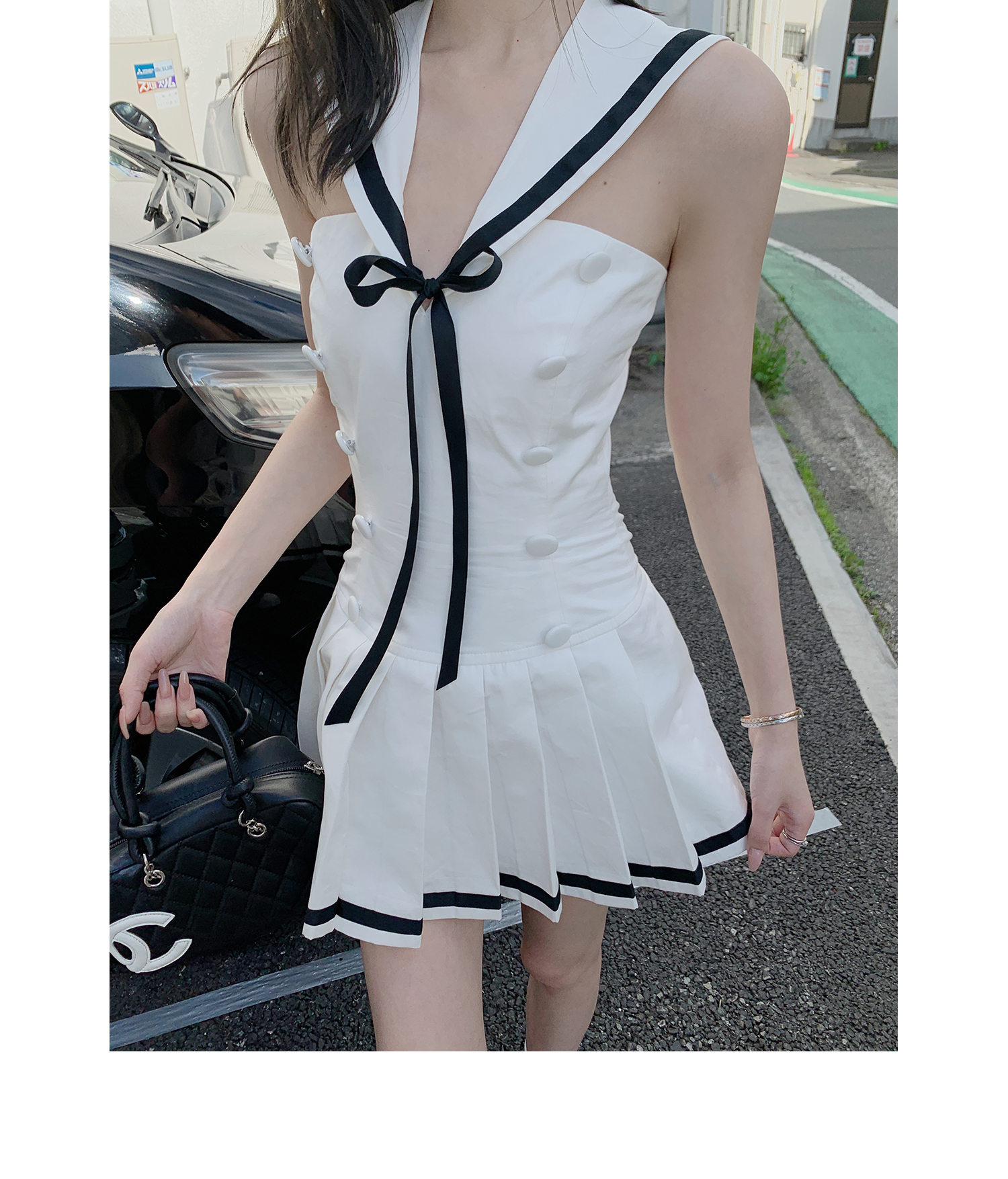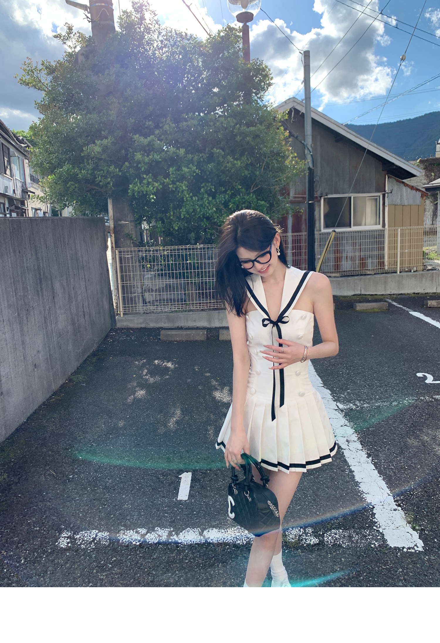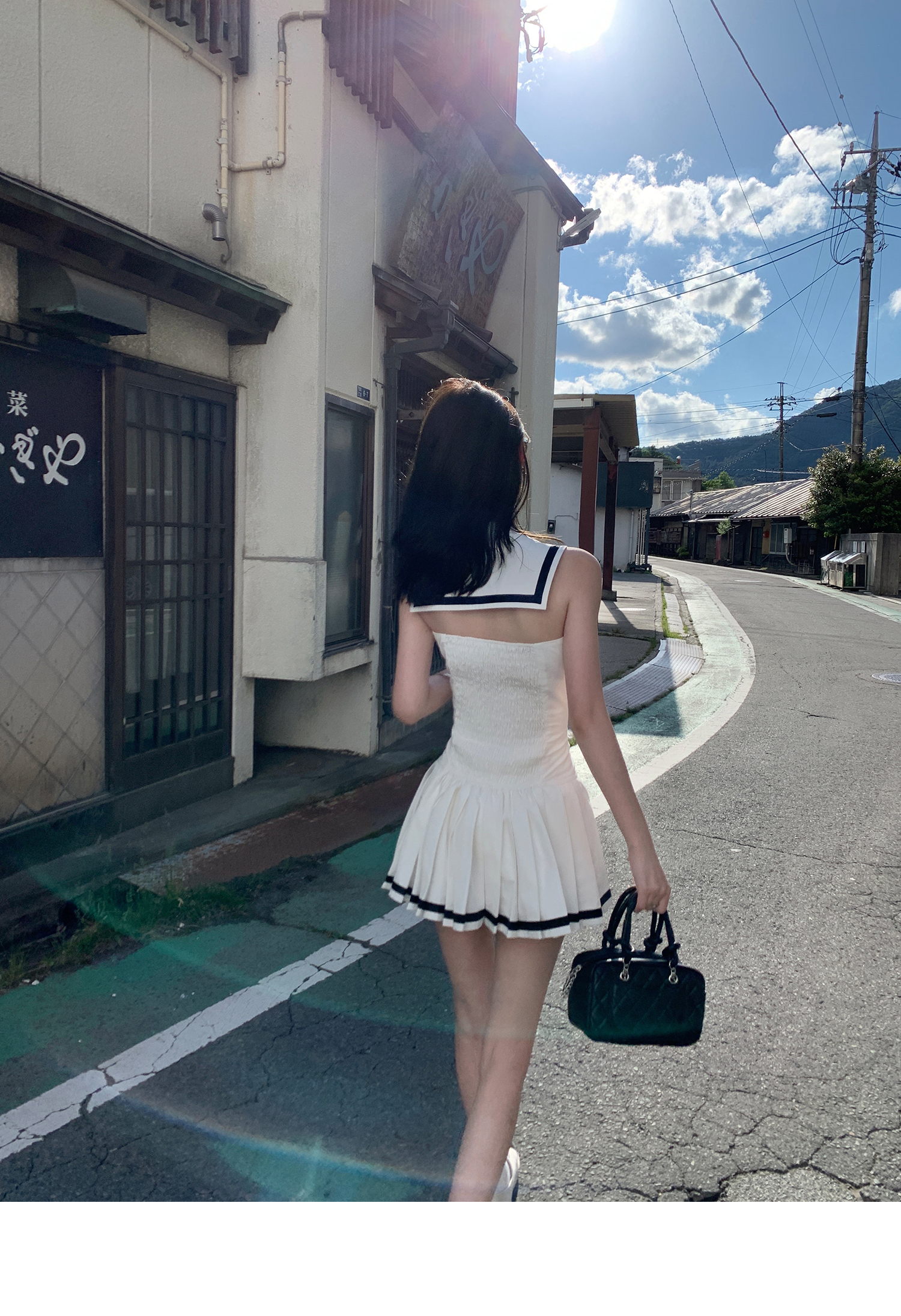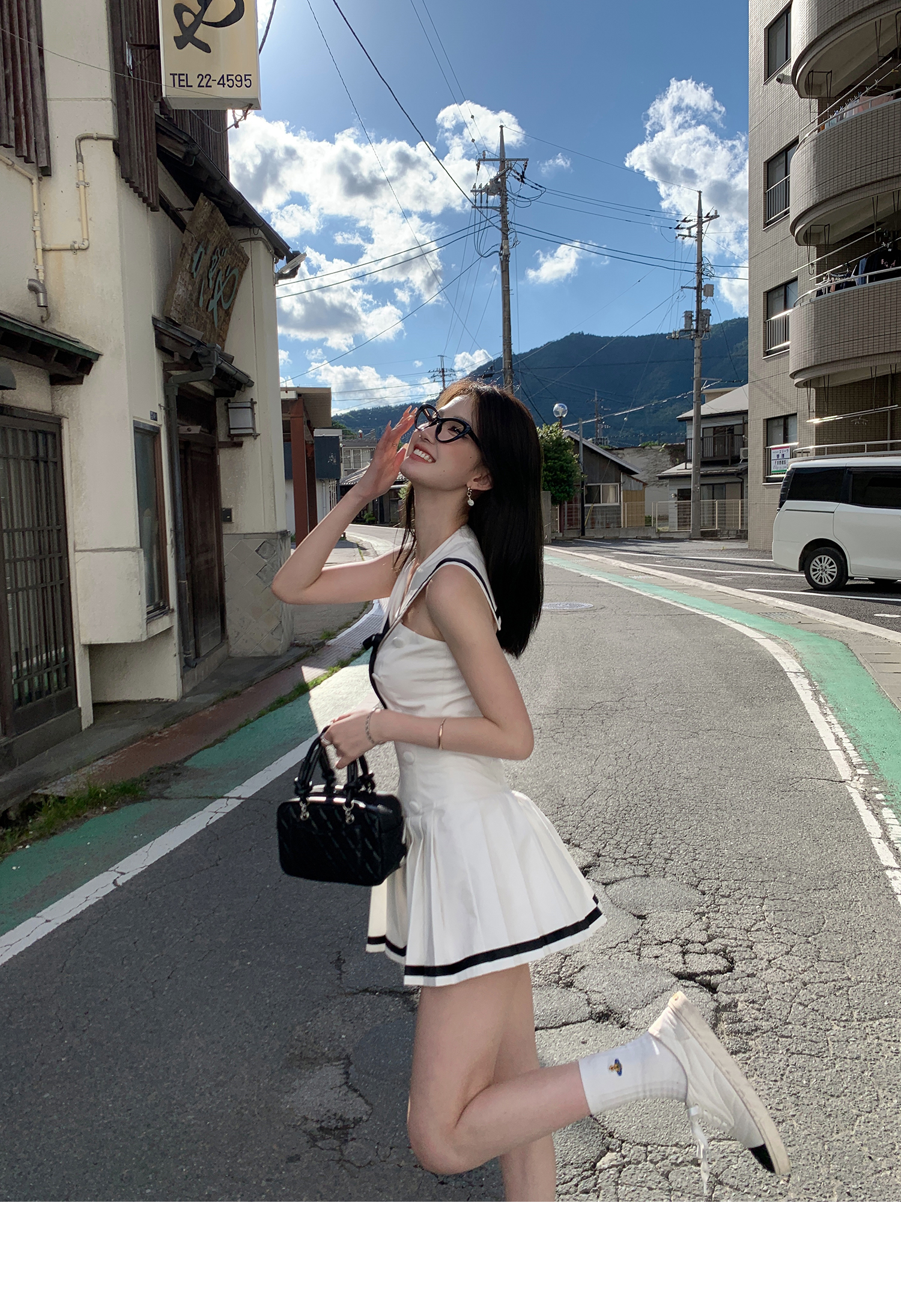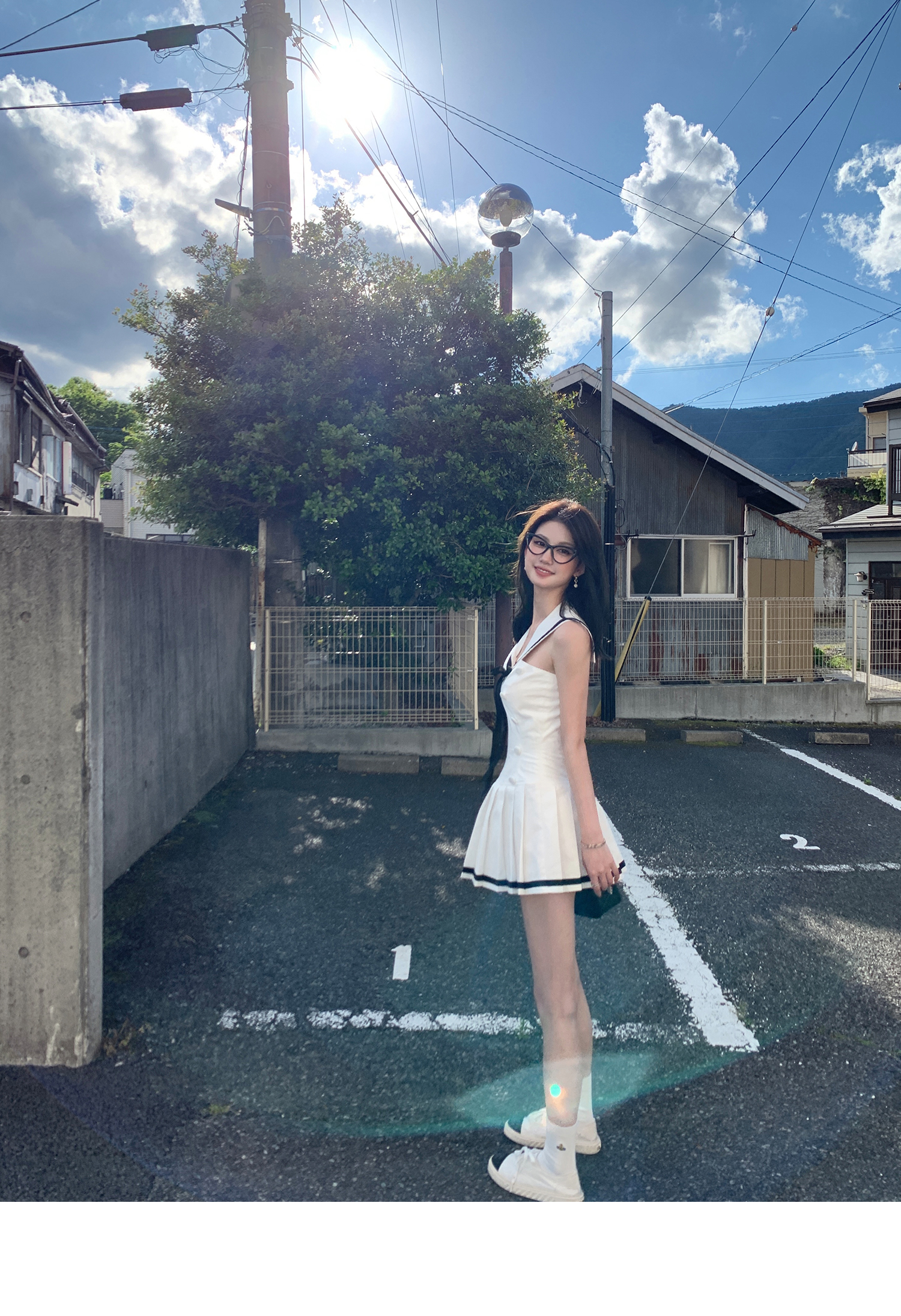 [Millennium Girl] Spicy Navy Collar Dress - Summer White Pleated Skirt