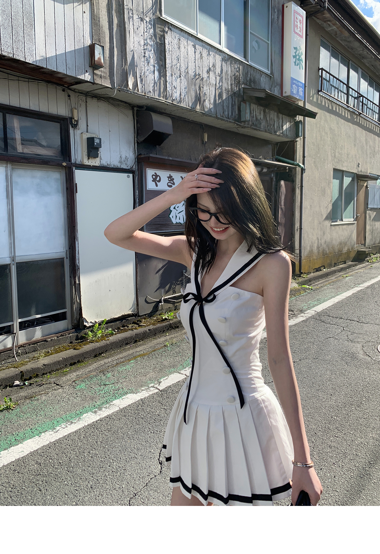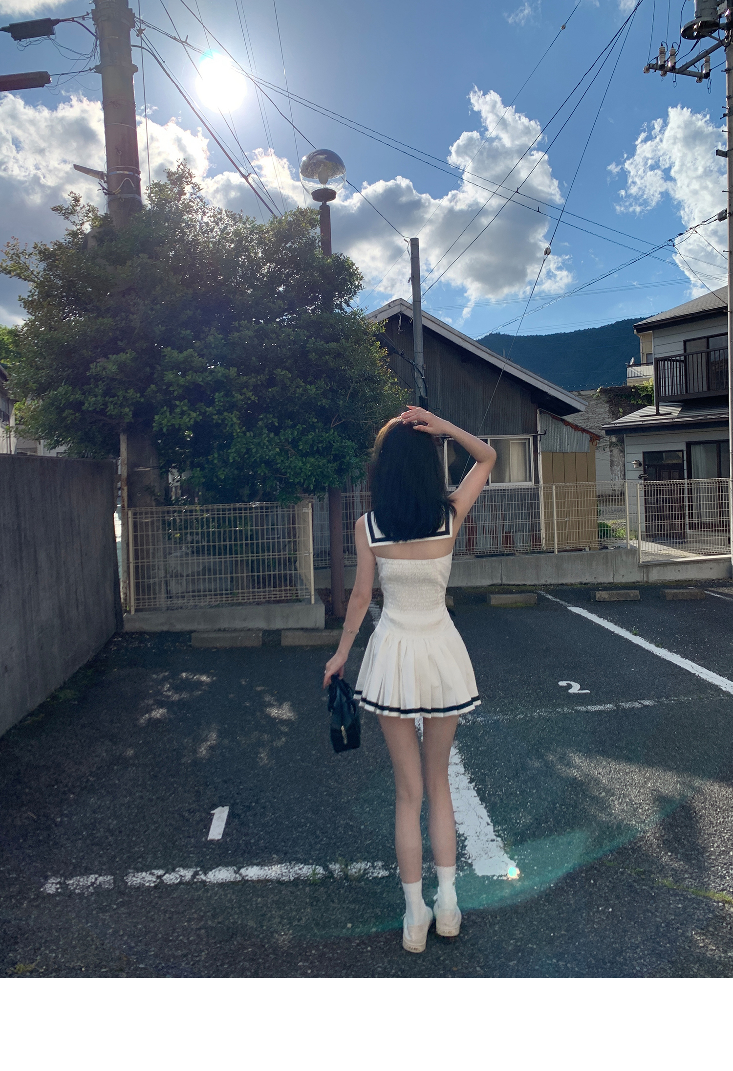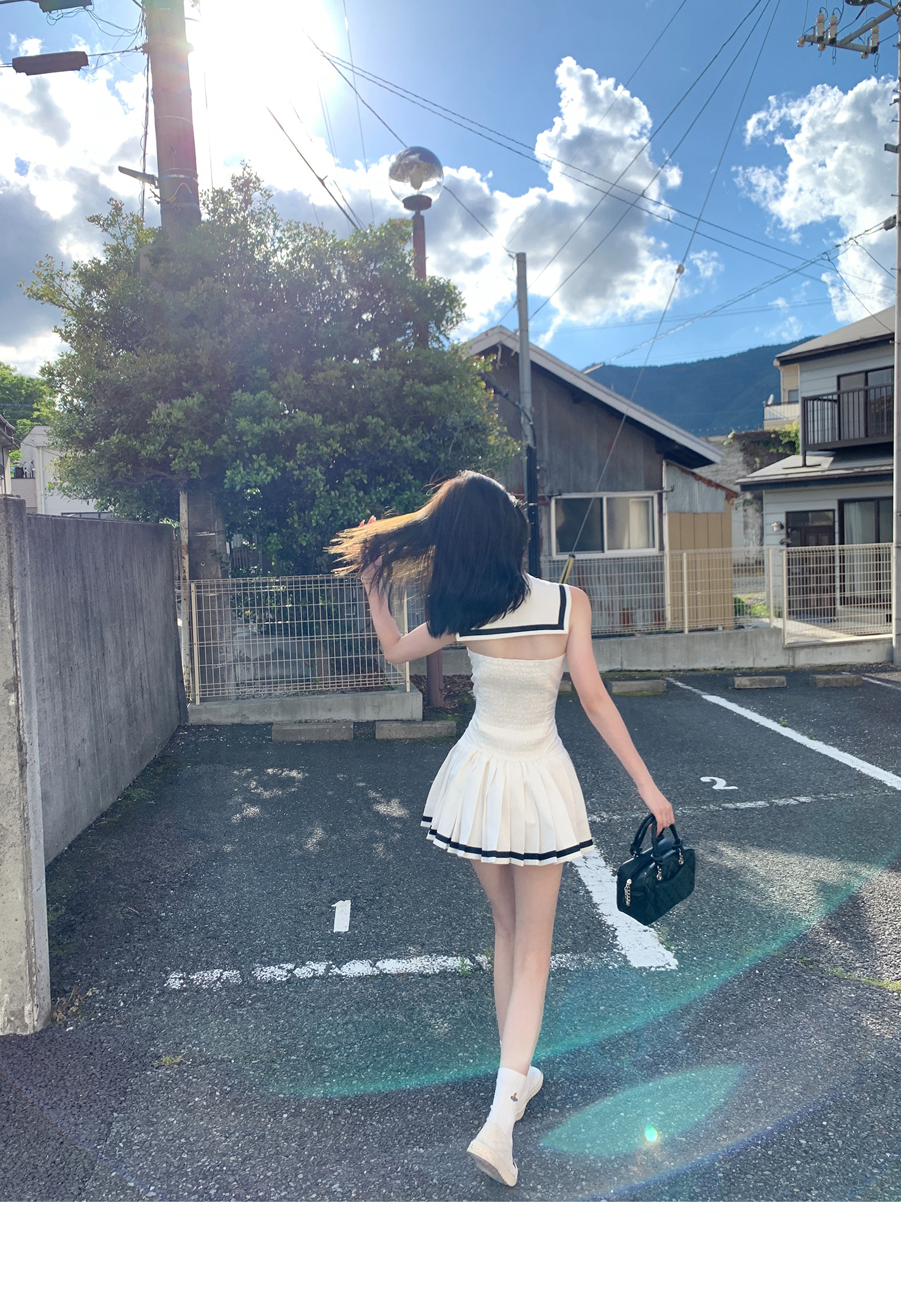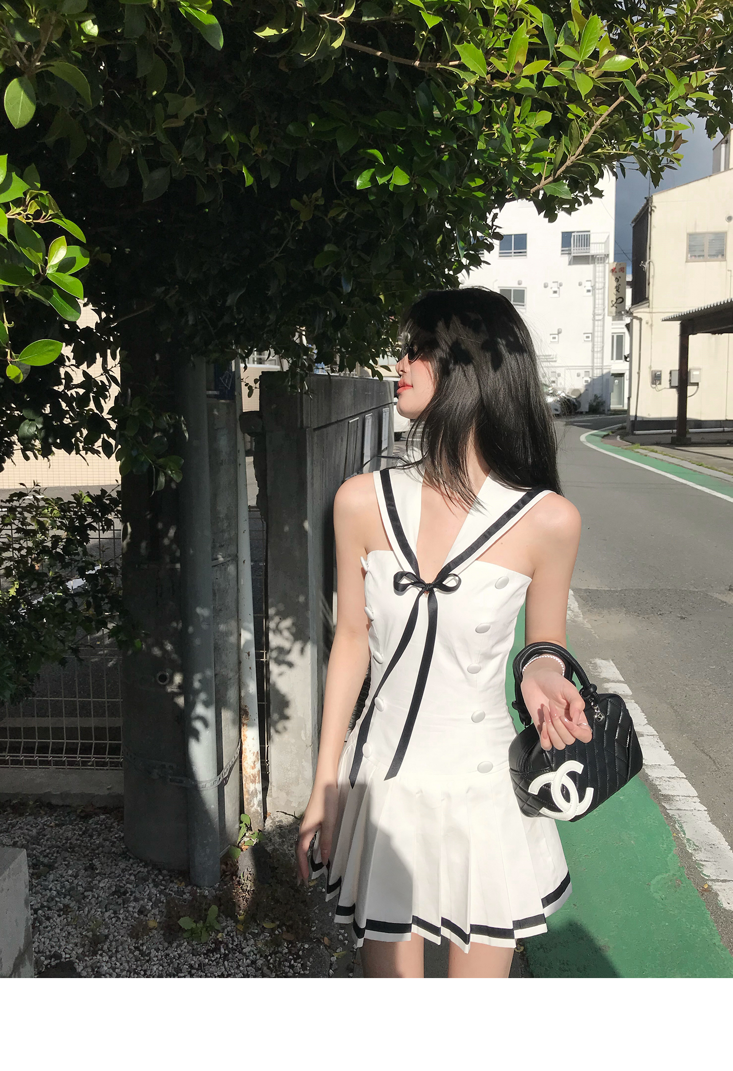 [Millennium Girl] Spicy Navy Collar Dress - Summer White Pleated Skirt