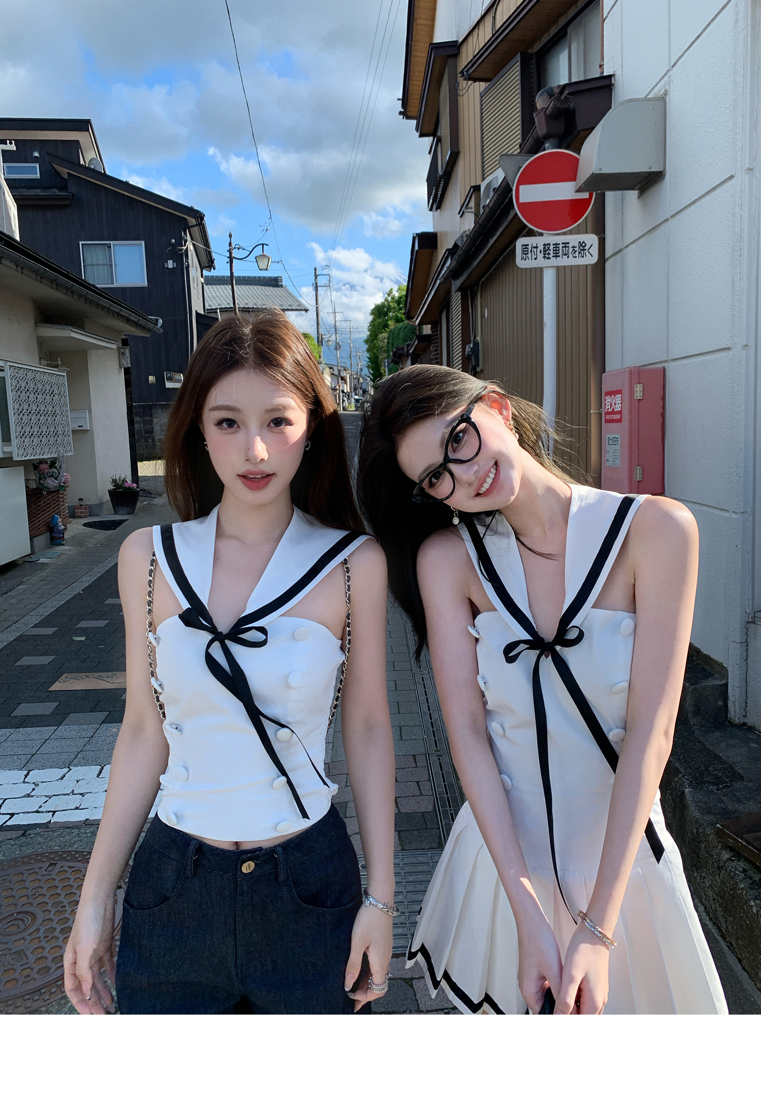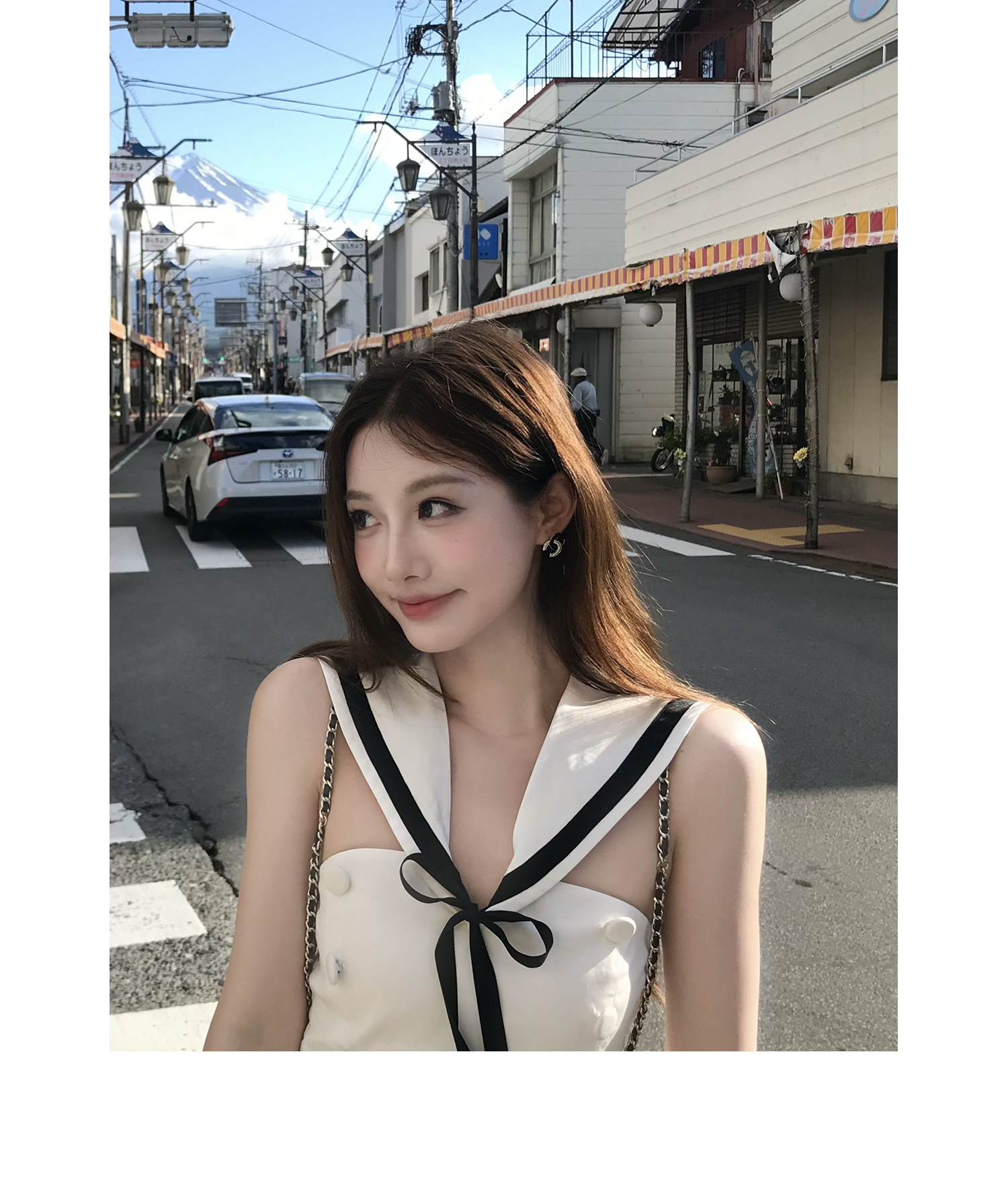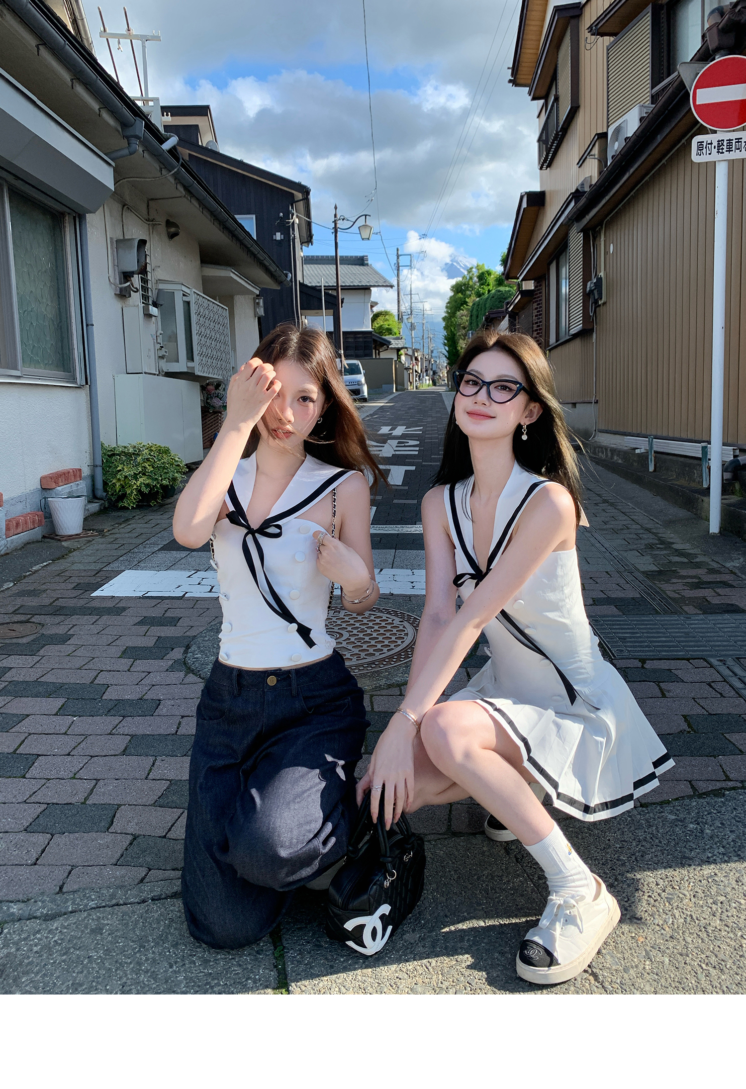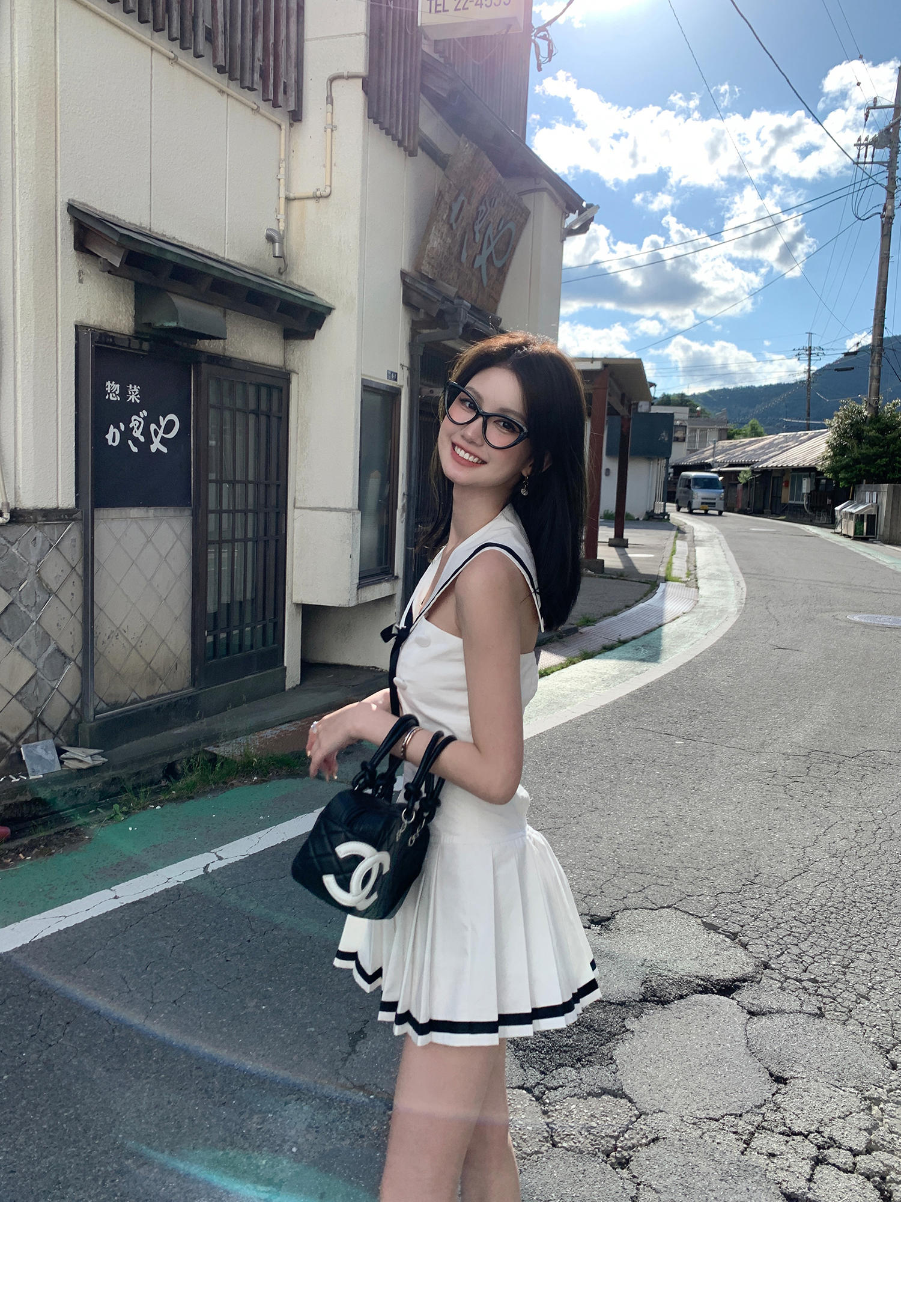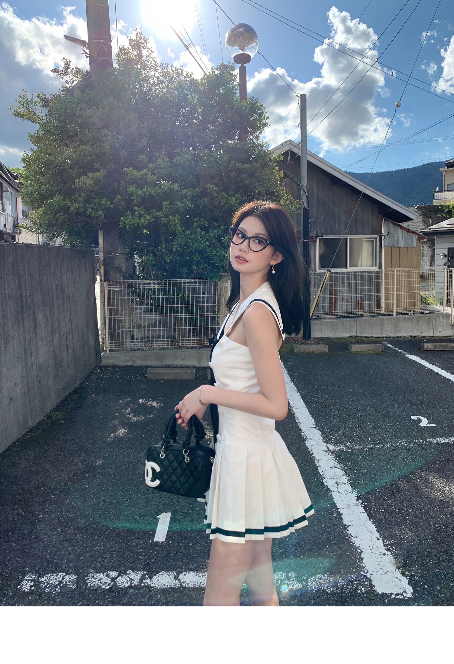 [Millennium Girl] Spicy Navy Collar Dress - Summer White Pleated Skirt