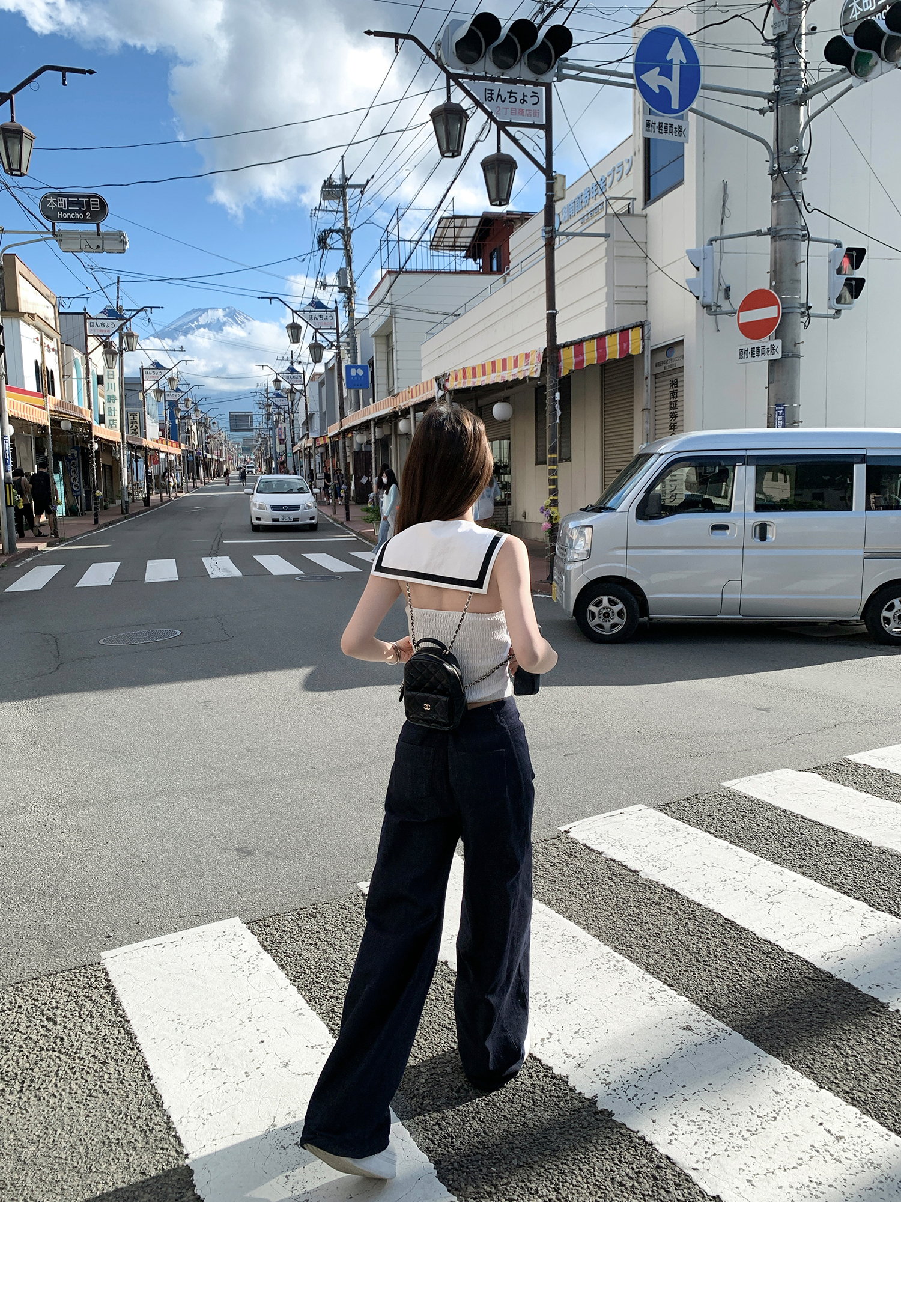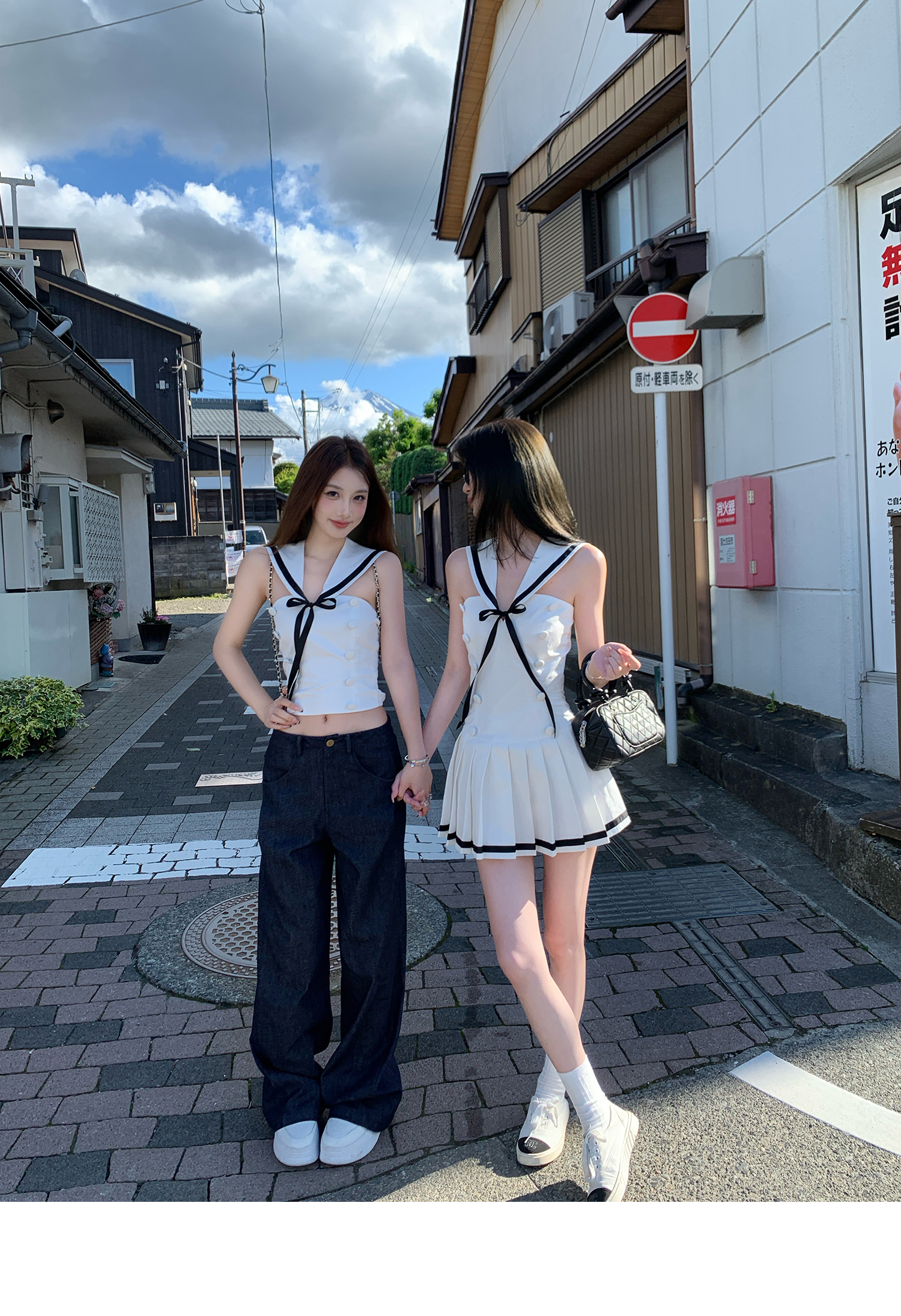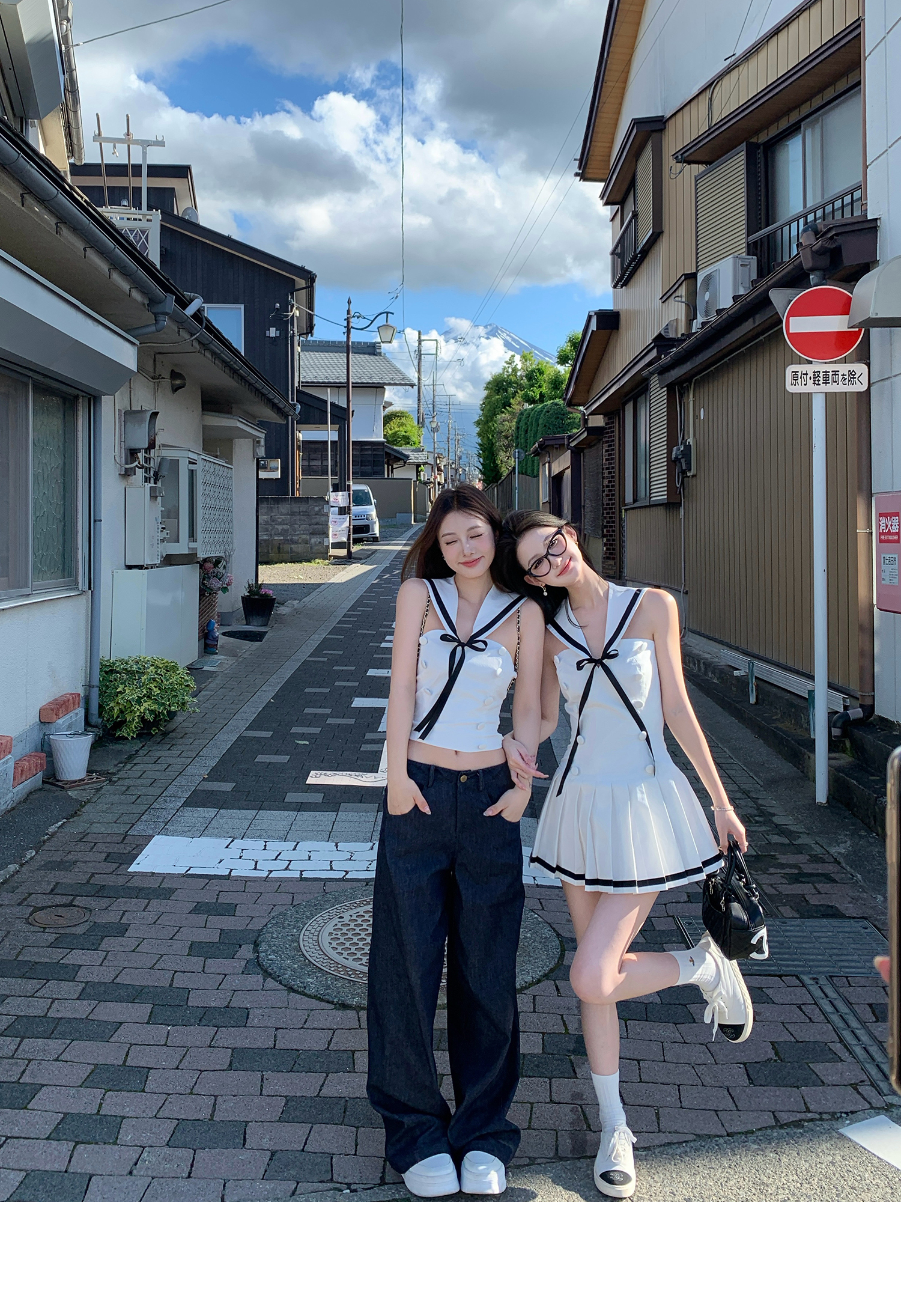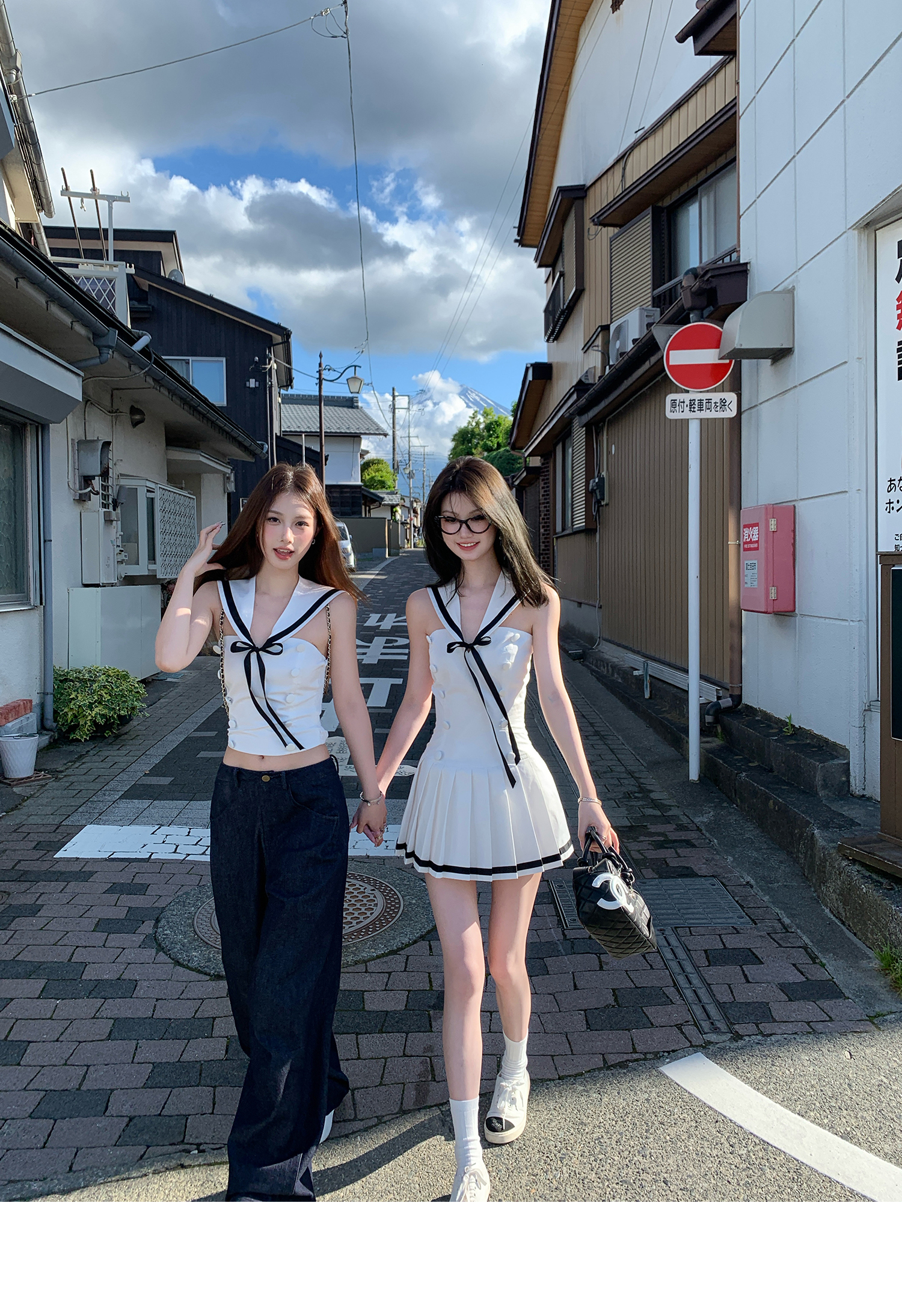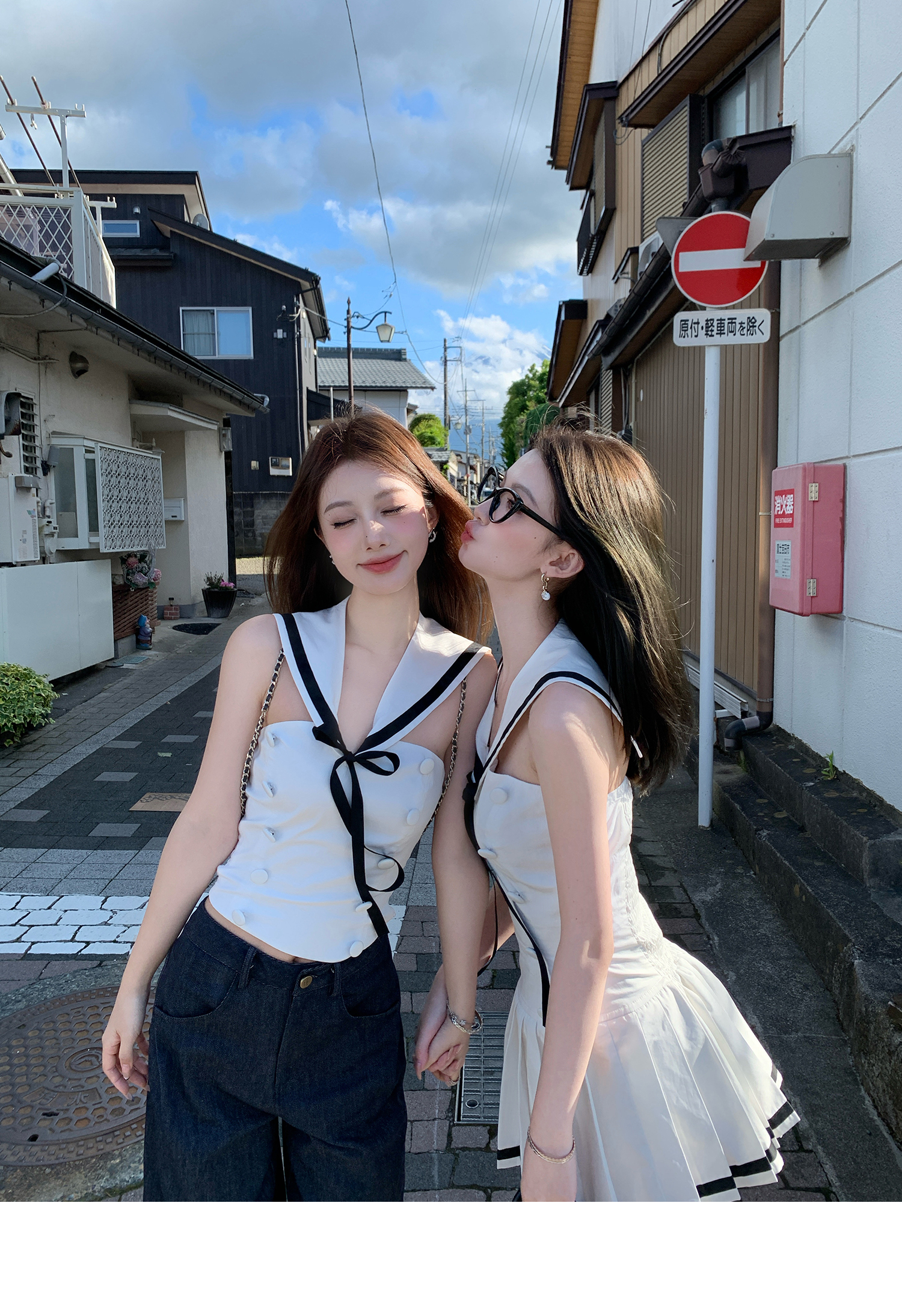 [Millennium Girl] Spicy Navy Collar Dress - Summer White Pleated Skirt