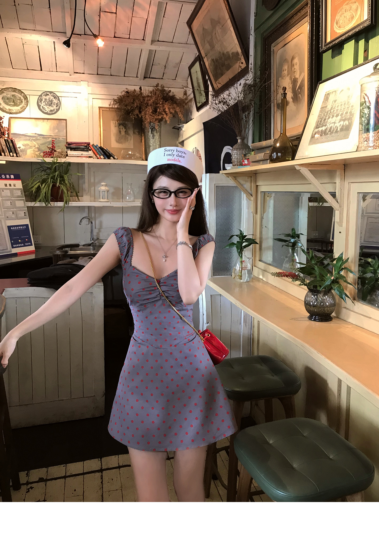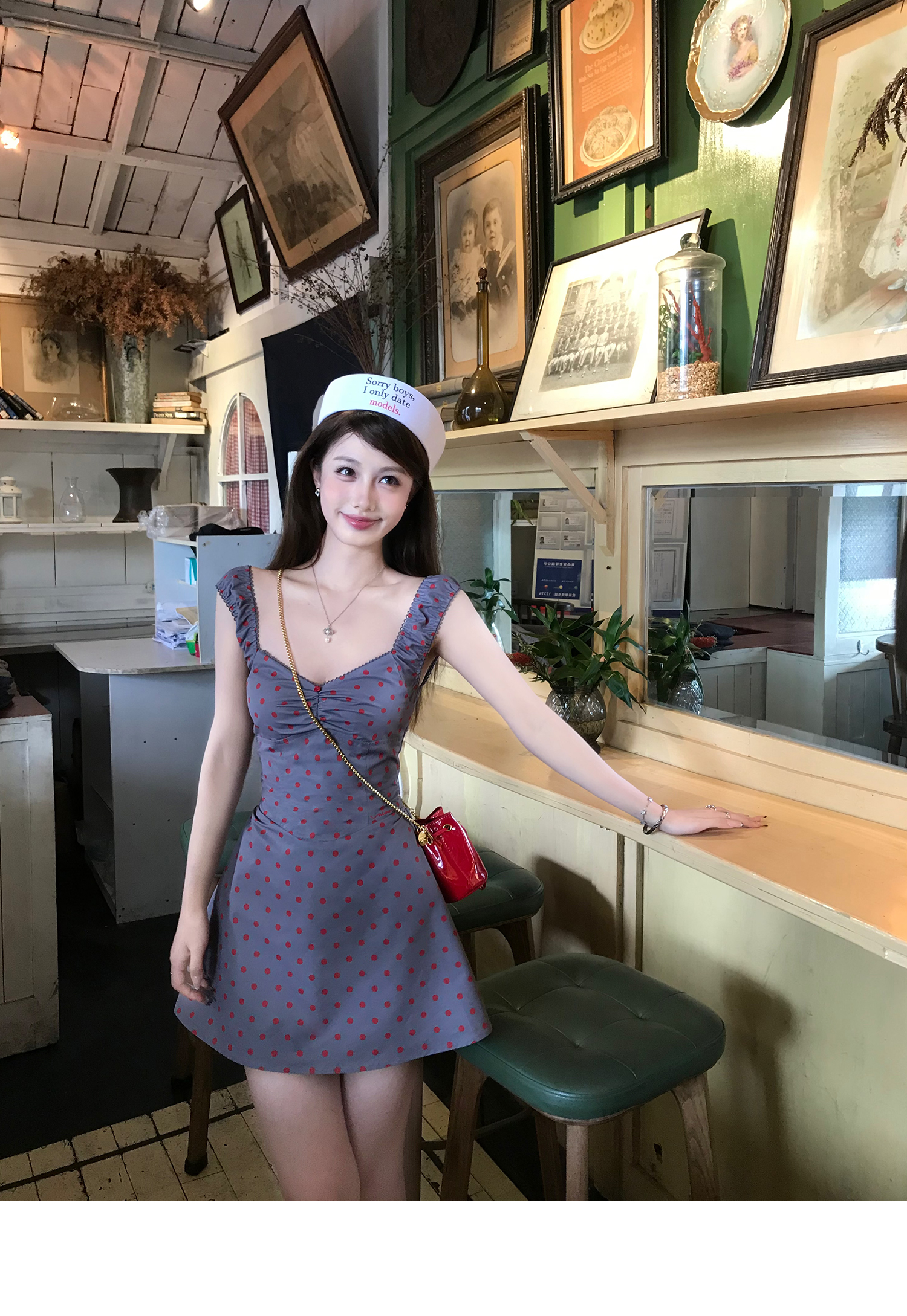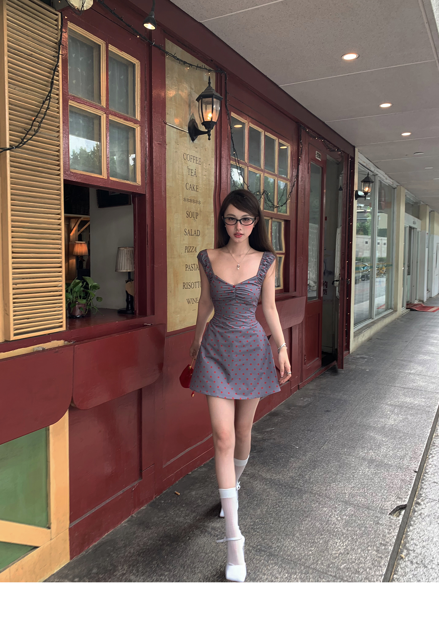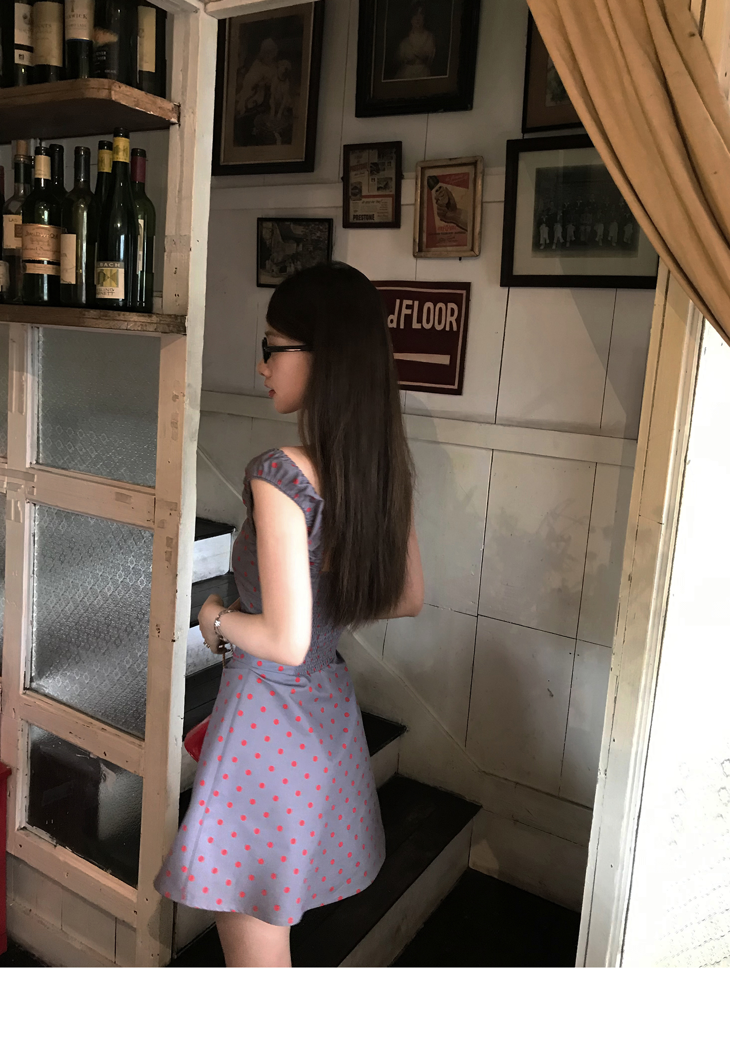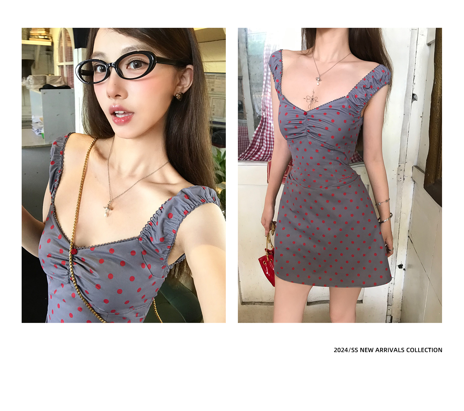 [Miu Daughter] Polka Dot Strap Top & Slim Waist Skirt - Summer A-Line