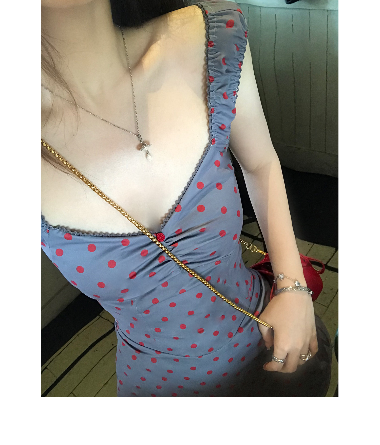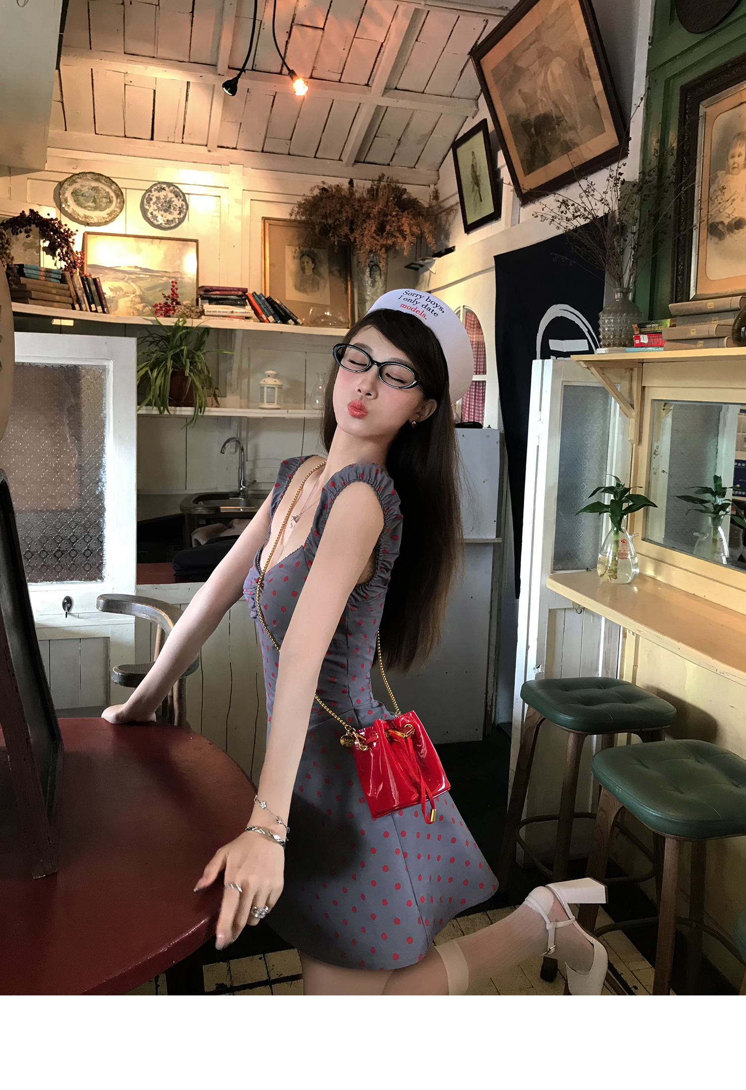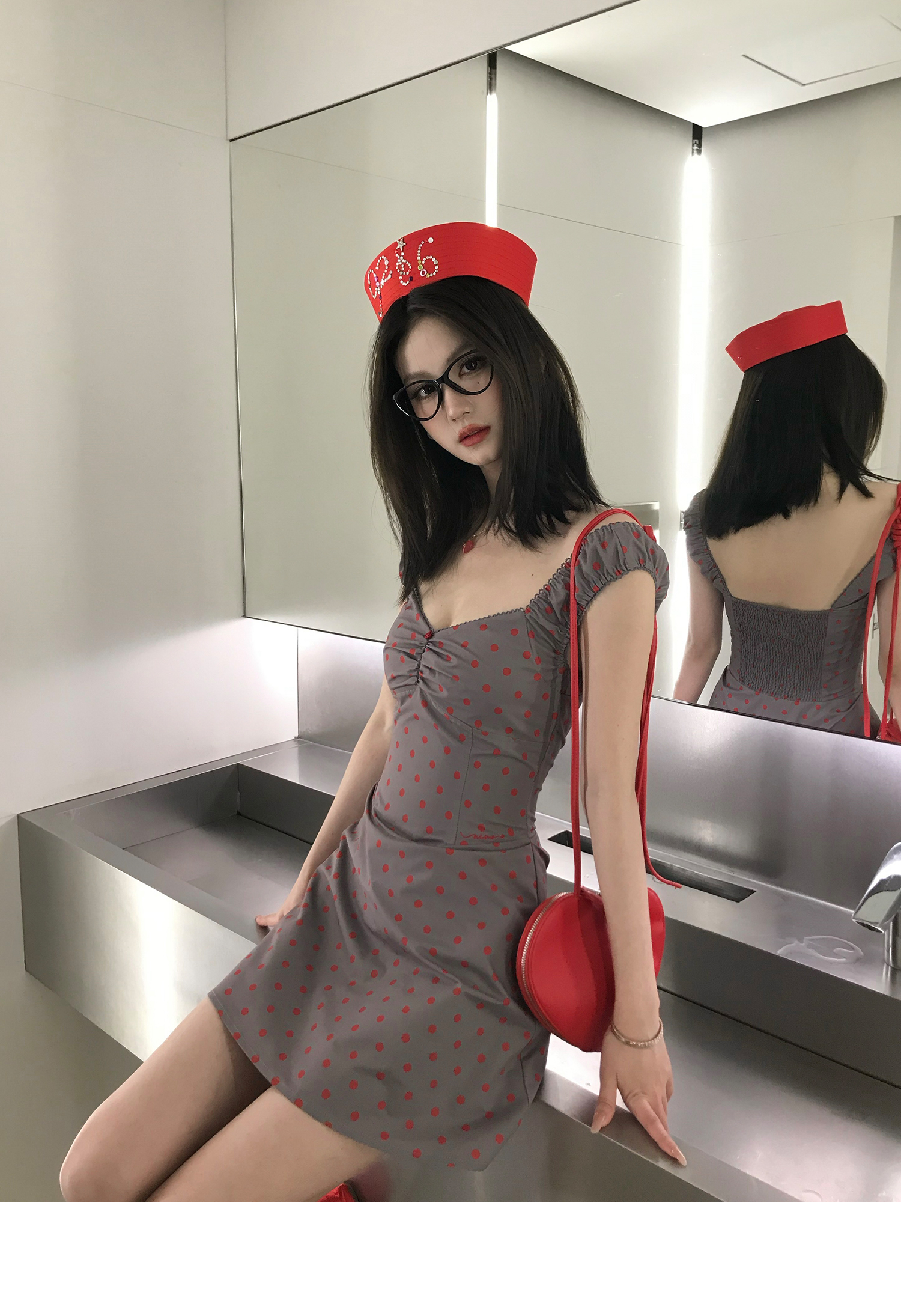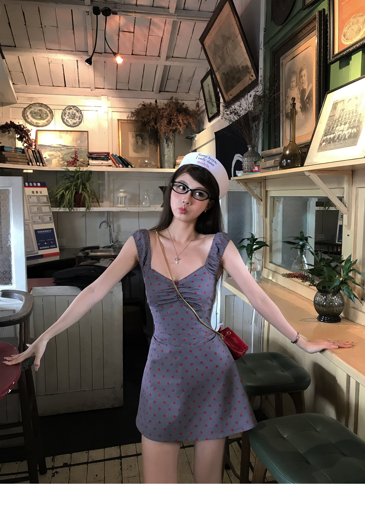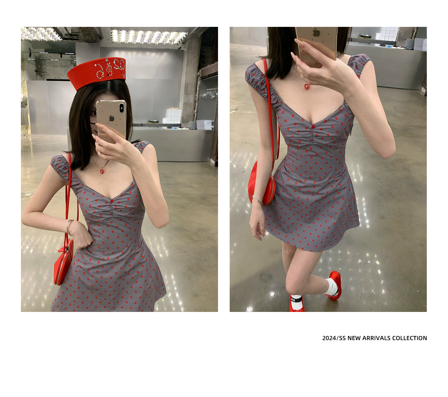 [Miu Daughter] Polka Dot Strap Top & Slim Waist Skirt - Summer A-Line