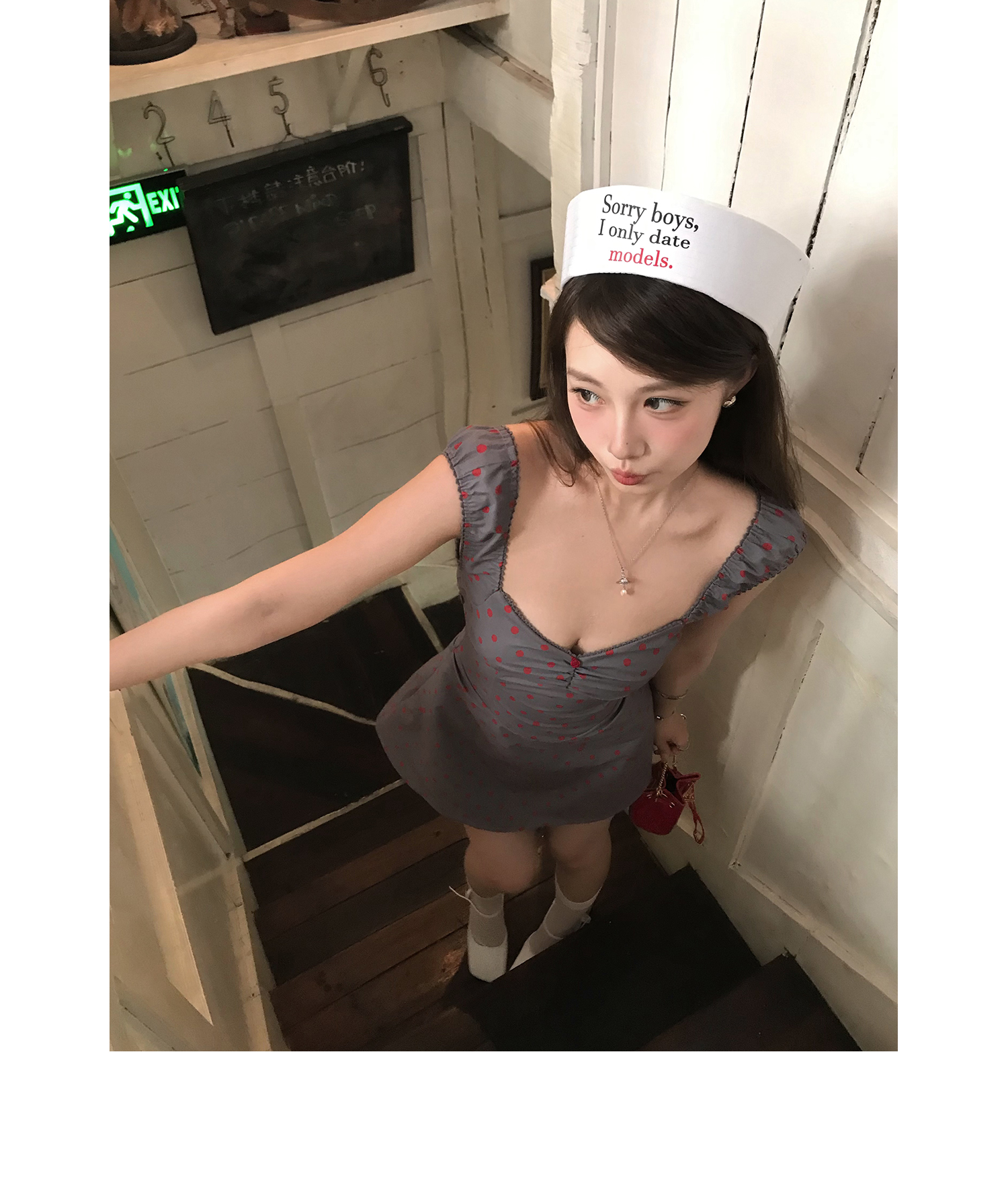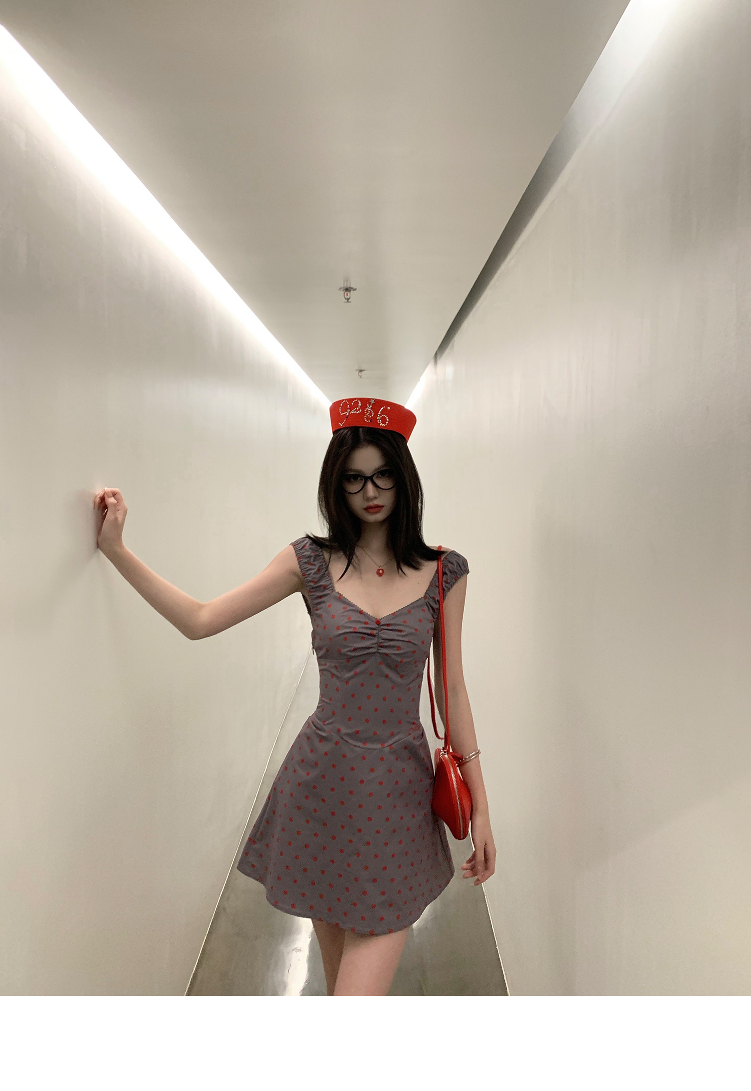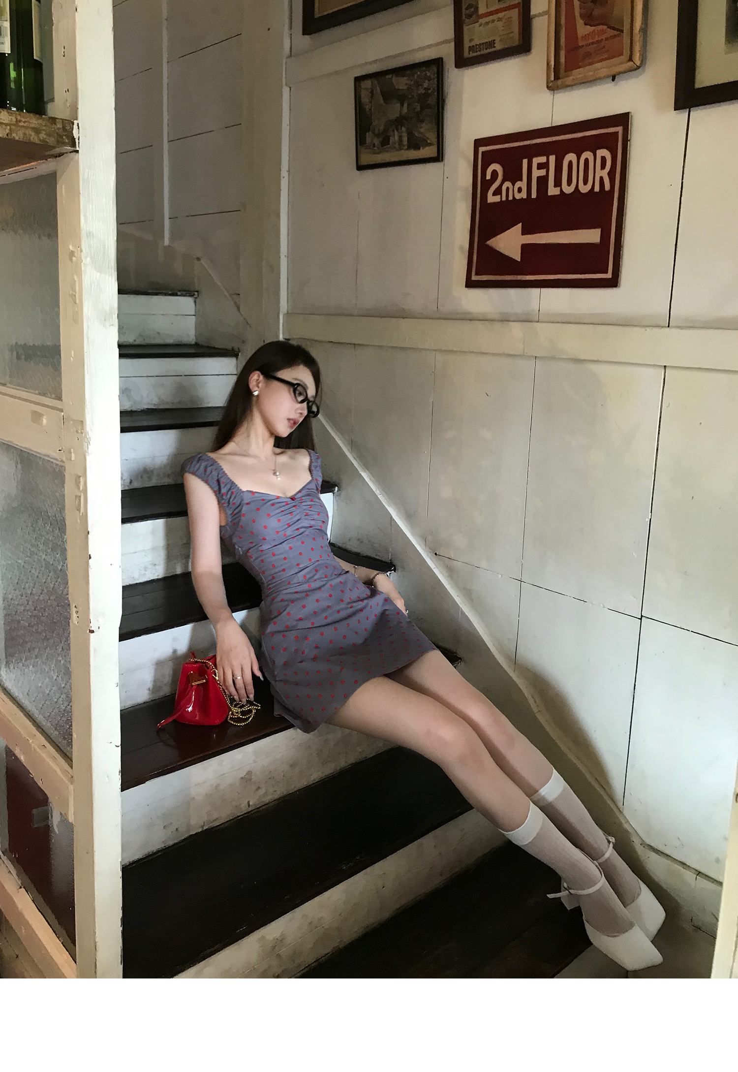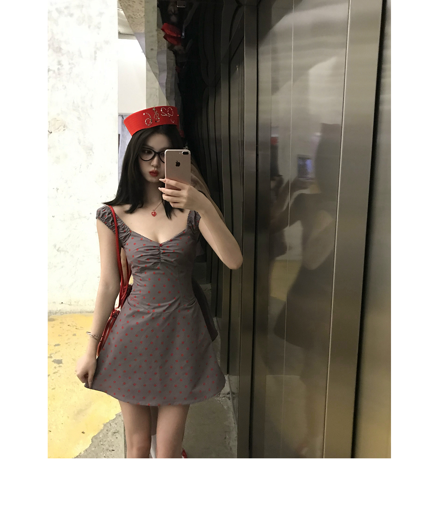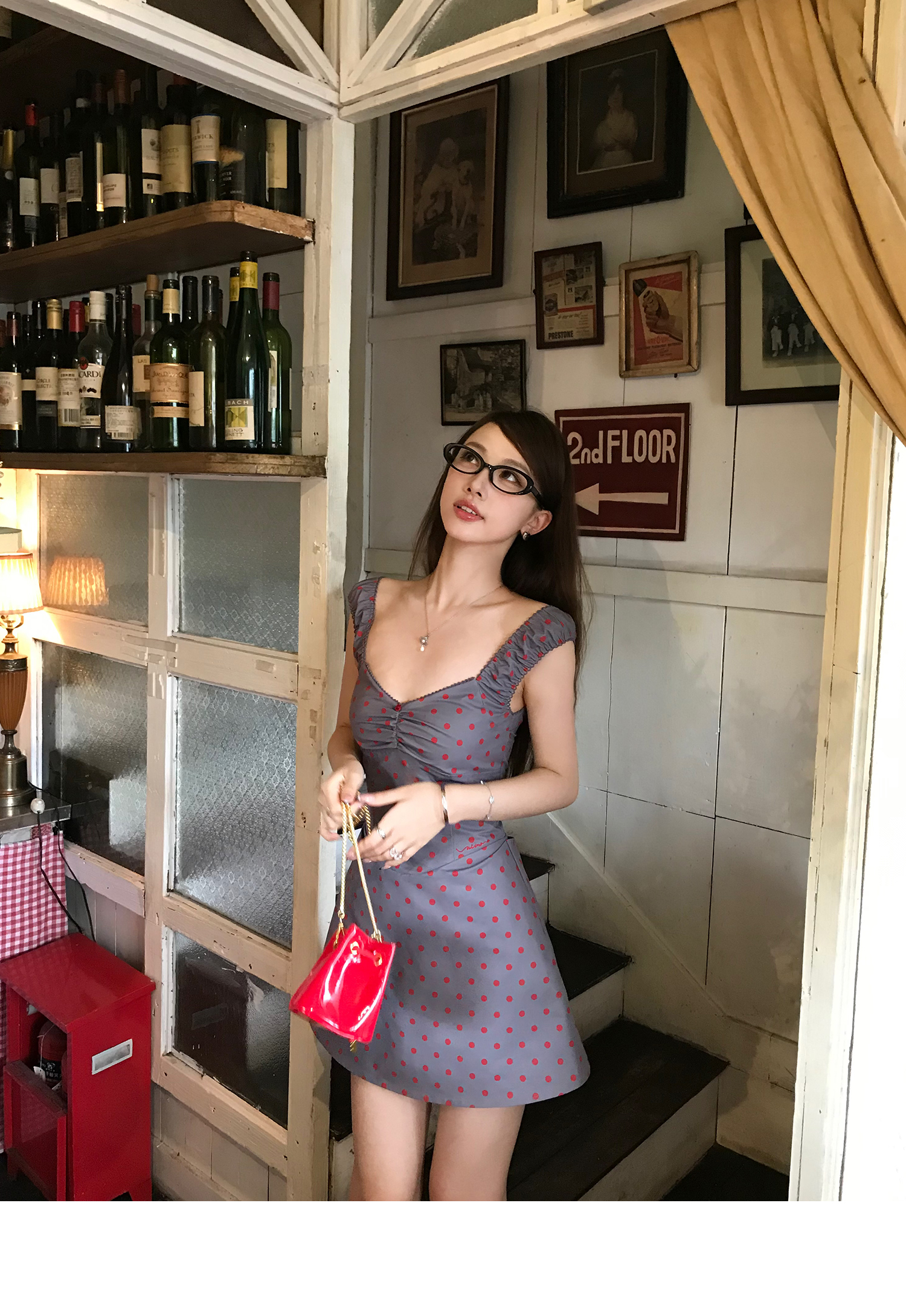 [Miu Daughter] Polka Dot Strap Top & Slim Waist Skirt - Summer A-Line