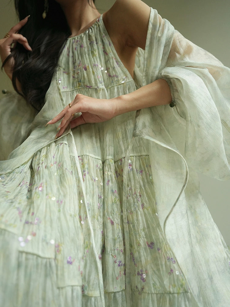 Sequin Halter Resort Maxi Dress – Elegant Swing Silhouette