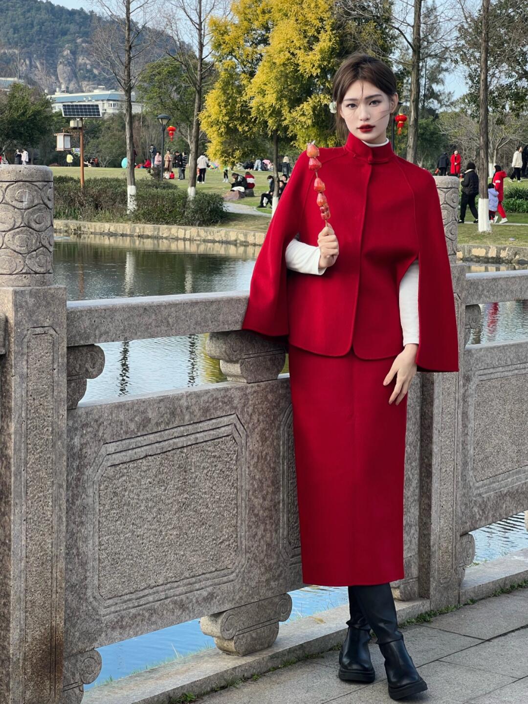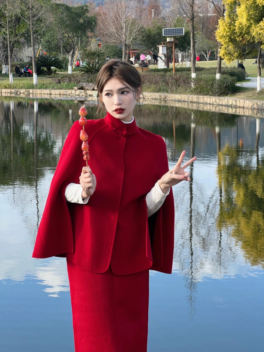 New Chinese Cashmere Suit – Luxury New Year’s Engagement Two-Piece Set