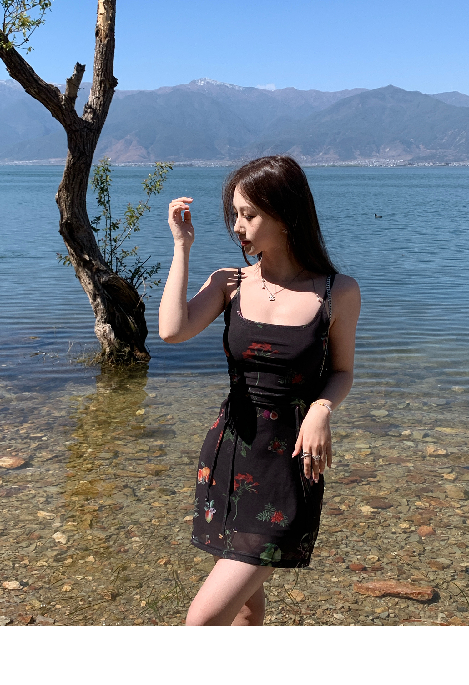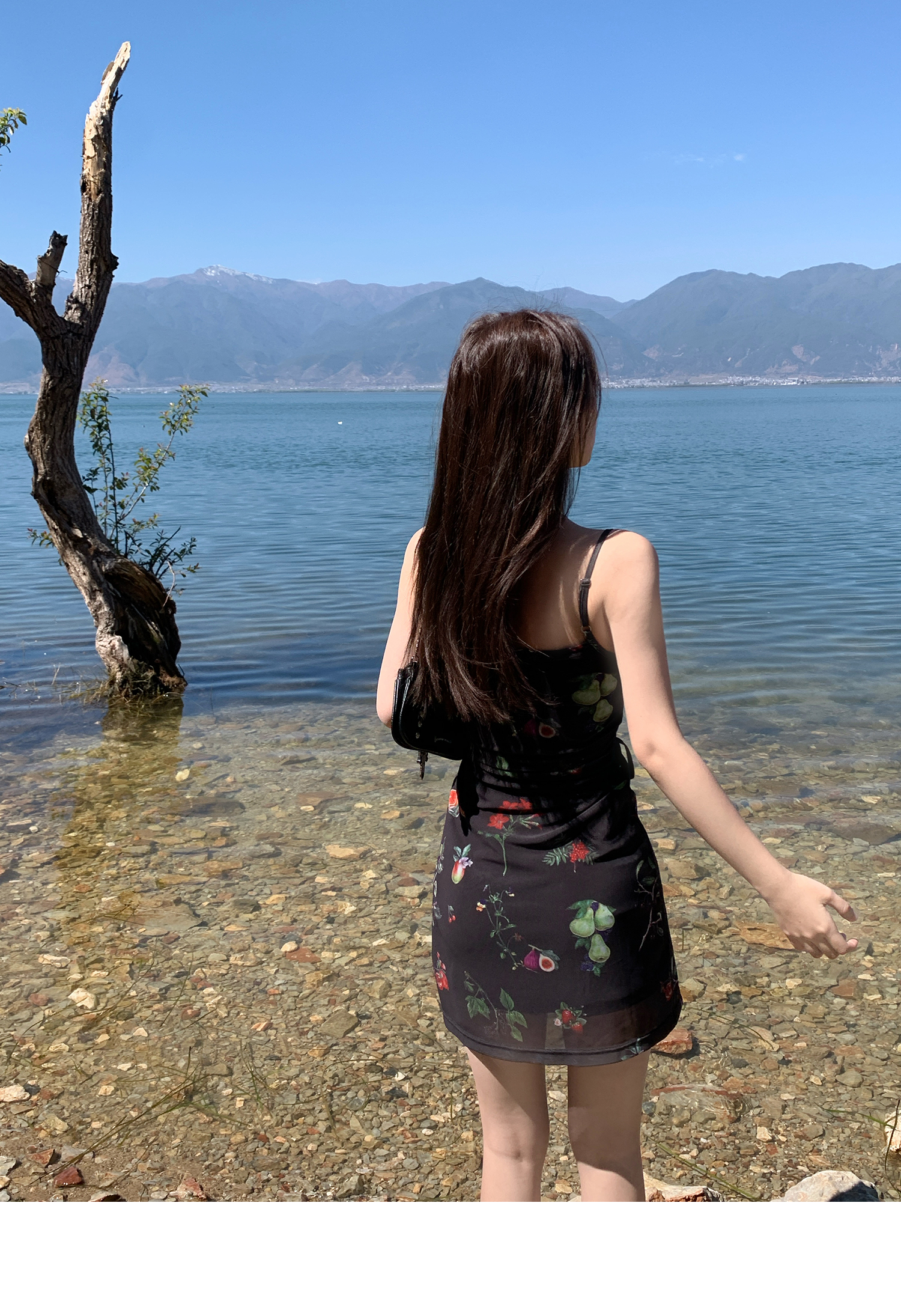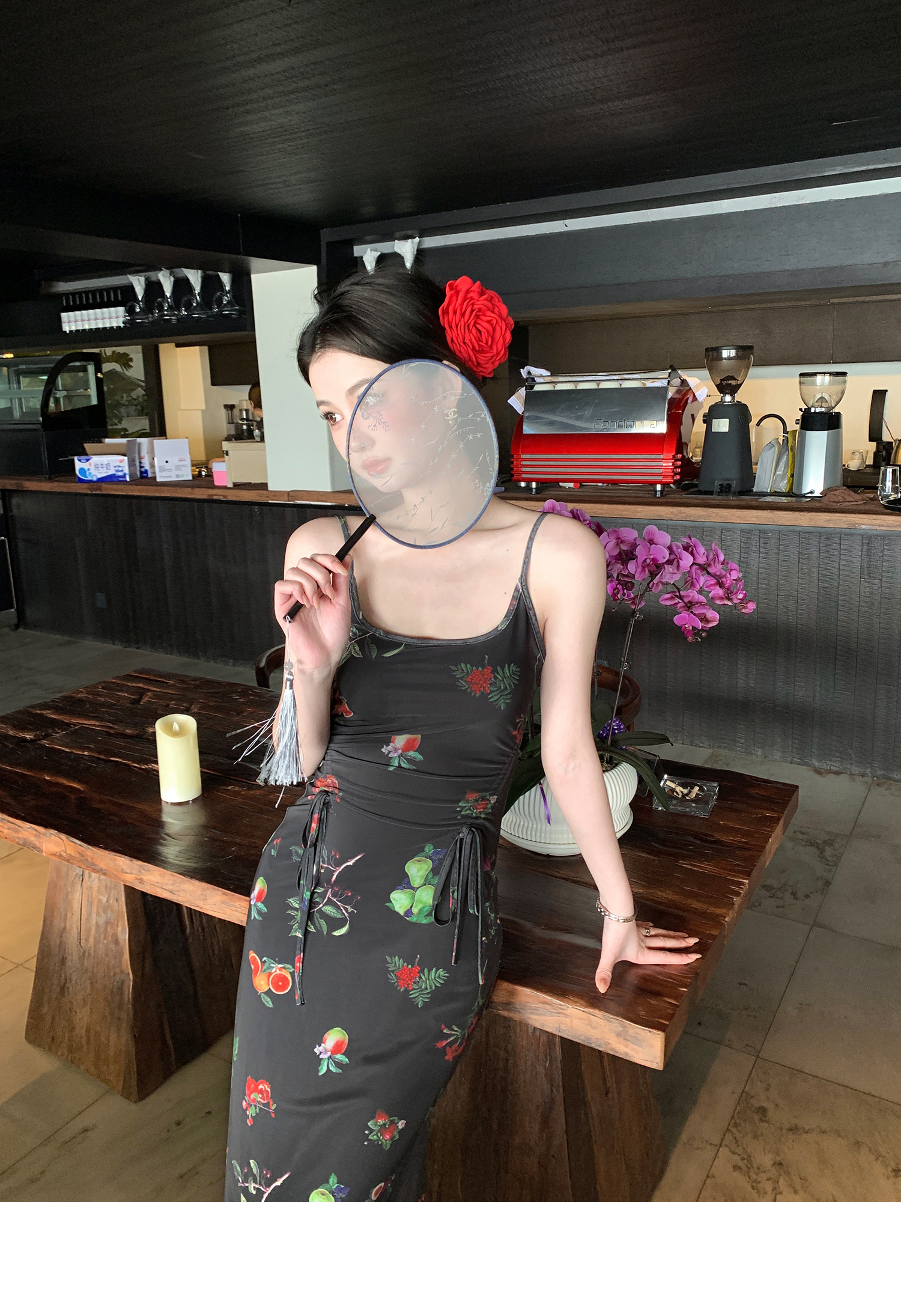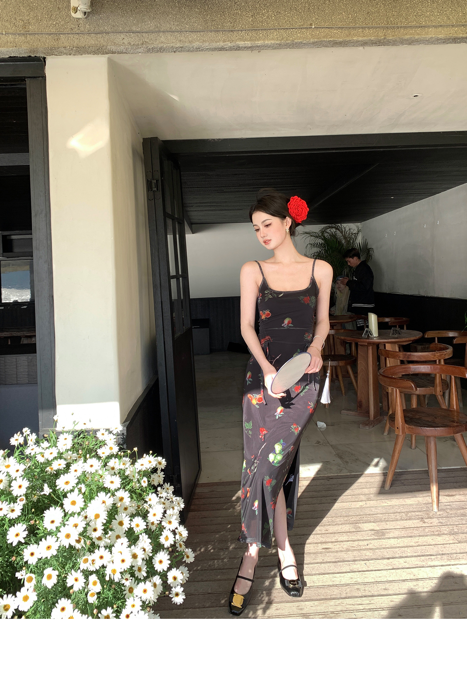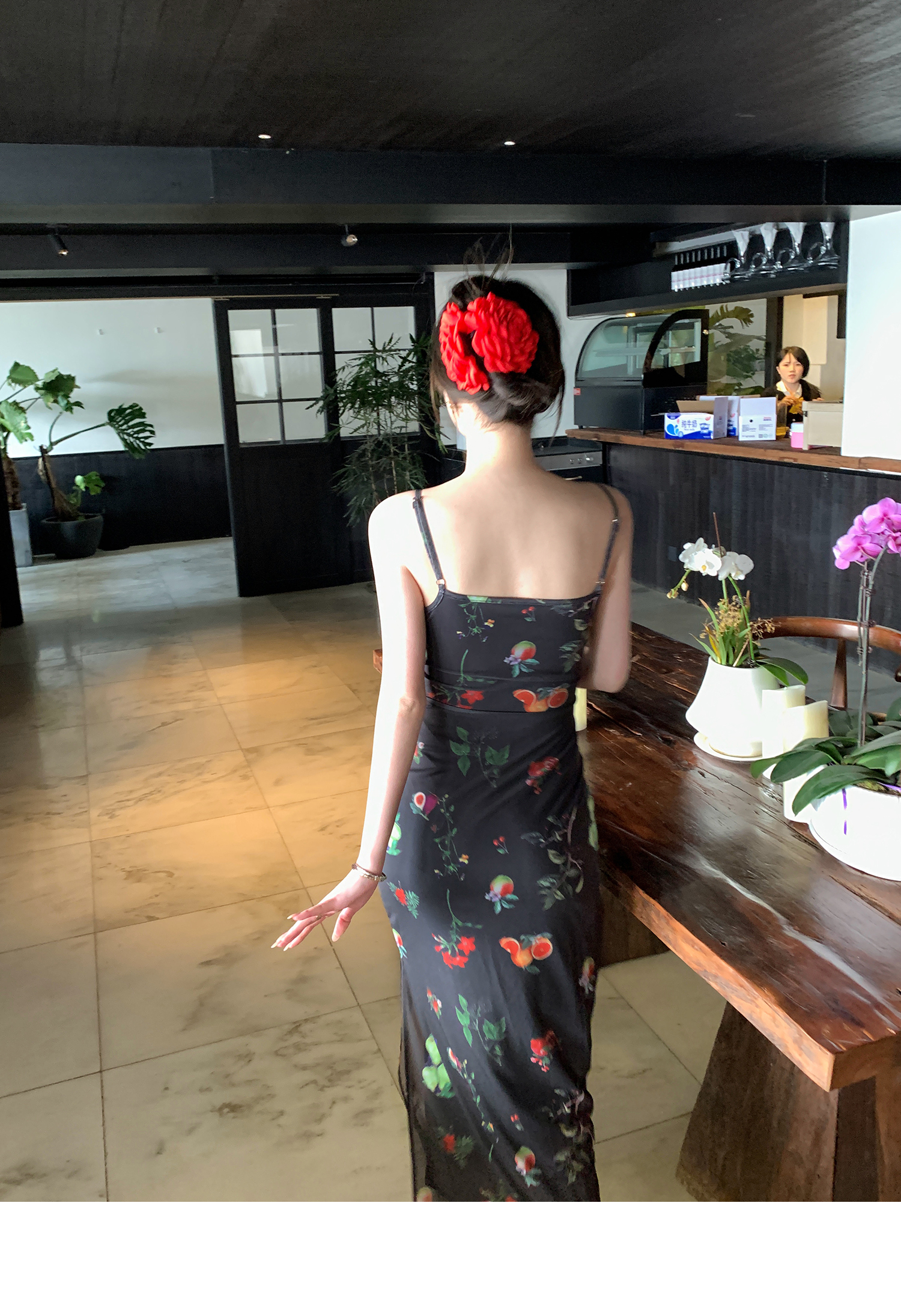 Chinese Mesh Camisole Floral Dress - Women's Slim Fit Spicy Girl Style