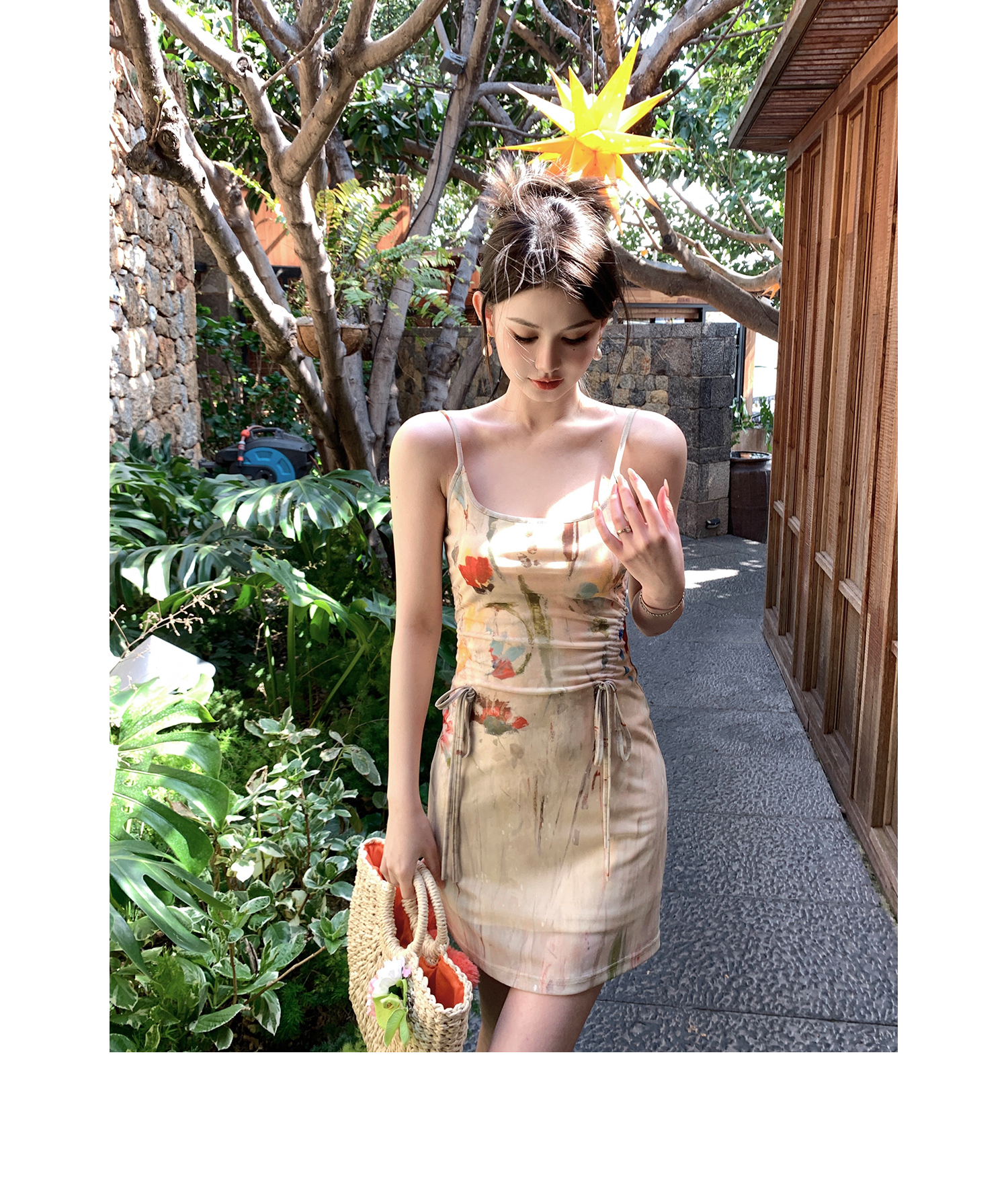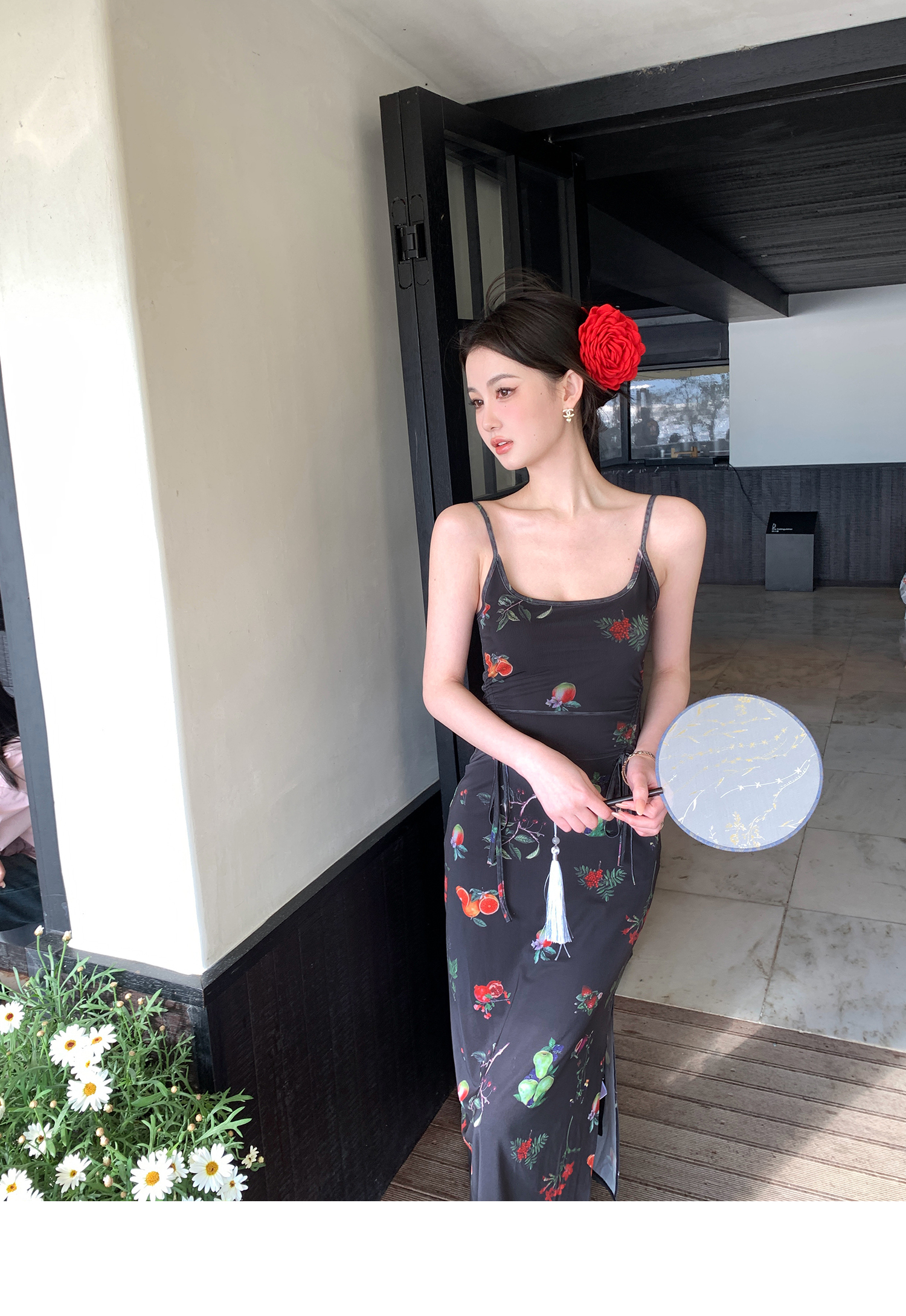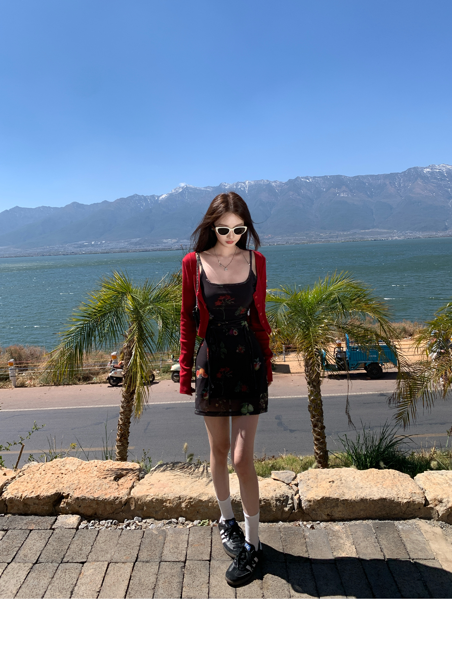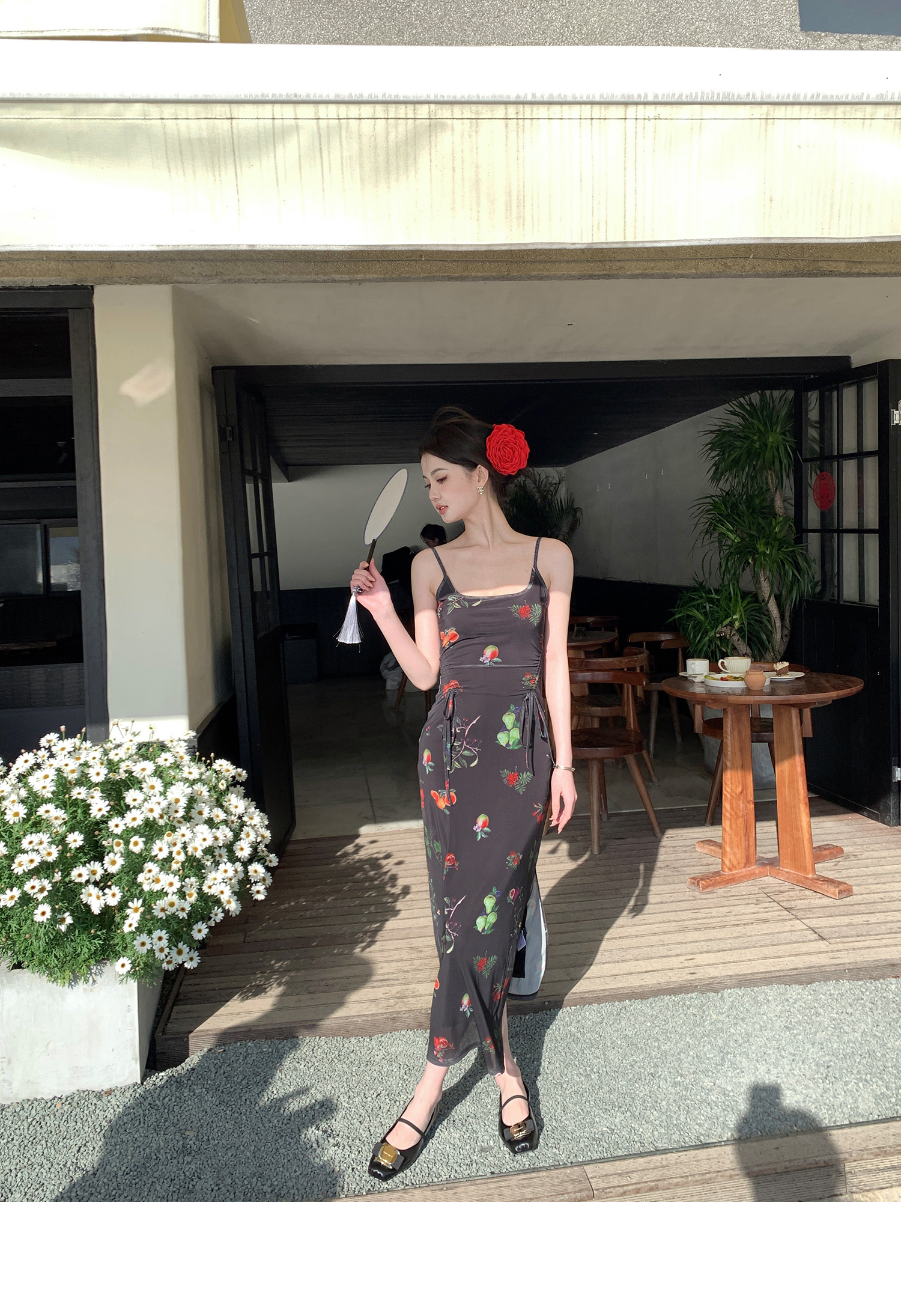 Chinese Mesh Camisole Floral Dress - Women's Slim Fit Spicy Girl Style