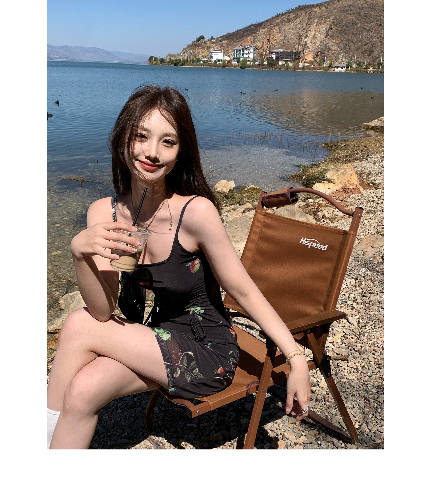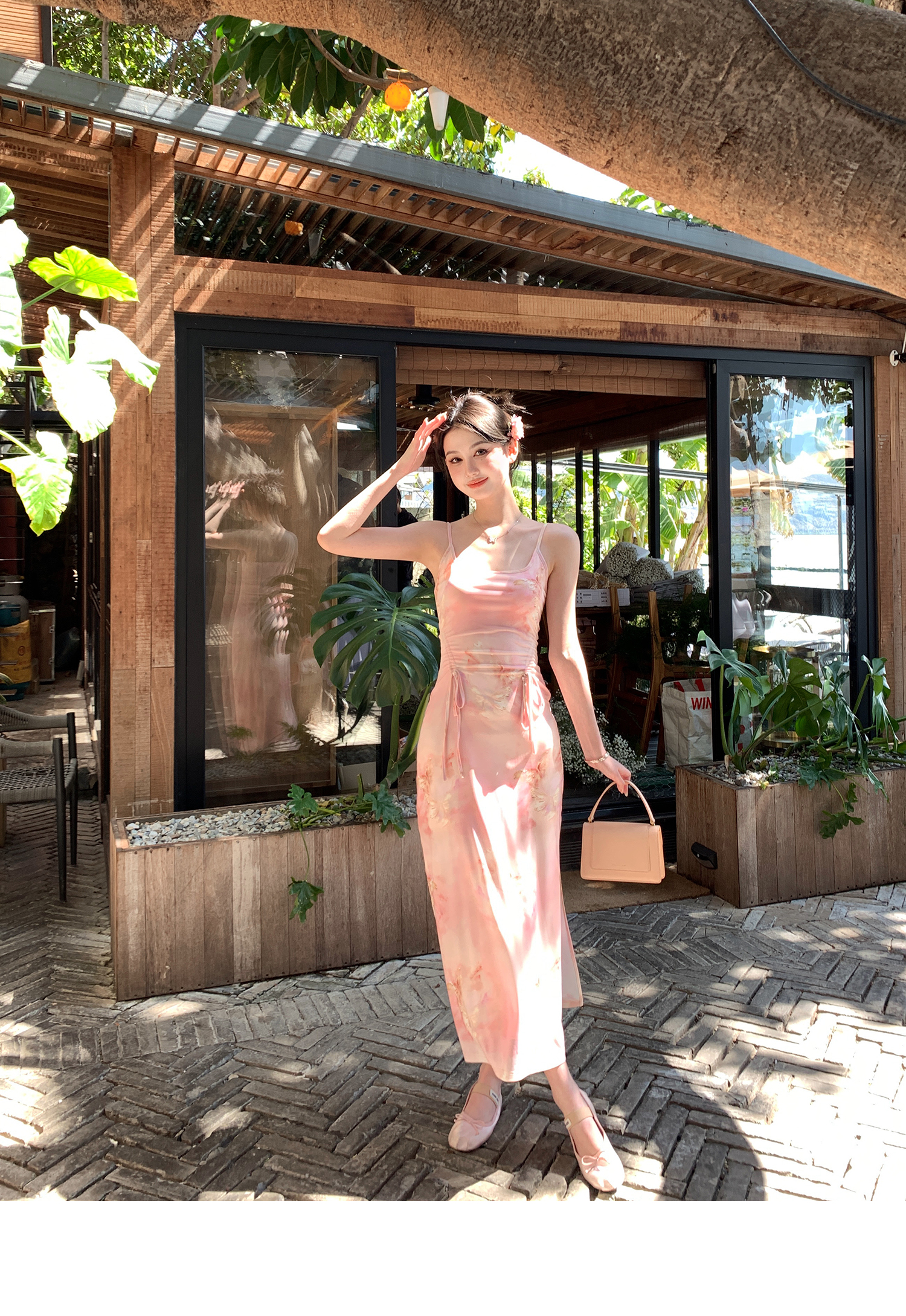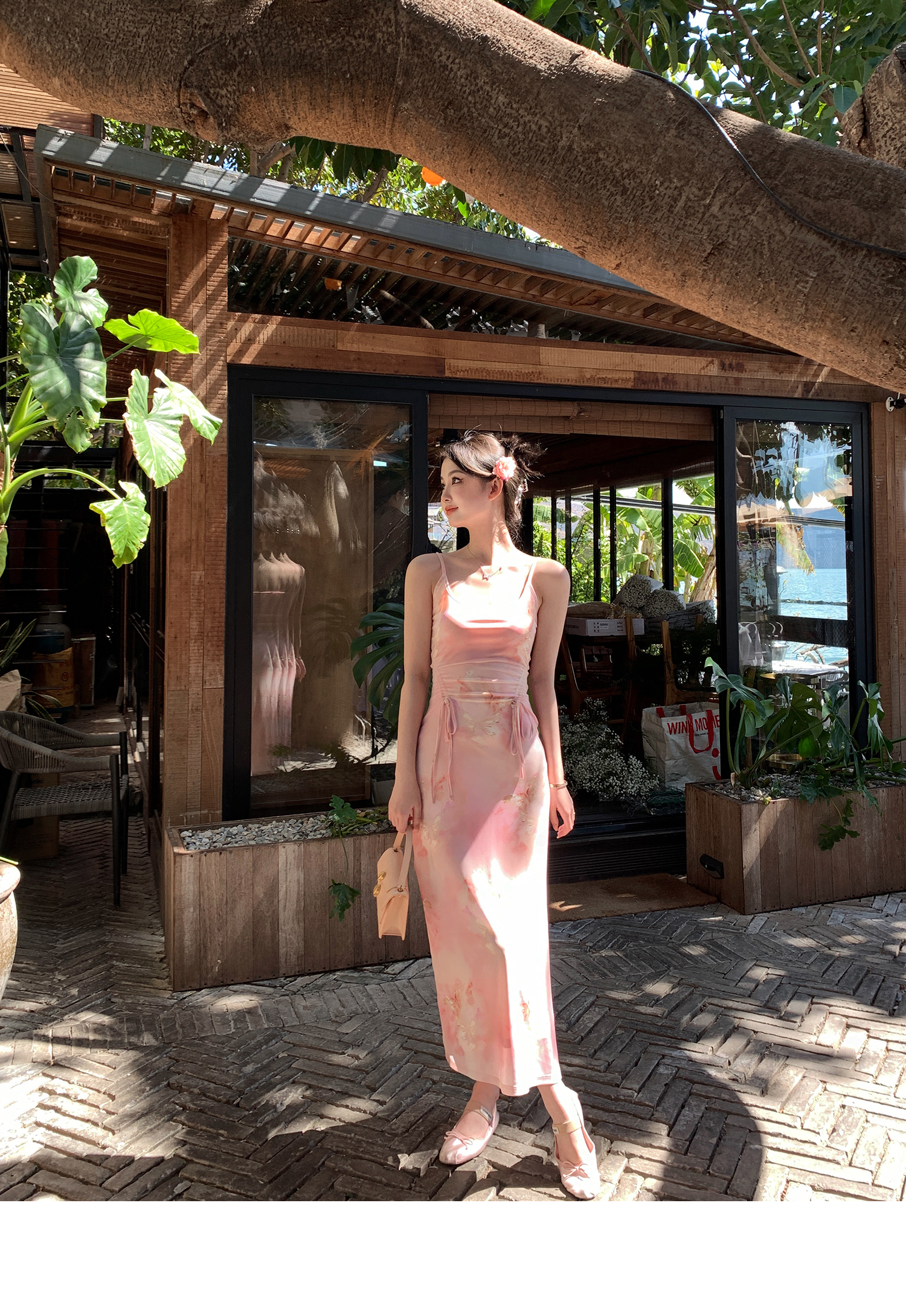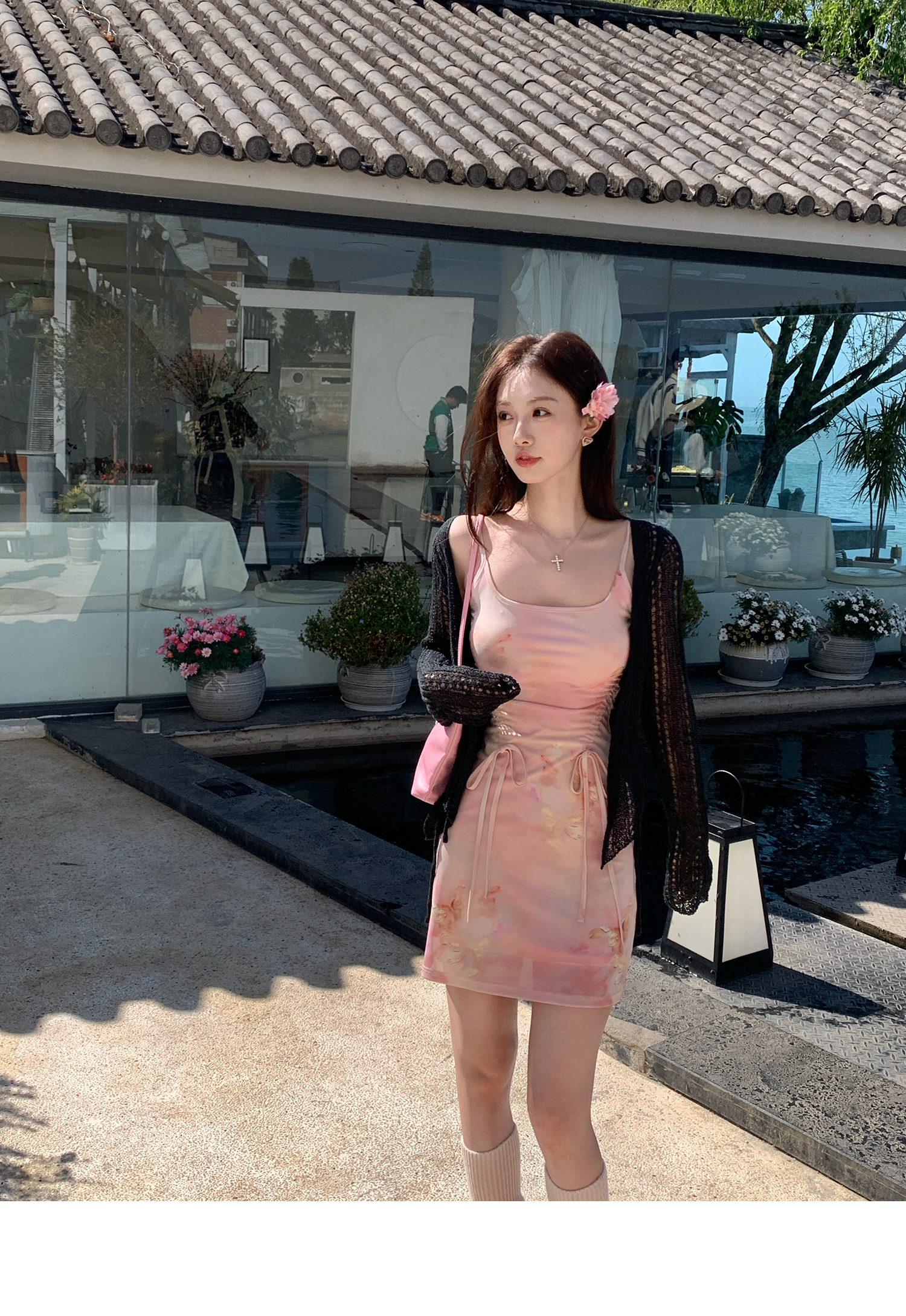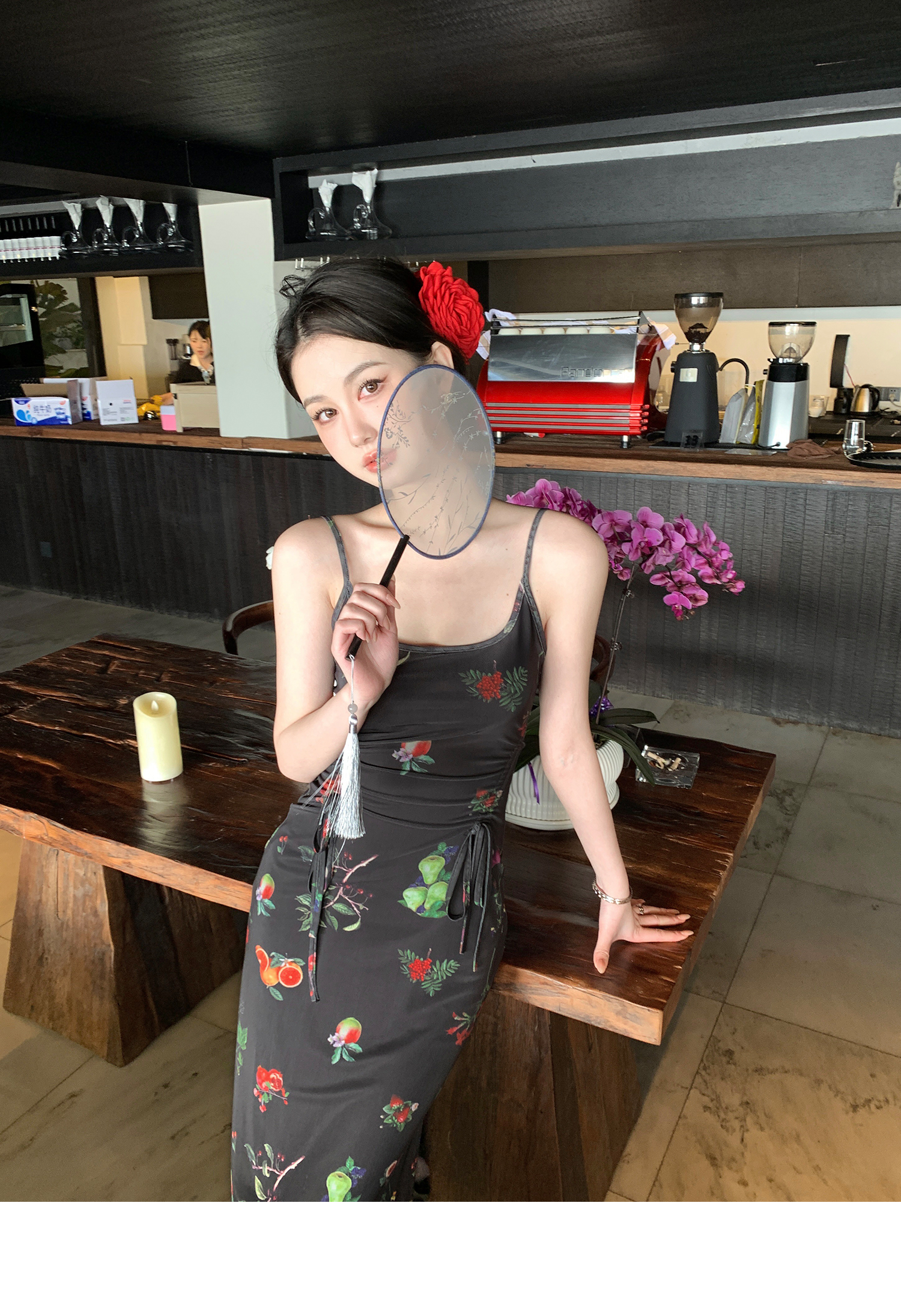 Chinese Mesh Camisole Floral Dress - Women's Slim Fit Spicy Girl Style