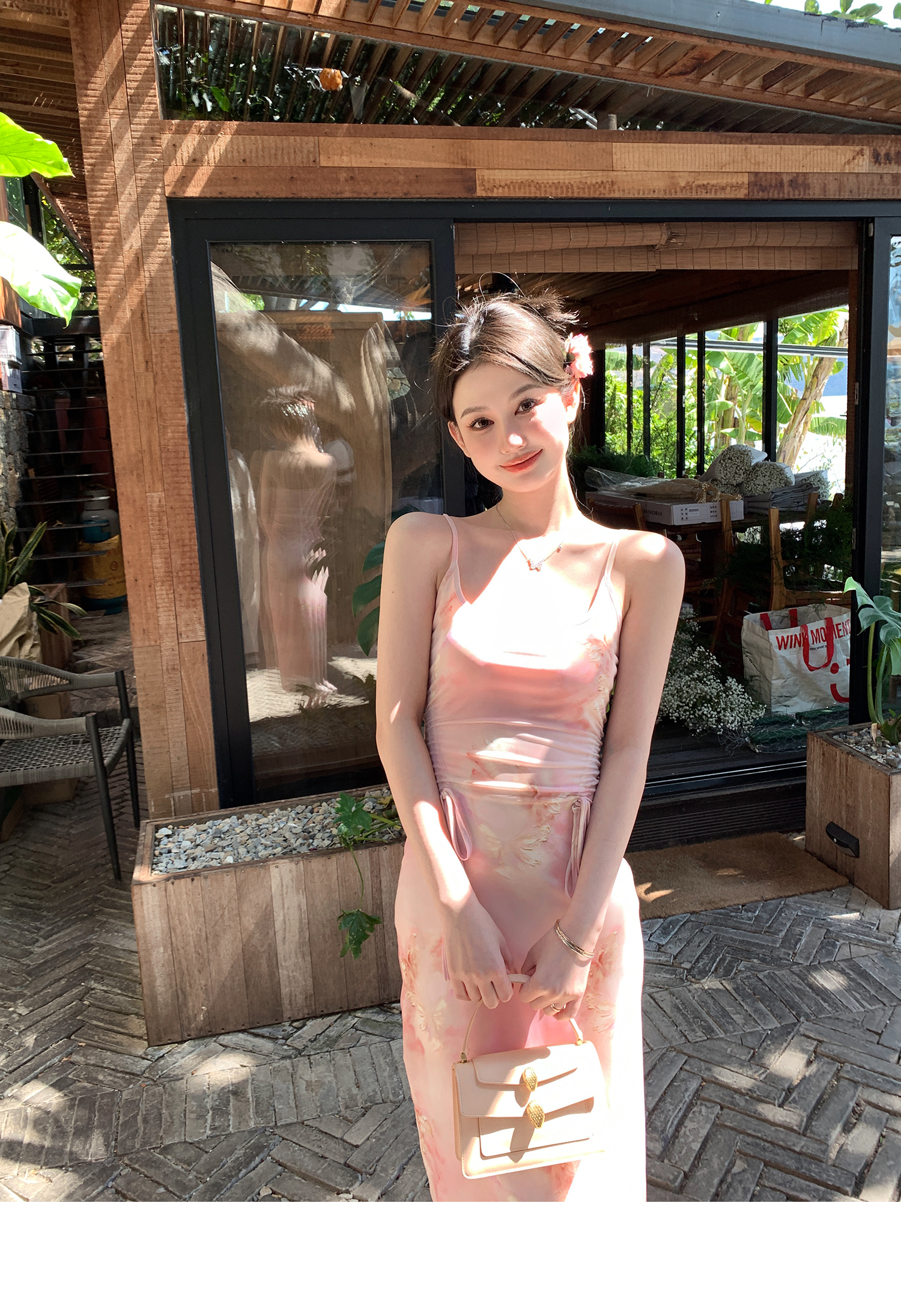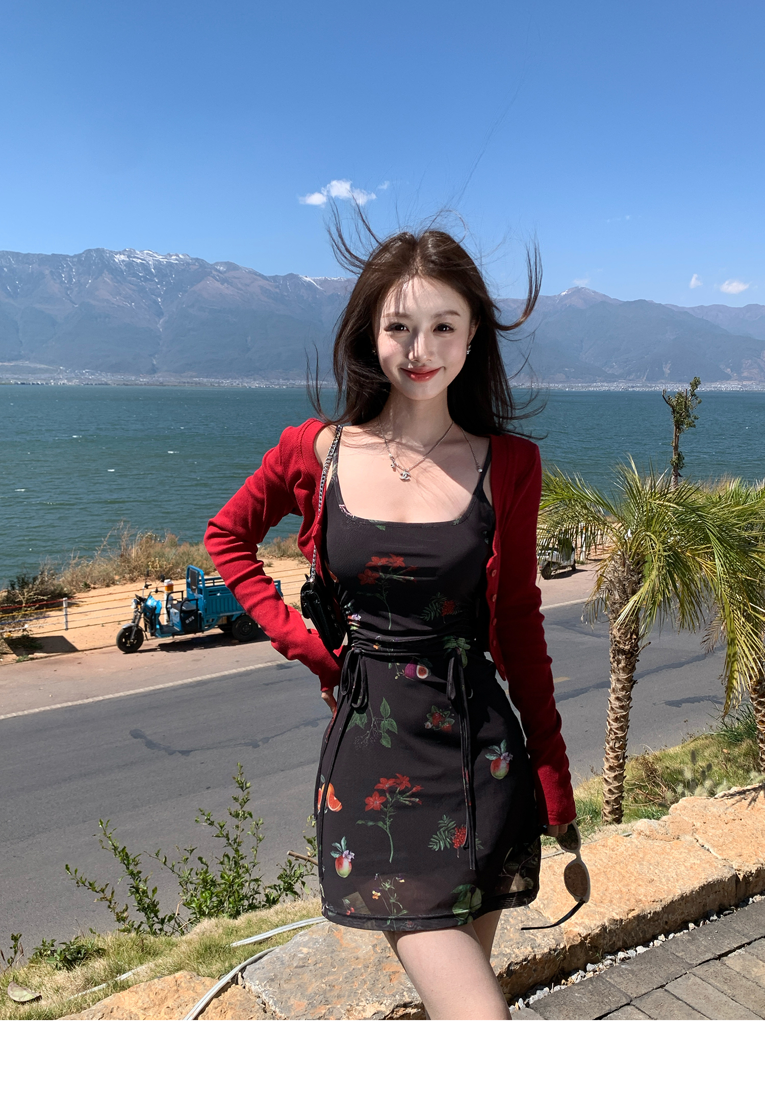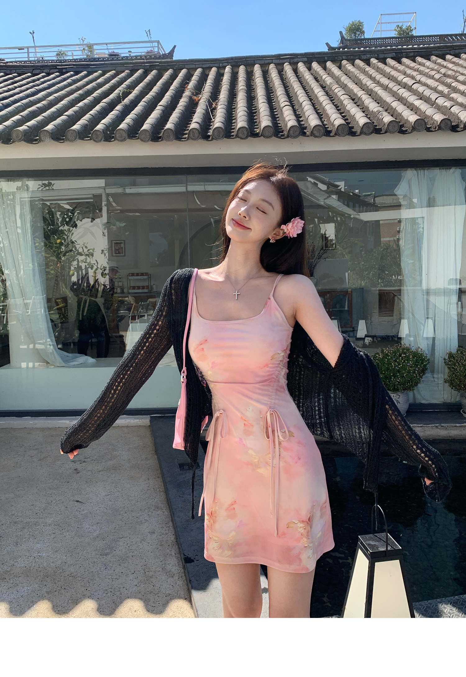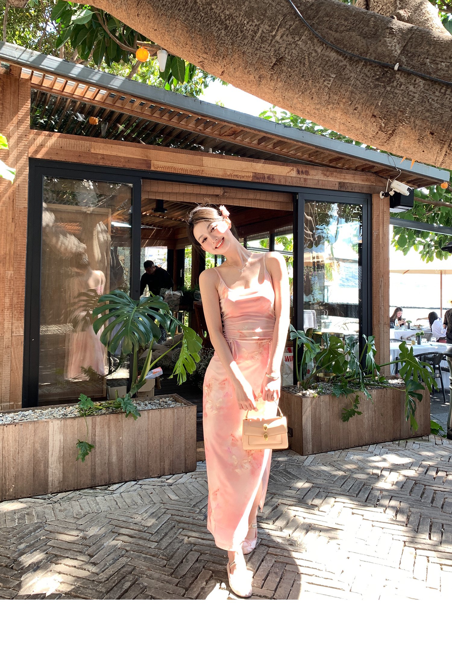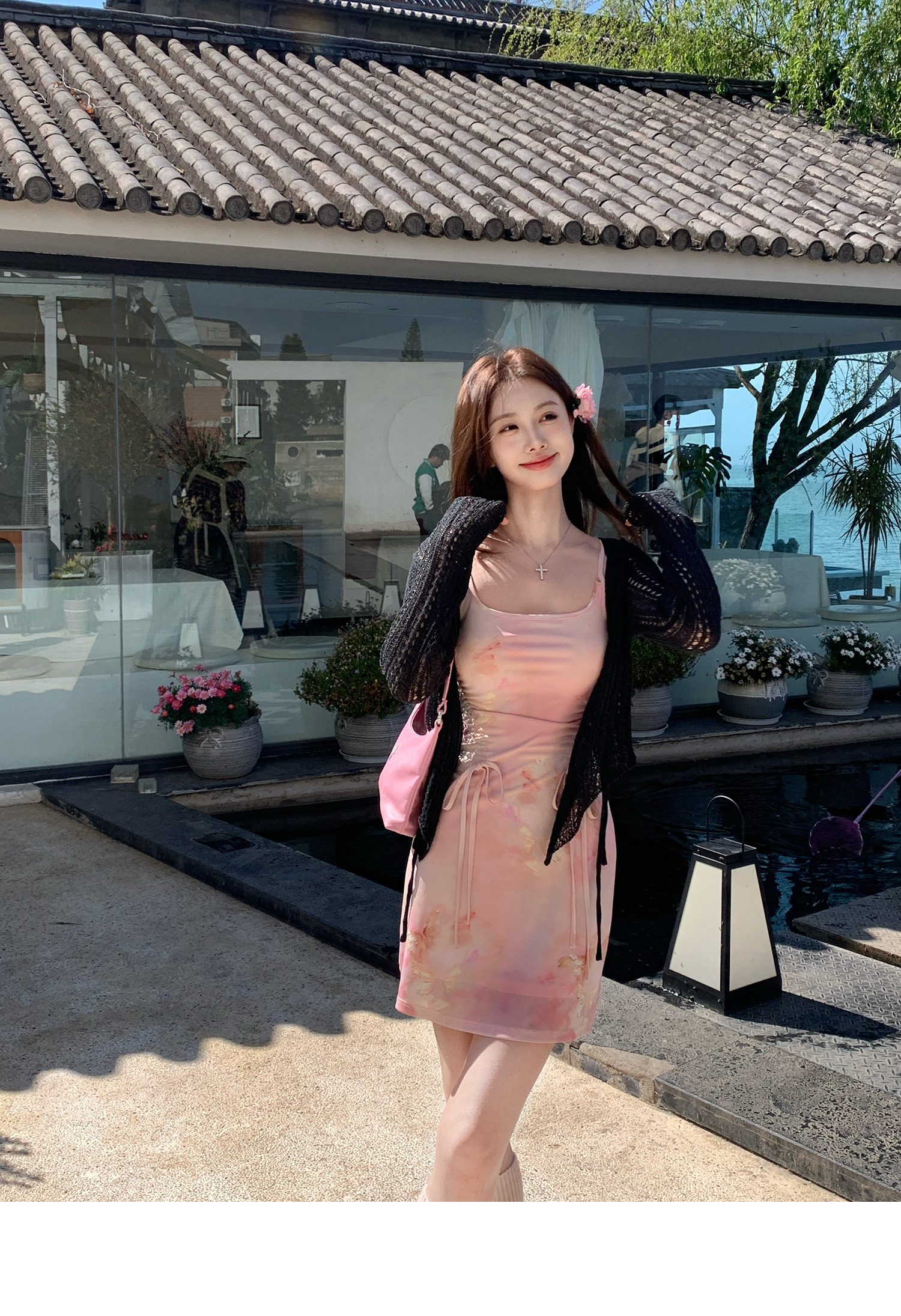 Chinese Mesh Camisole Floral Dress - Women's Slim Fit Spicy Girl Style