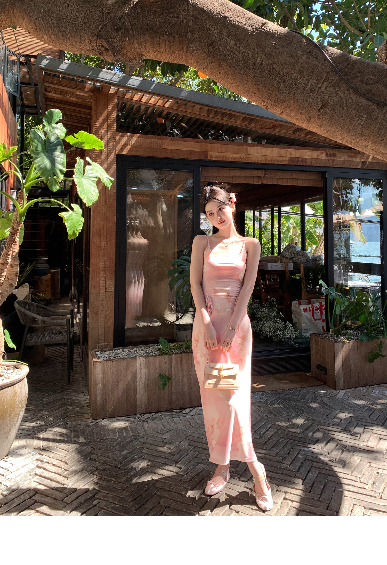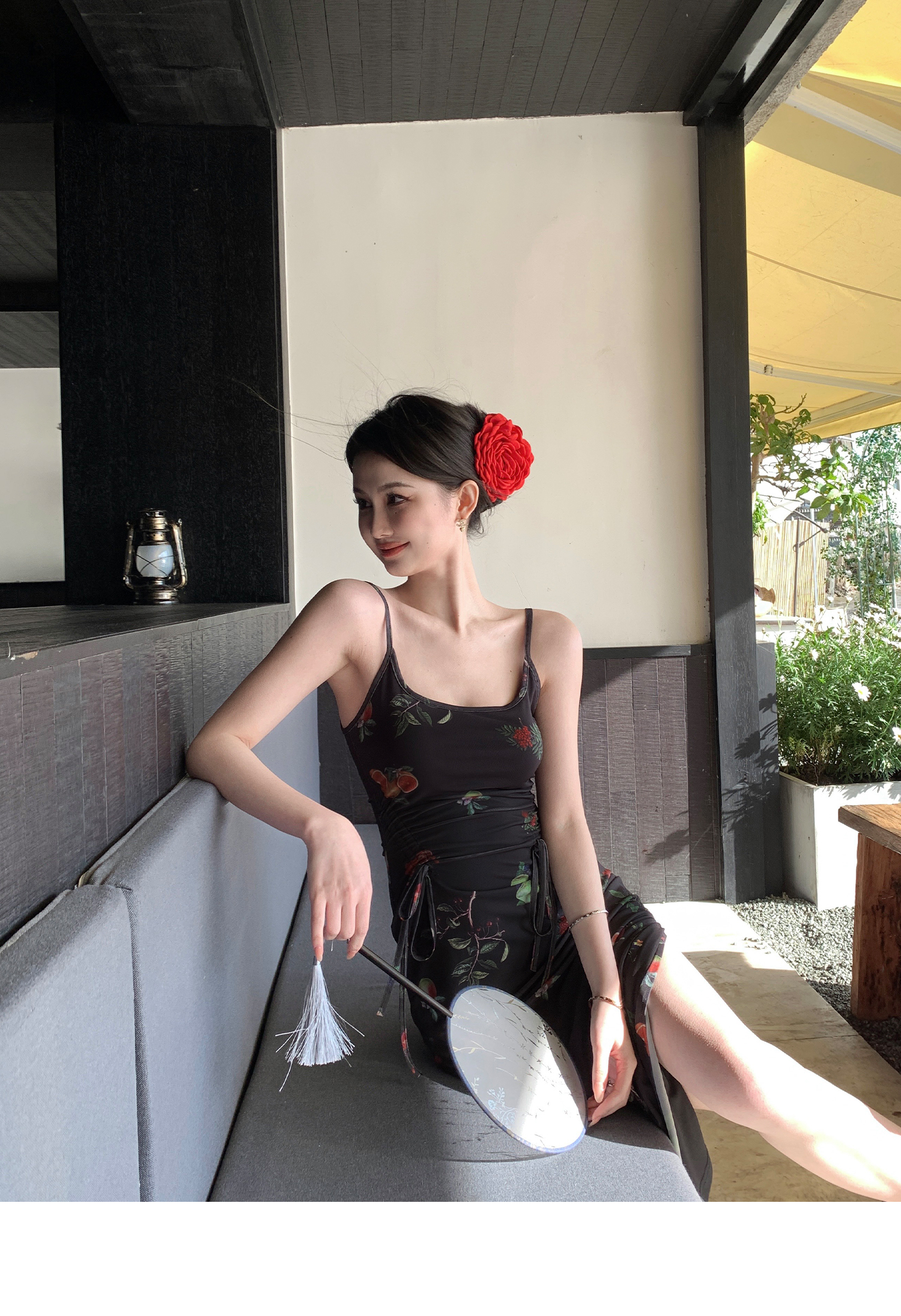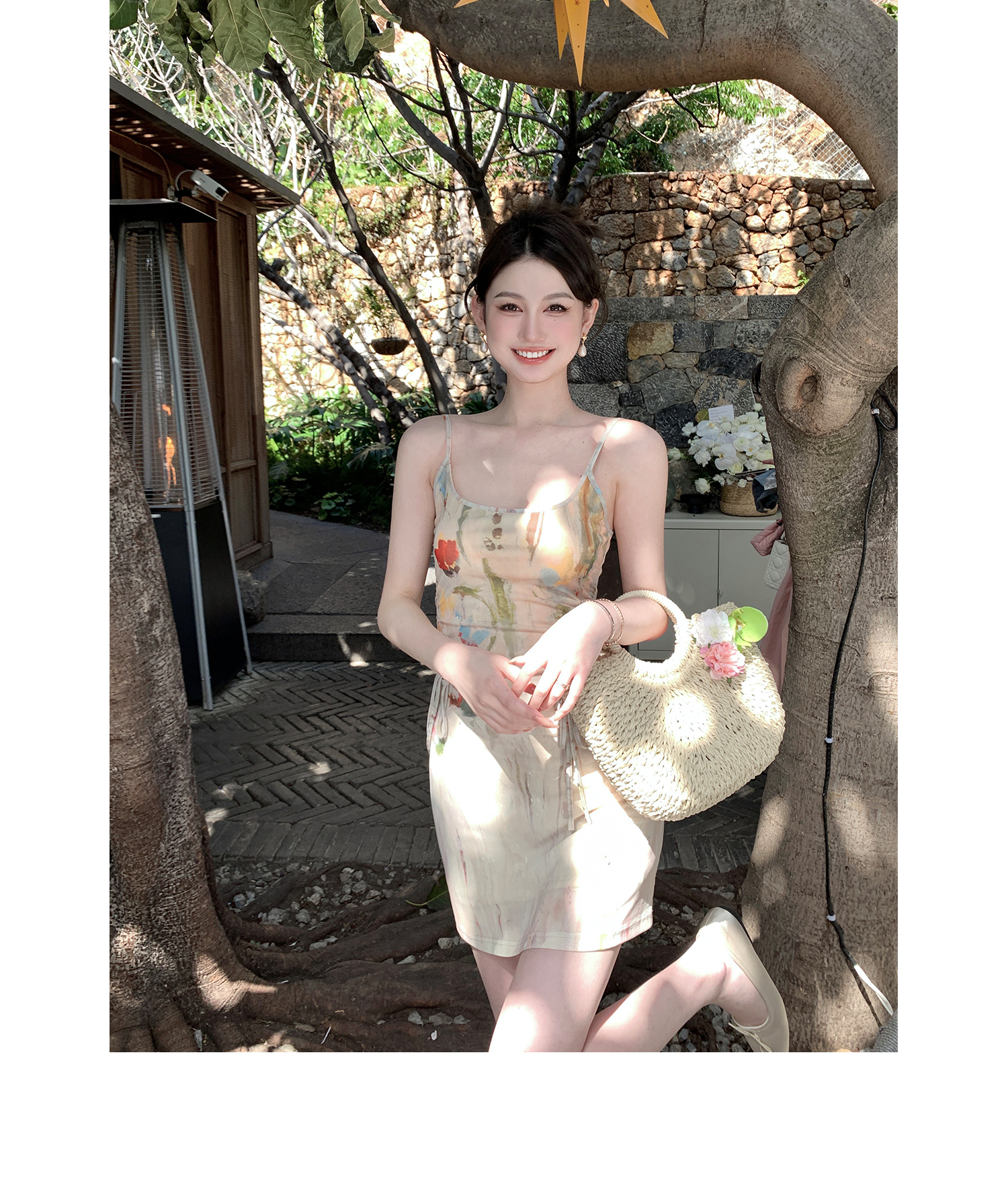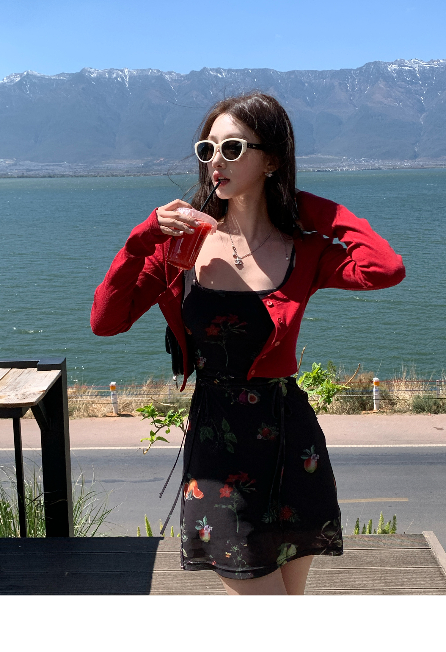 Chinese Mesh Camisole Floral Dress - Women's Slim Fit Spicy Girl Style
