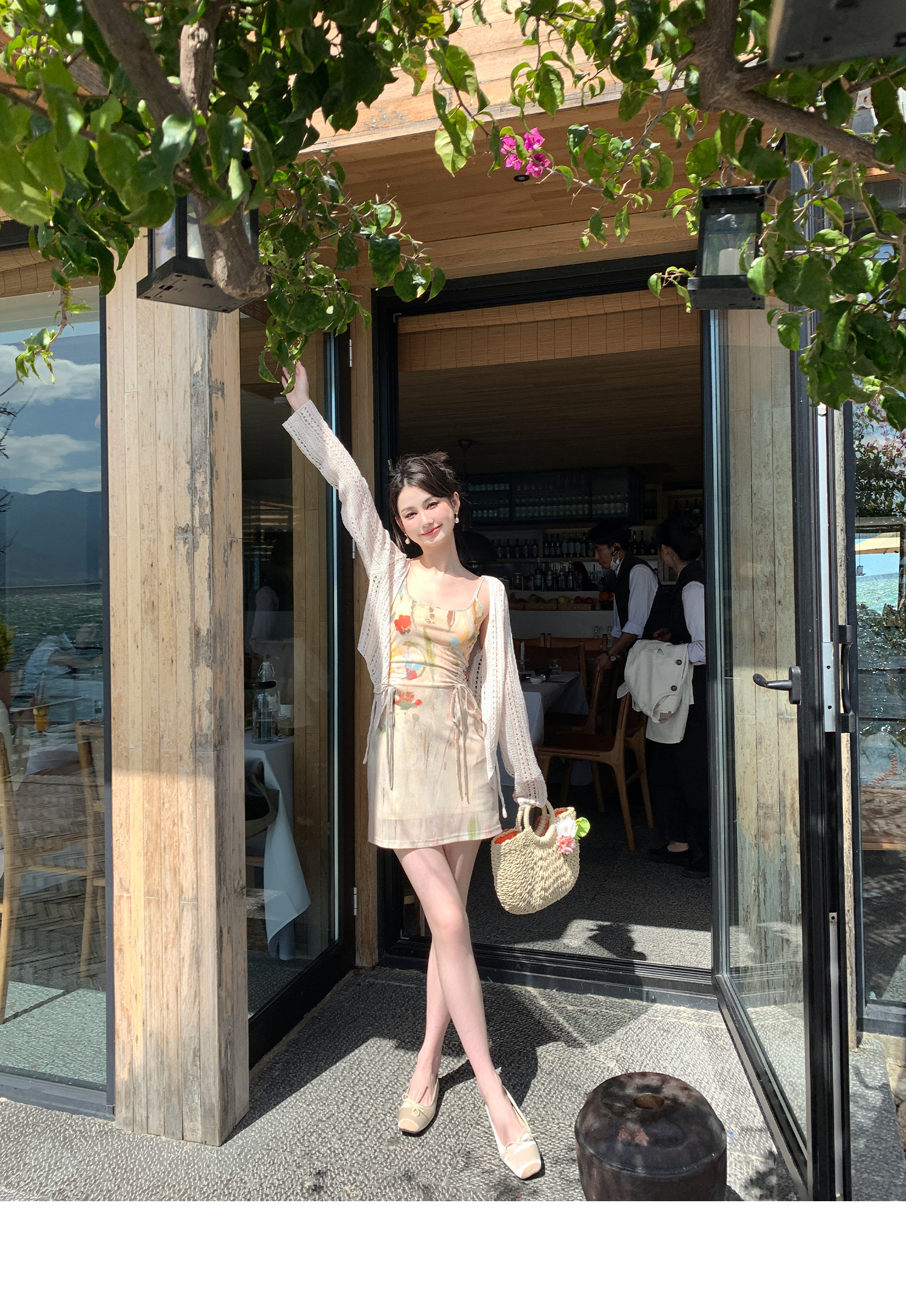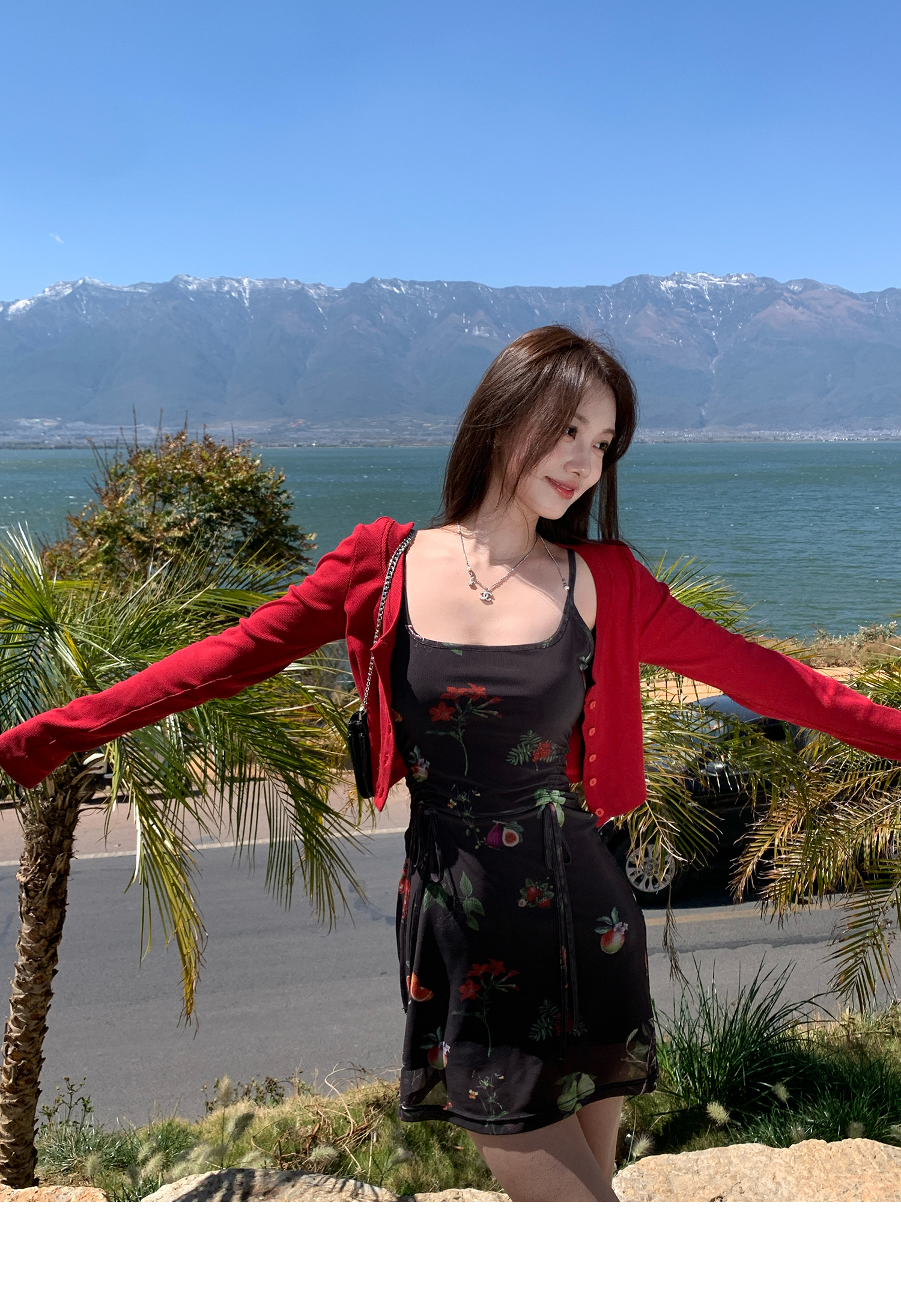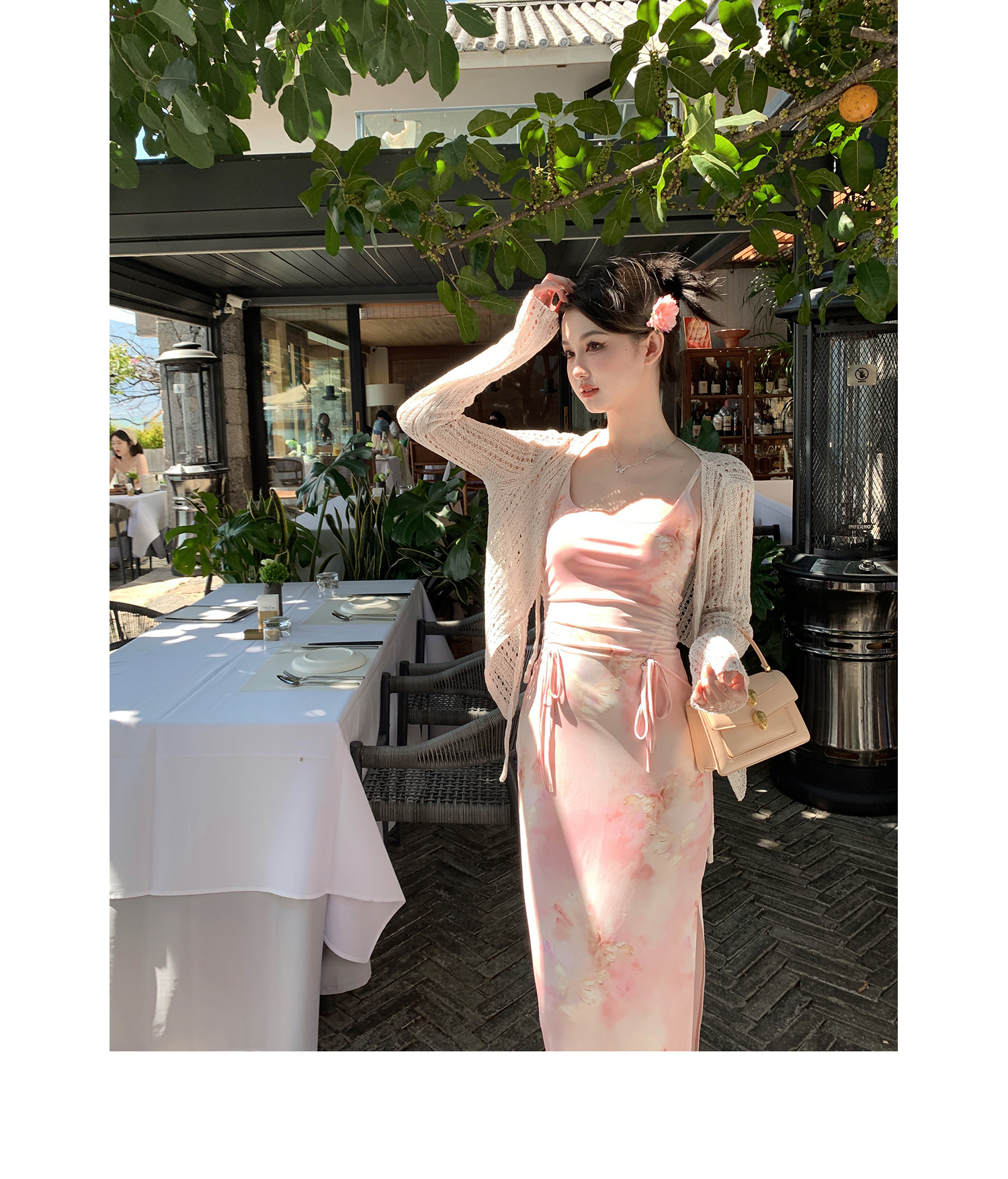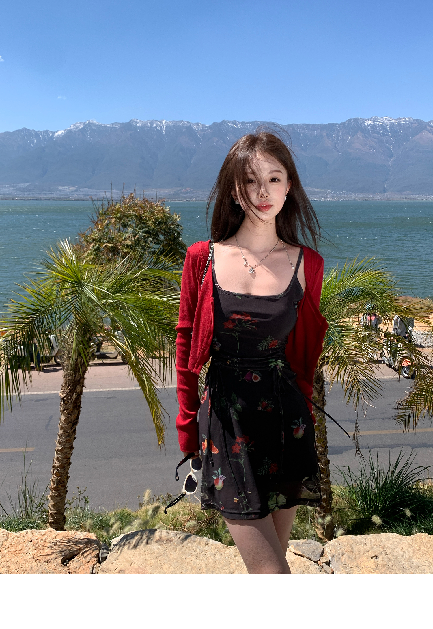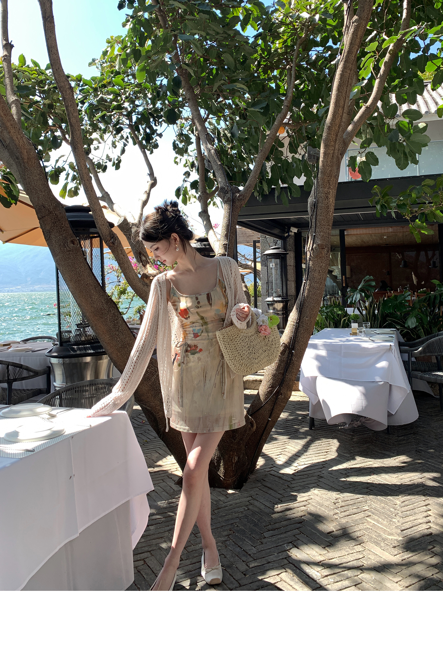 Chinese Mesh Camisole Floral Dress - Women's Slim Fit Spicy Girl Style