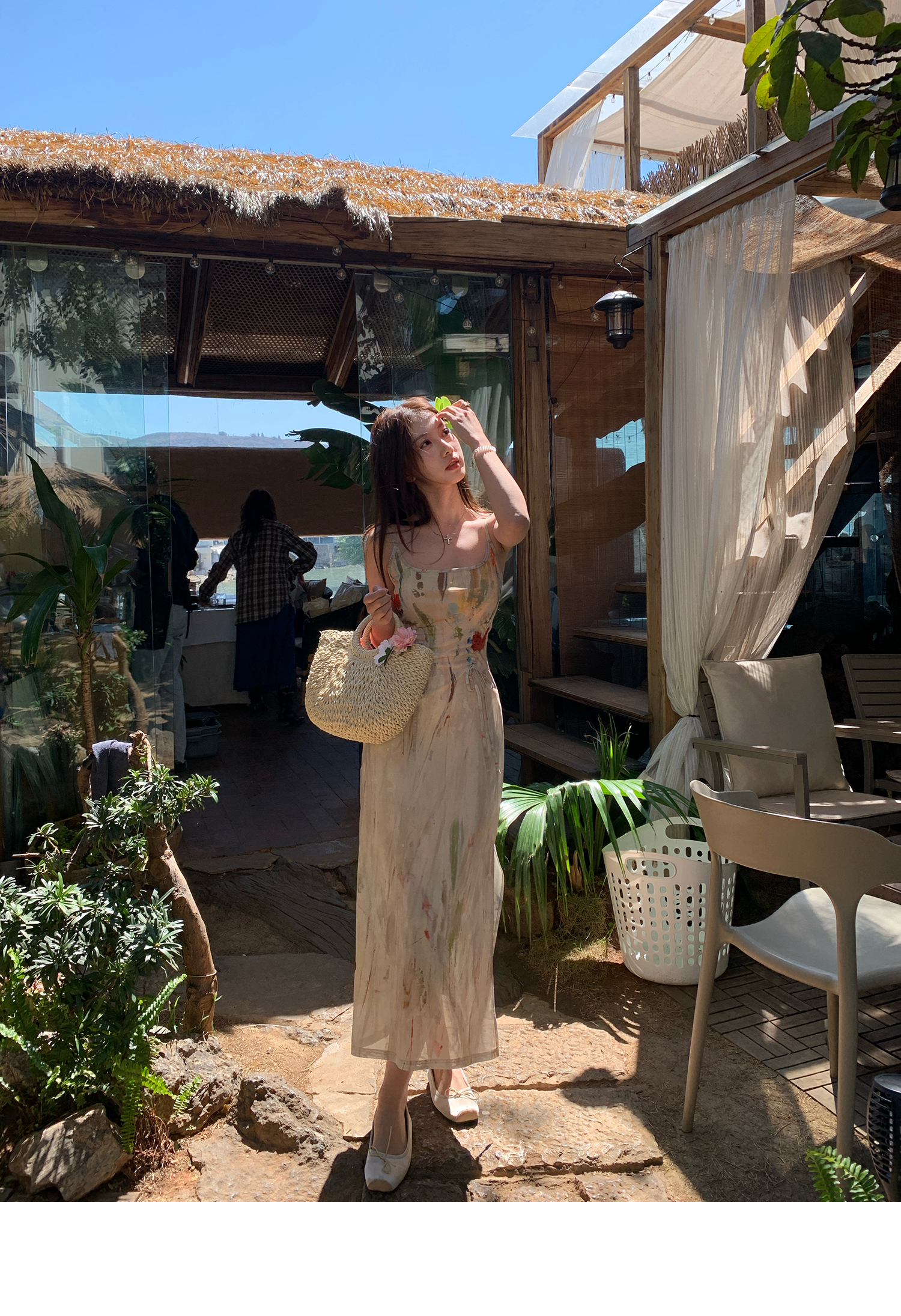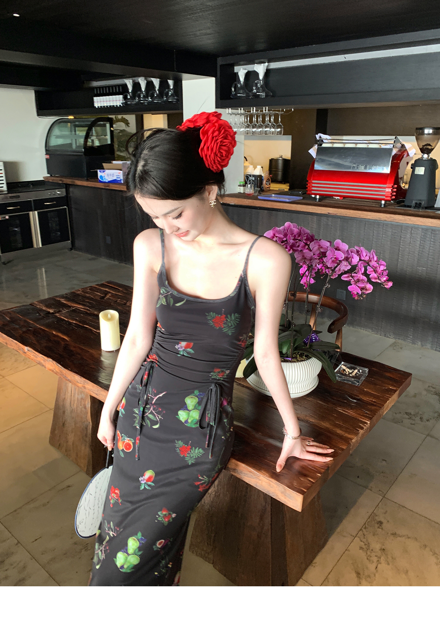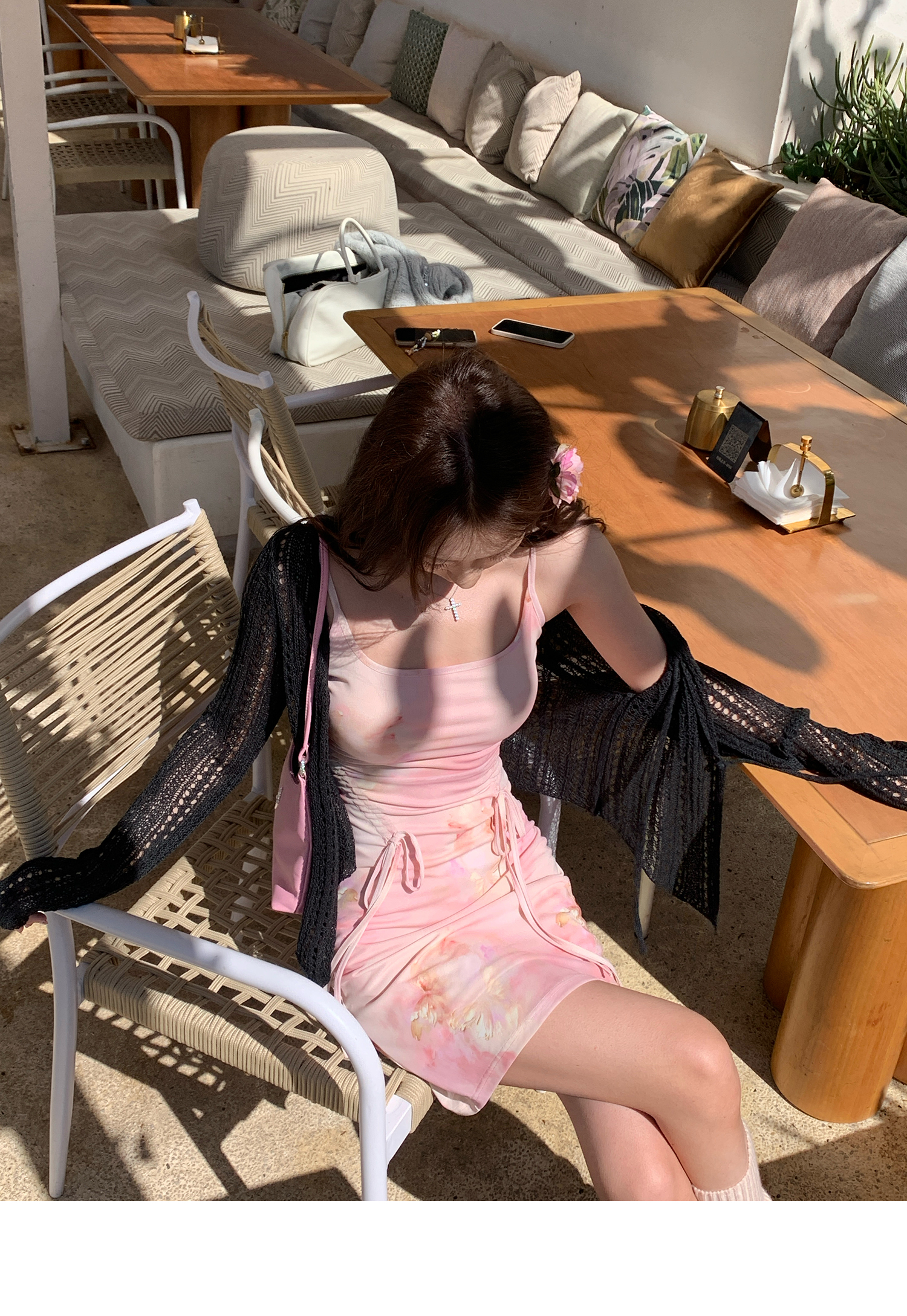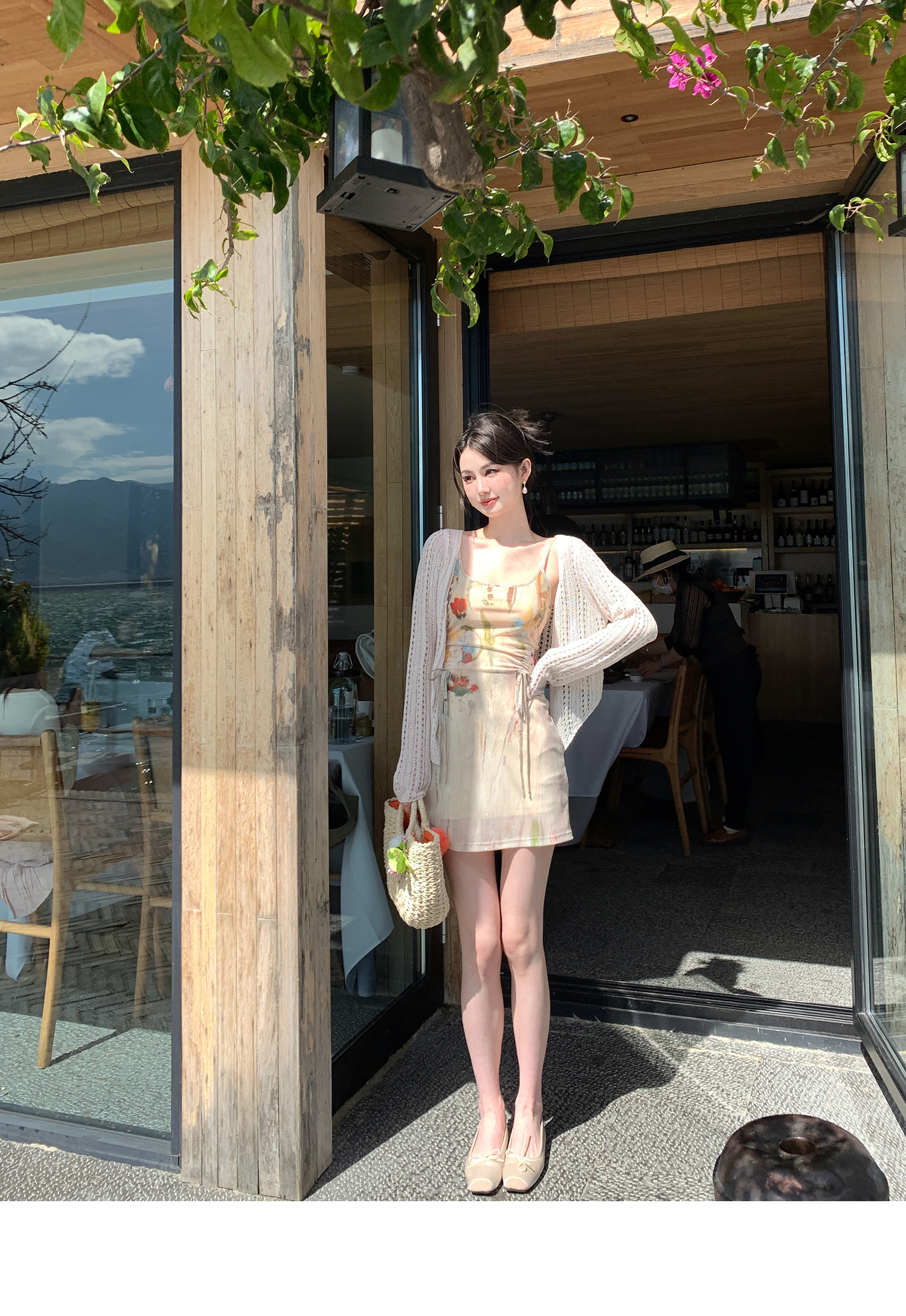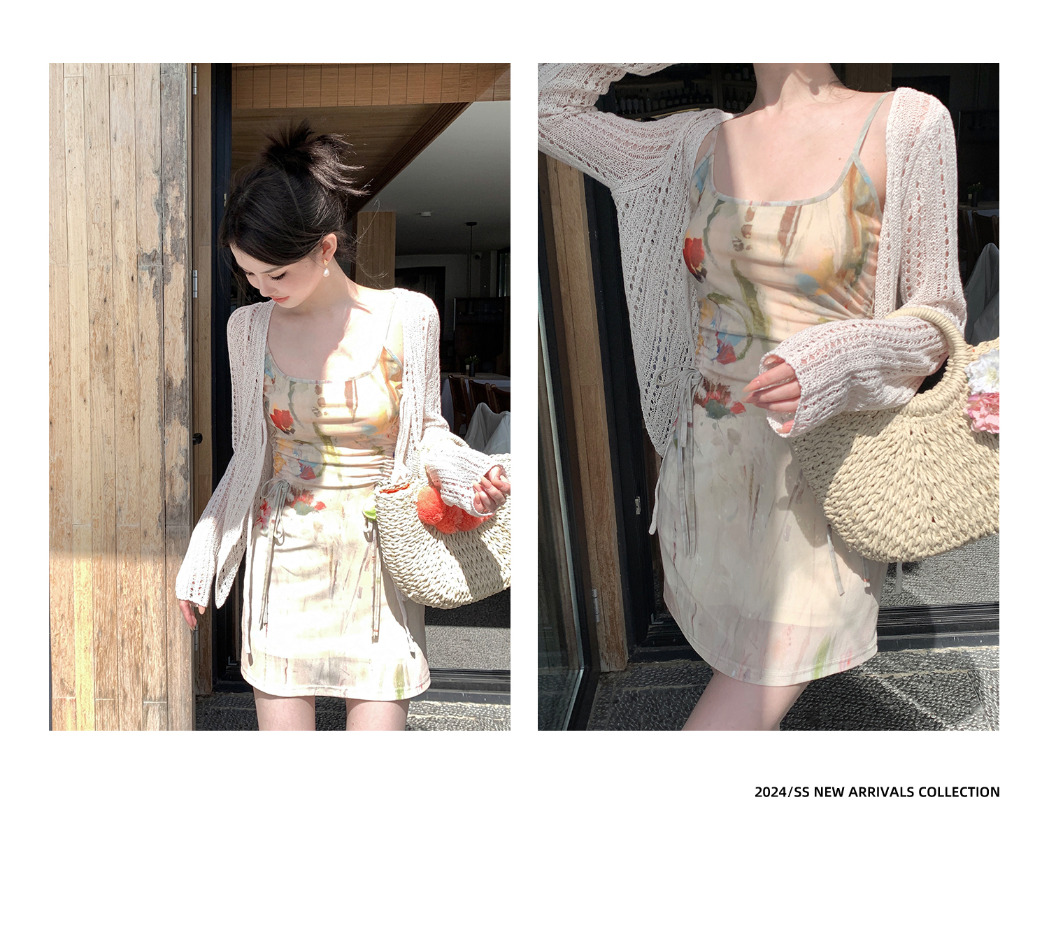 Chinese Mesh Camisole Floral Dress - Women's Slim Fit Spicy Girl Style