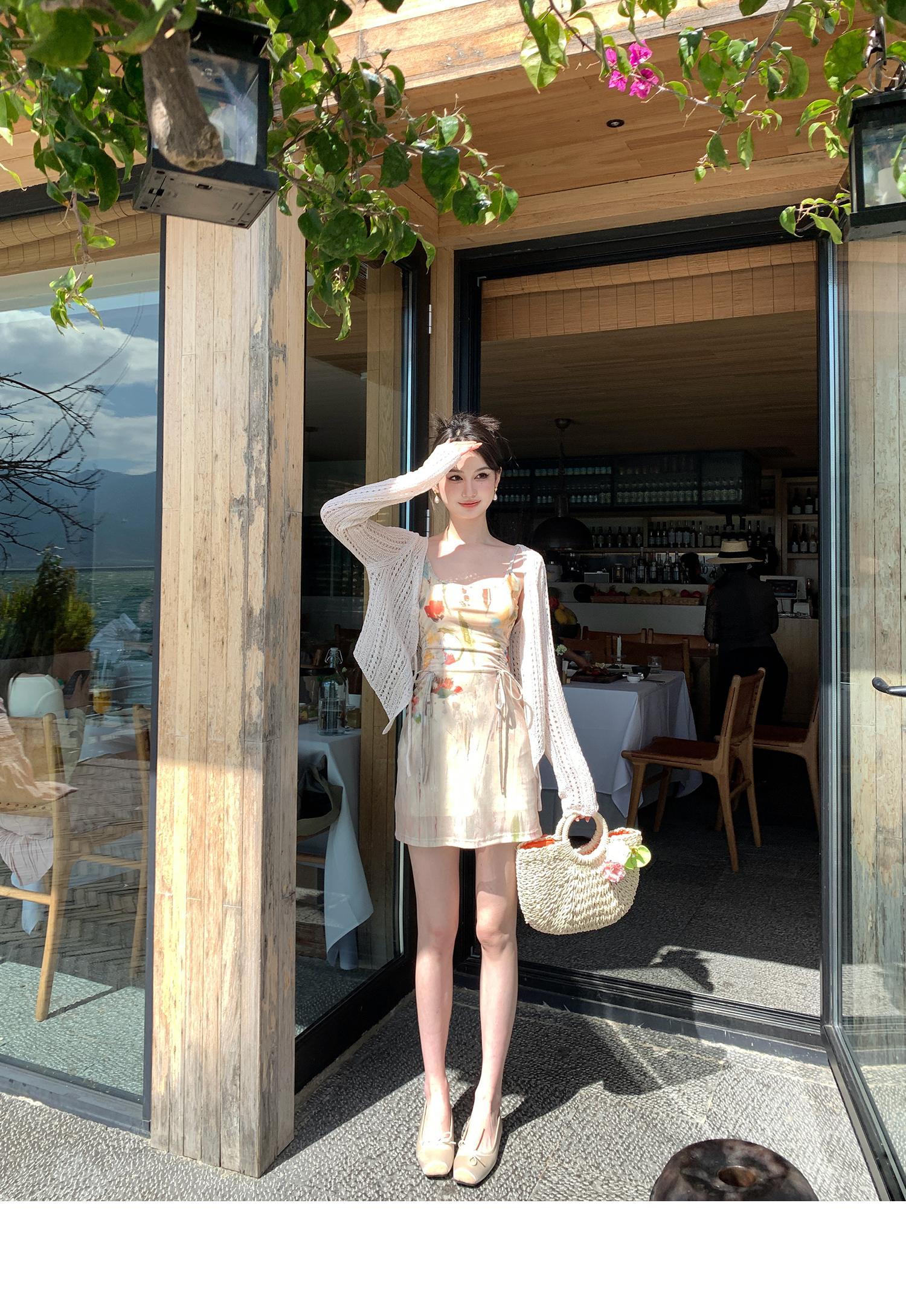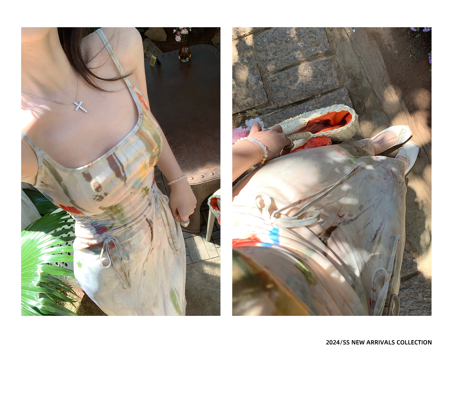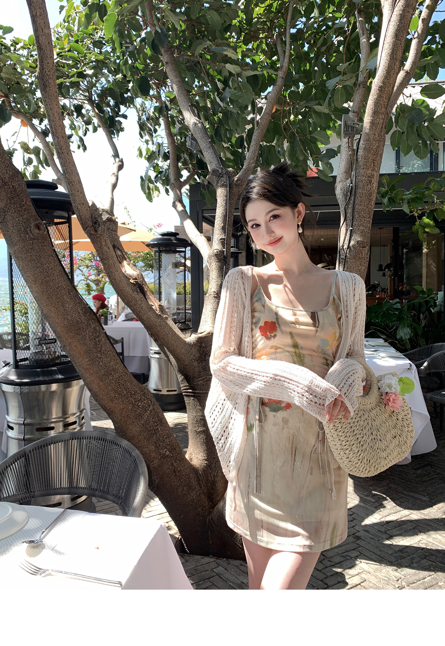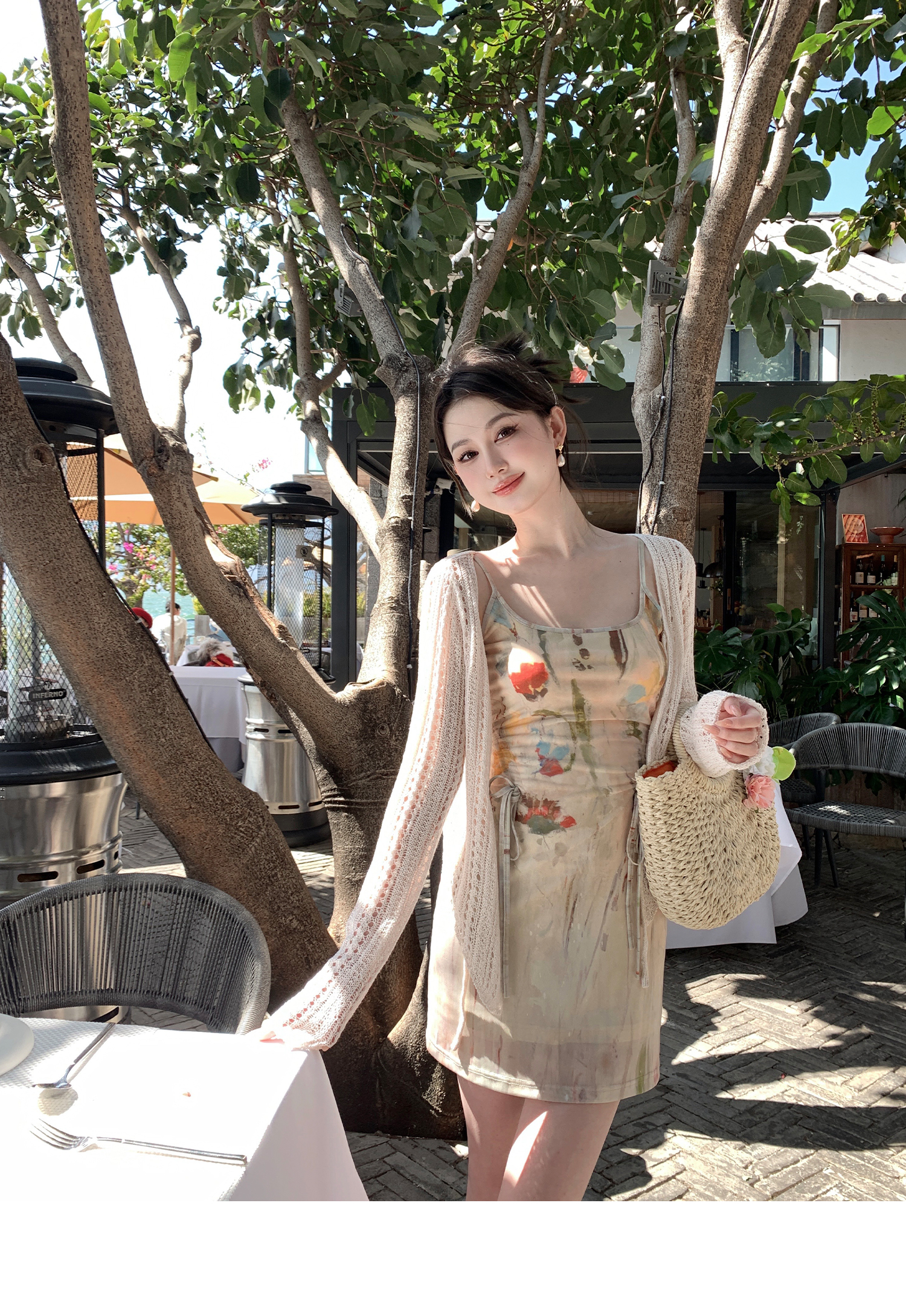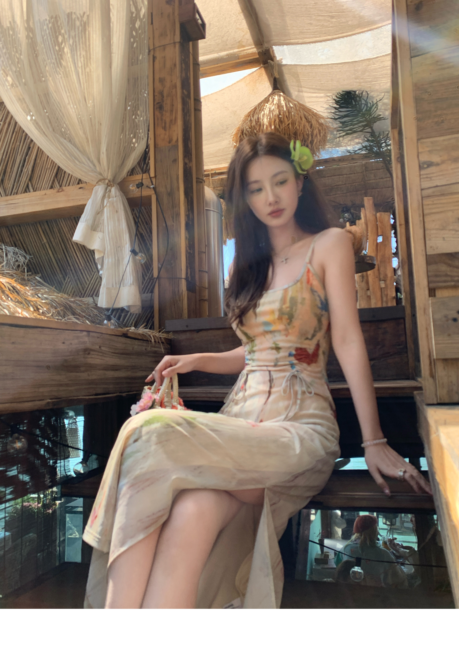 Chinese Mesh Camisole Floral Dress - Women's Slim Fit Spicy Girl Style