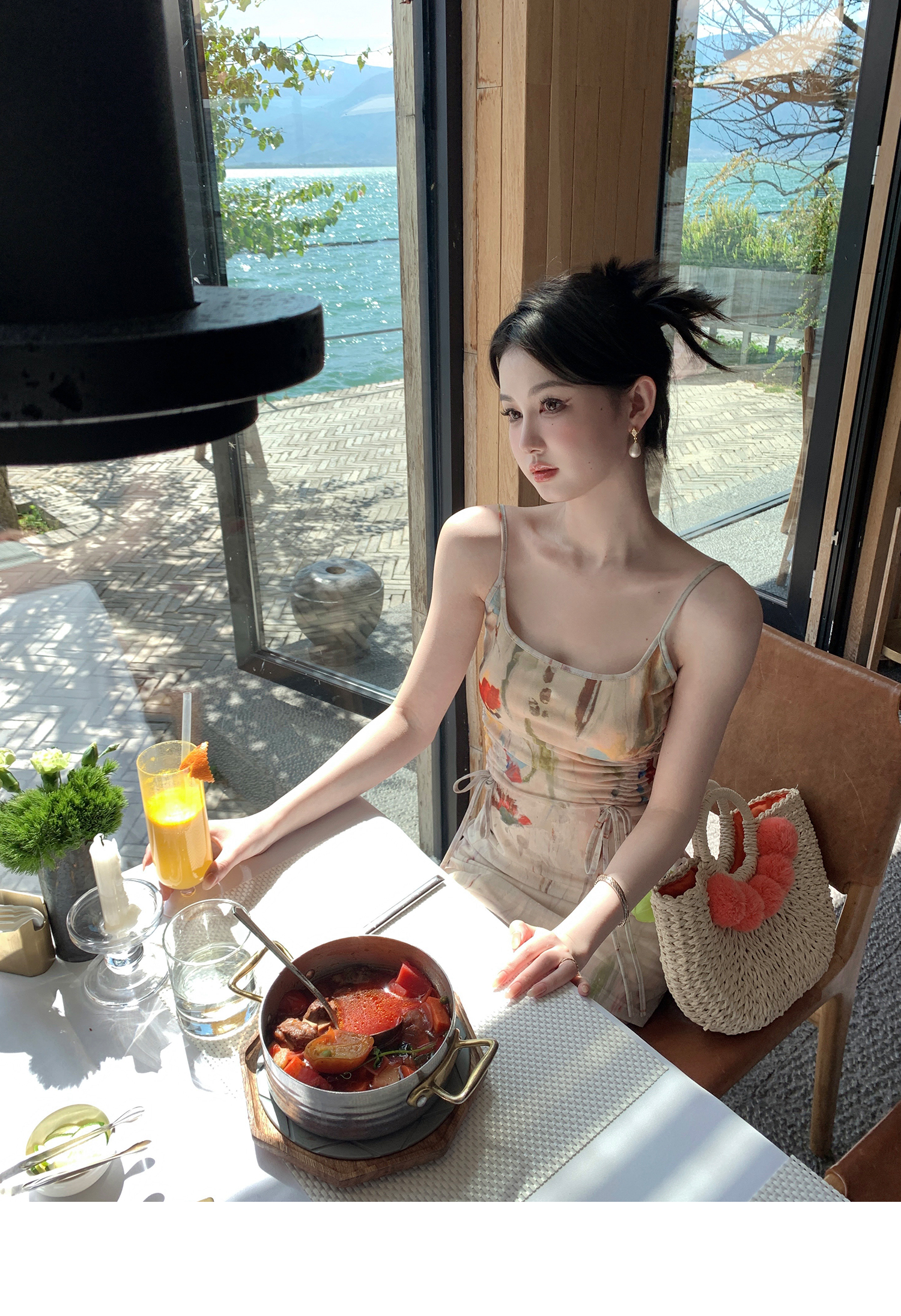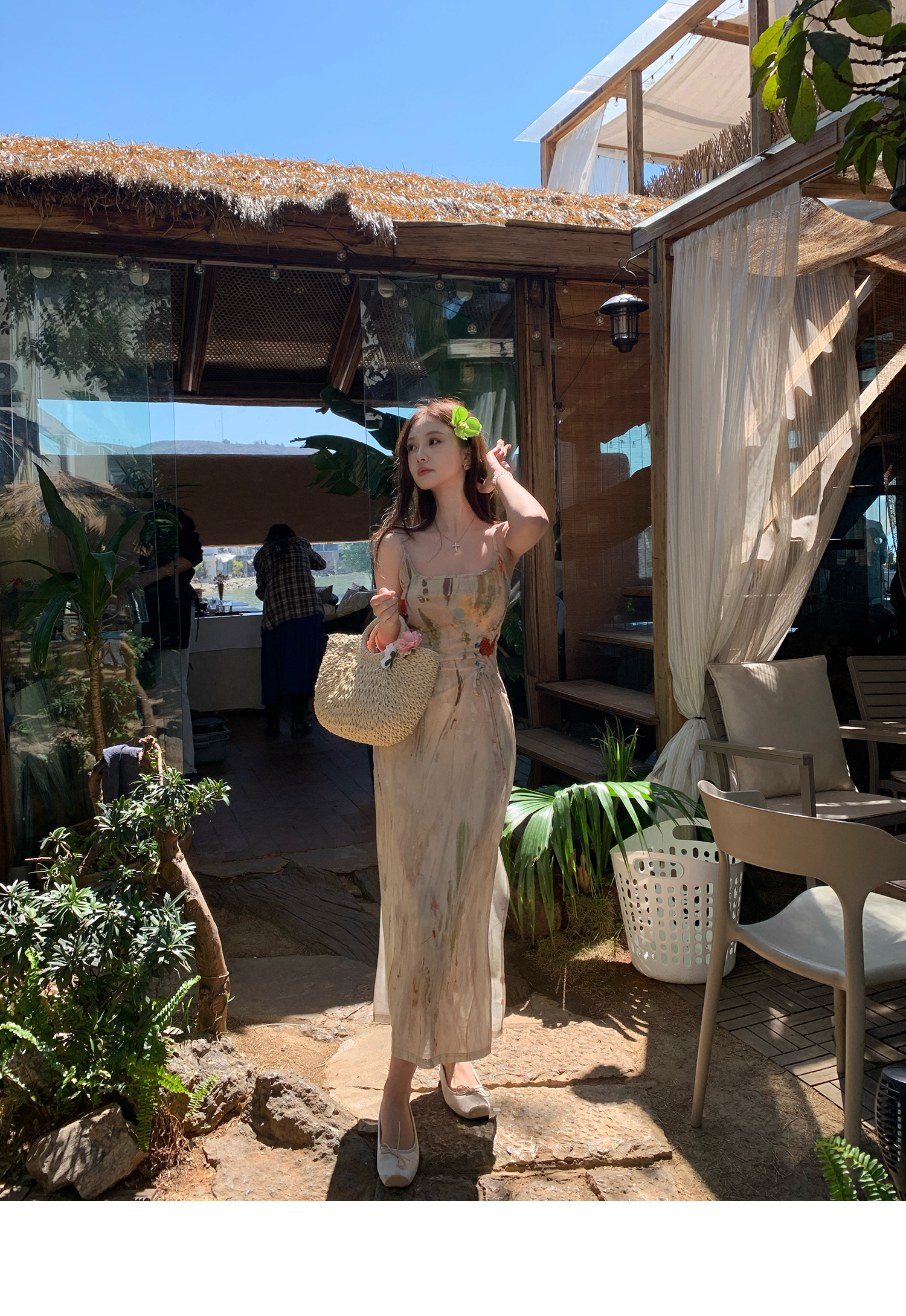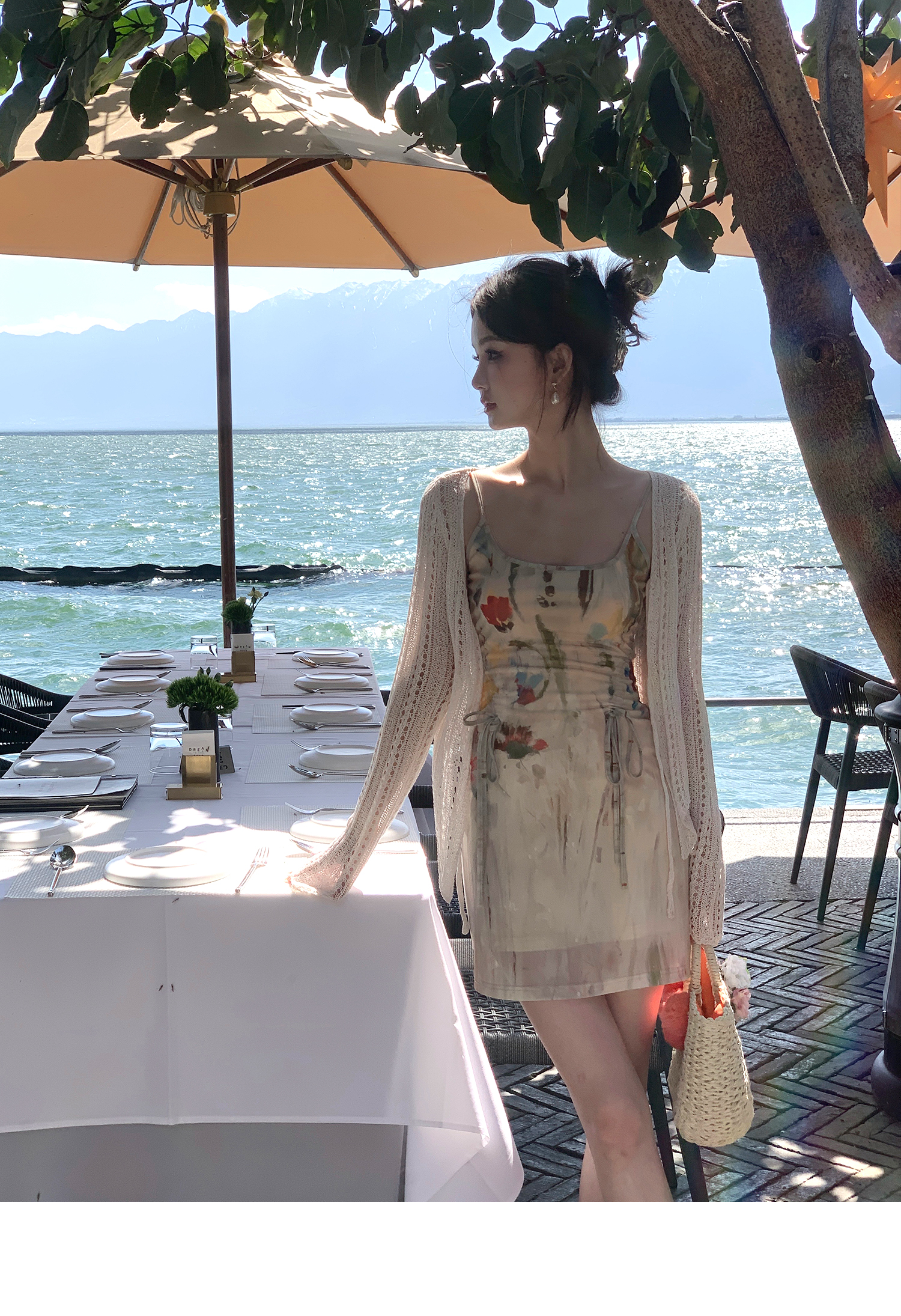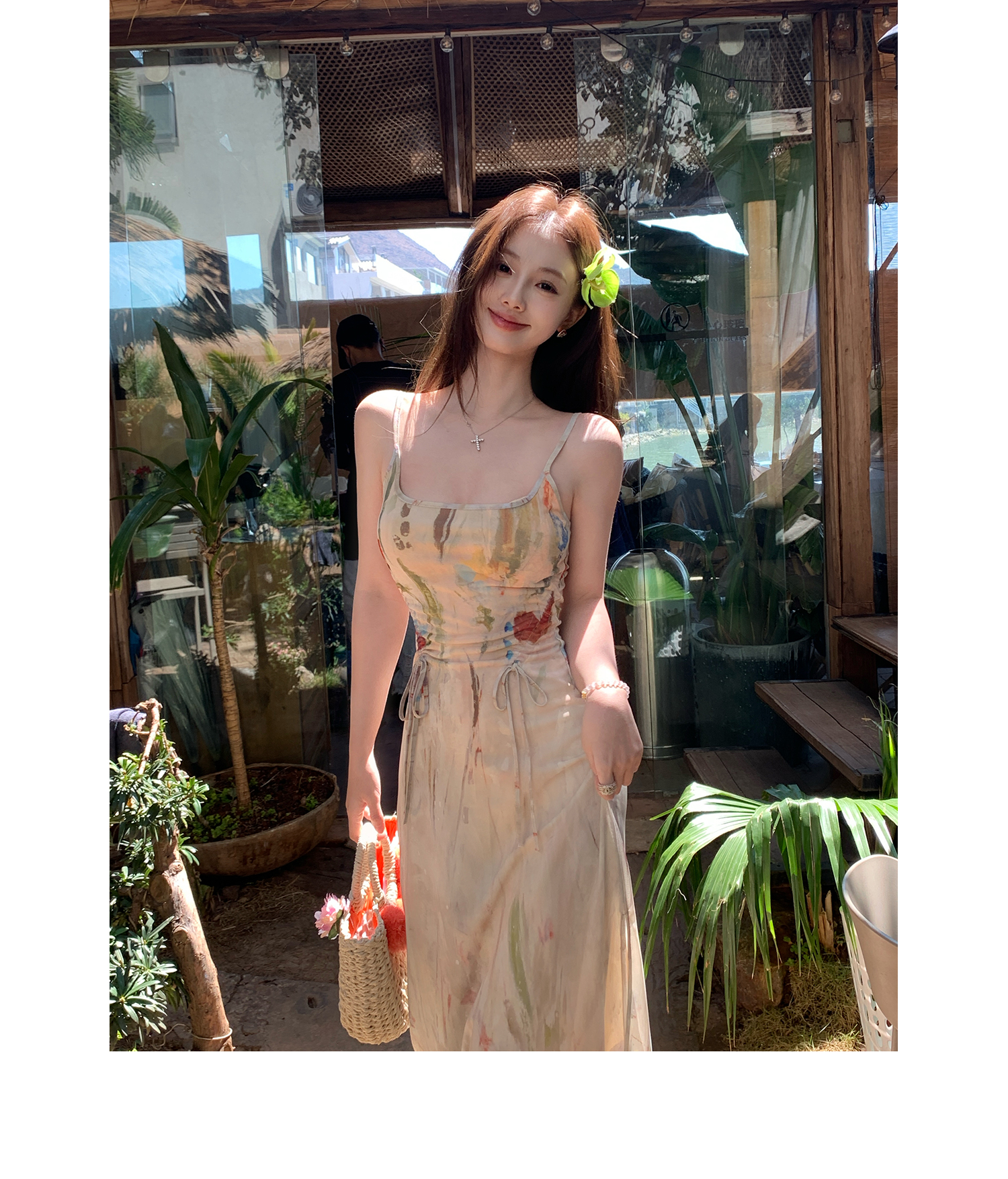 Chinese Mesh Camisole Floral Dress - Women's Slim Fit Spicy Girl Style