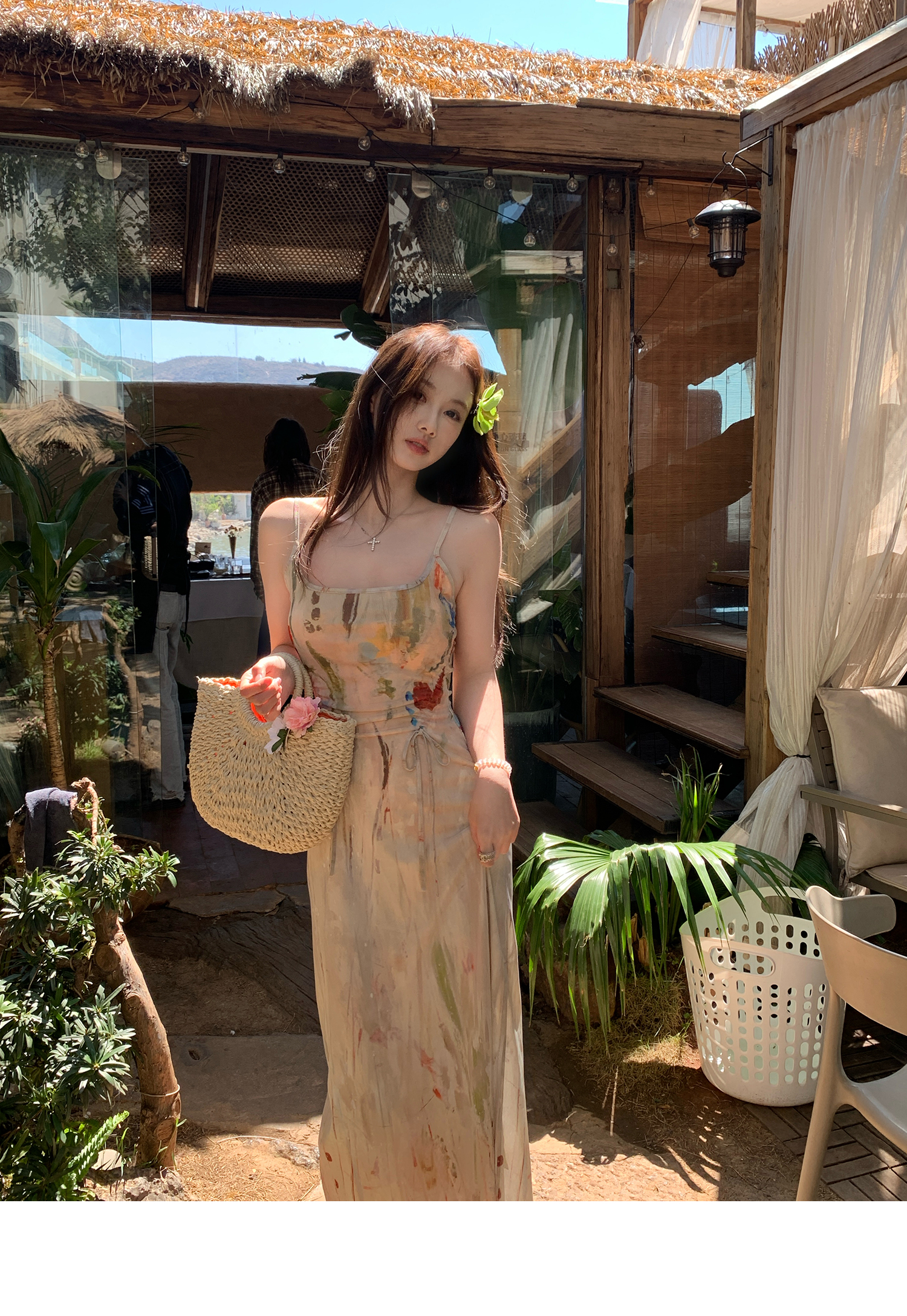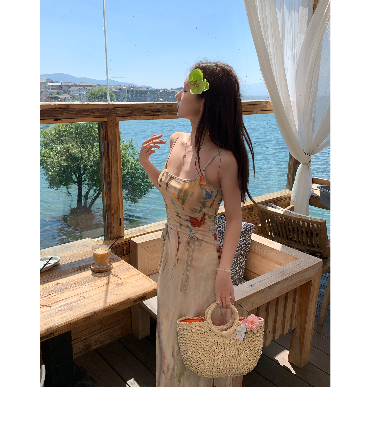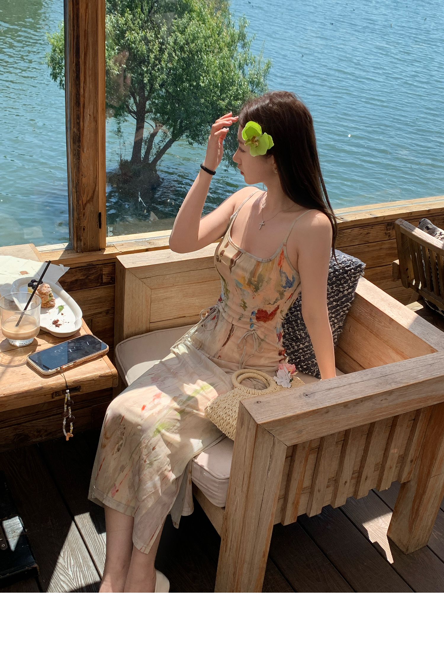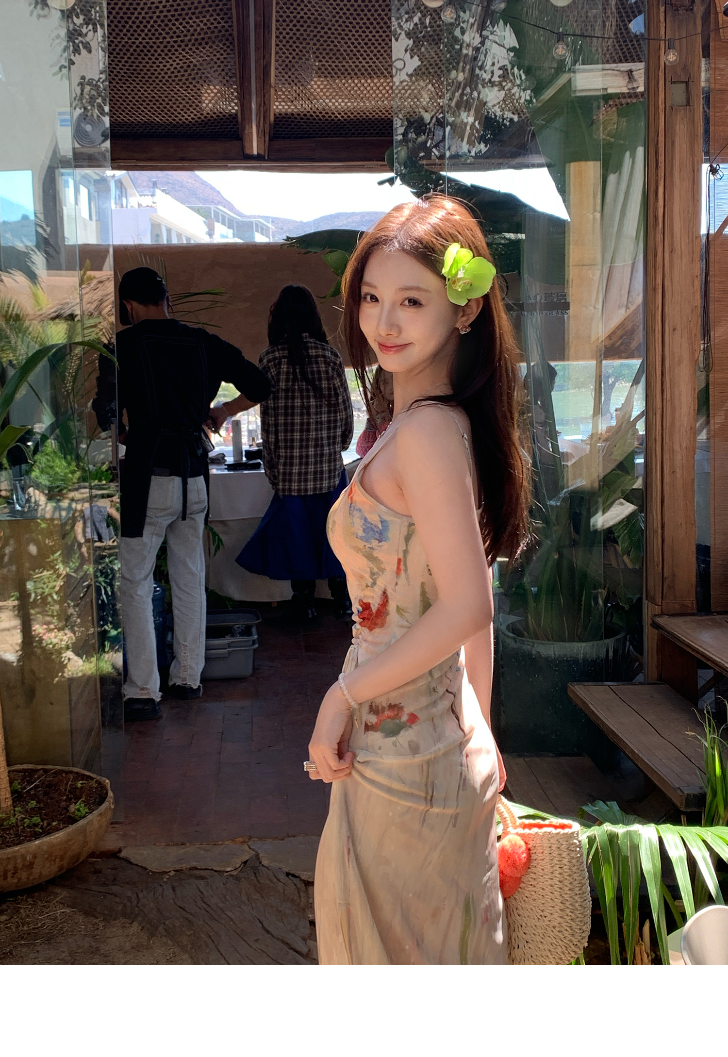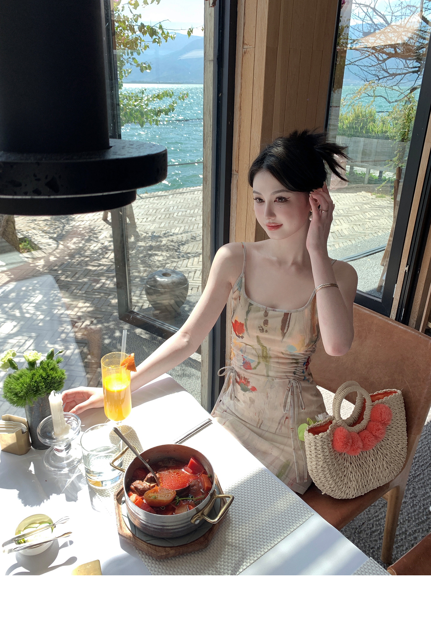 Chinese Mesh Camisole Floral Dress - Women's Slim Fit Spicy Girl Style