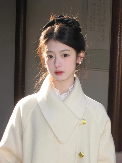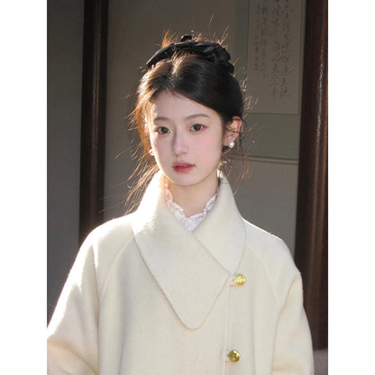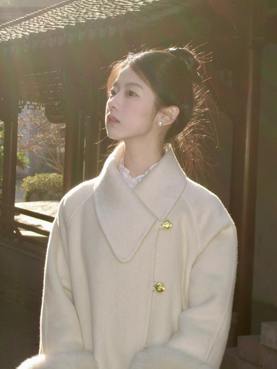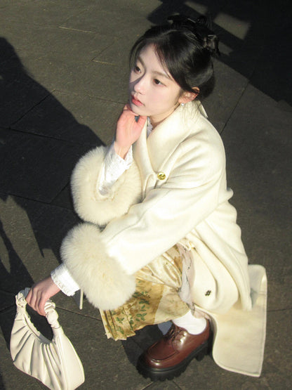 New Chinese Cashmere Coat – Mid-Length Tweed with Fox Fur Sleeves