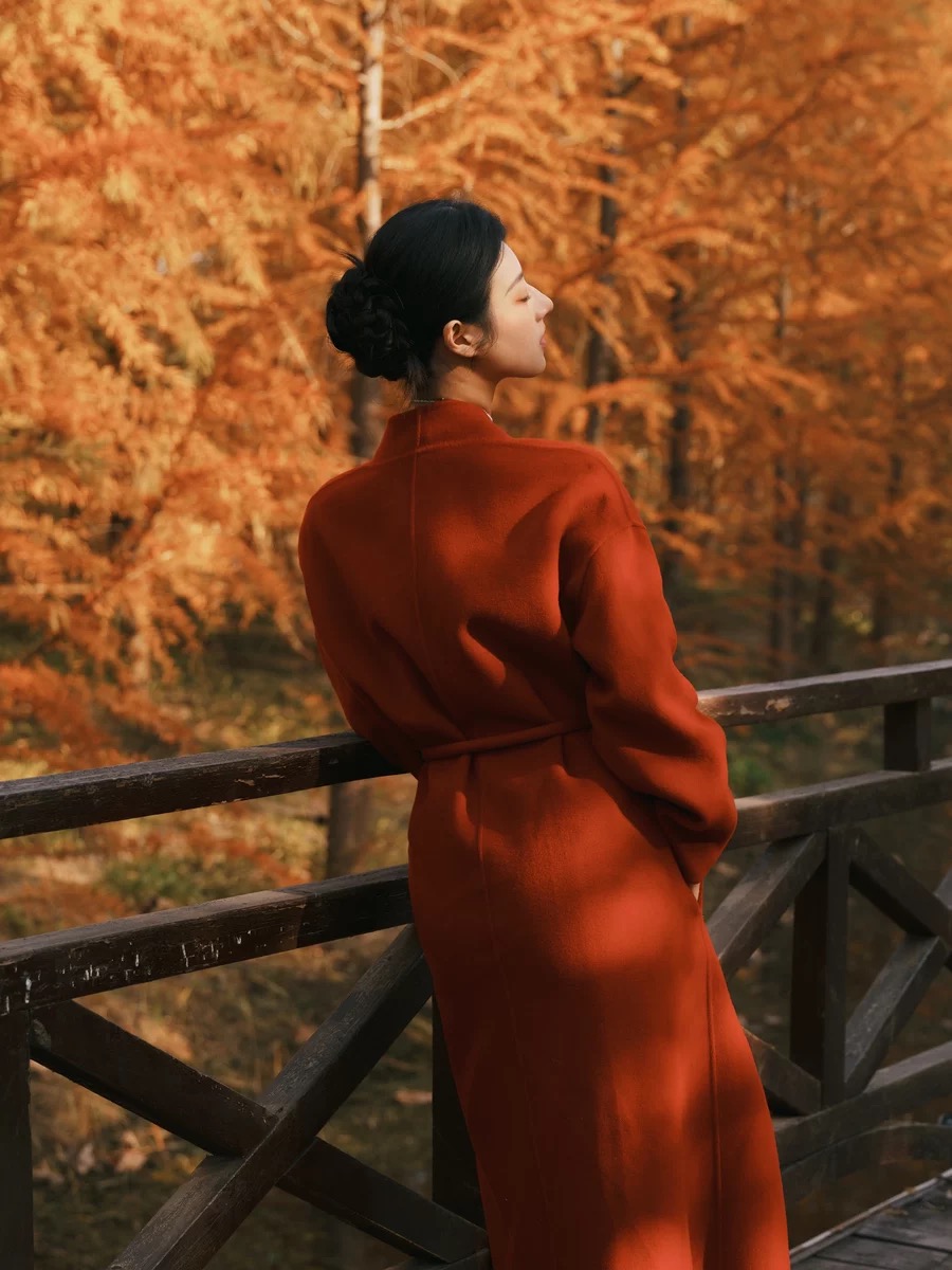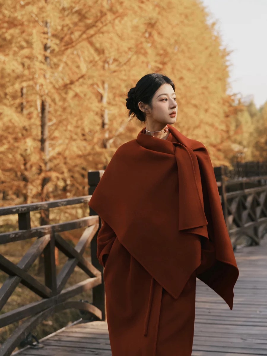 New Chinese Reversible Cashmere Coat – Mid-Length Shawl Wool Jacket