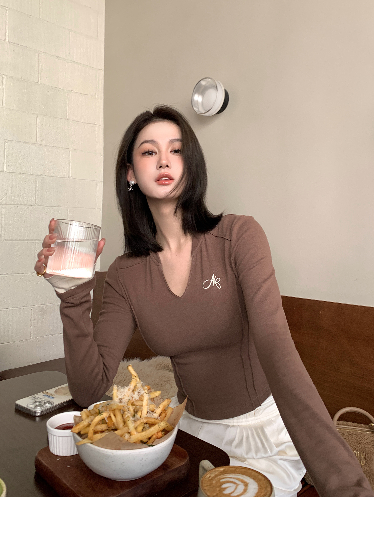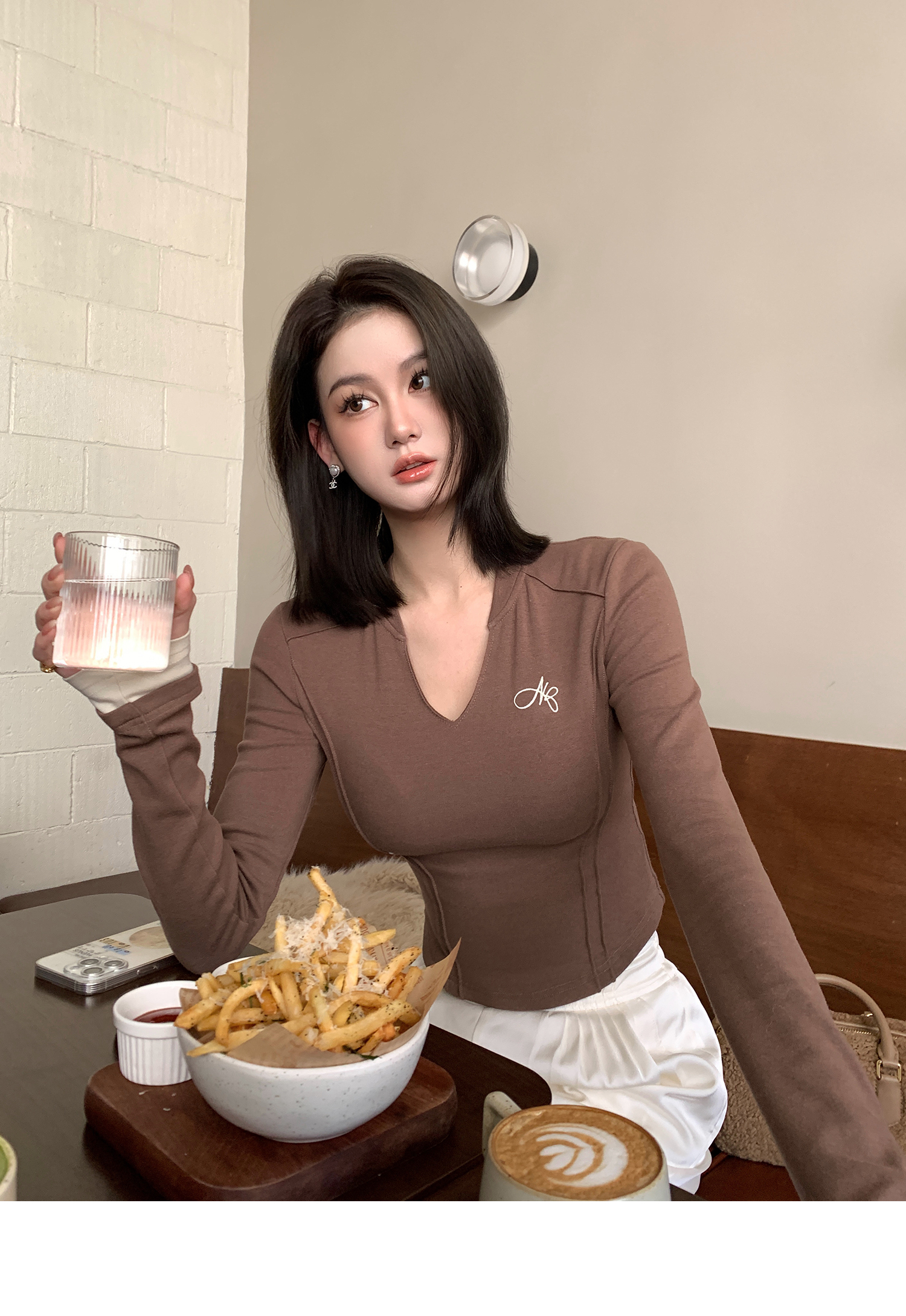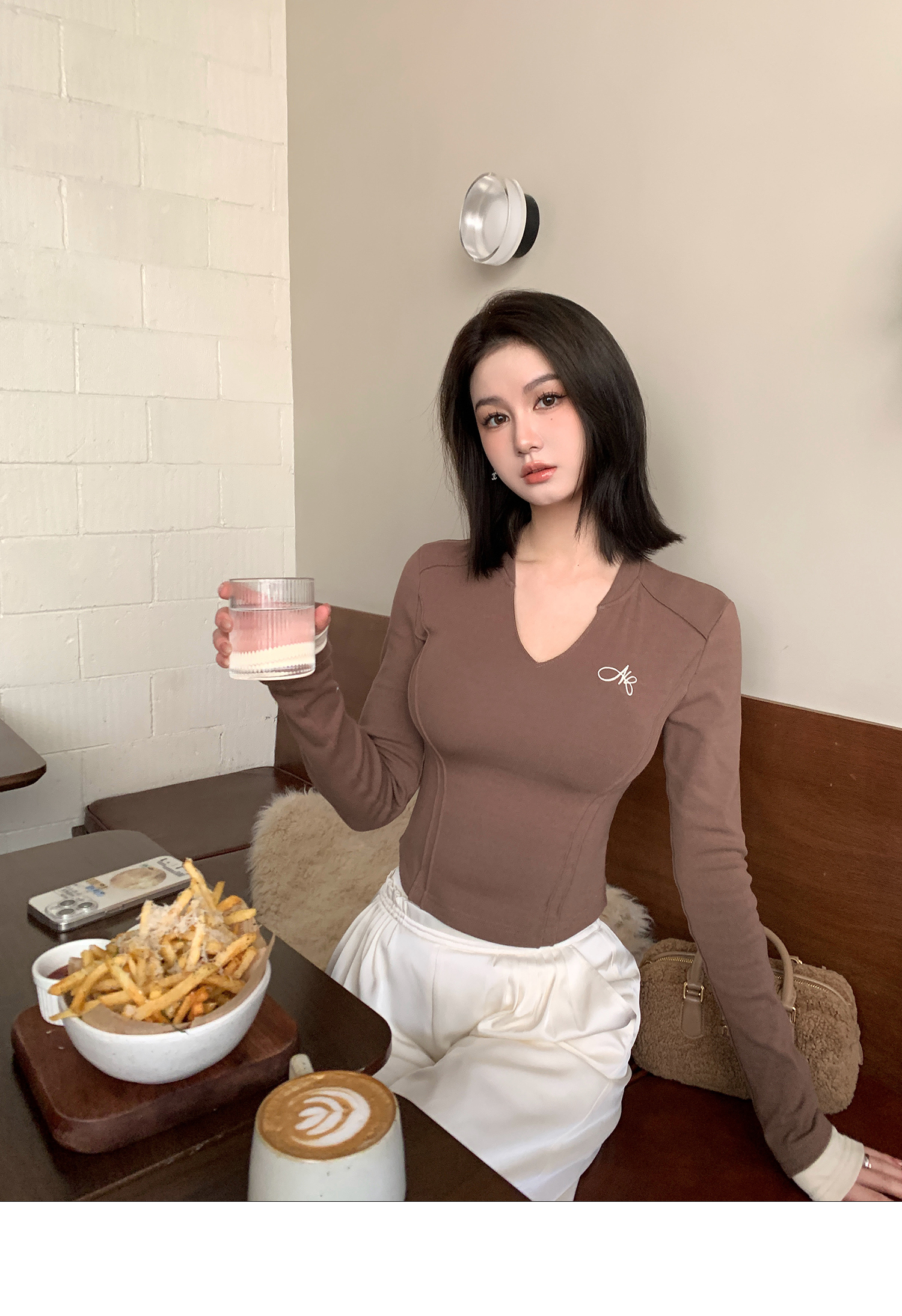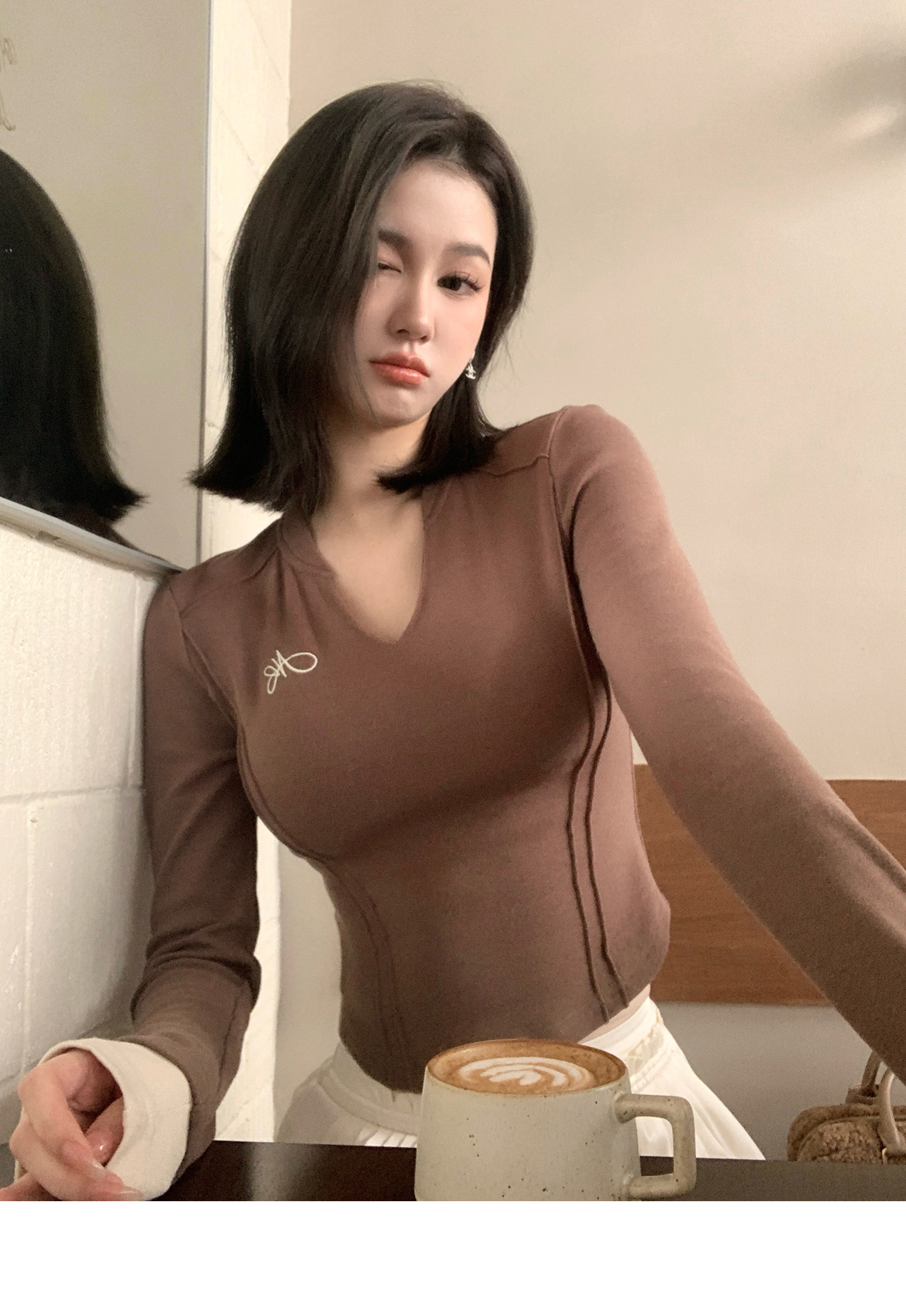 Niche Design V-Neck Long-Sleeve T-Shirt - Sweet & Spicy Autumn Base Layer