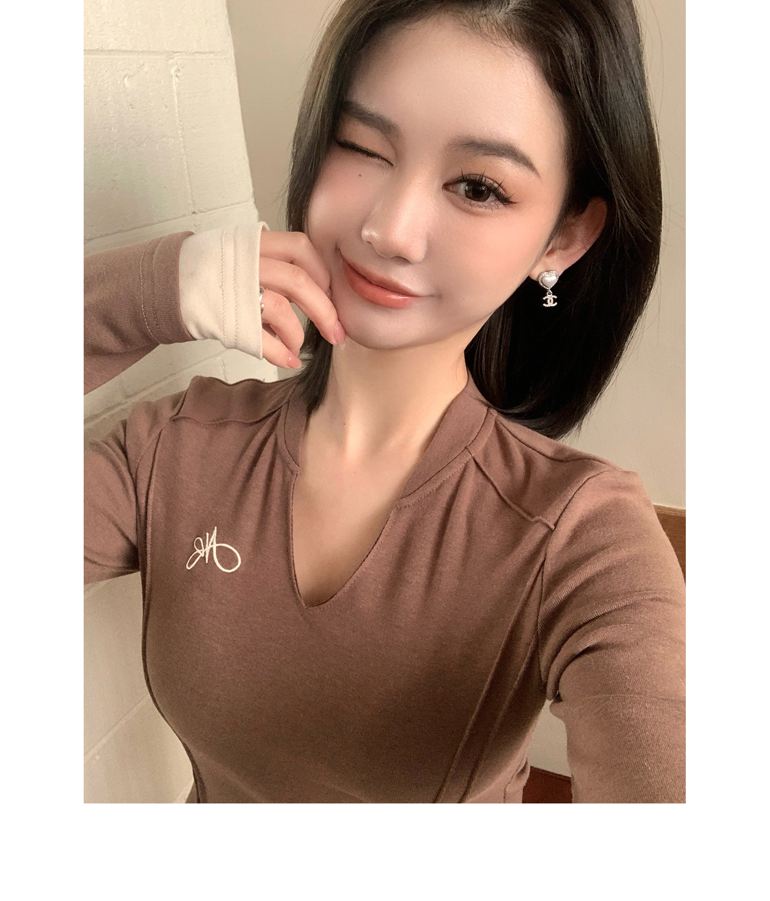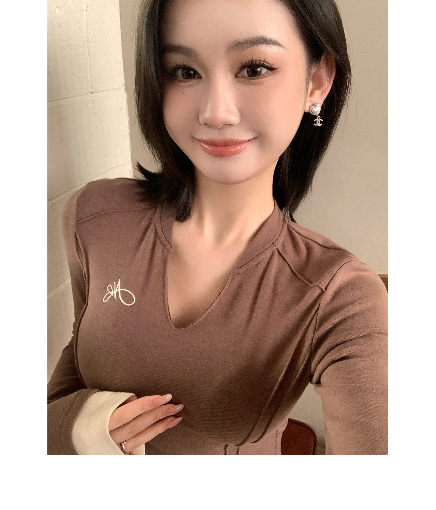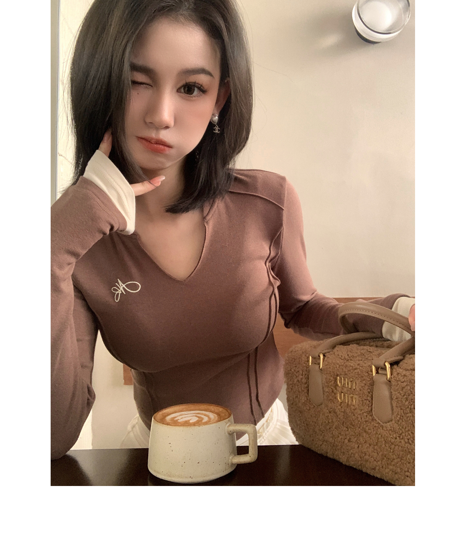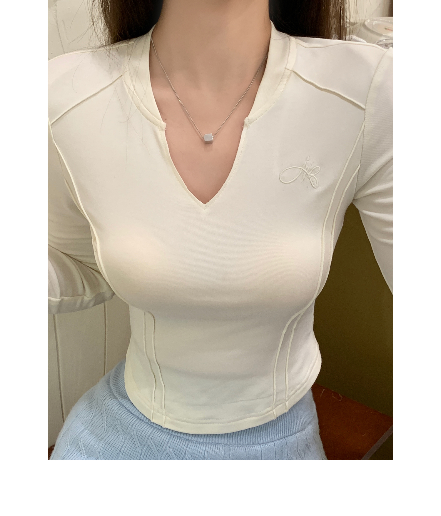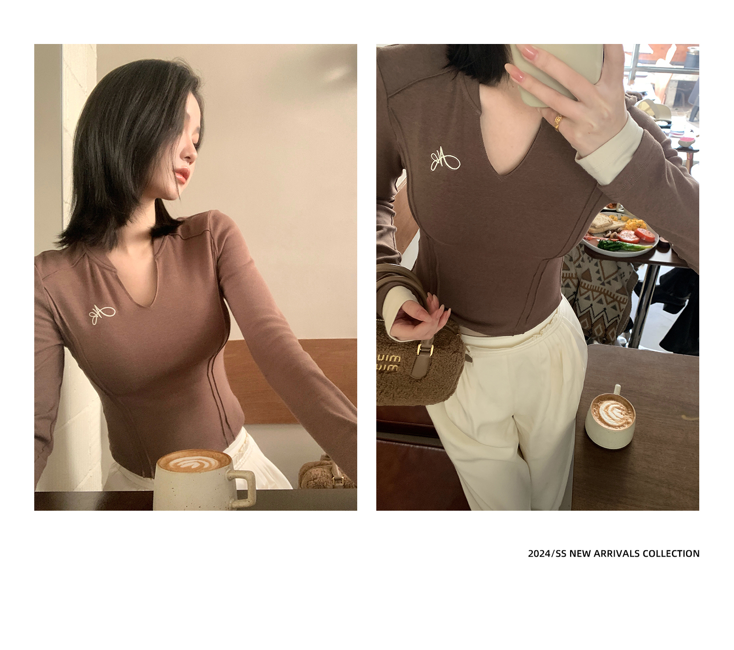 Niche Design V-Neck Long-Sleeve T-Shirt - Sweet & Spicy Autumn Base Layer