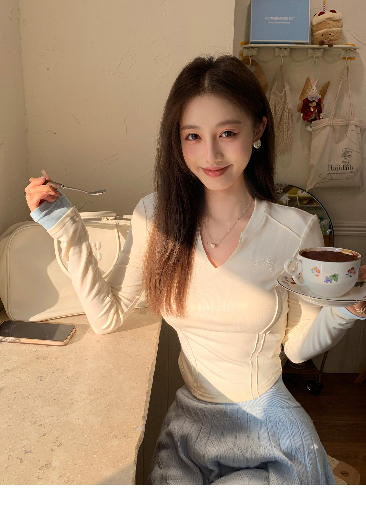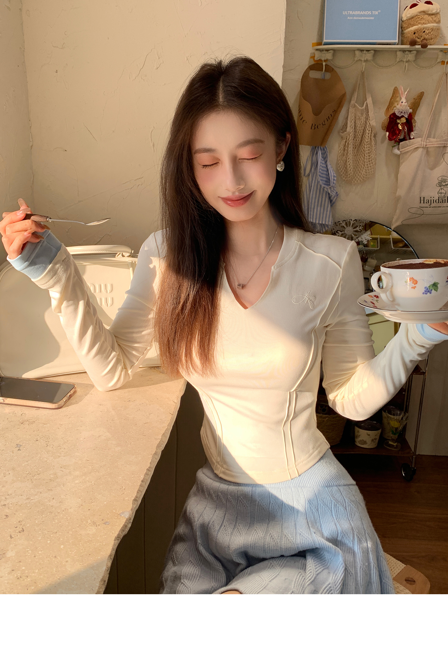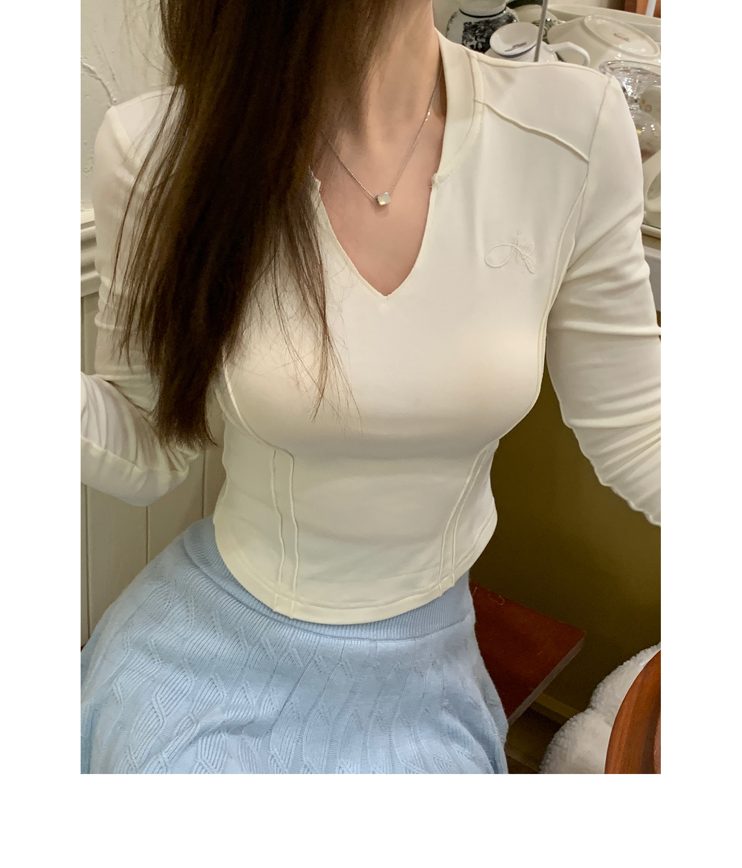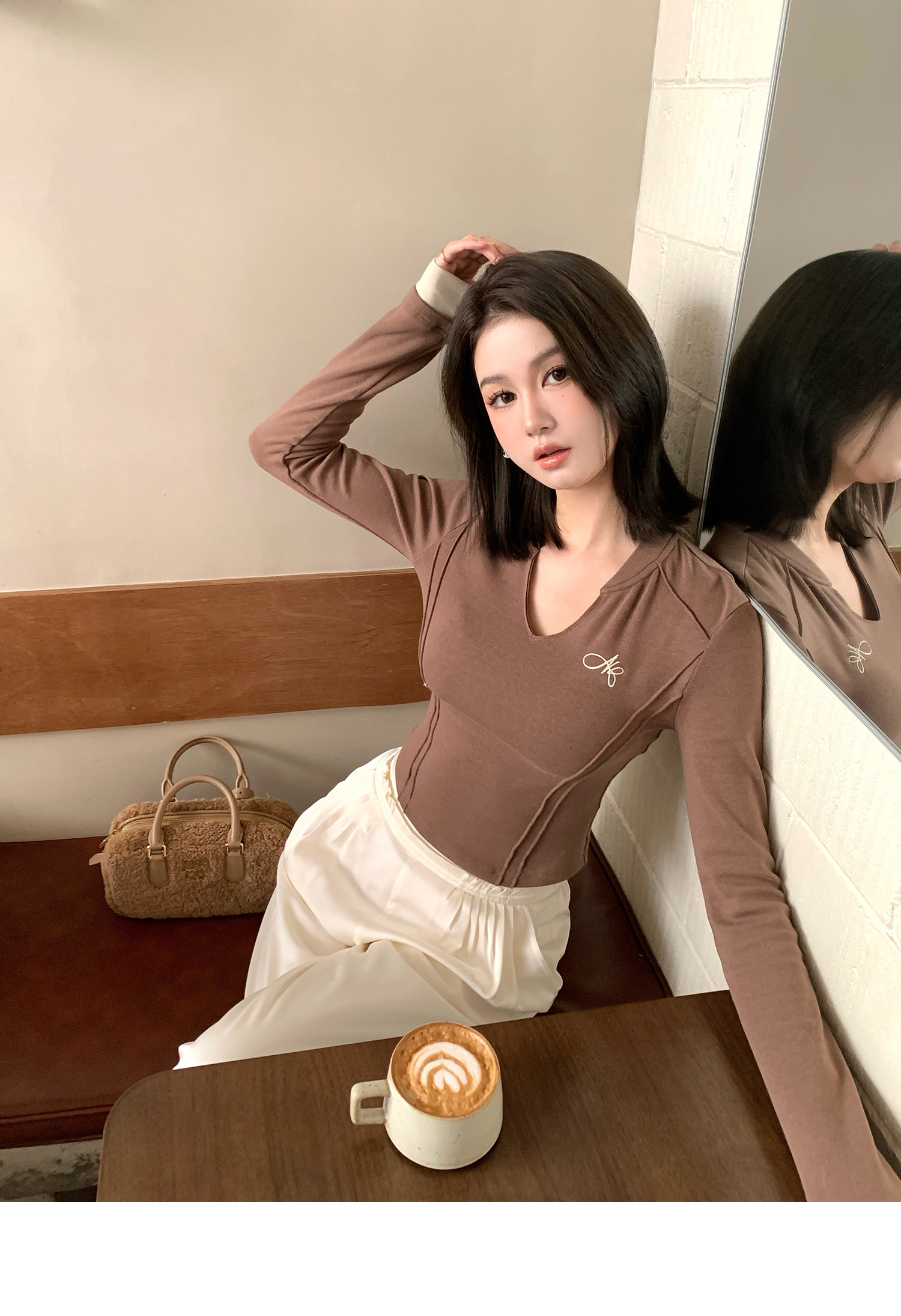 Niche Design V-Neck Long-Sleeve T-Shirt - Sweet & Spicy Autumn Base Layer