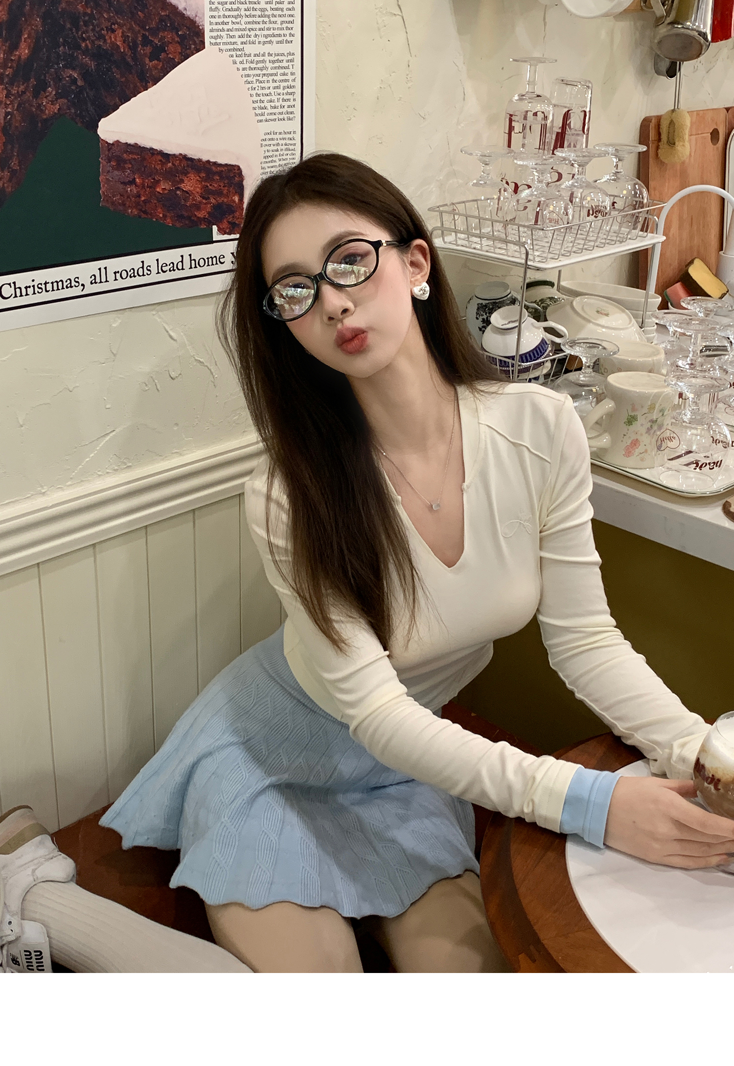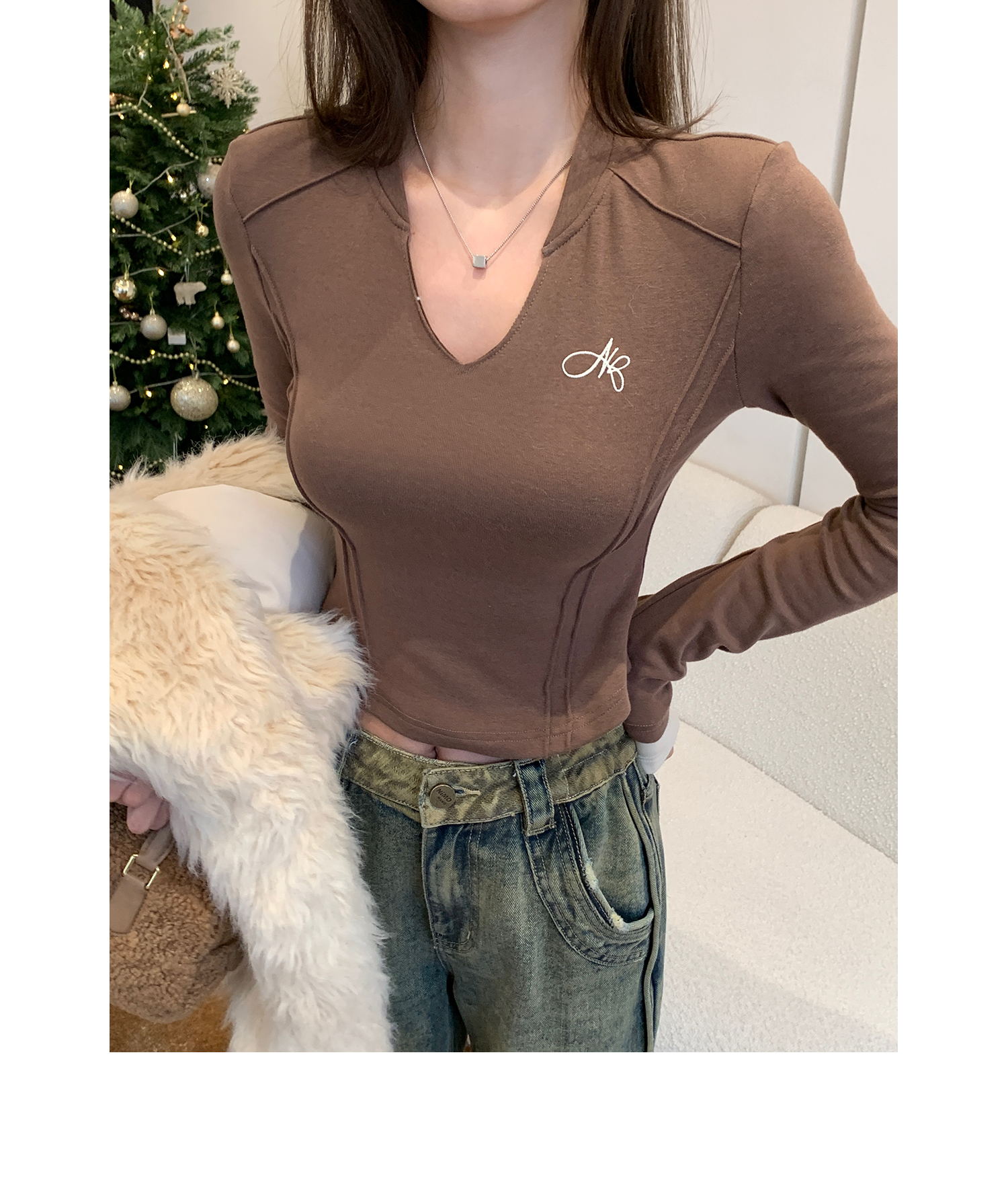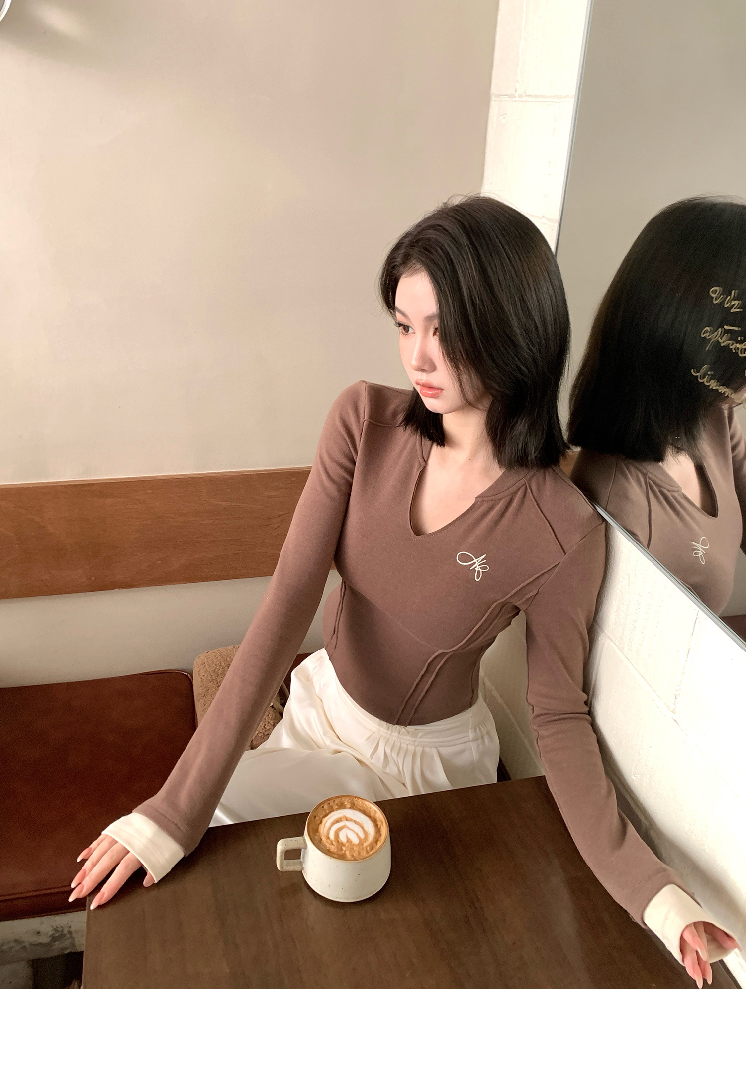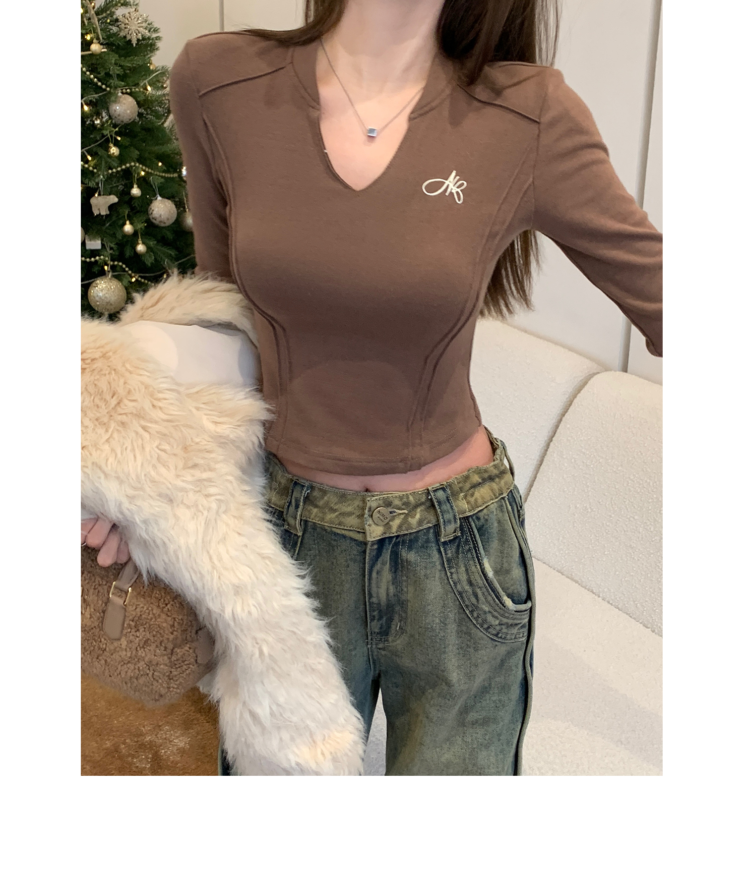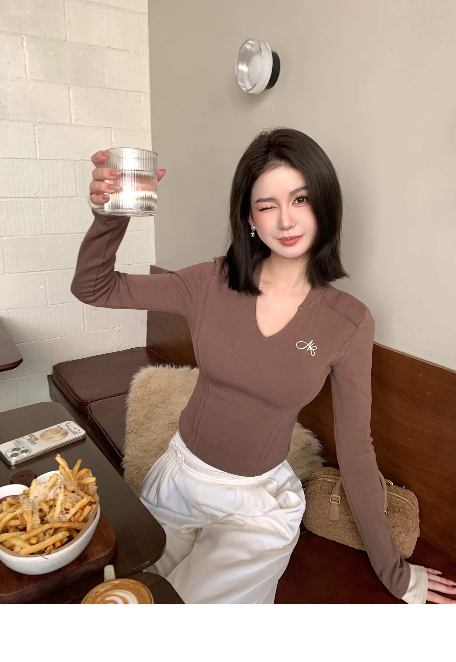 Niche Design V-Neck Long-Sleeve T-Shirt - Sweet & Spicy Autumn Base Layer