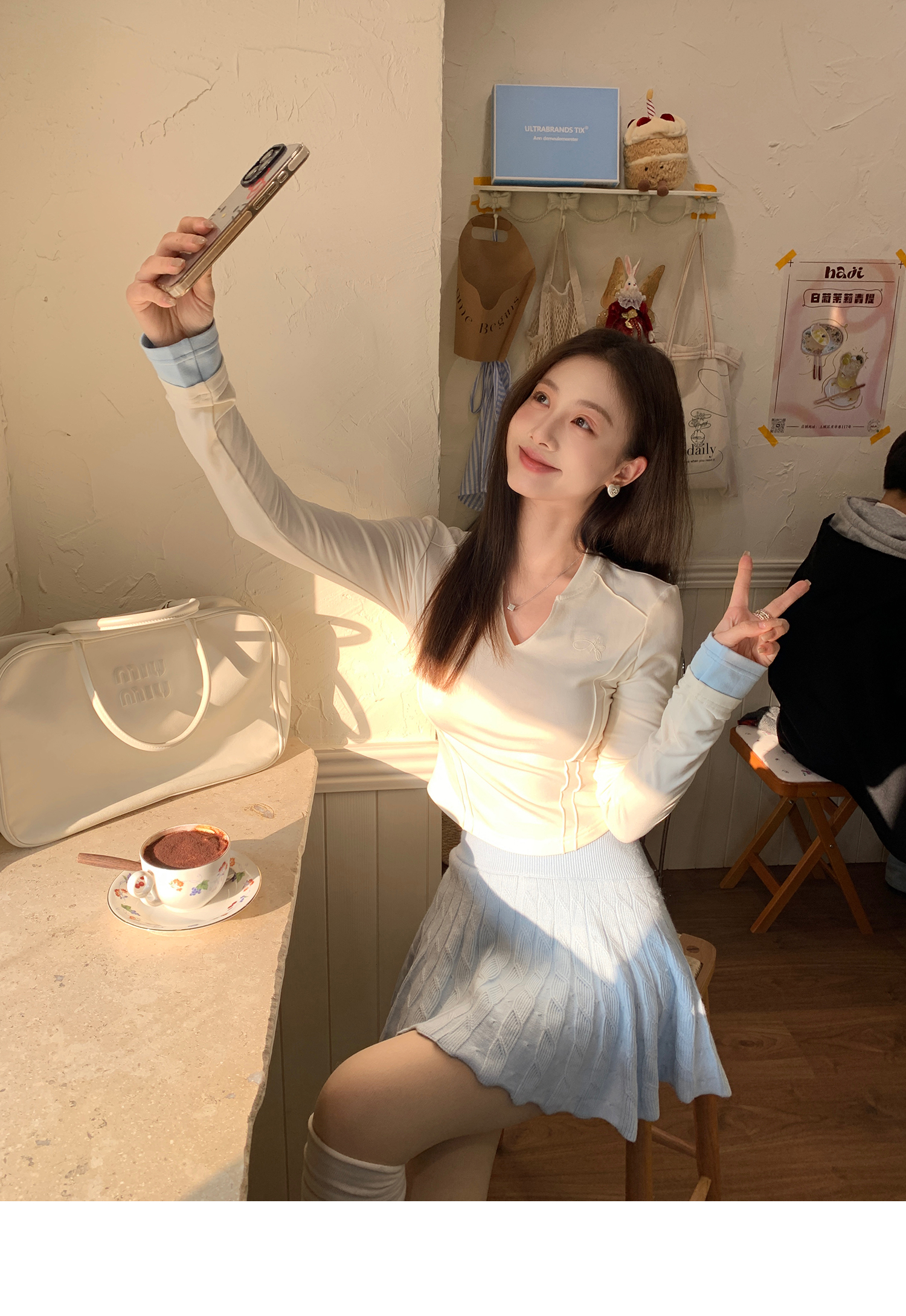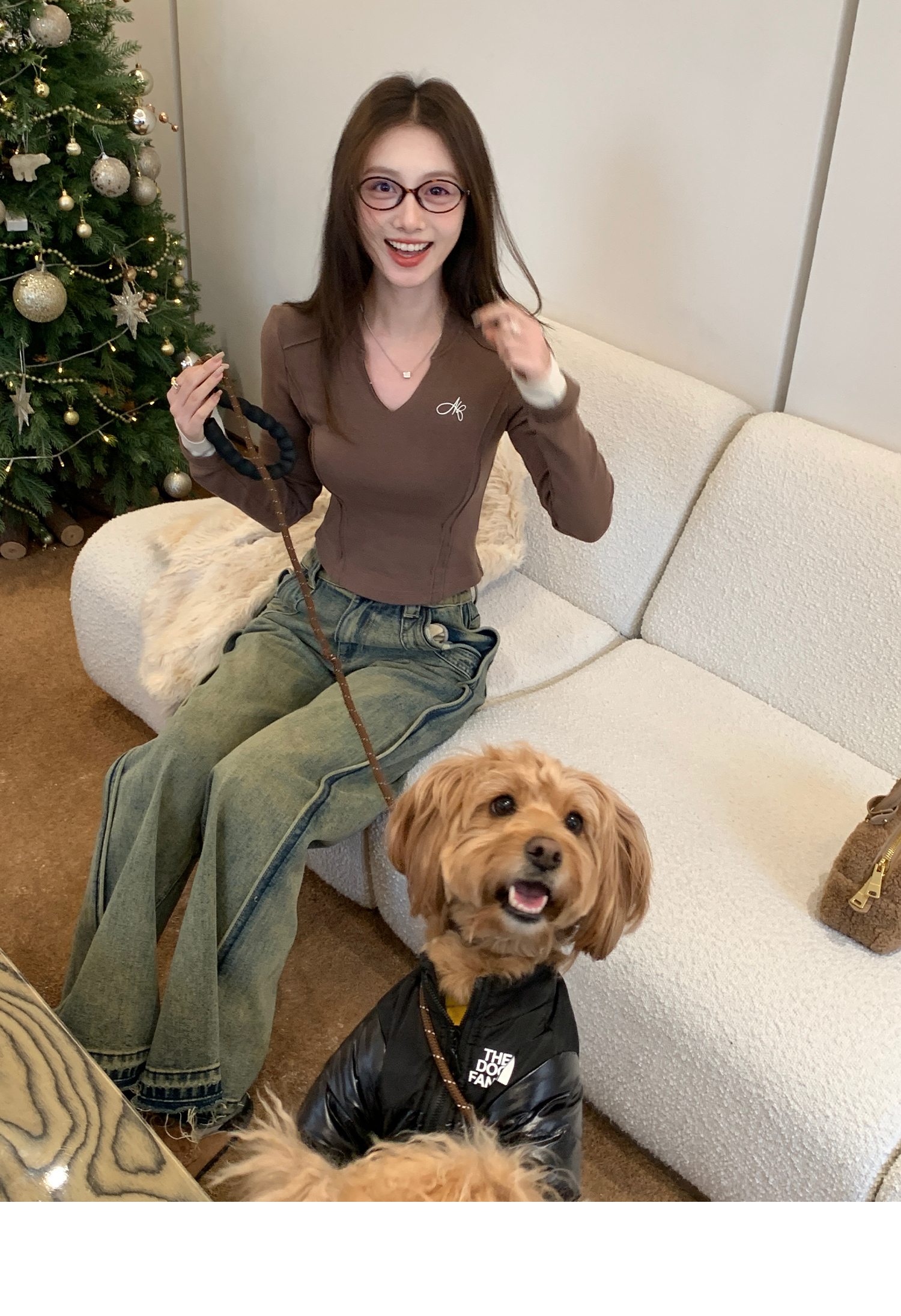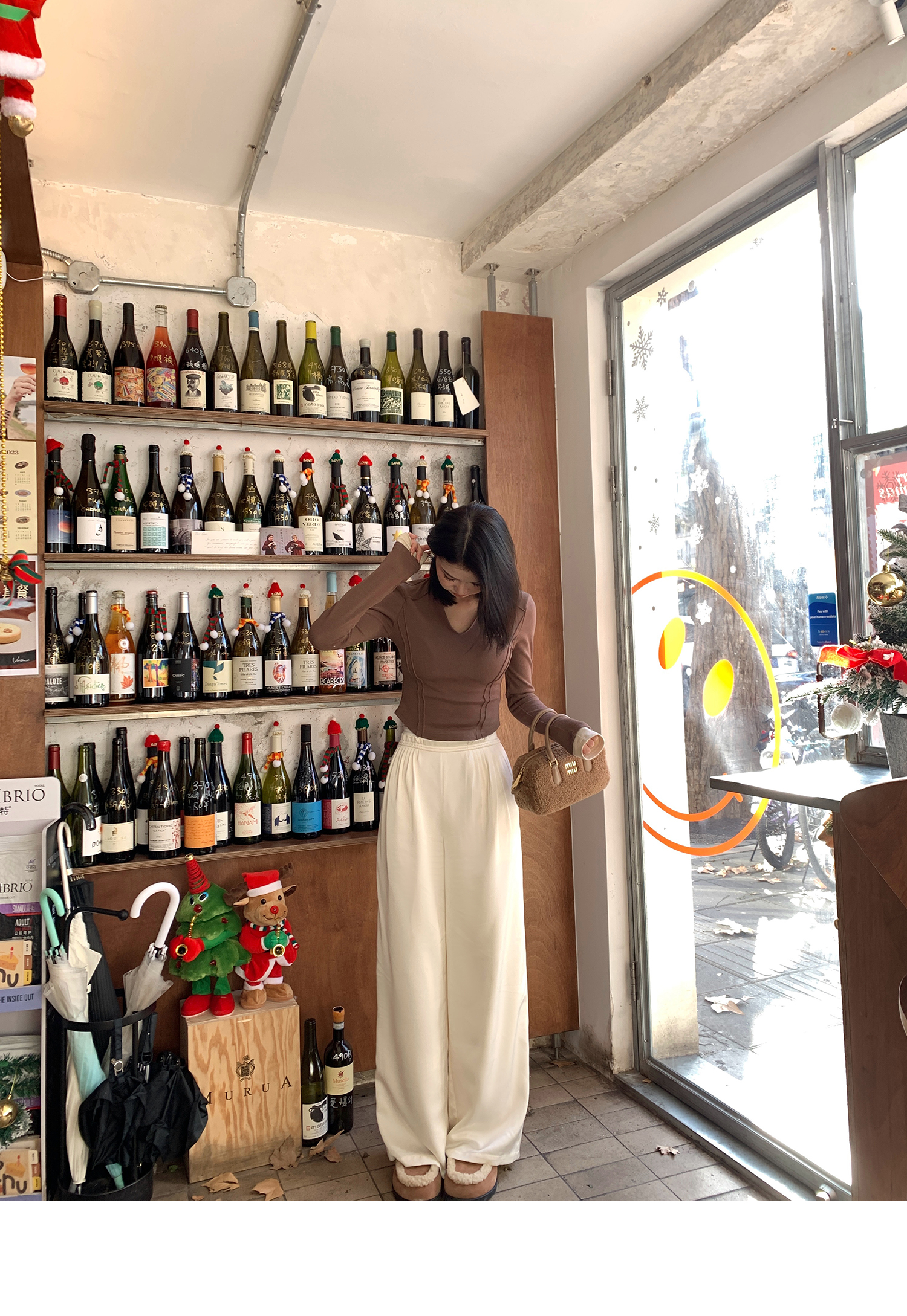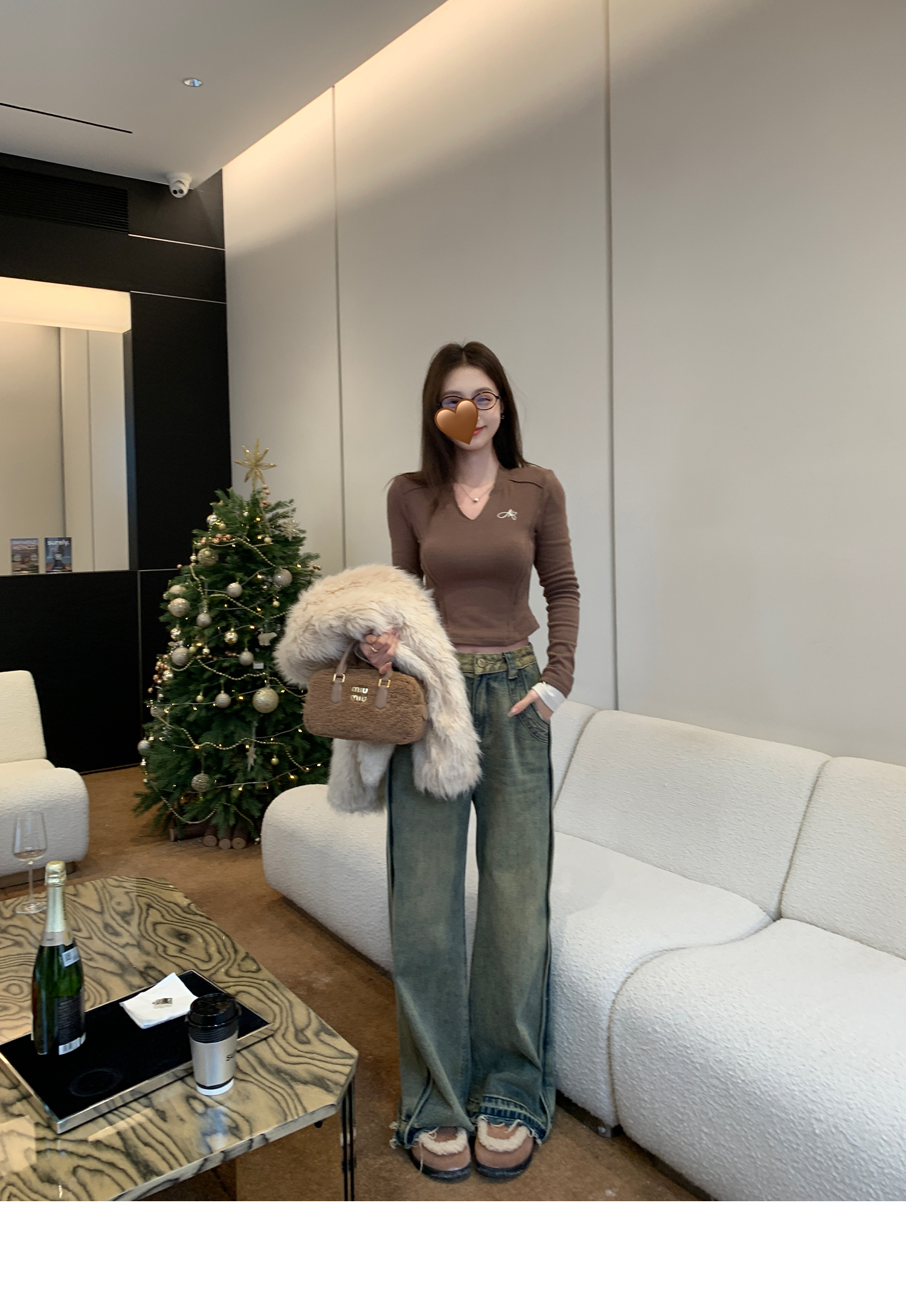 Niche Design V-Neck Long-Sleeve T-Shirt - Sweet & Spicy Autumn Base Layer