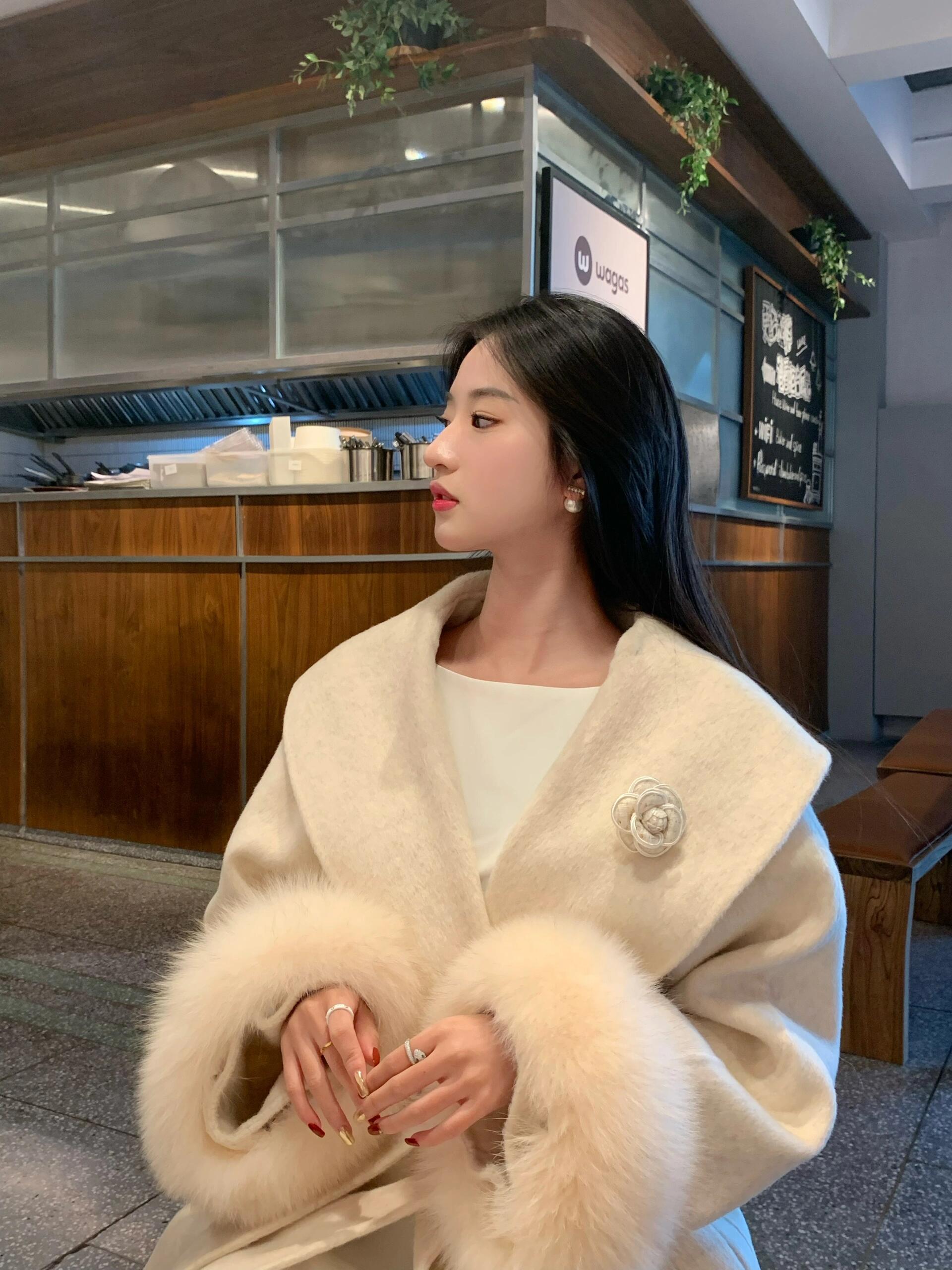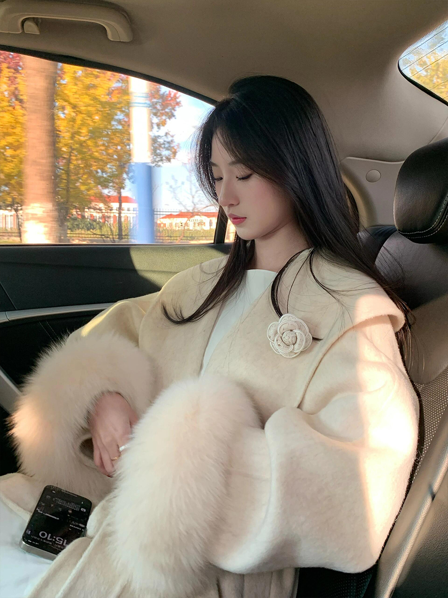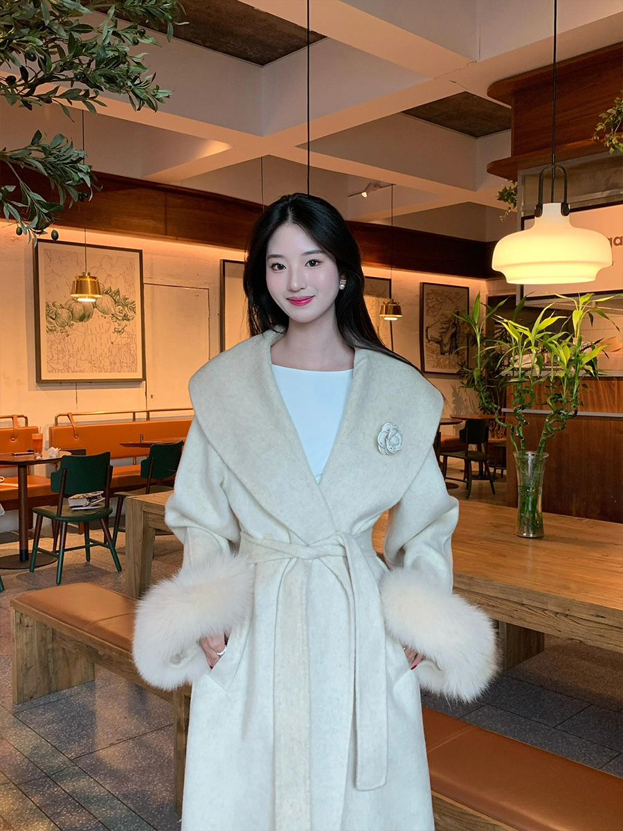 Off-White Double-Faced Cashmere Coat – Luxurious Fox Fur Wool Jacket