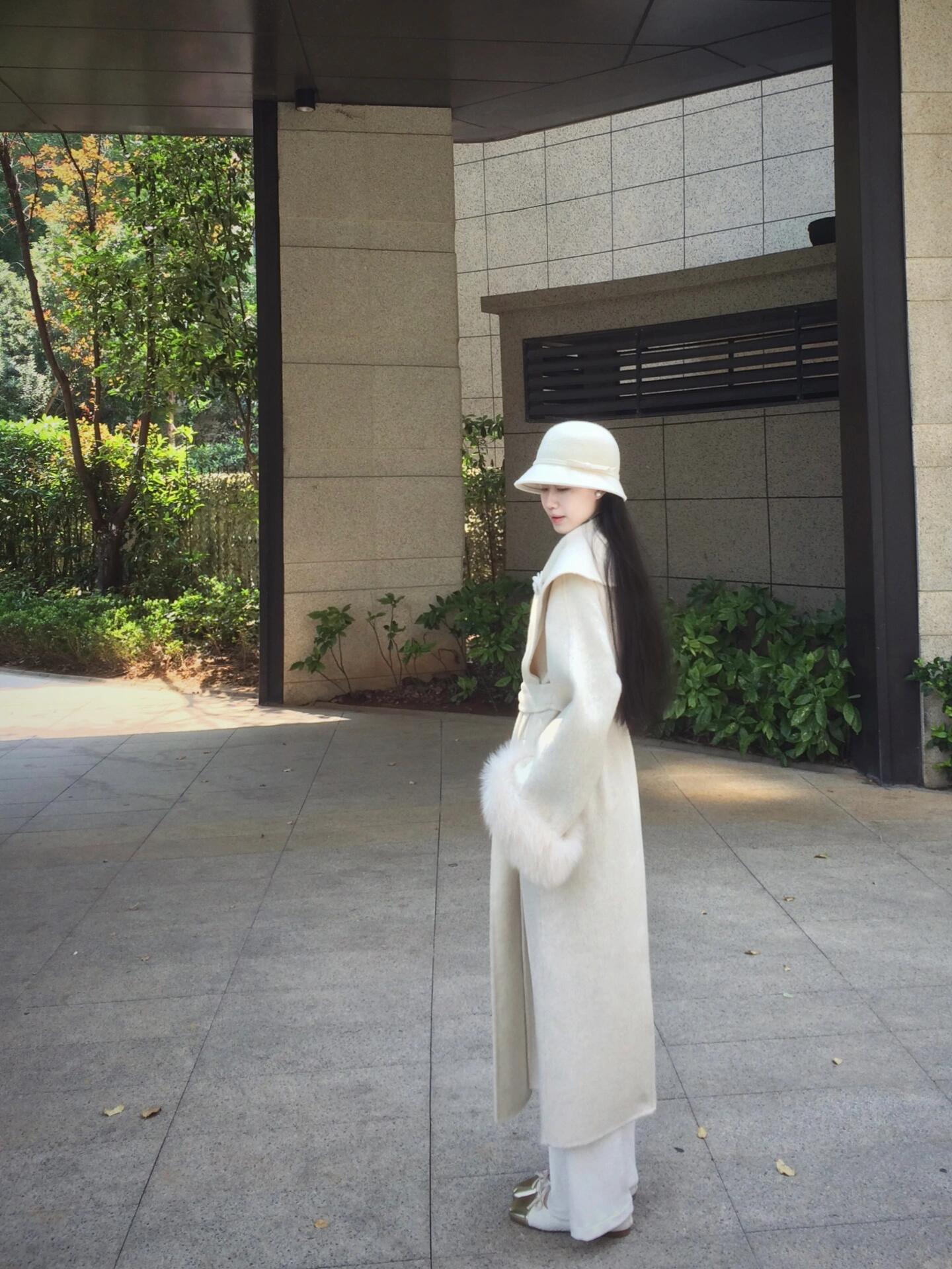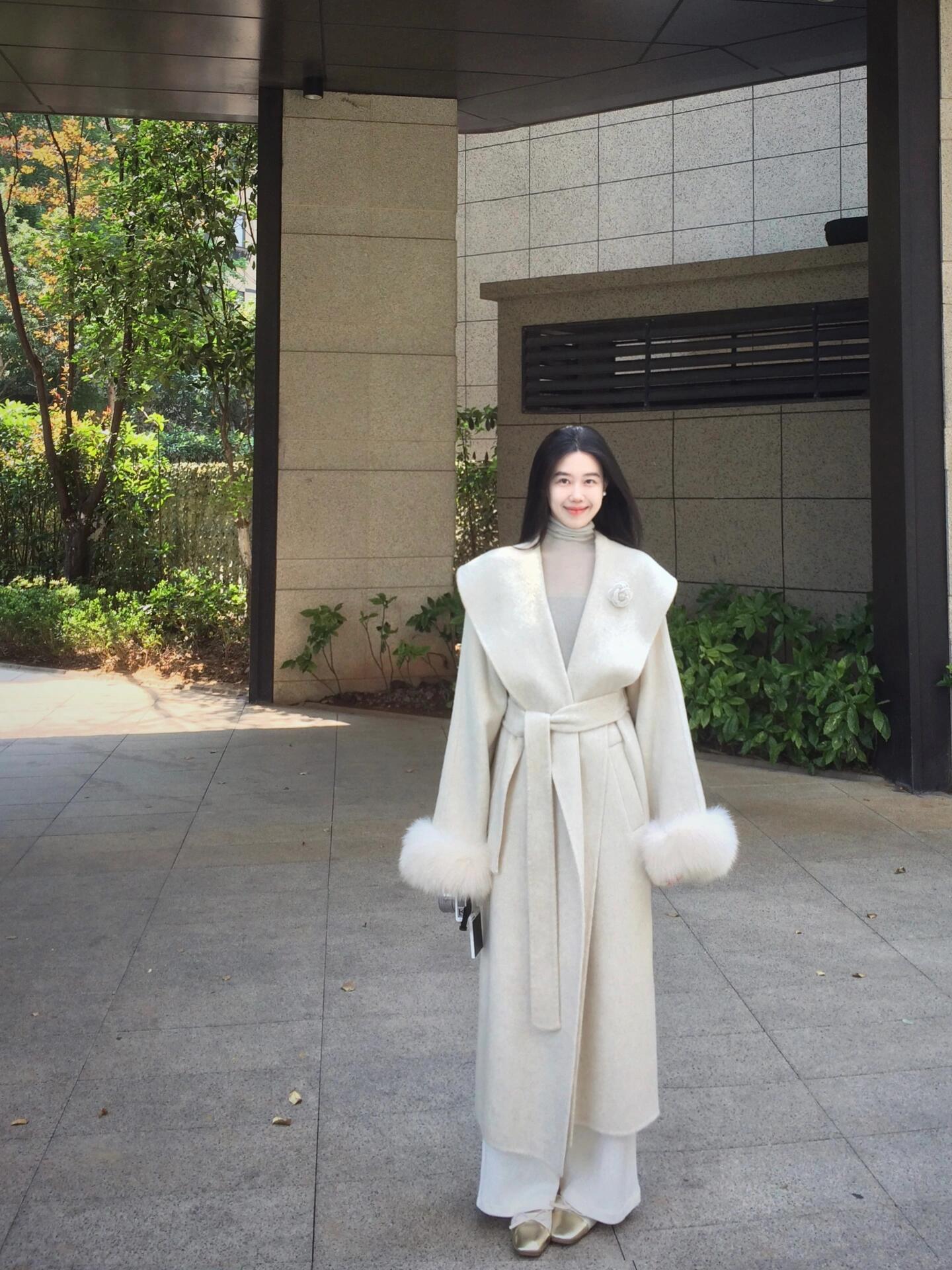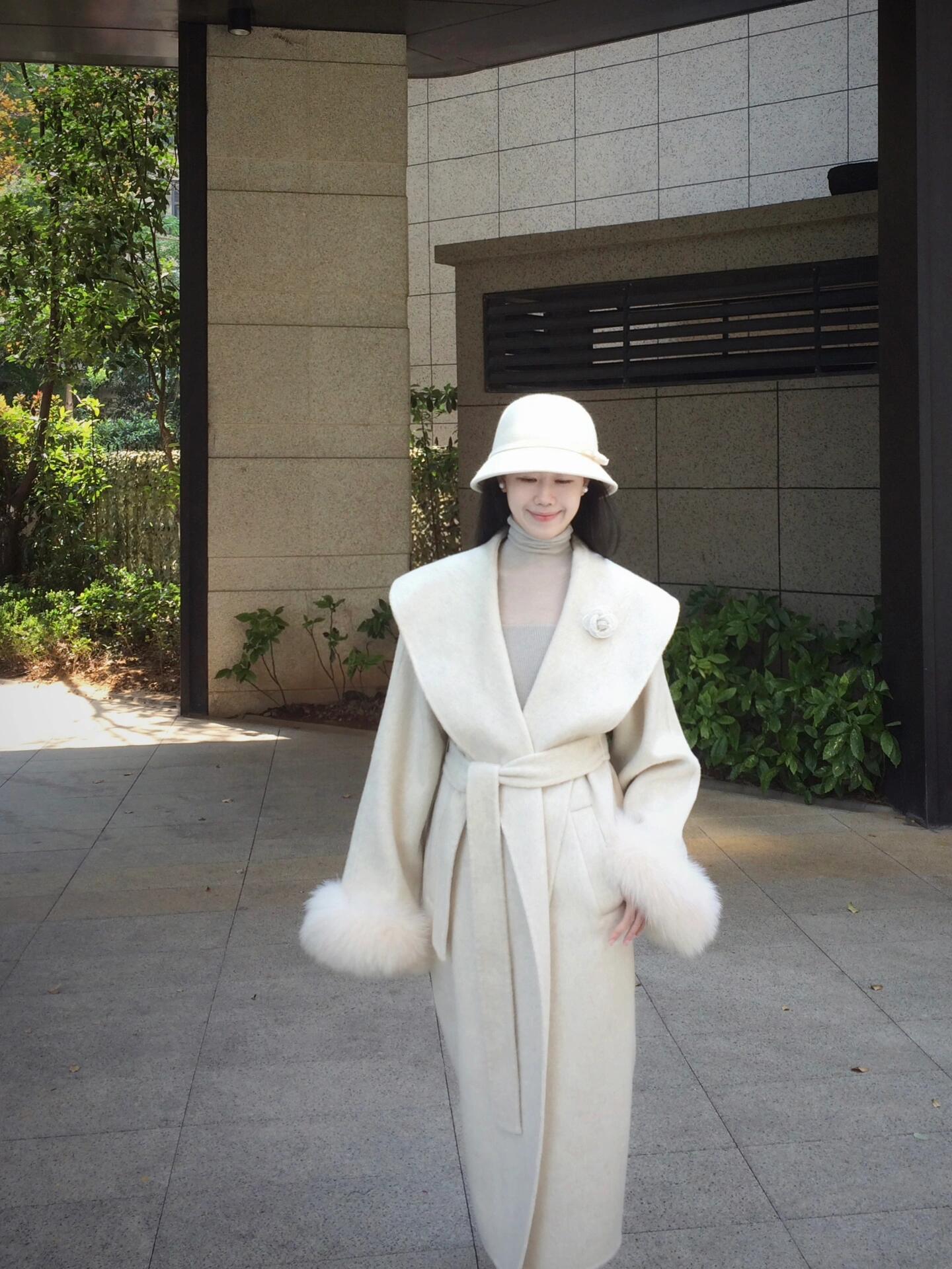 Off-White Double-Faced Cashmere Coat – Long Lapel Celebrity Woolen Coat