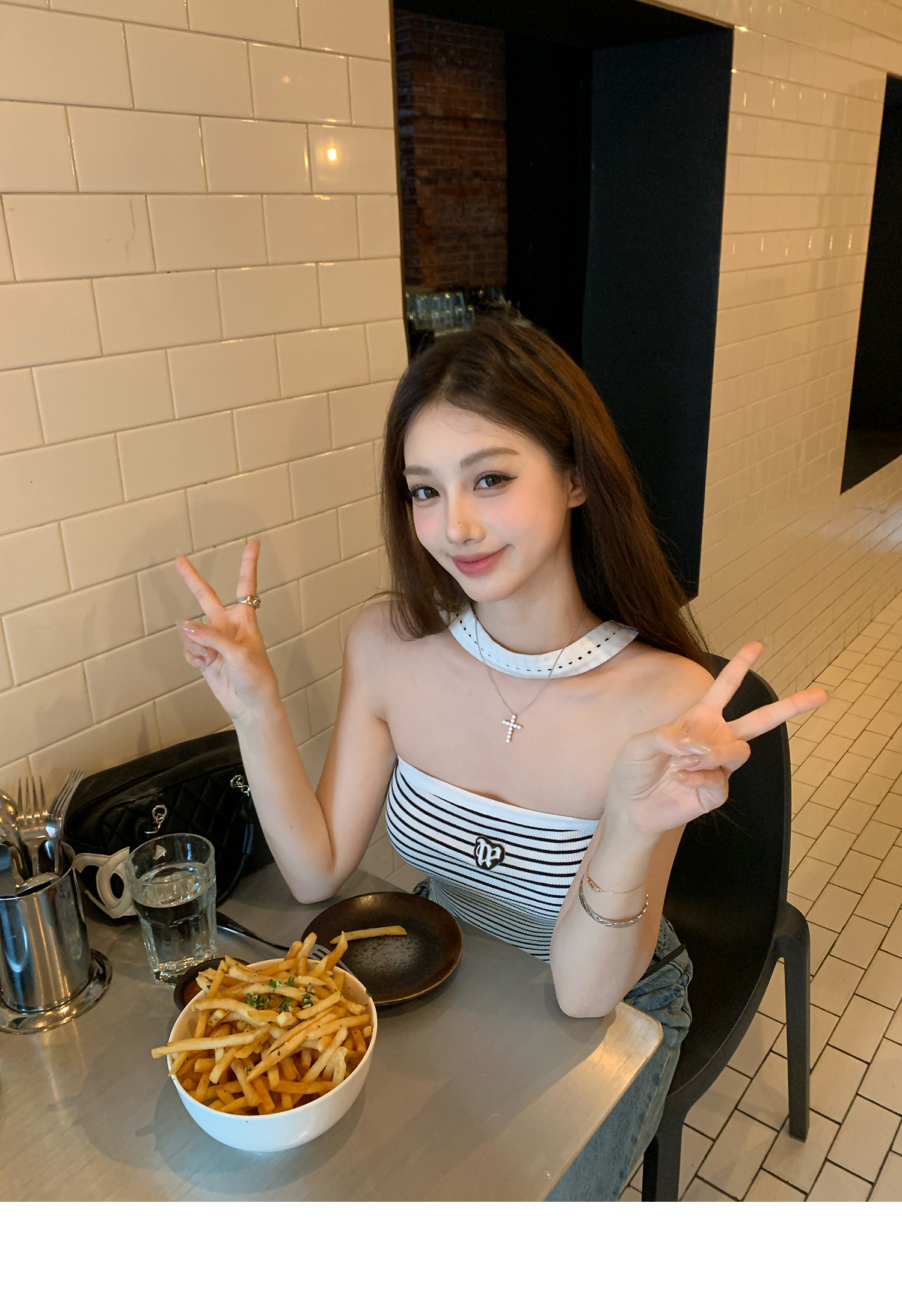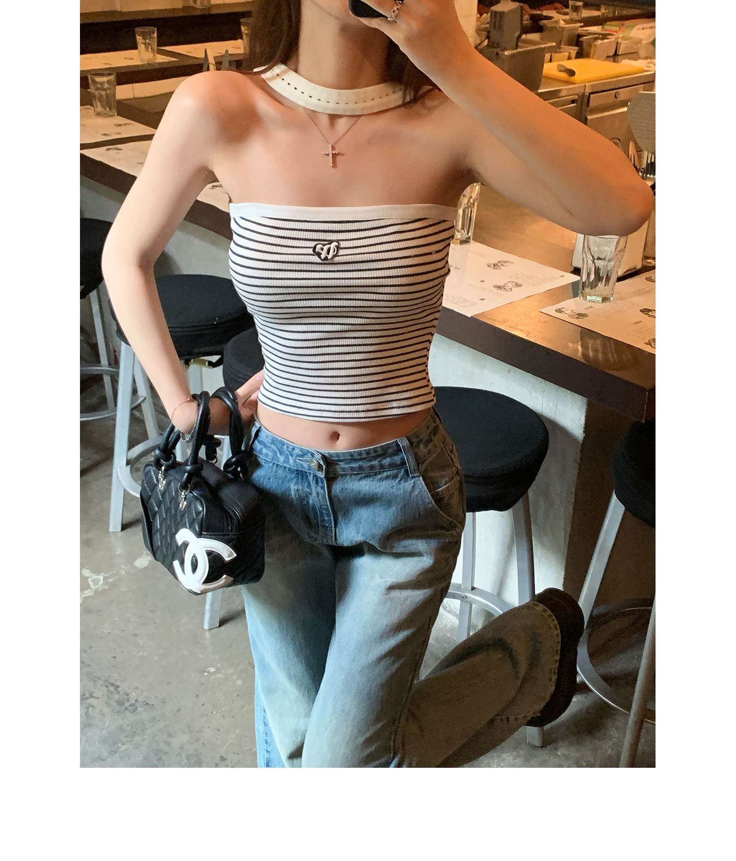 Multi-Wear Striped Halterneck Knit Vest - Women's Summer Sleeveless Top