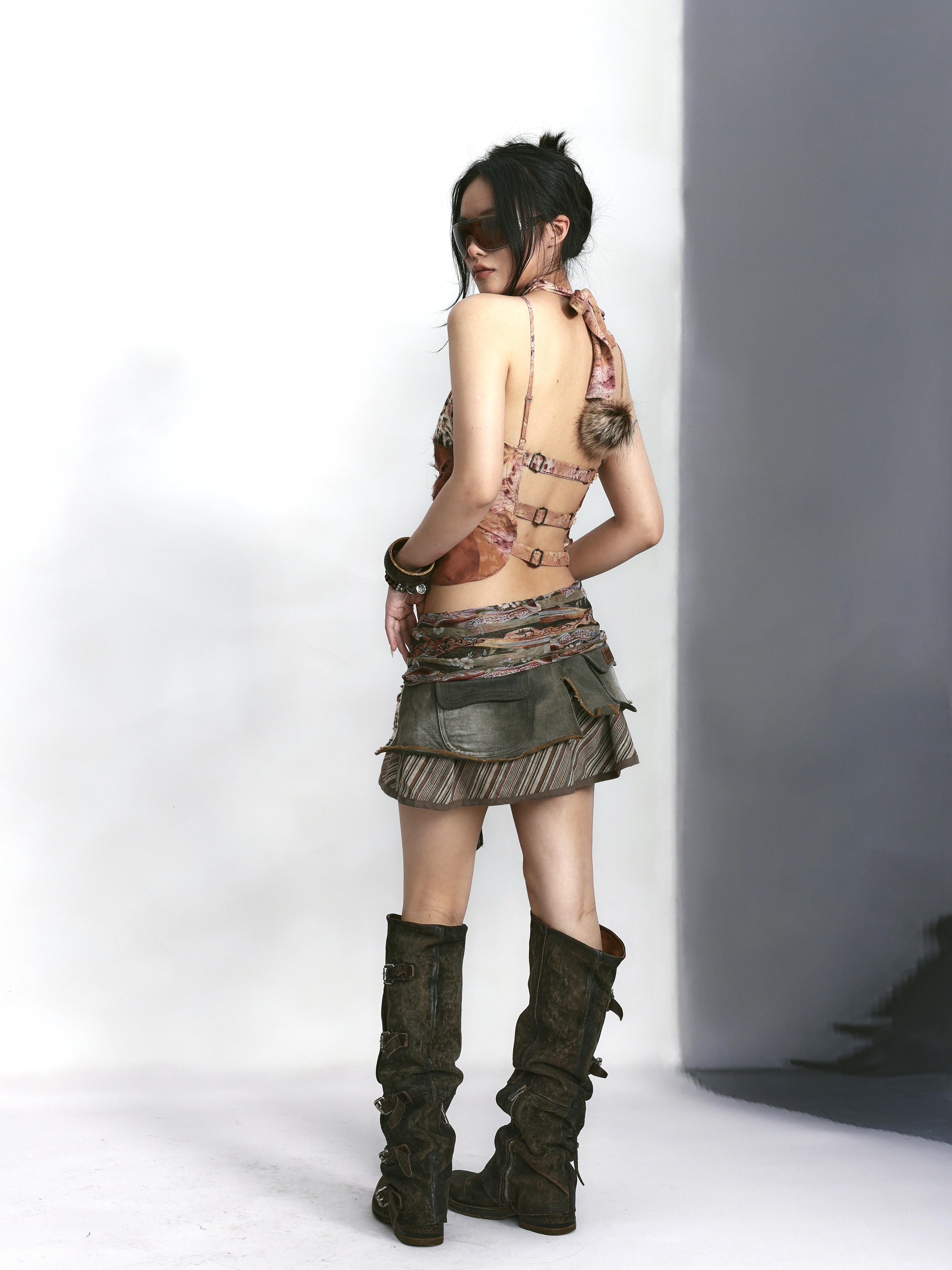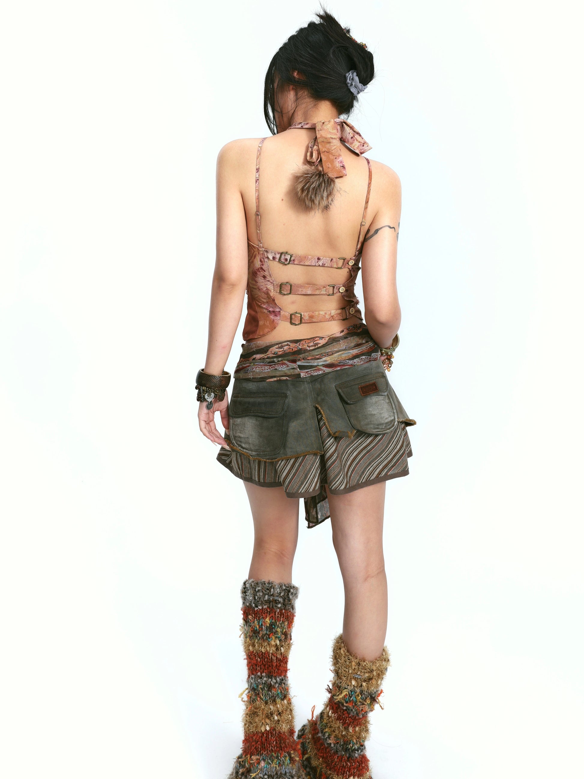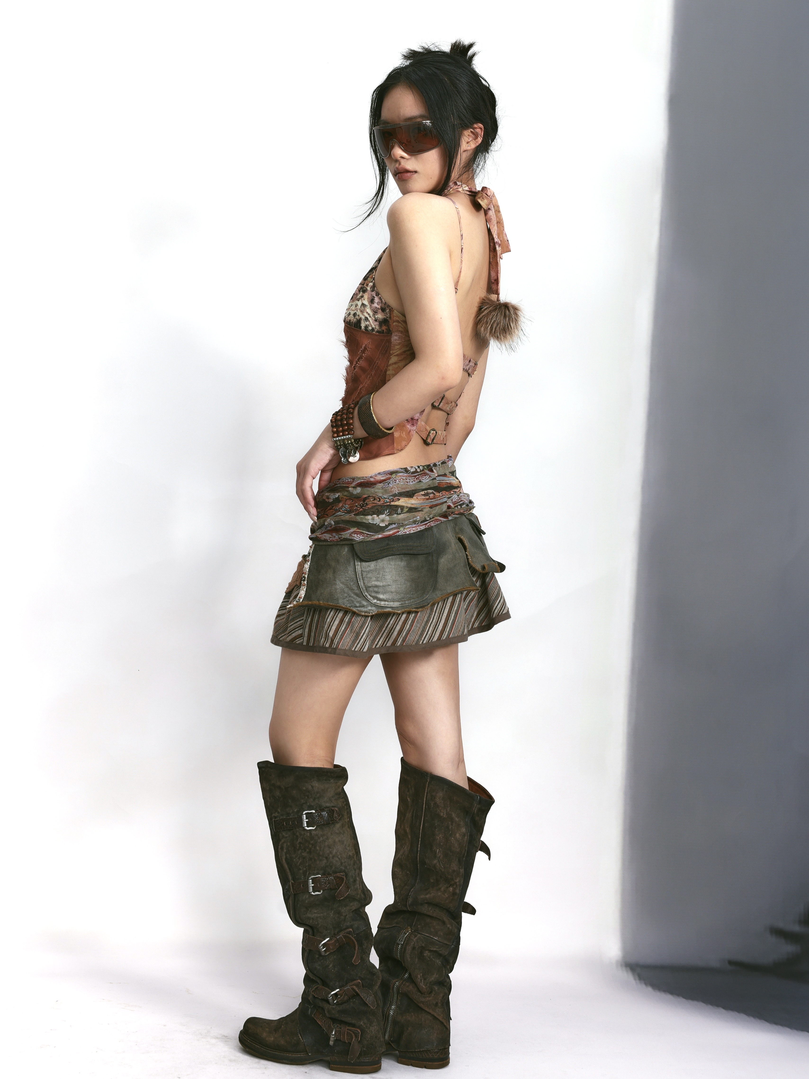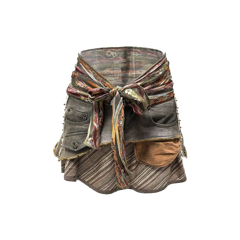Double-Panel Washed Denim Skirt – Bold Contrast Design