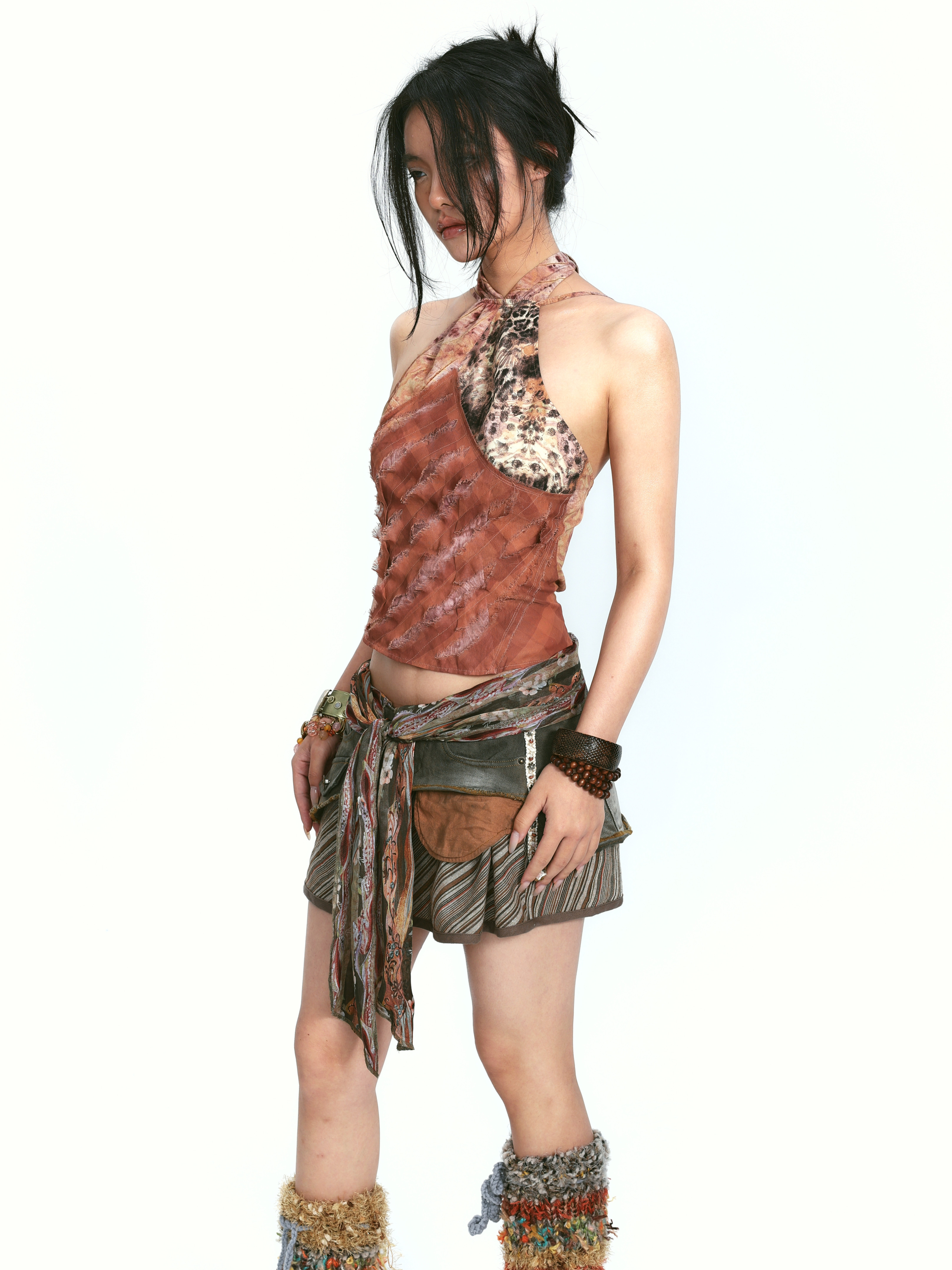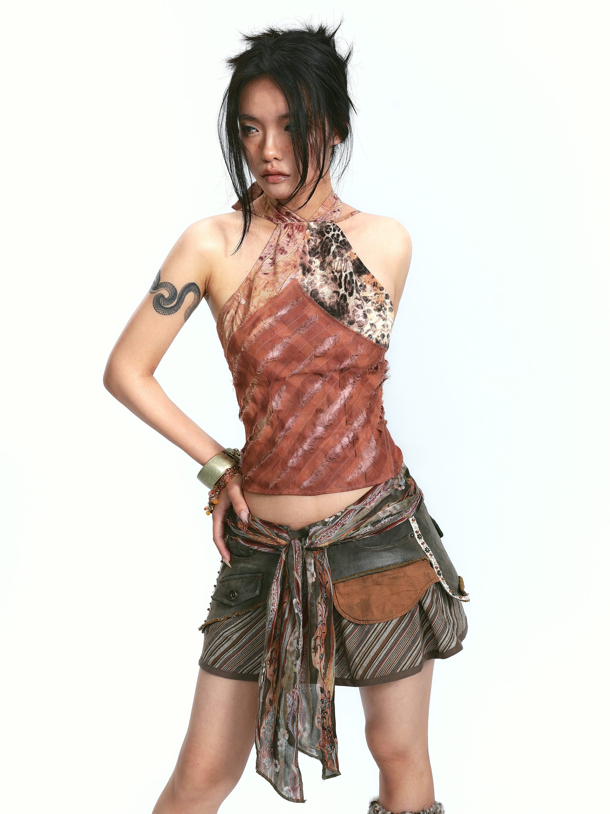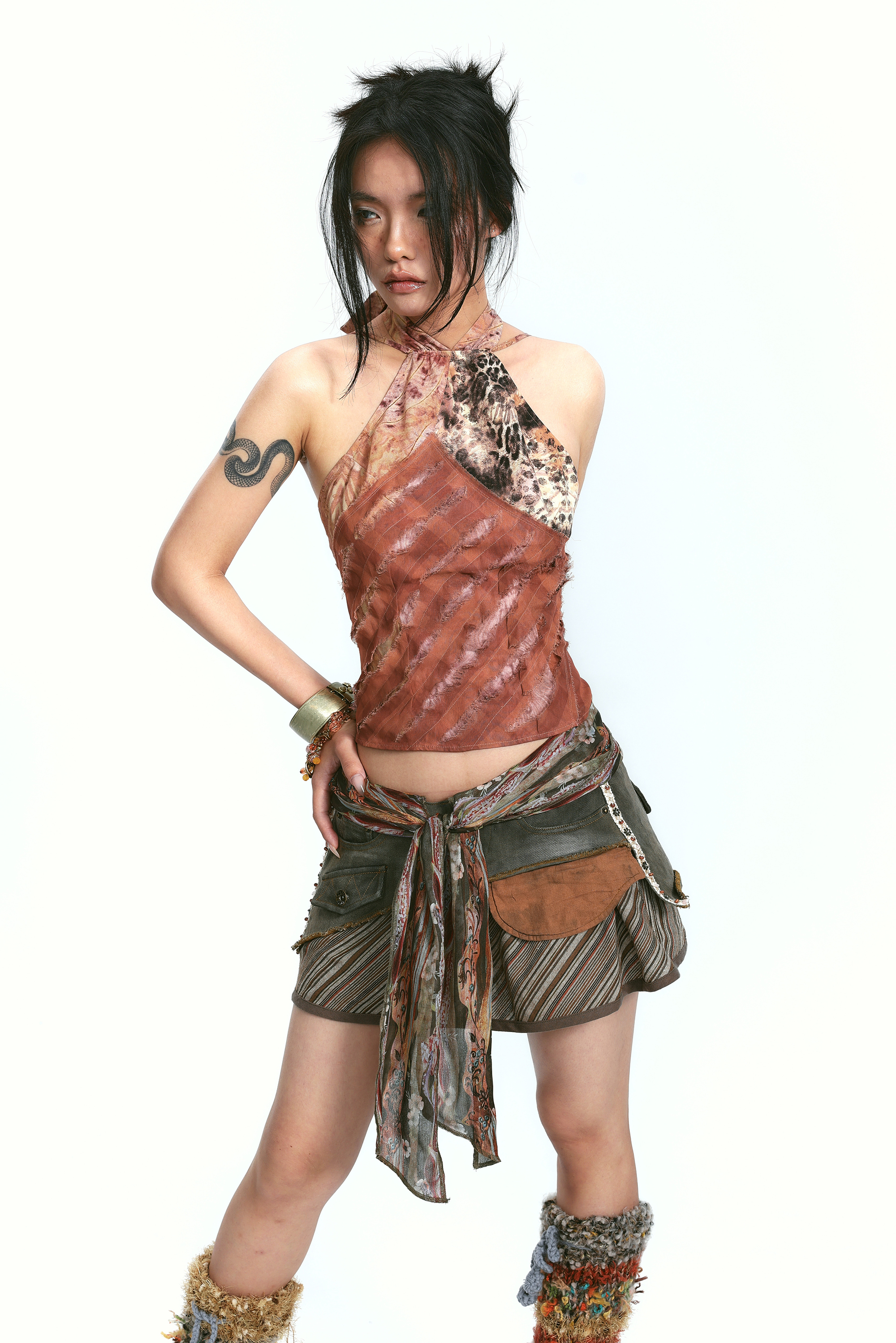 Double-Panel Washed Denim Skirt – Bold Contrast Design