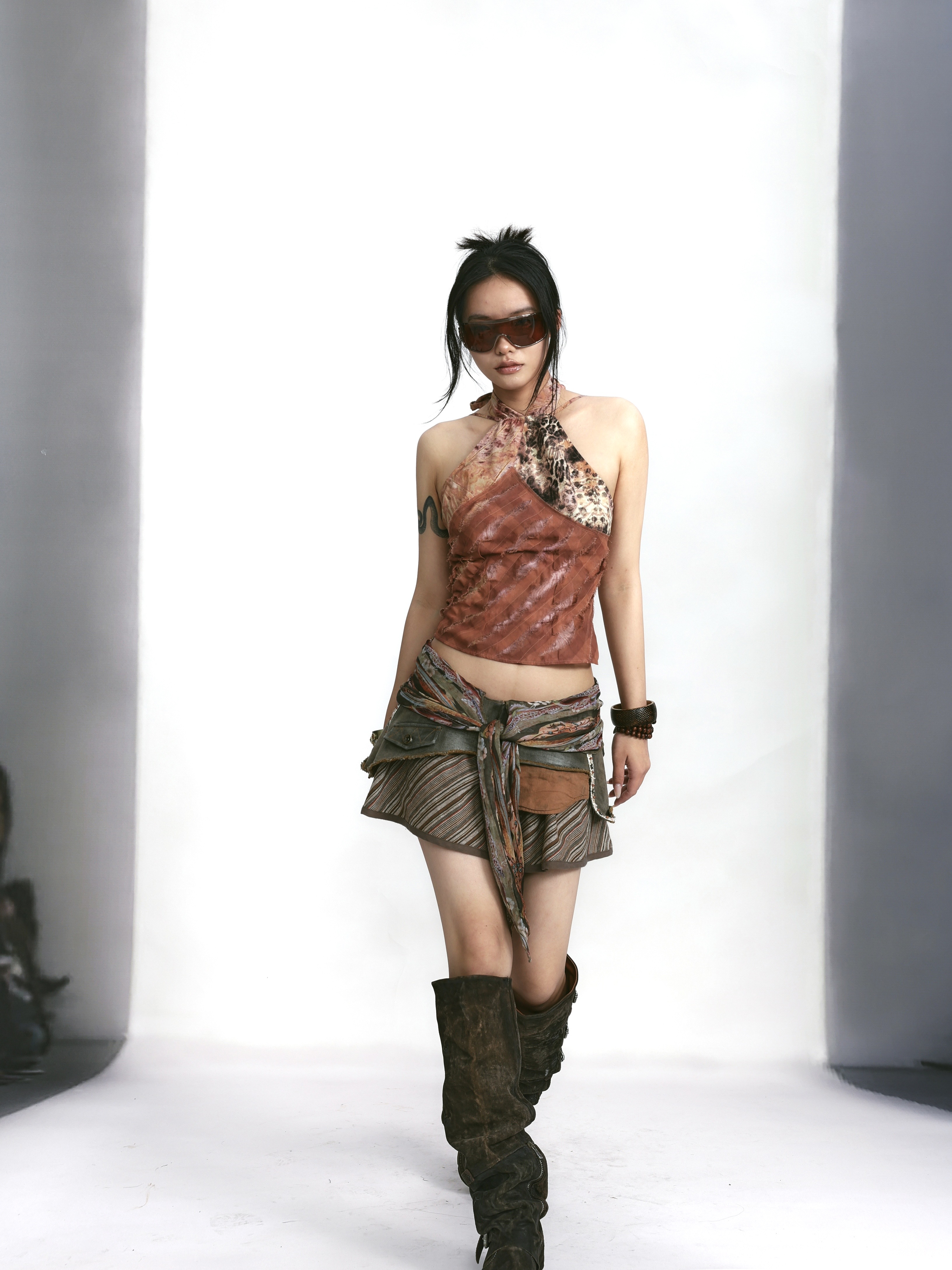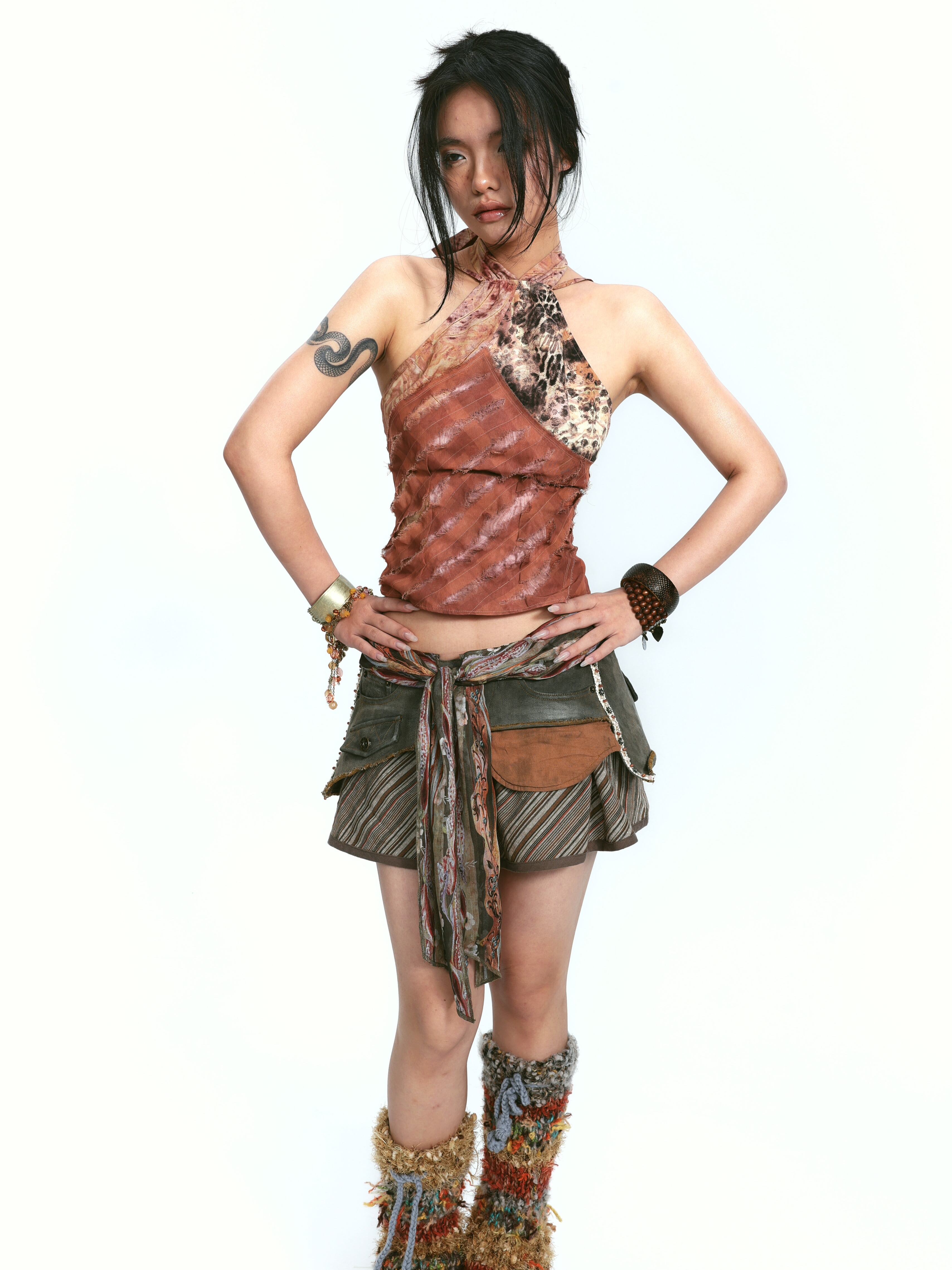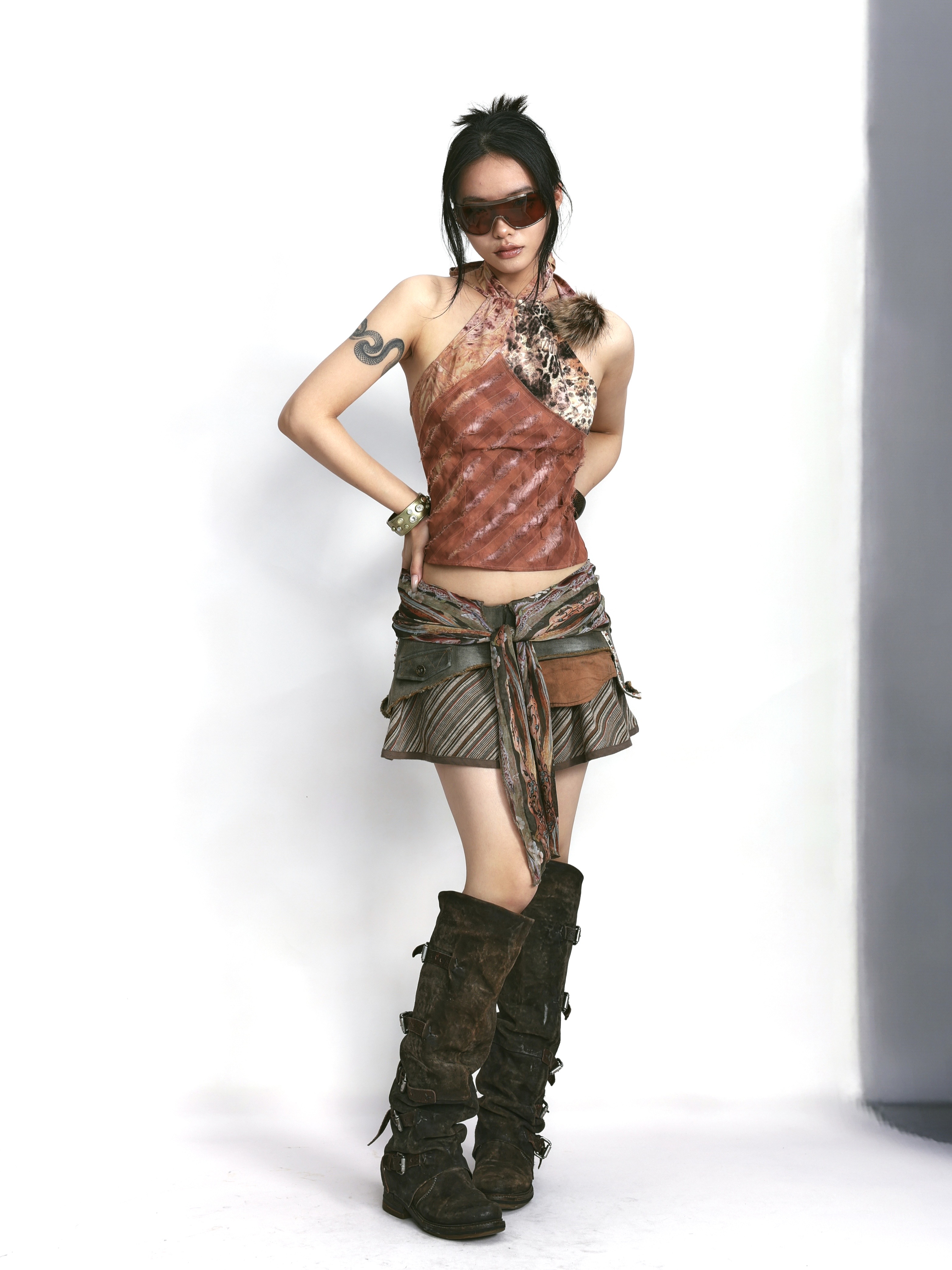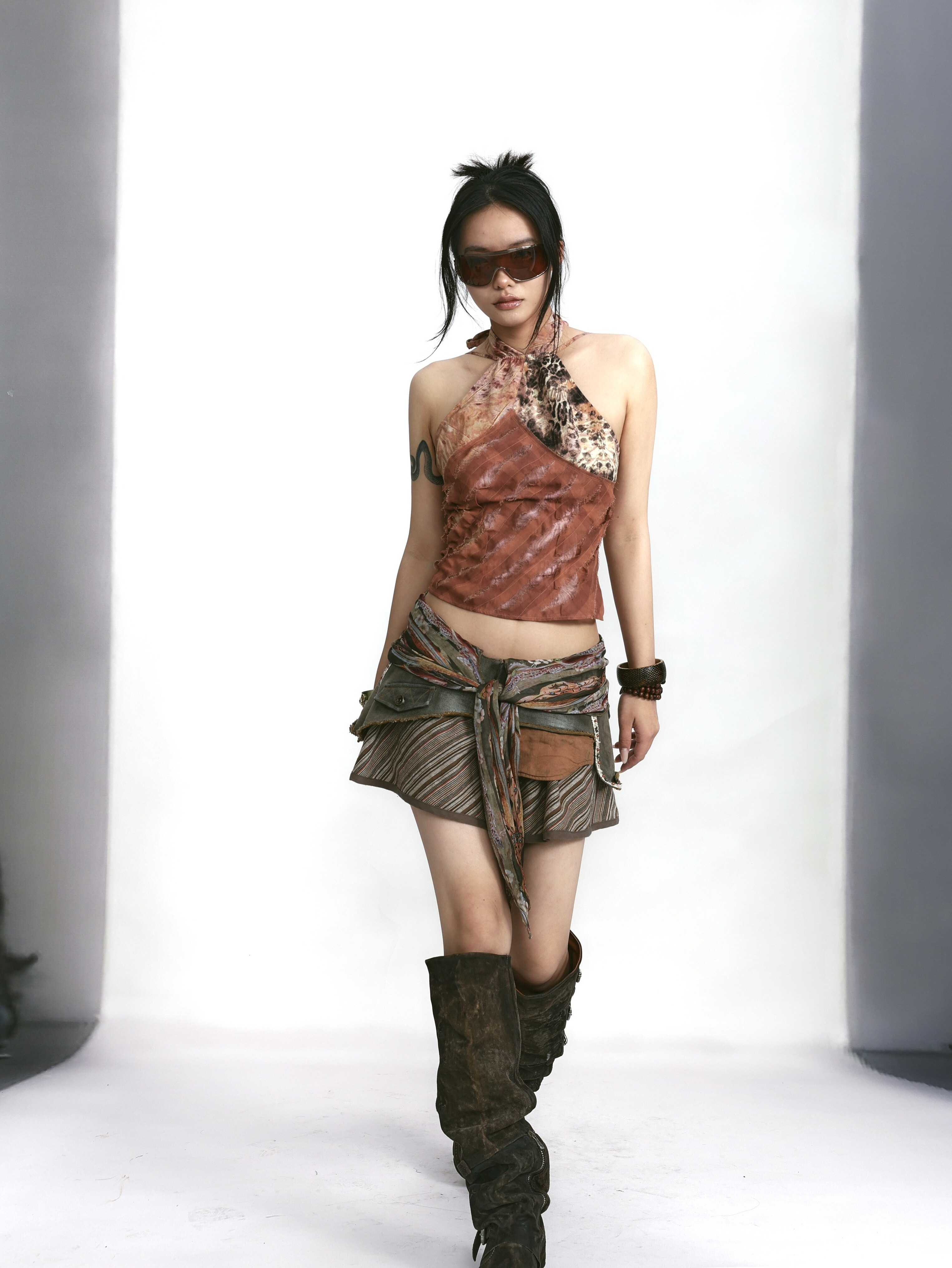Double-Panel Washed Denim Skirt – Bold Contrast Design