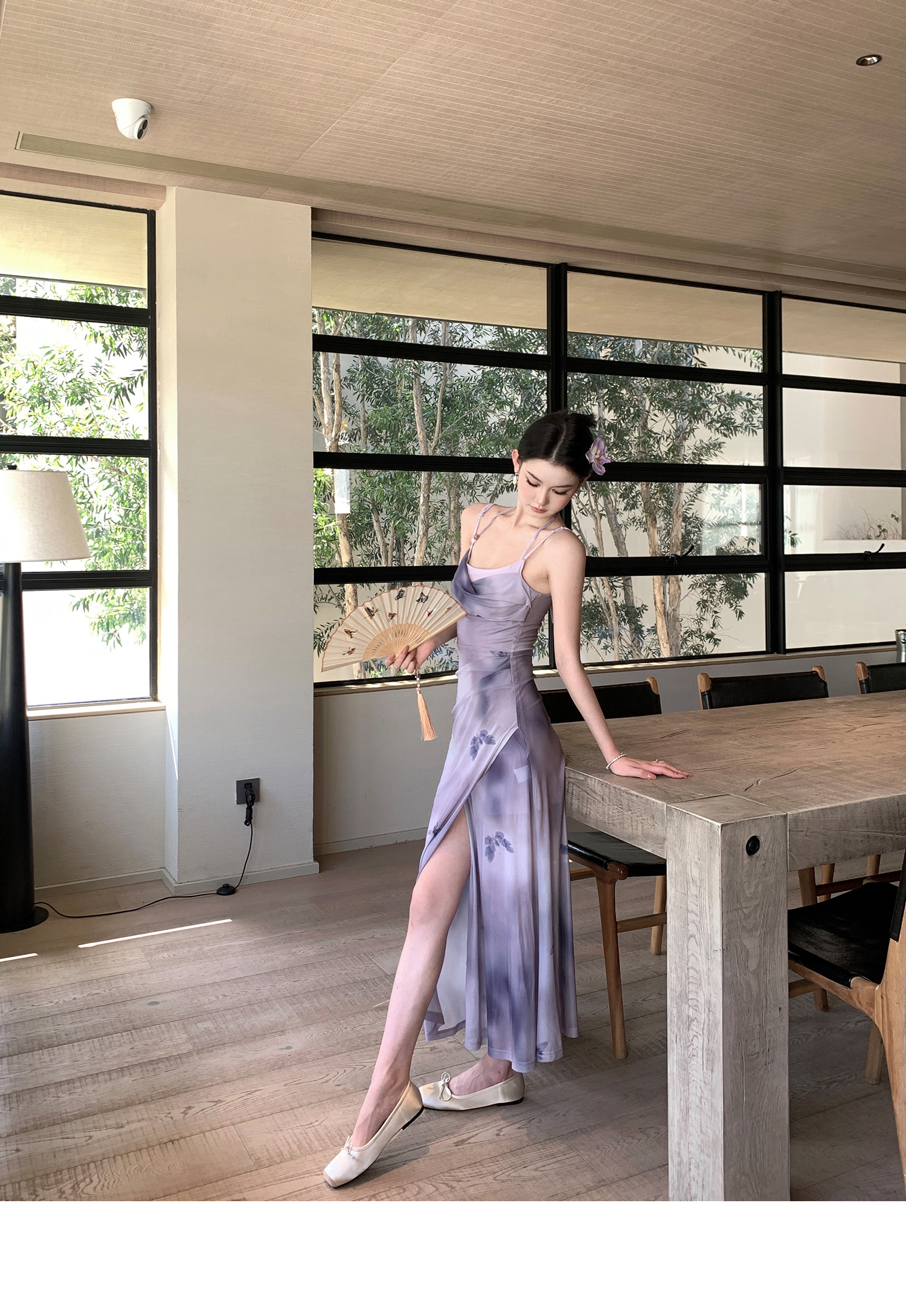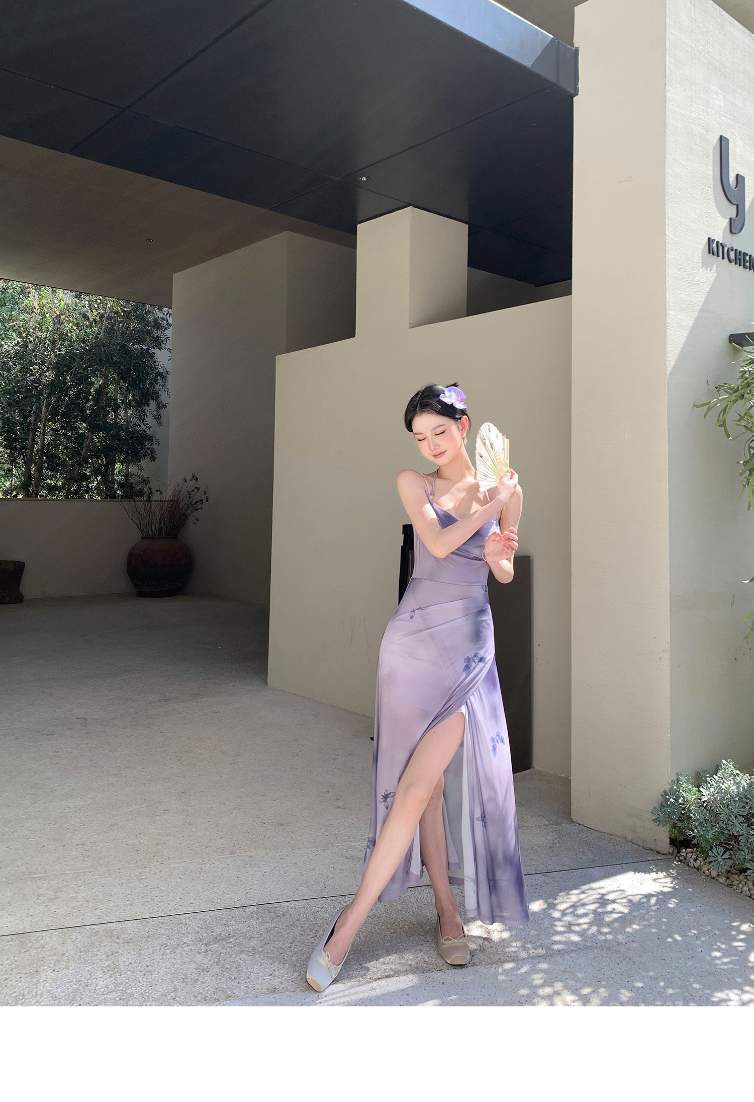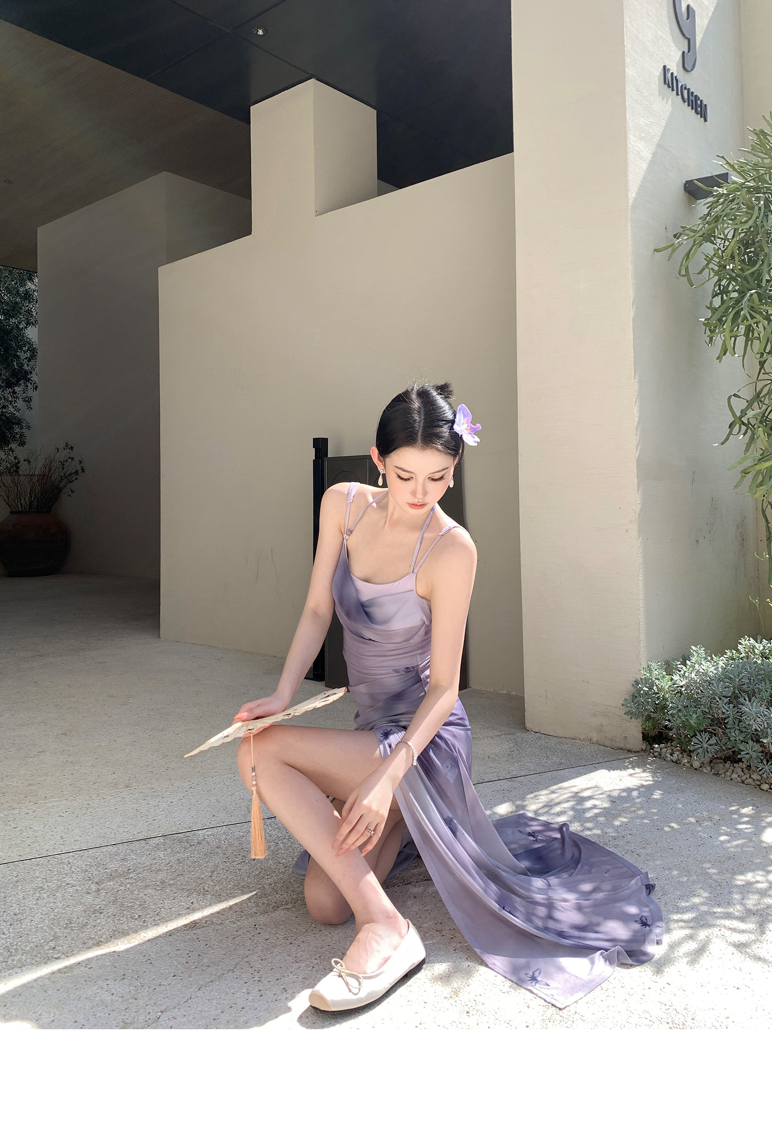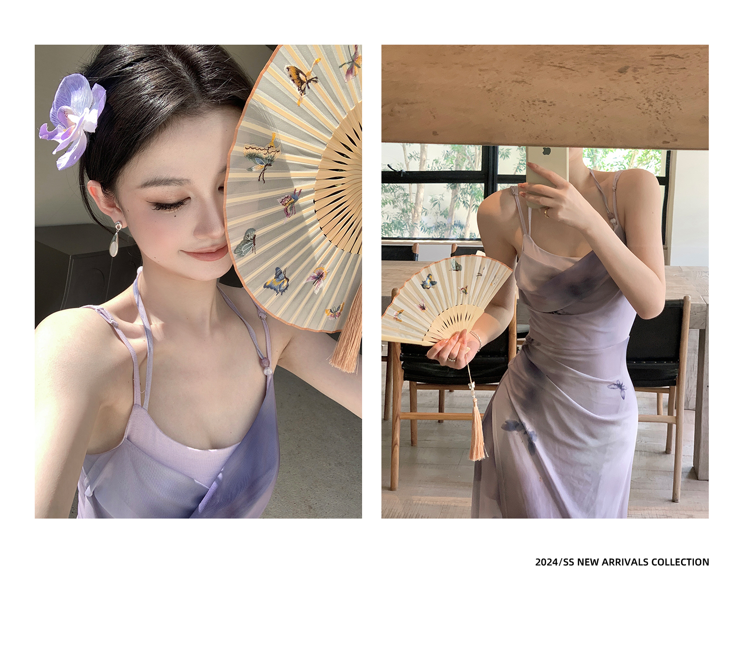 [Oriental Aesthetics] Chinese Purple Strap Dress - Summer Spicy Girl Style