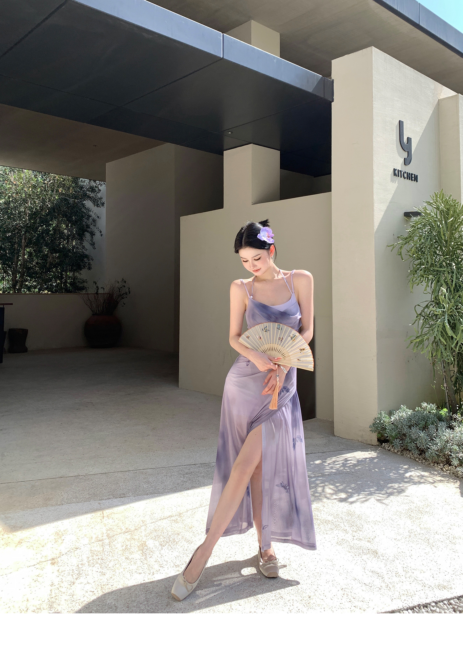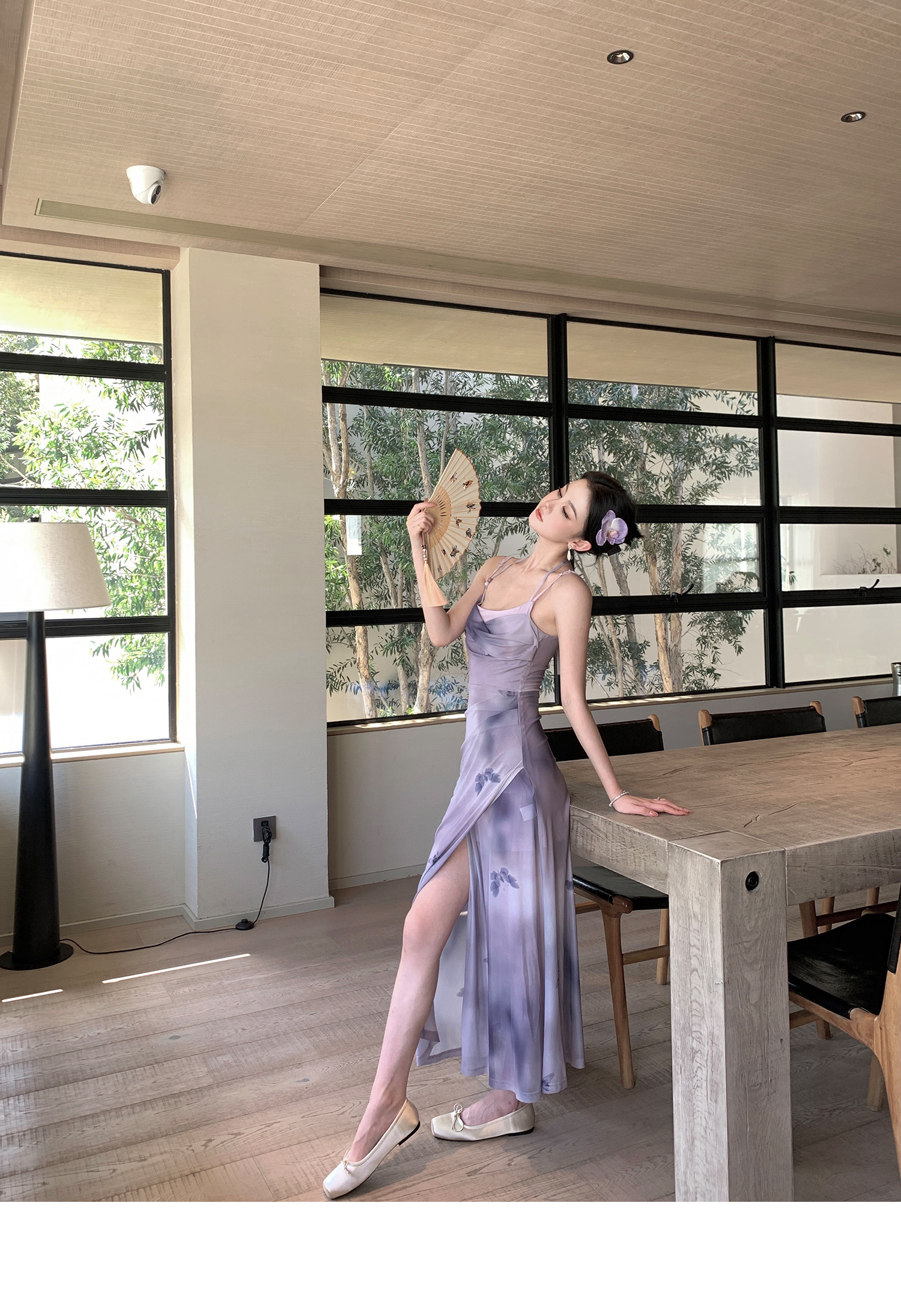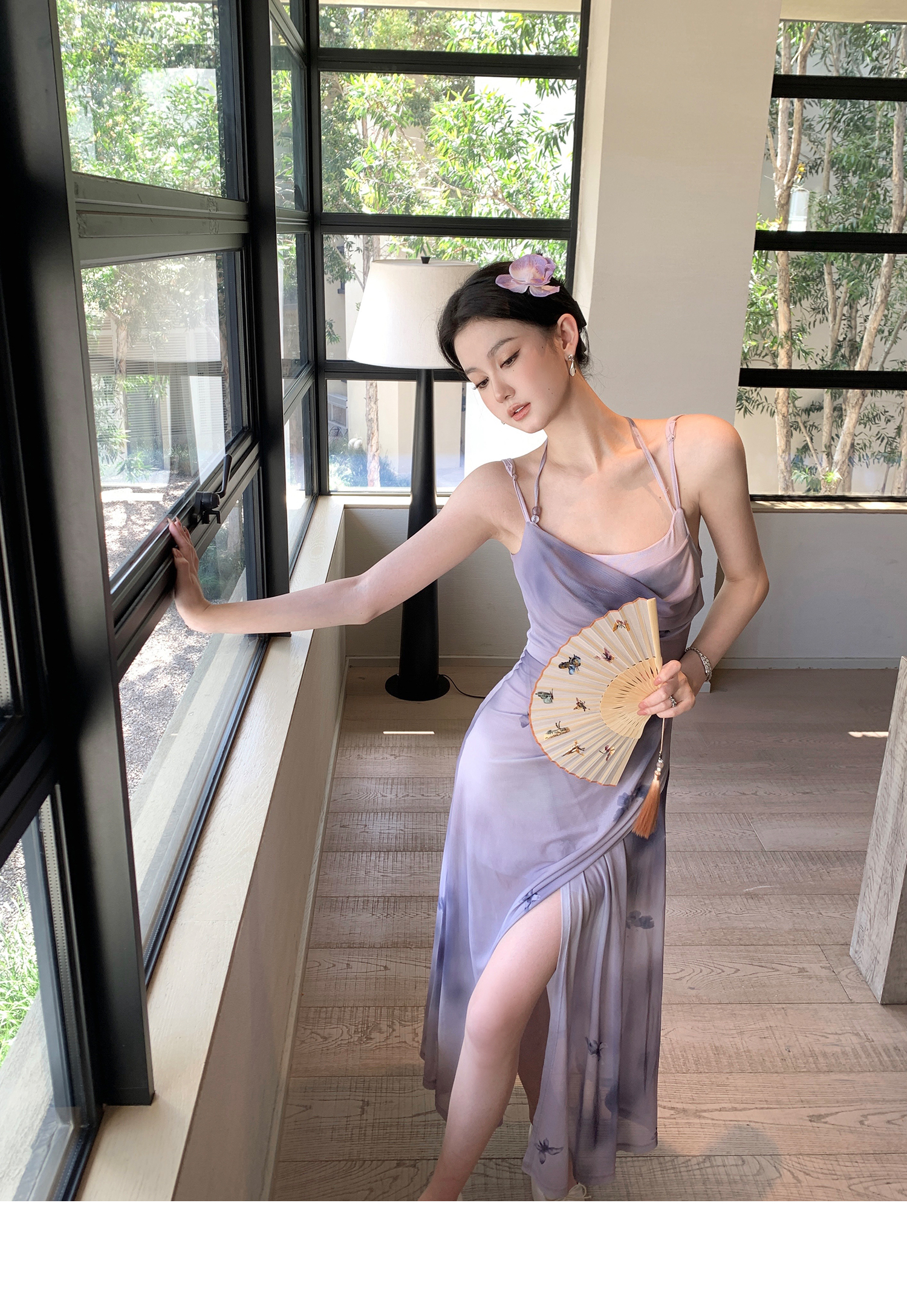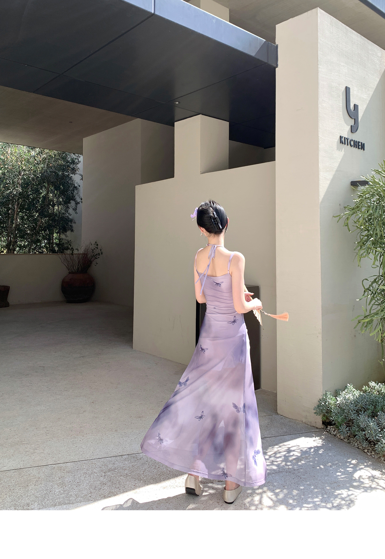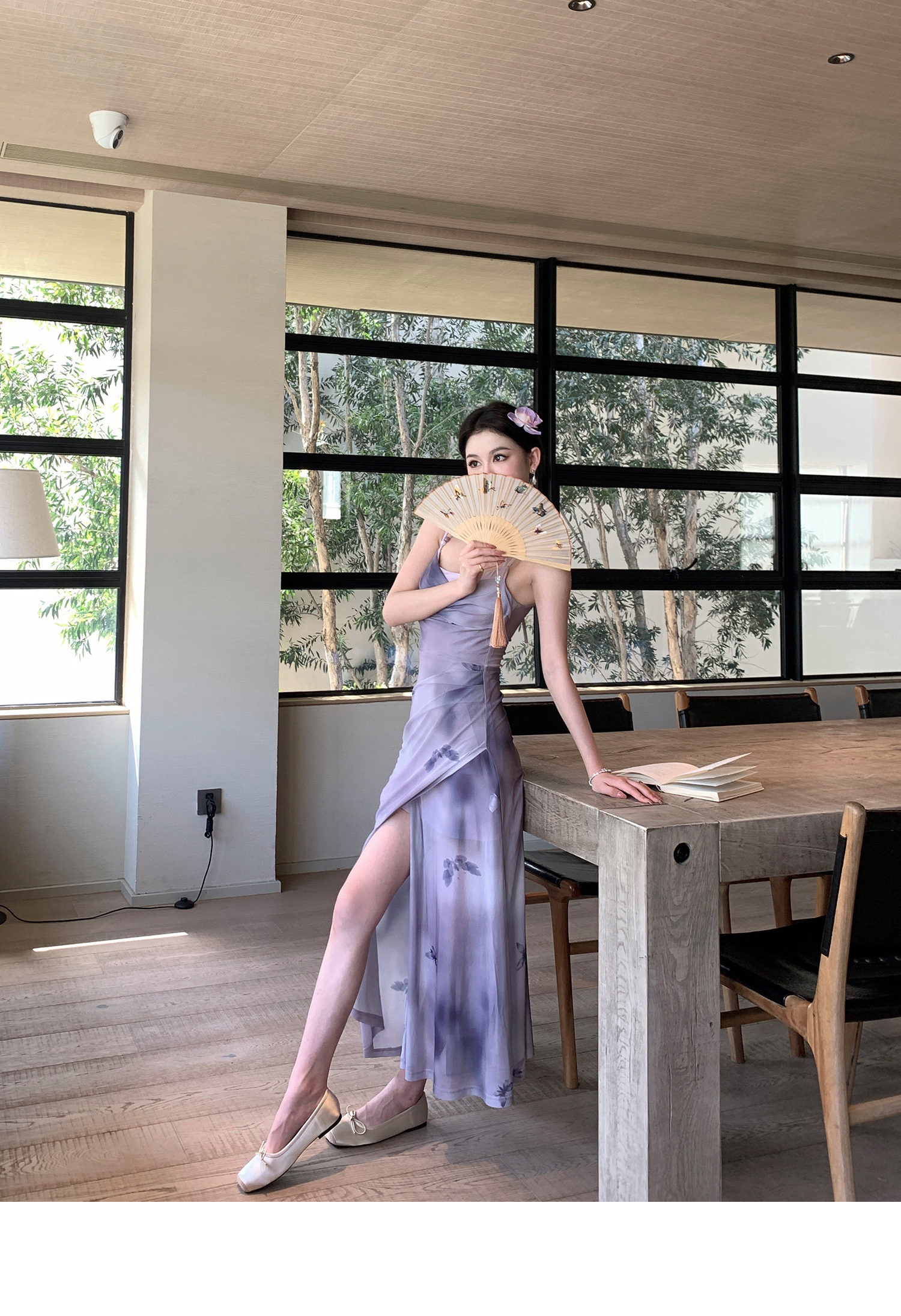[Oriental Aesthetics] Chinese Purple Strap Dress - Summer Spicy Girl Style