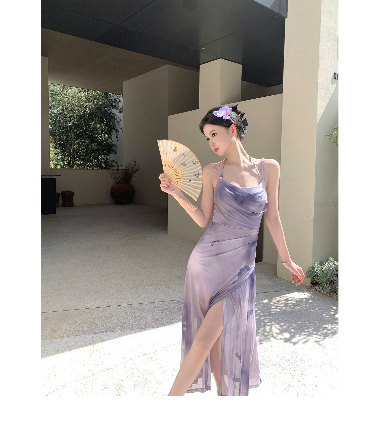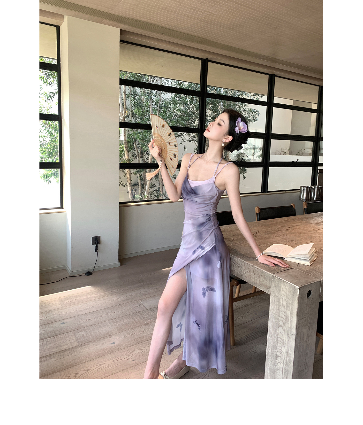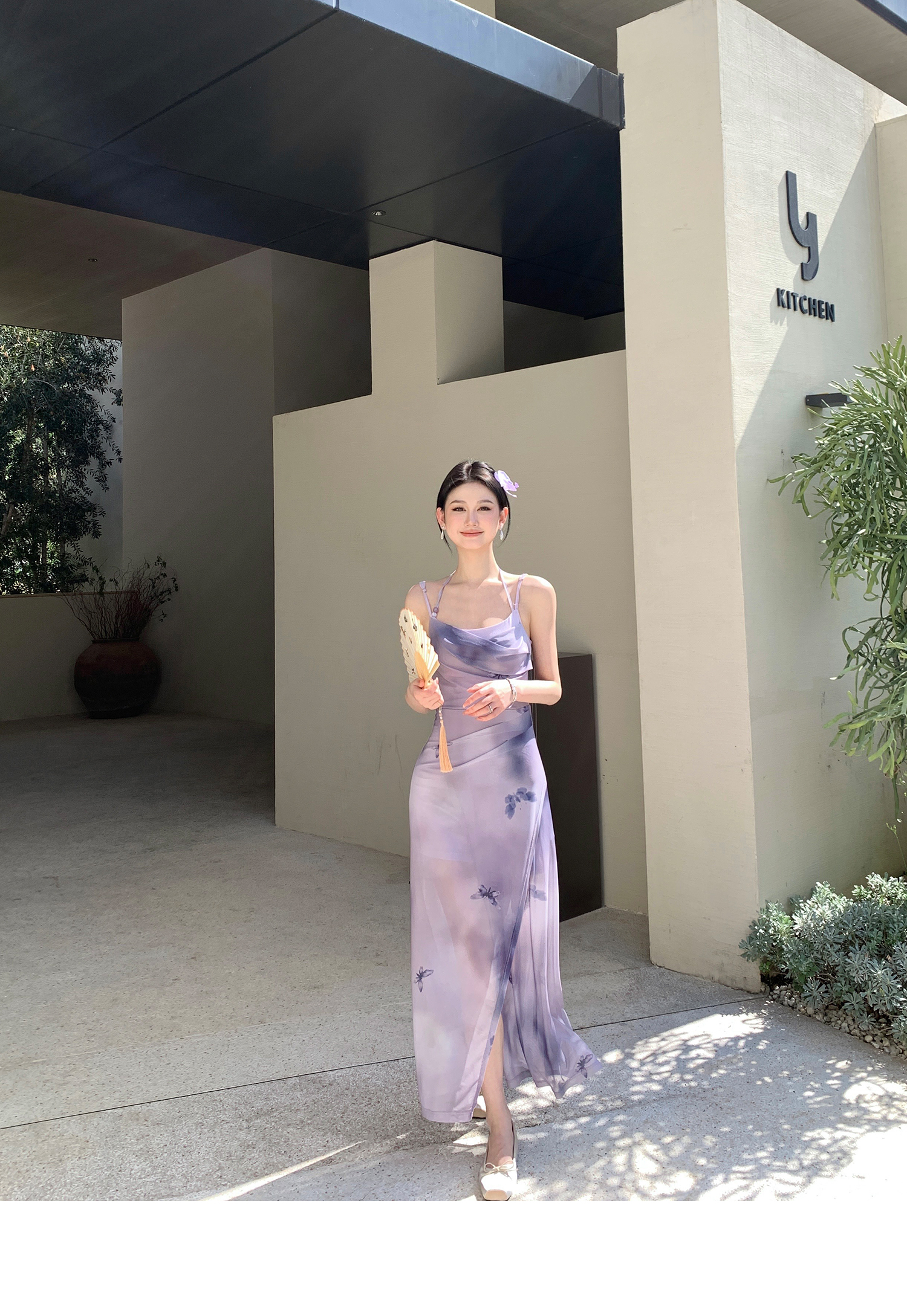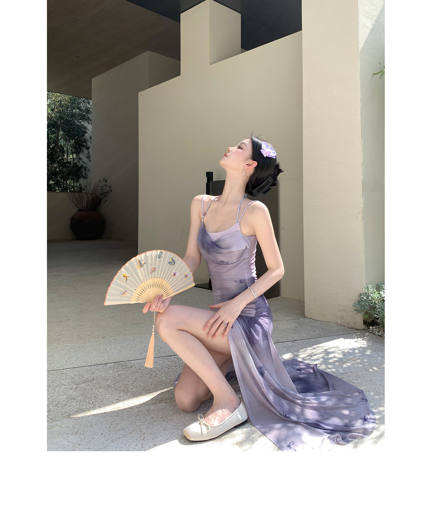 [Oriental Aesthetics] Chinese Purple Strap Dress - Summer Spicy Girl Style