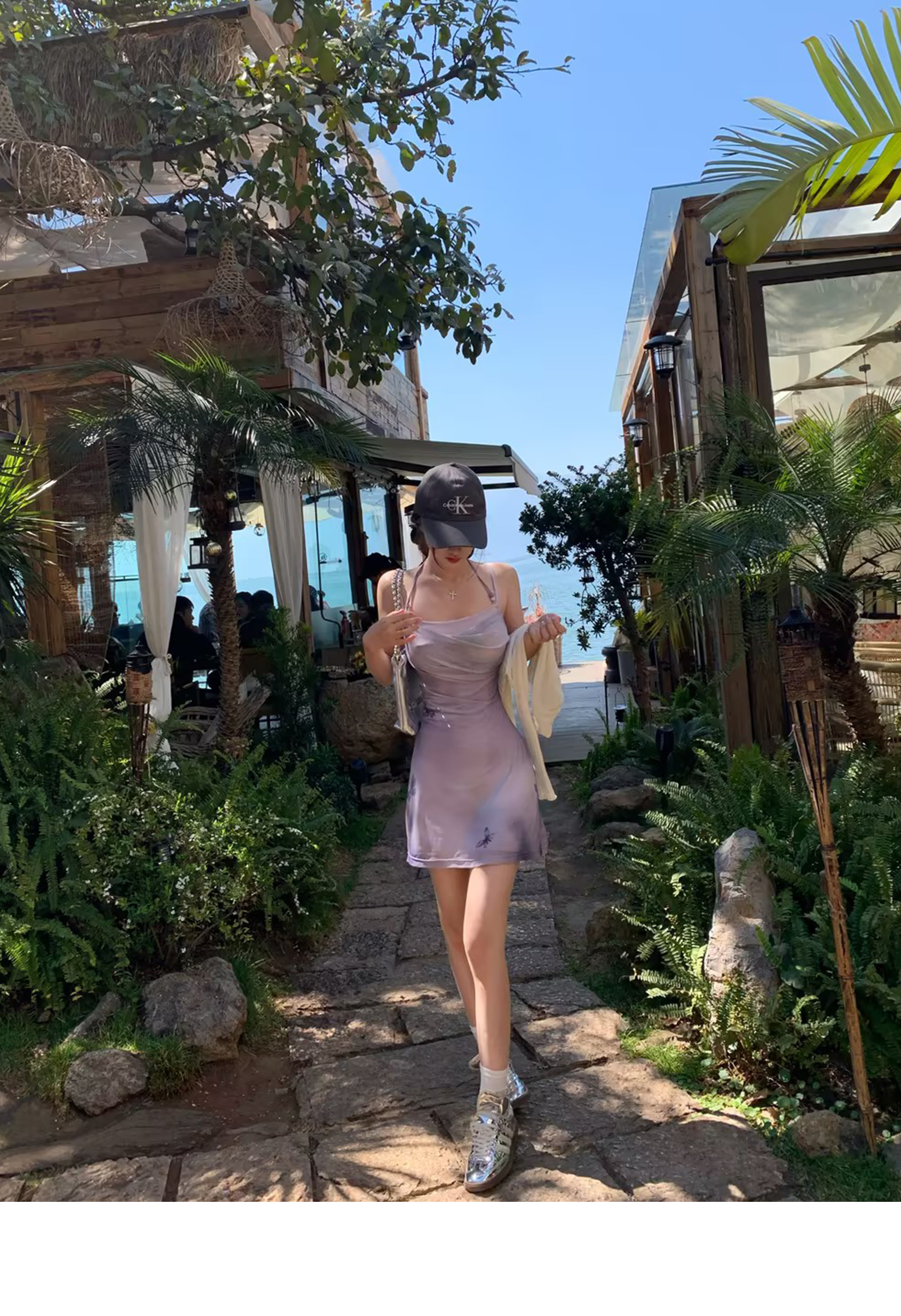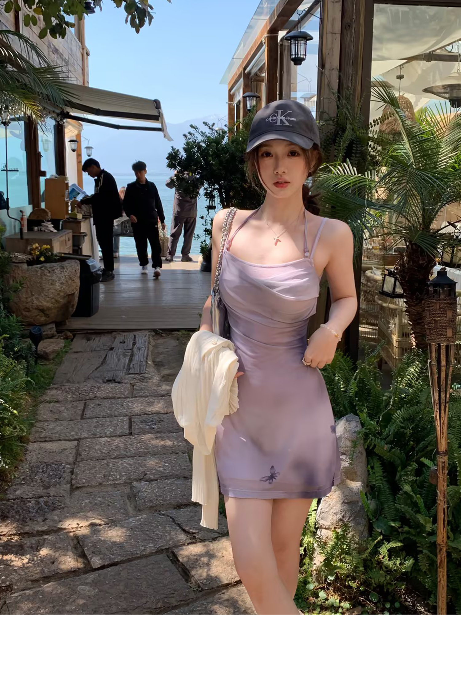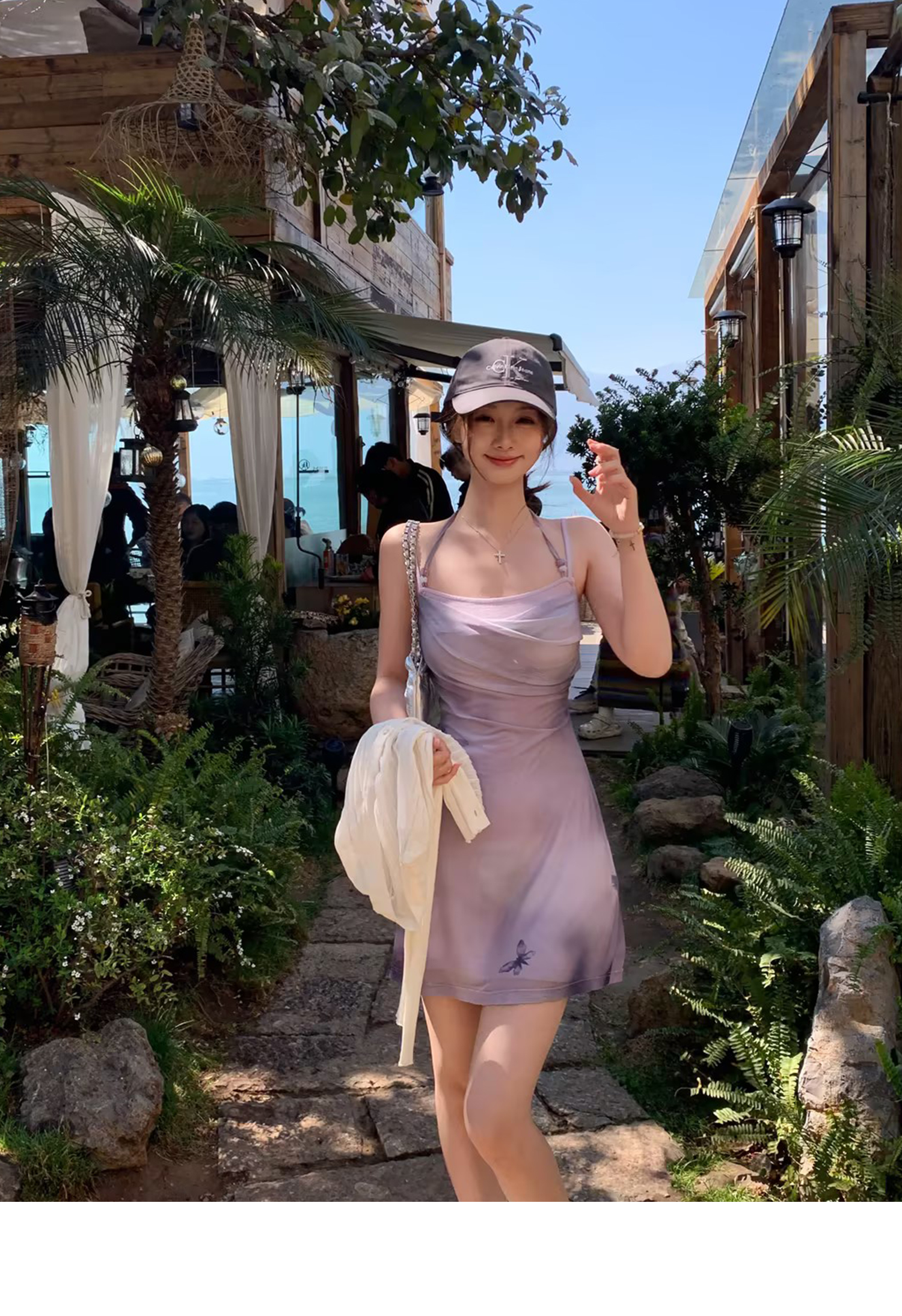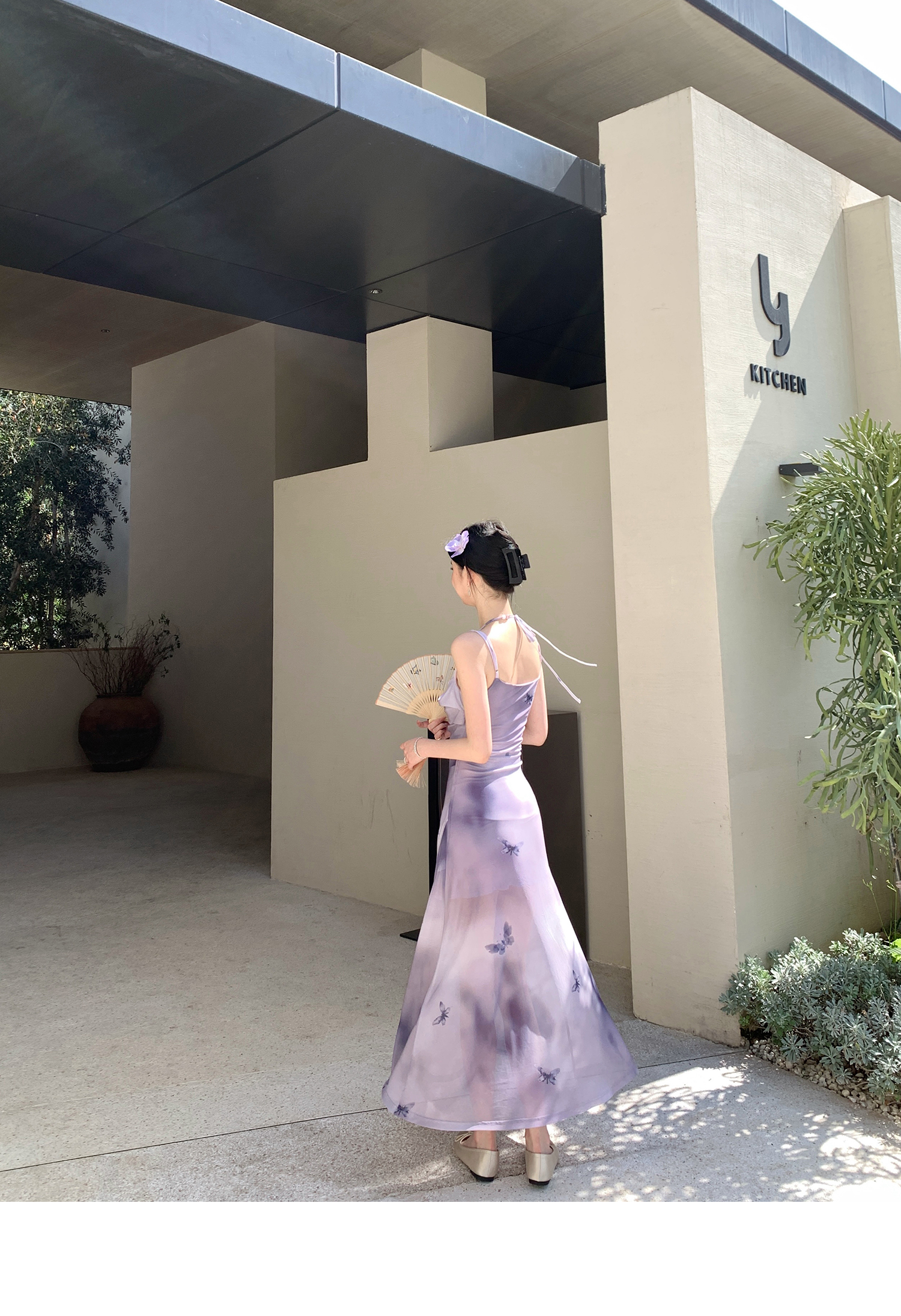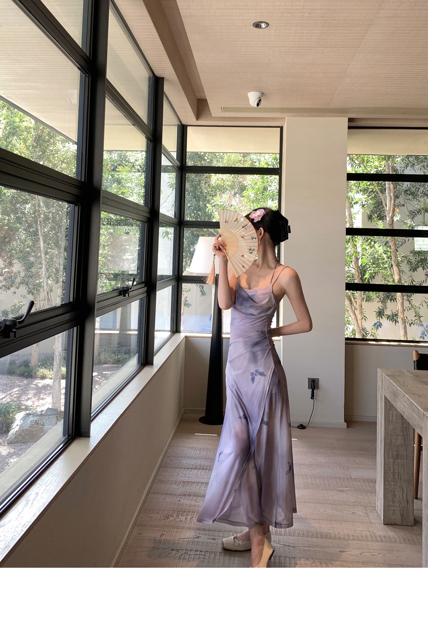 [Oriental Aesthetics] Chinese Purple Strap Dress - Summer Spicy Girl Style