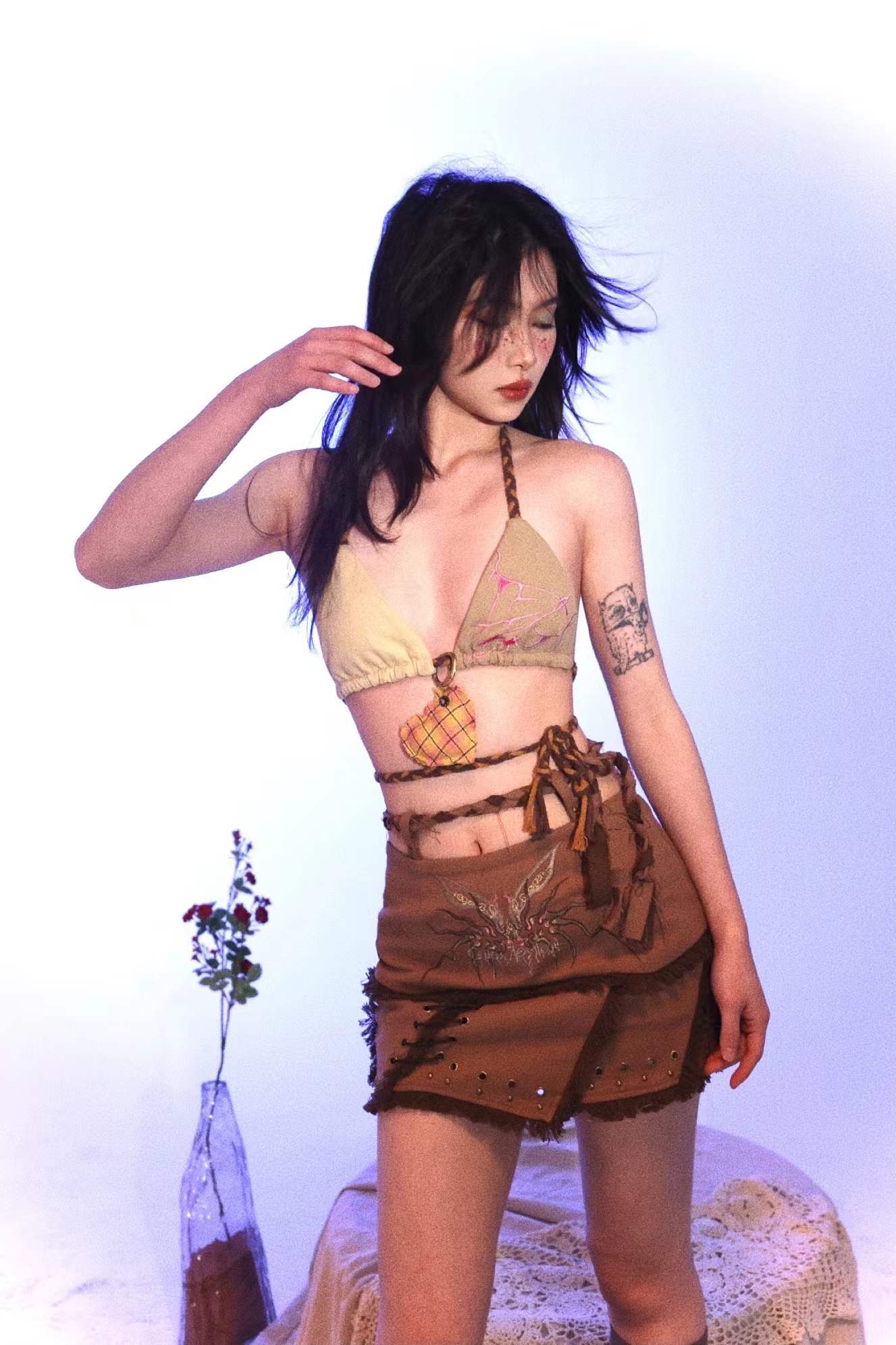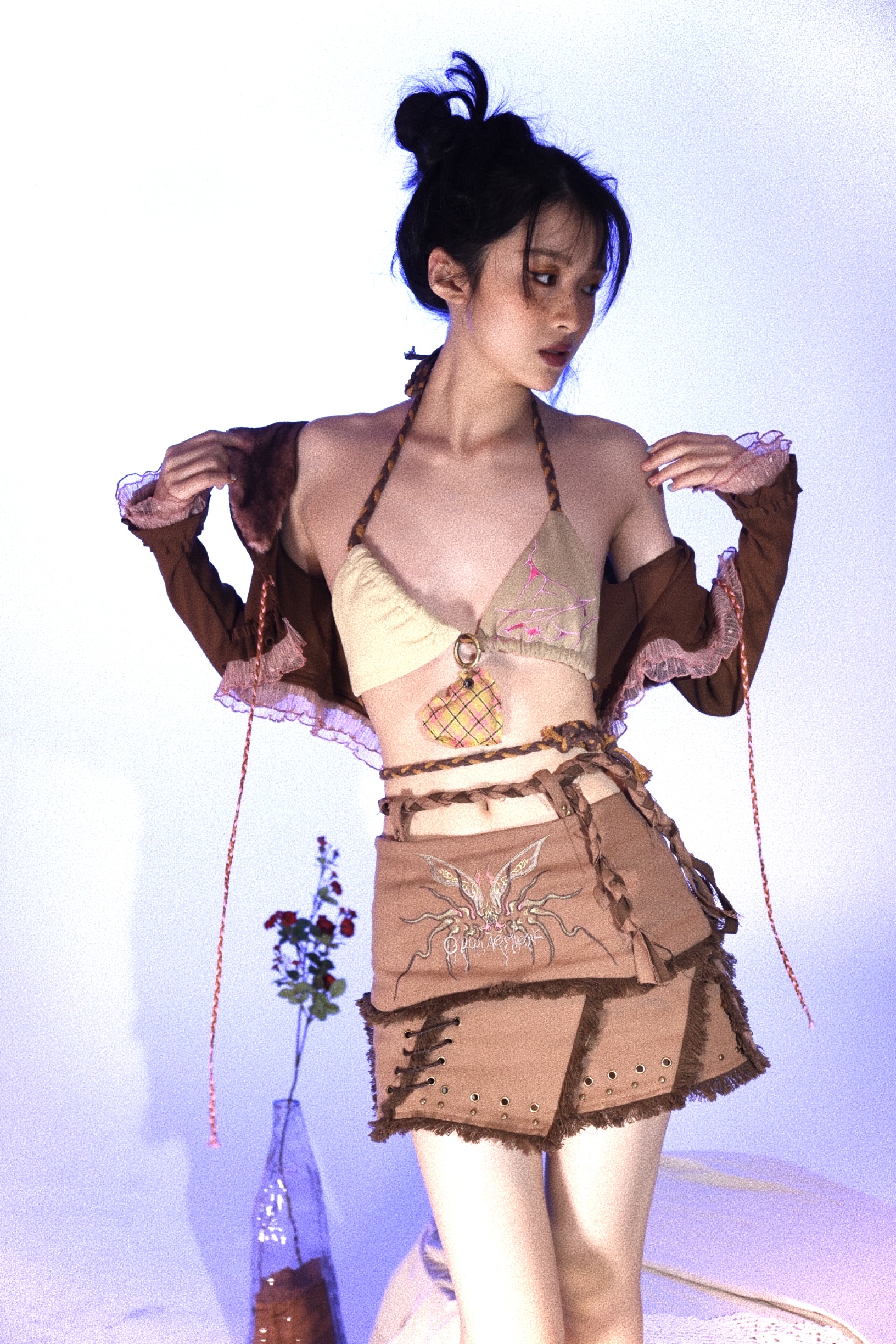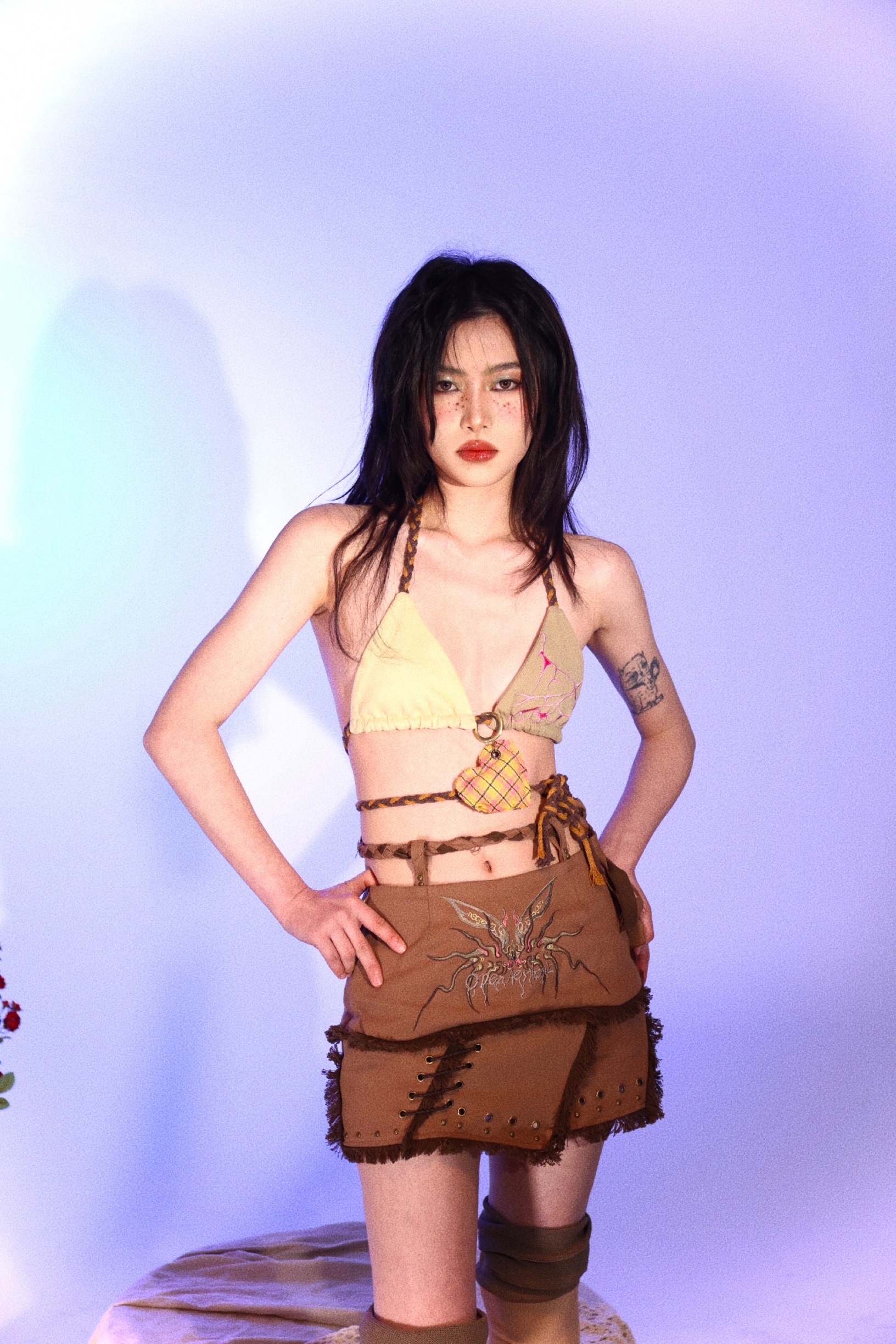 Embroidered Heart Lace-Up Bra Top – Spice Girl Mood