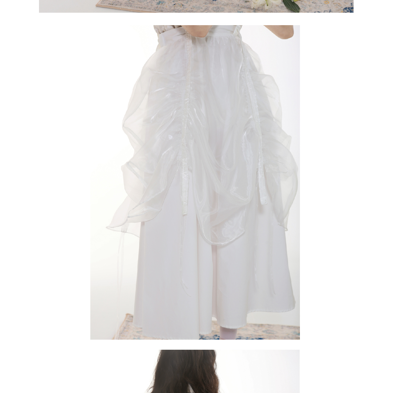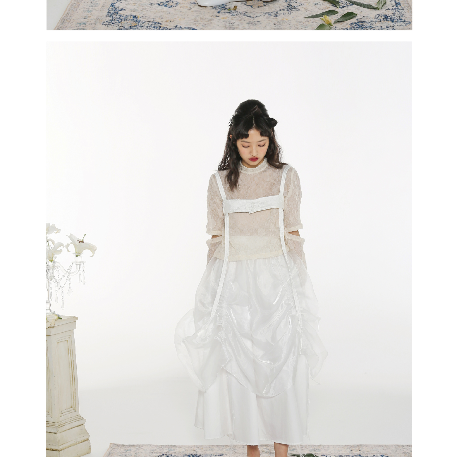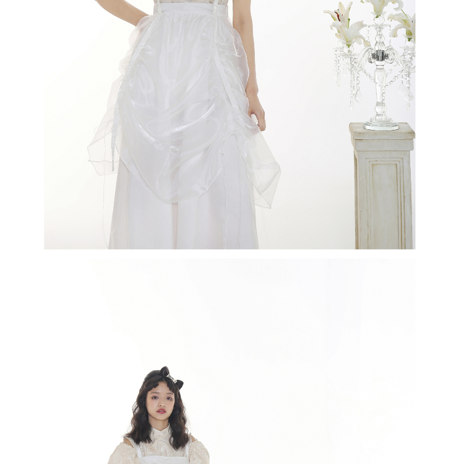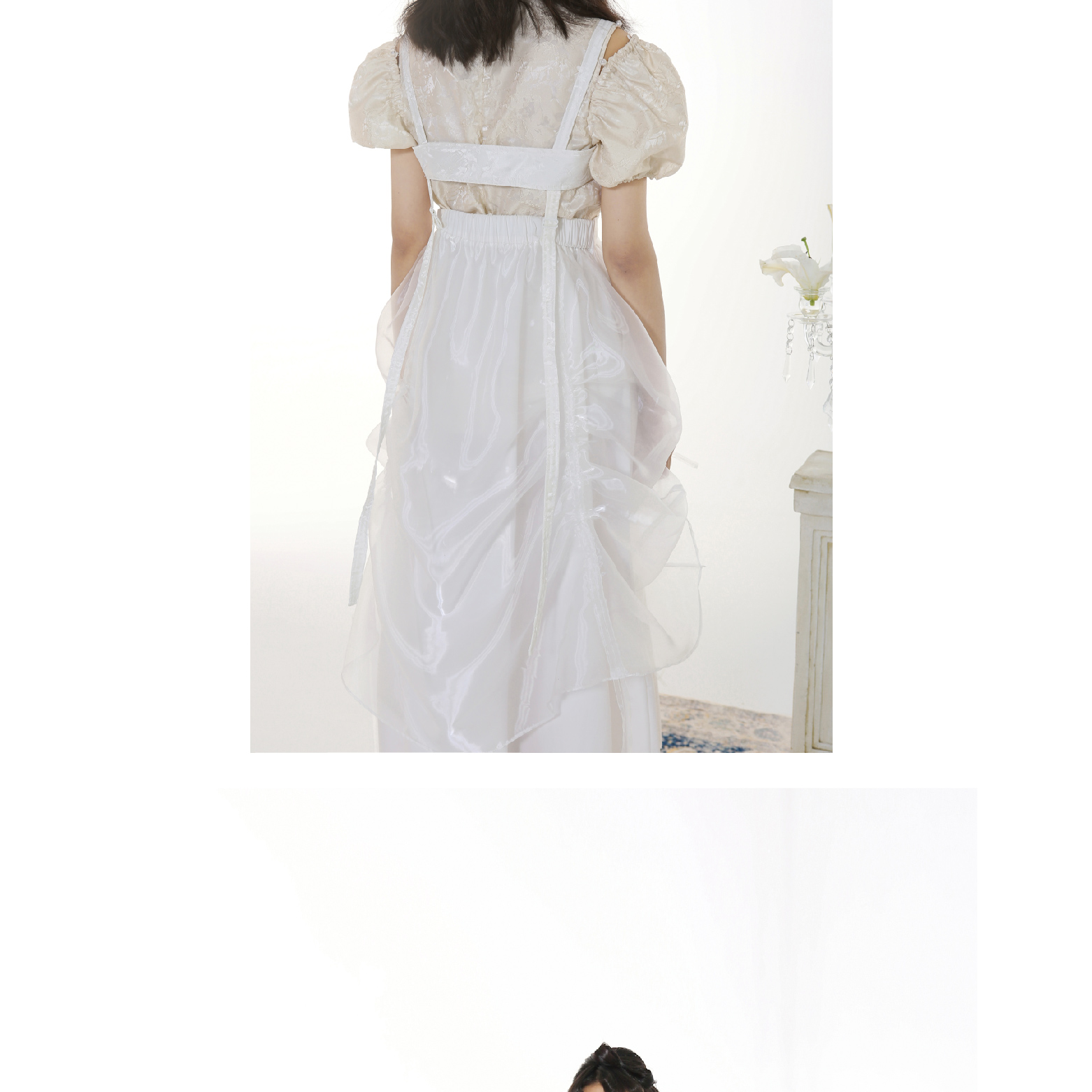 Handmade Button Back Strap Skirt Set Pleated Glass Yarn Dress