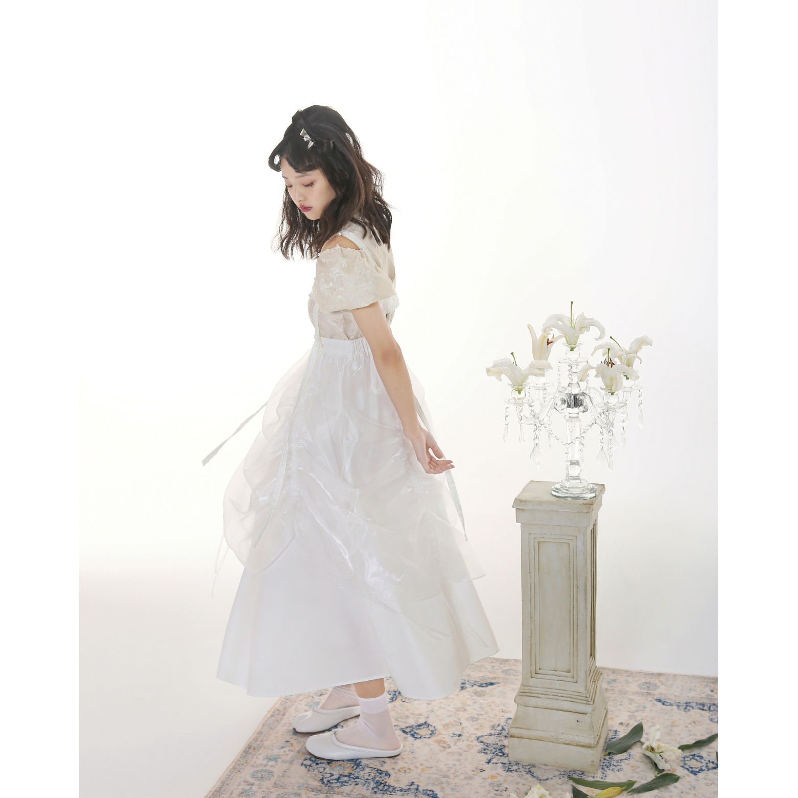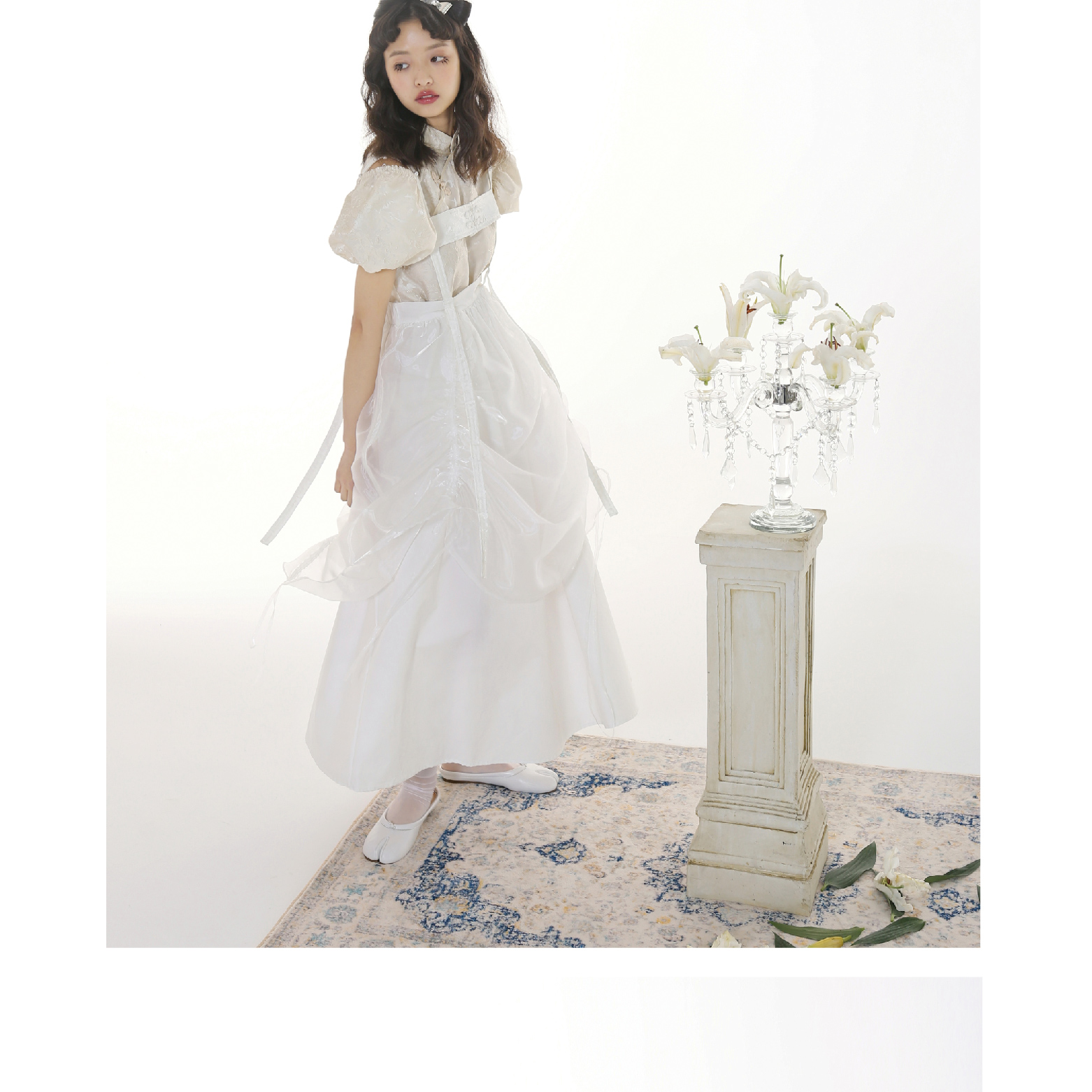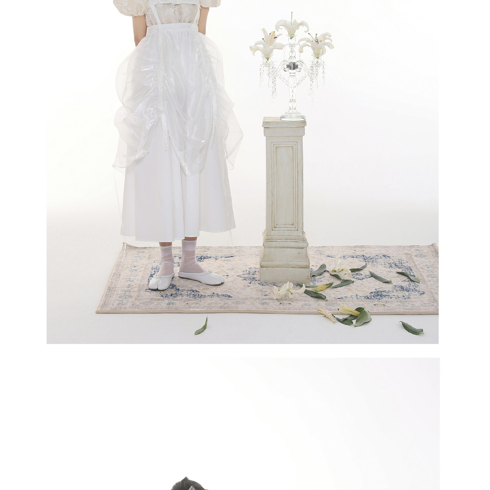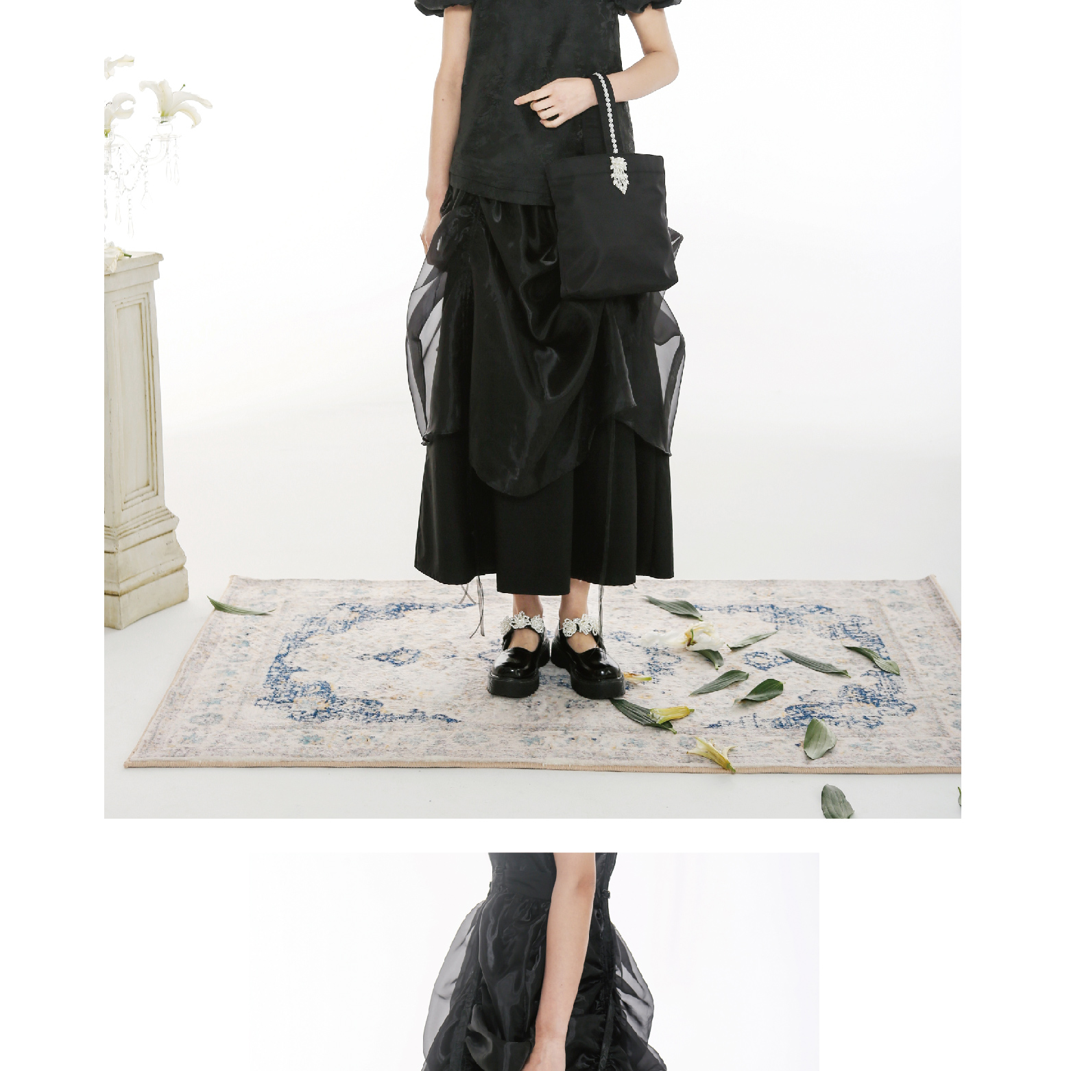 Handmade Button Back Strap Skirt Set Pleated Glass Yarn Dress