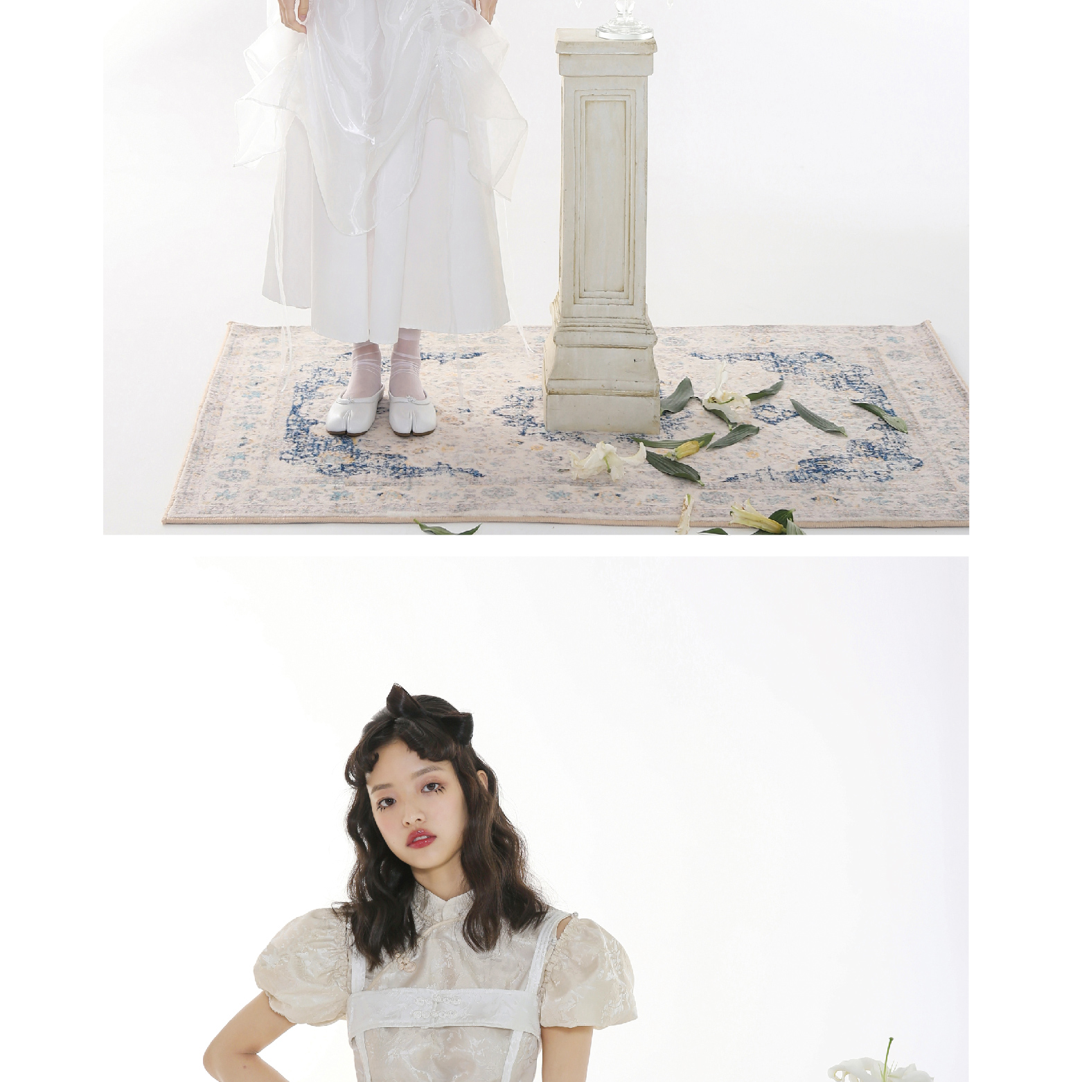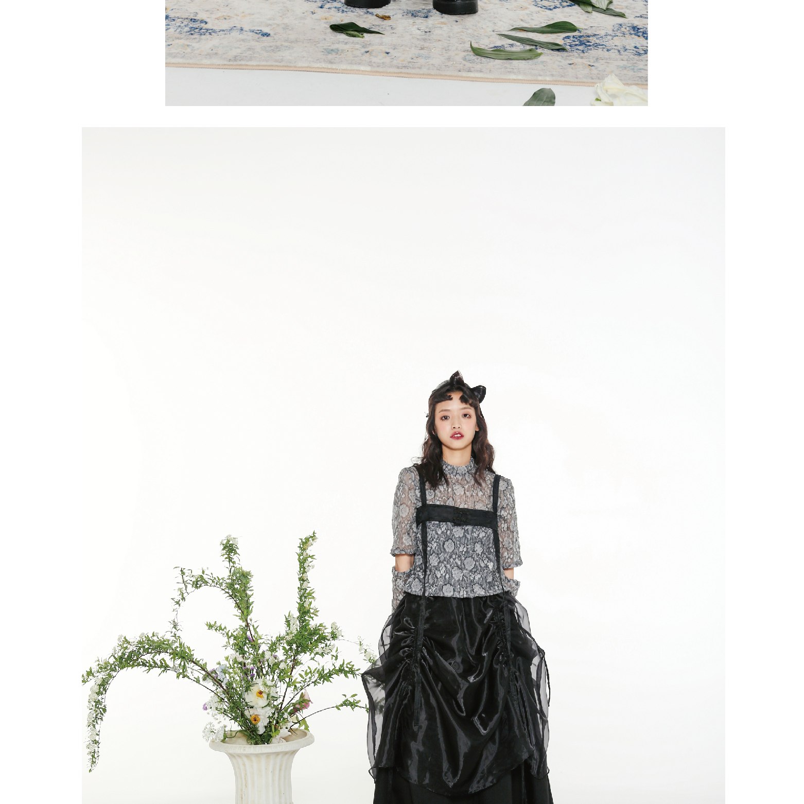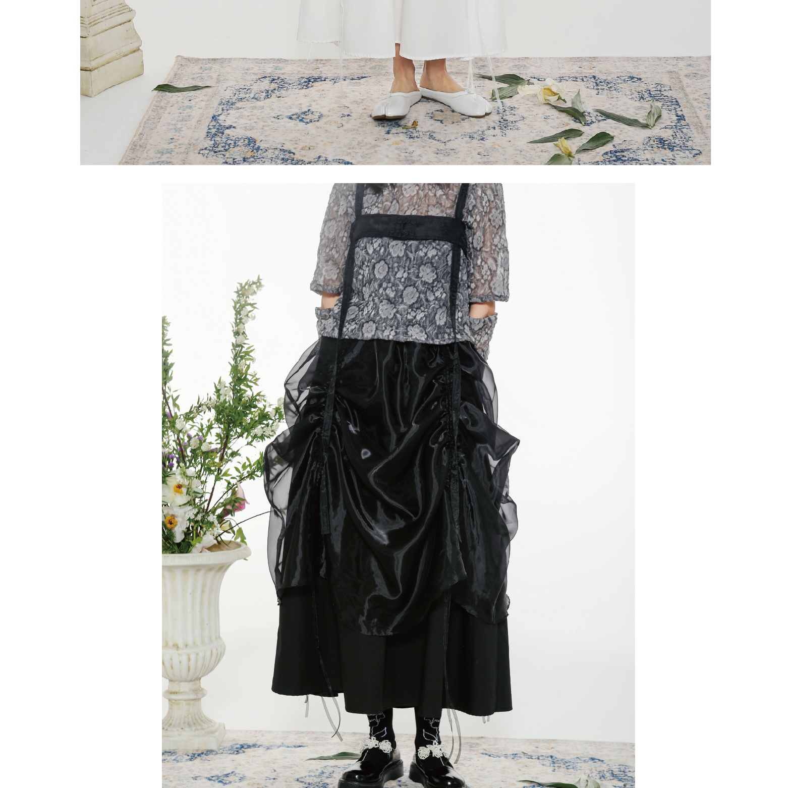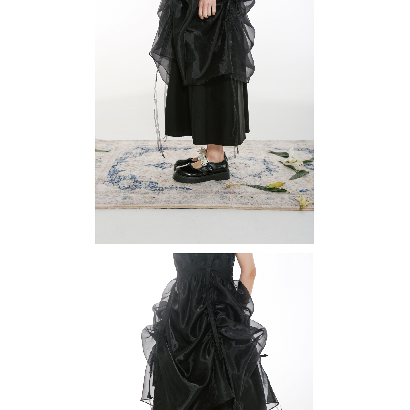 Handmade Button Back Strap Skirt Set Pleated Glass Yarn Dress