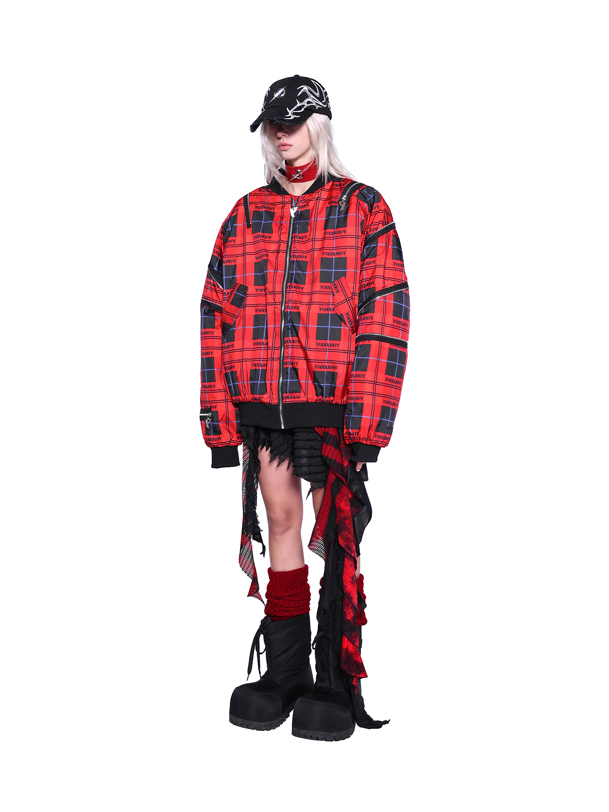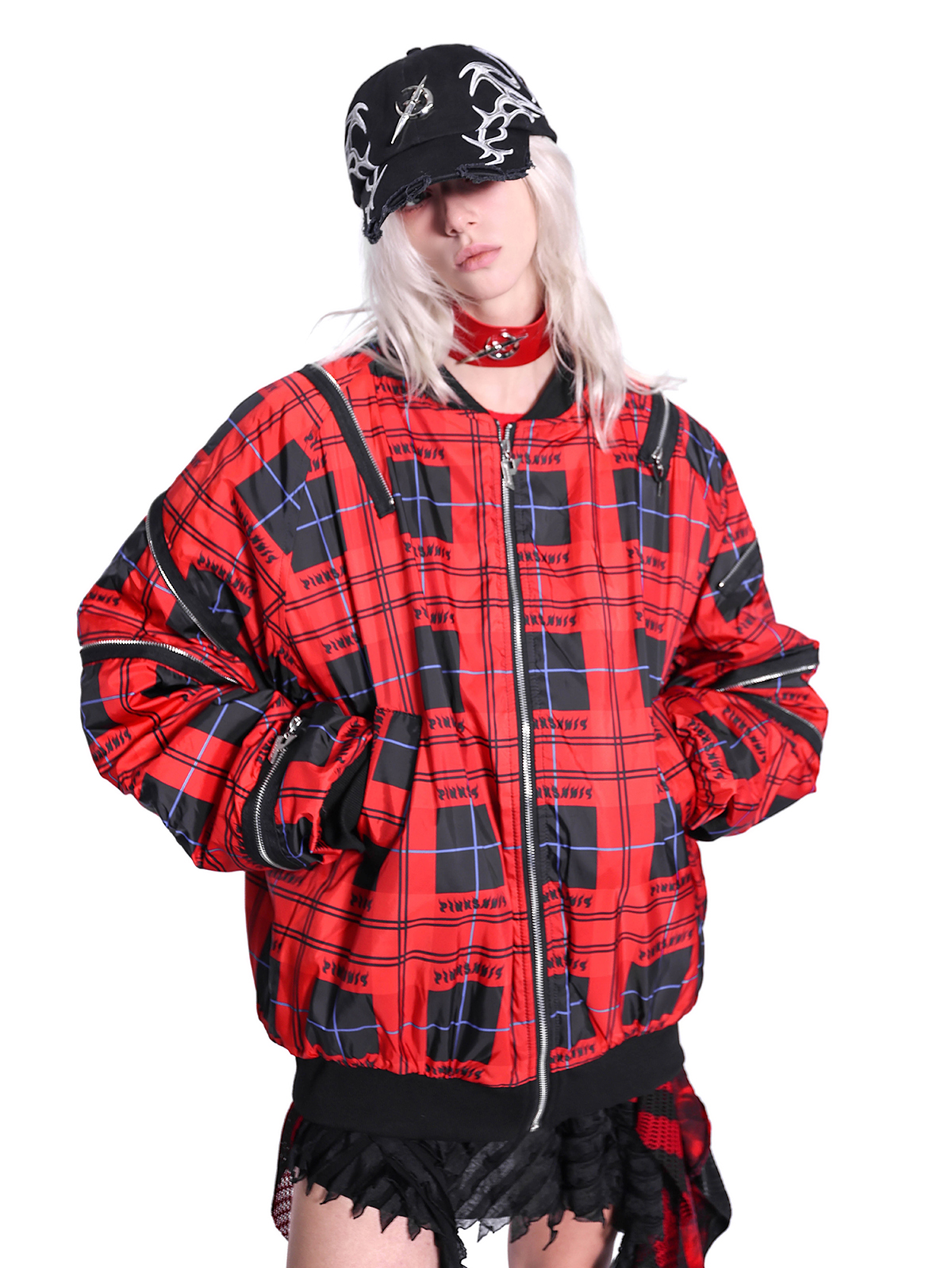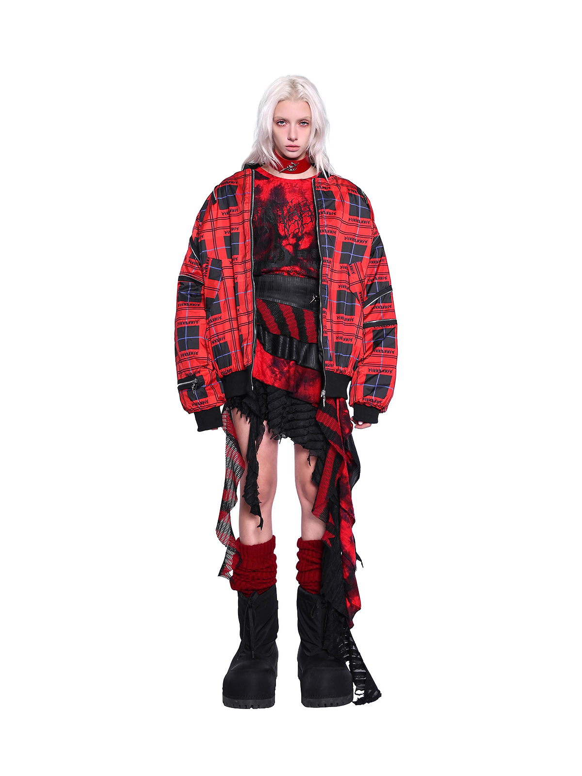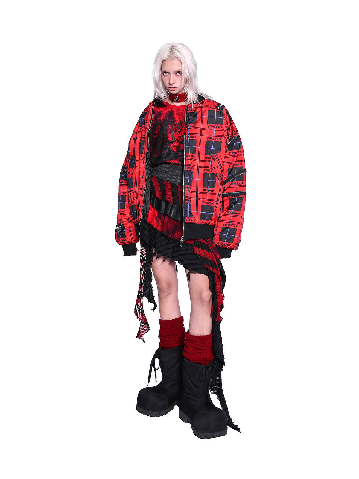 Flame Red Rock Punk Jacket – Genderless Guerra Chain Panel Y2K Aesthetic