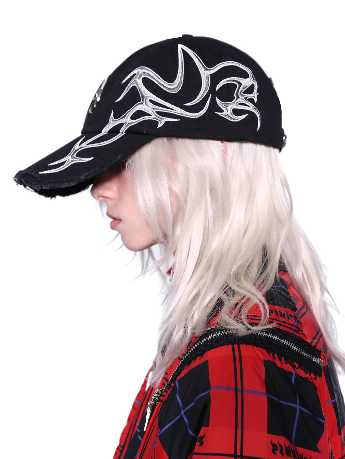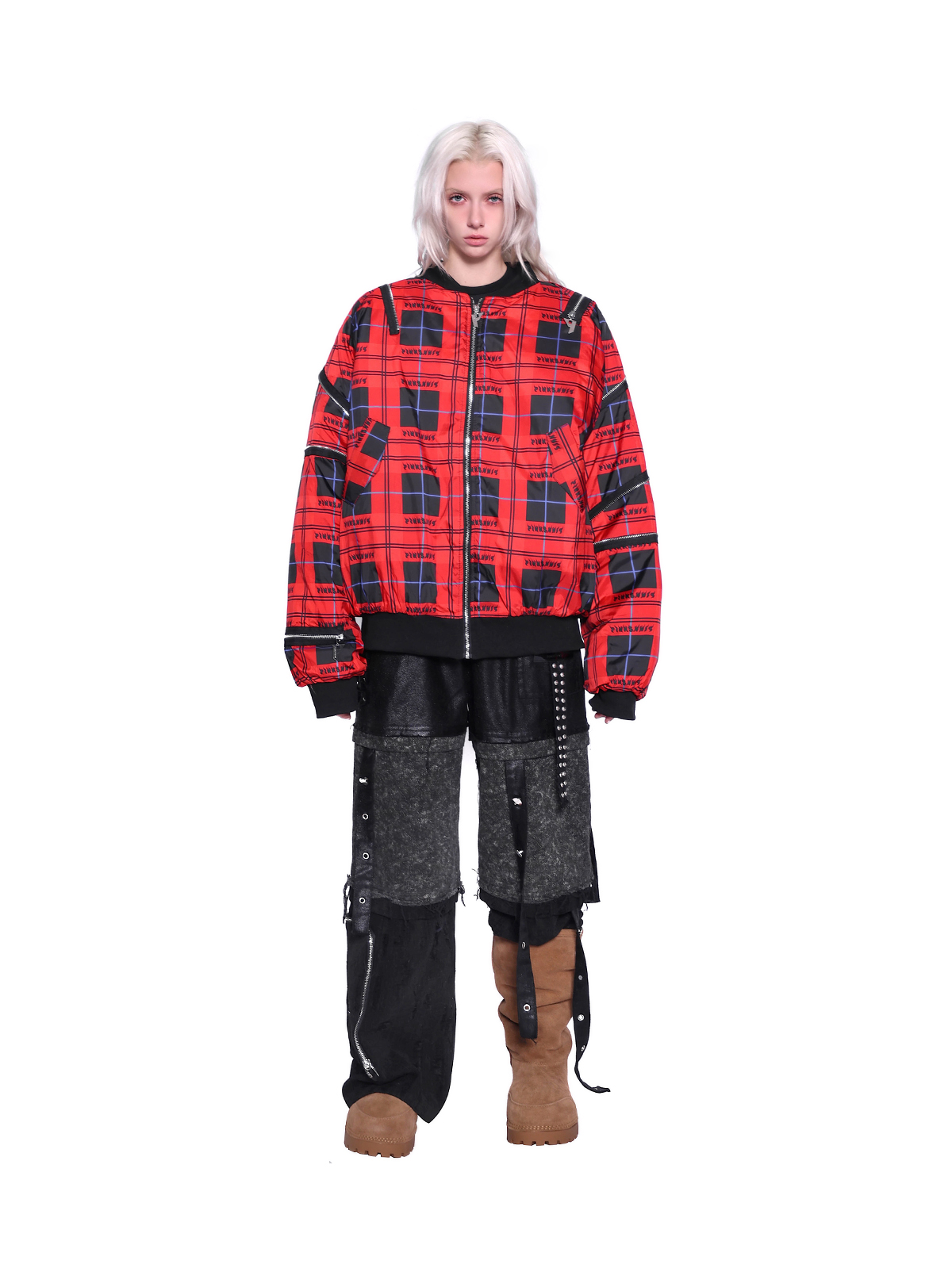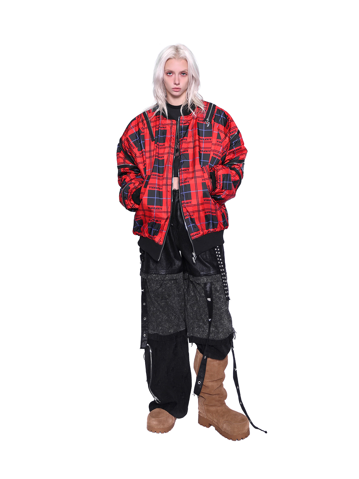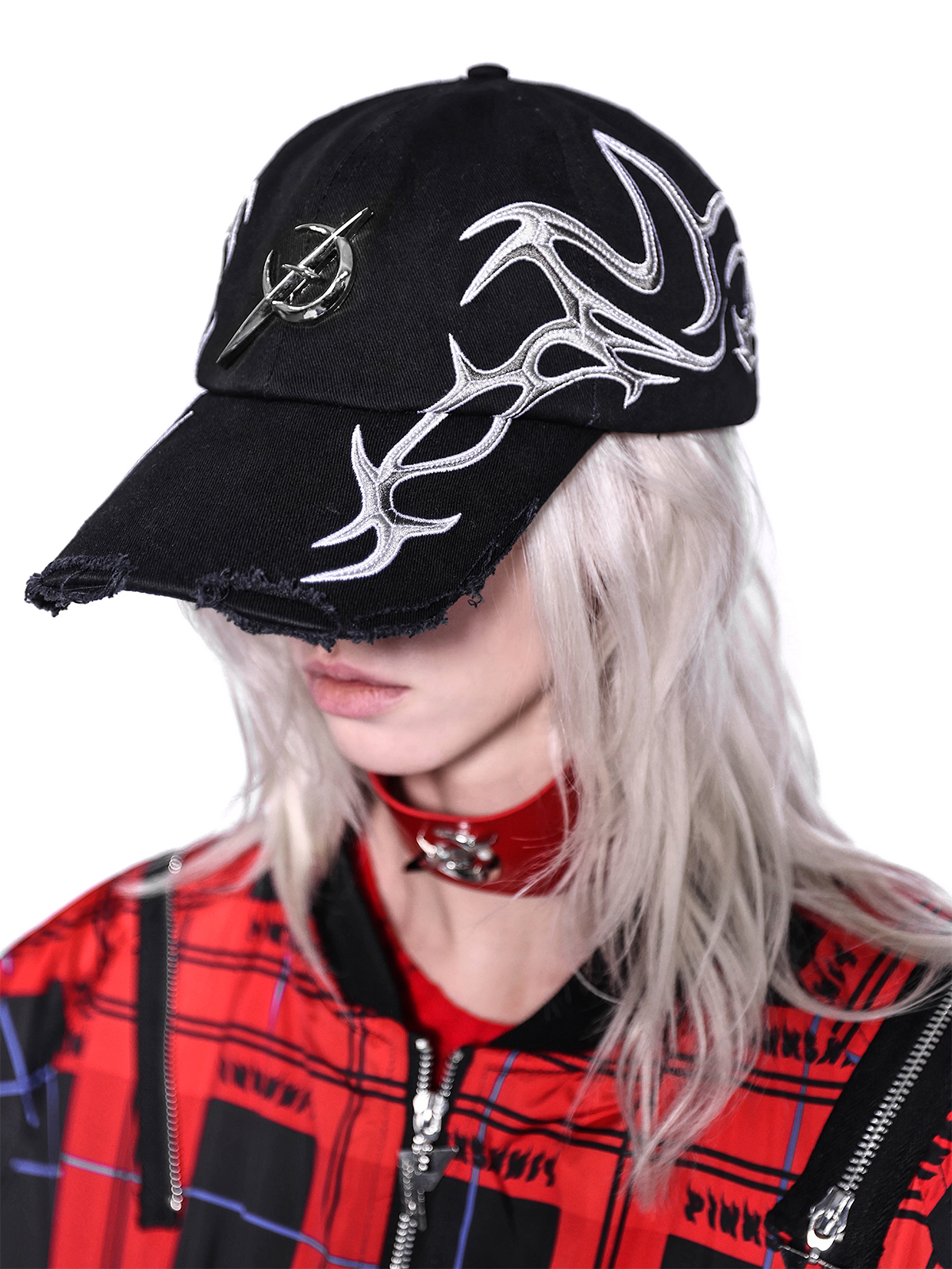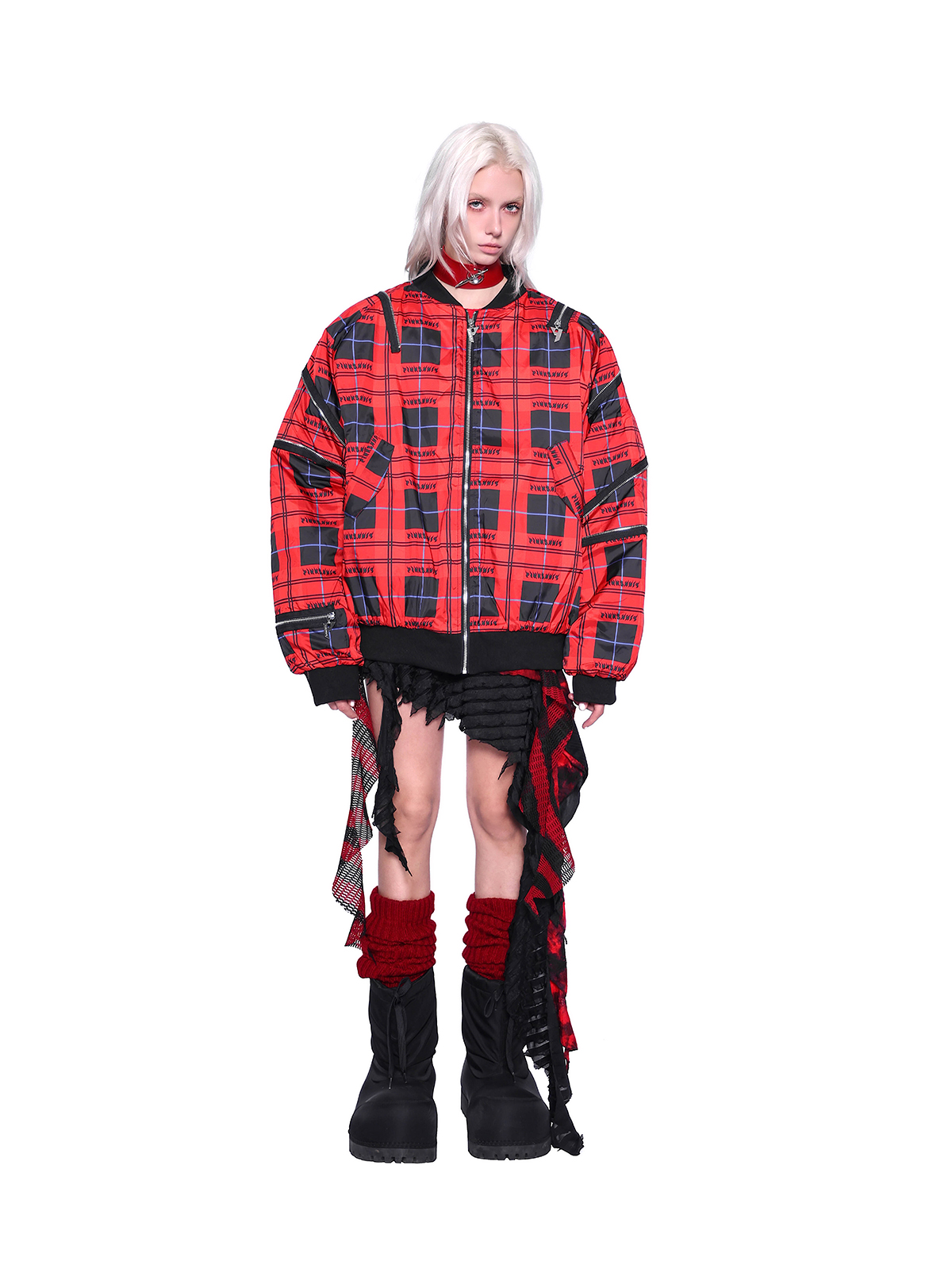 Flame Red Rock Punk Jacket – Genderless Guerra Chain Panel Y2K Aesthetic