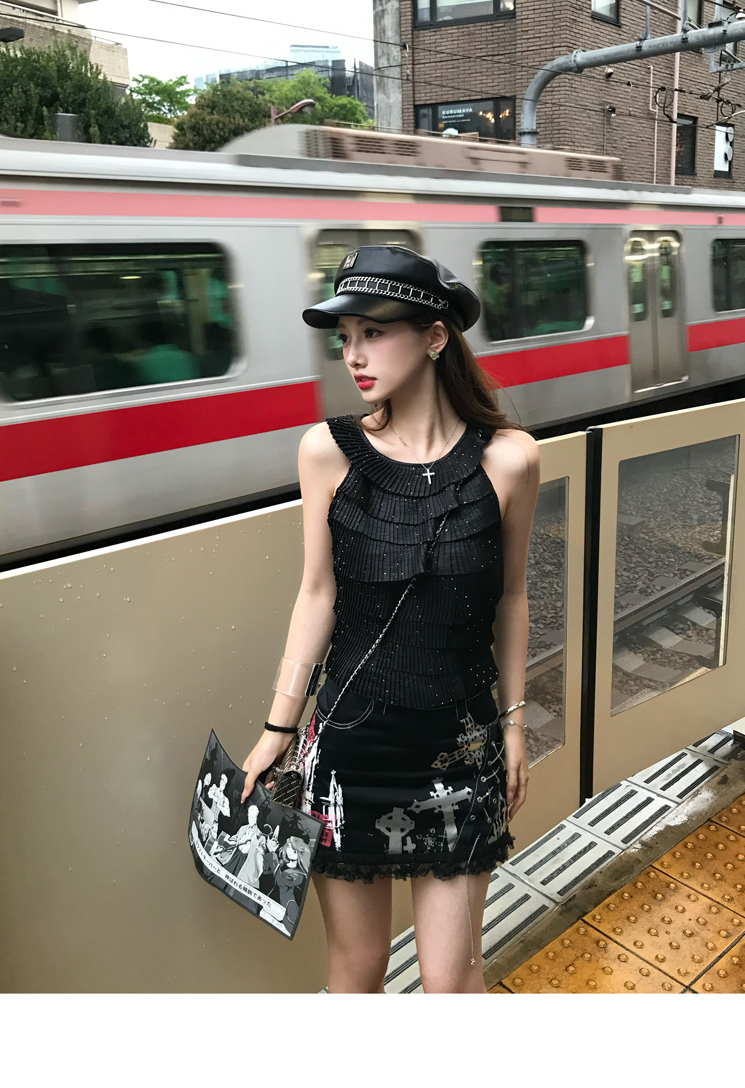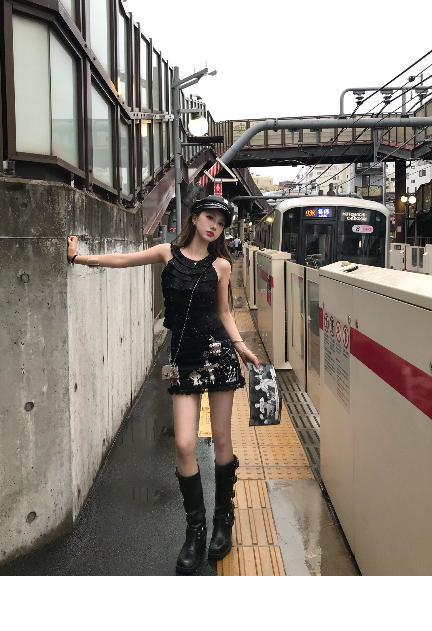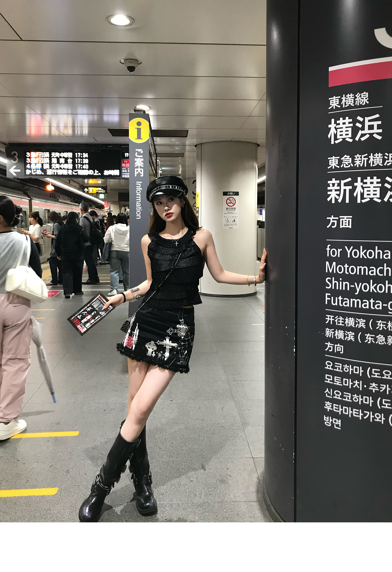 [Osaki Nana] Heavy Industry Black A-Line Skirt - Niche Summer Edition
