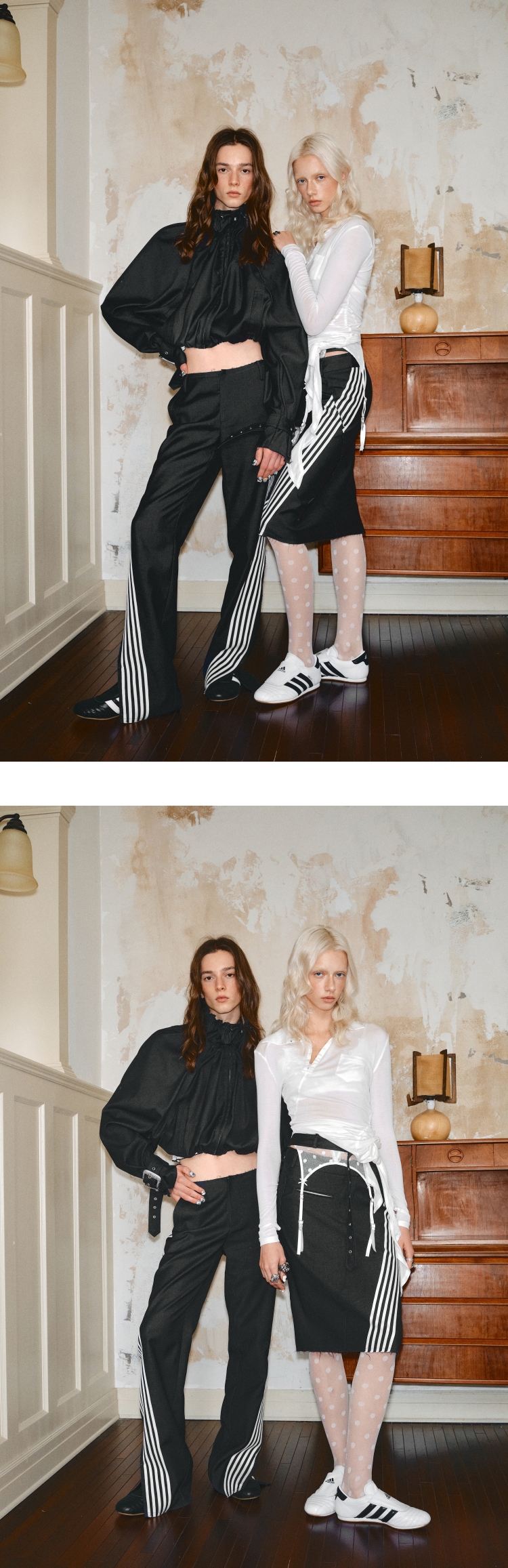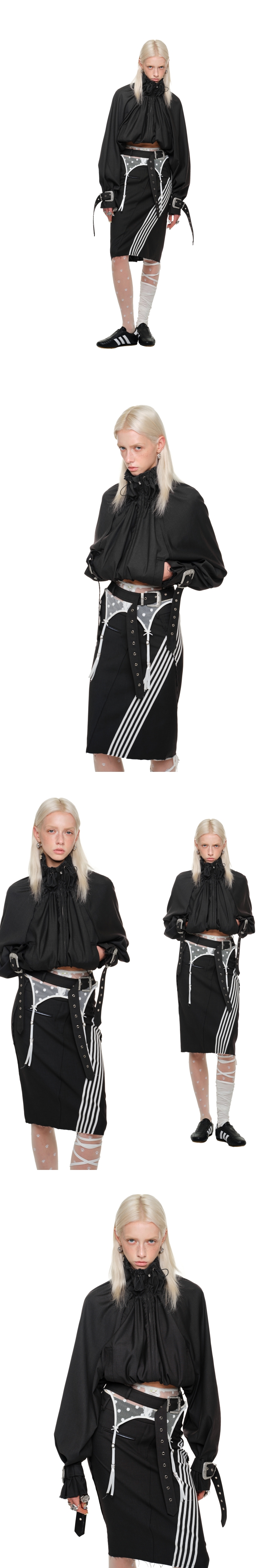 Deconstructed Midi Suit Skirt – Double Waist Patchwork Look