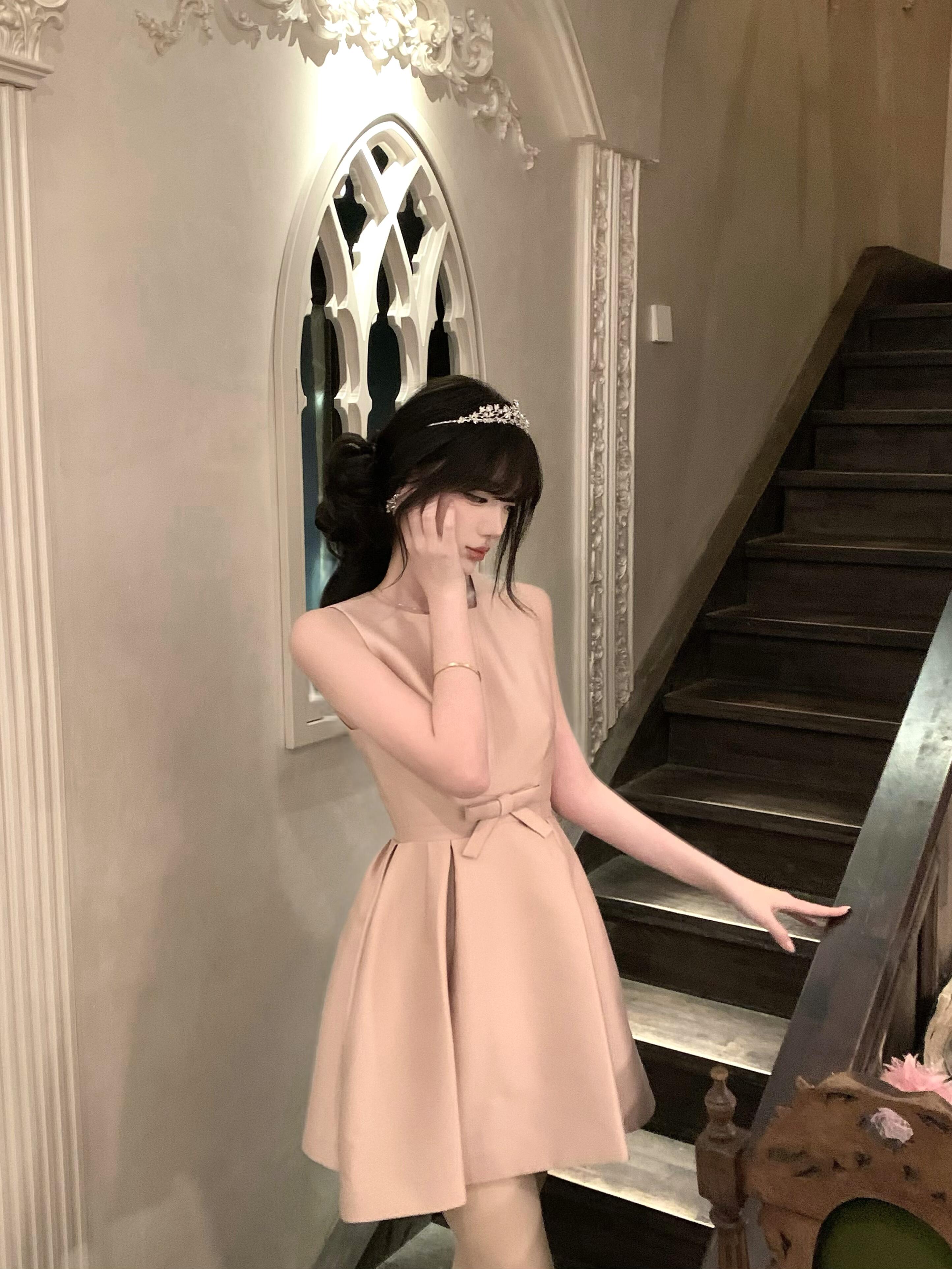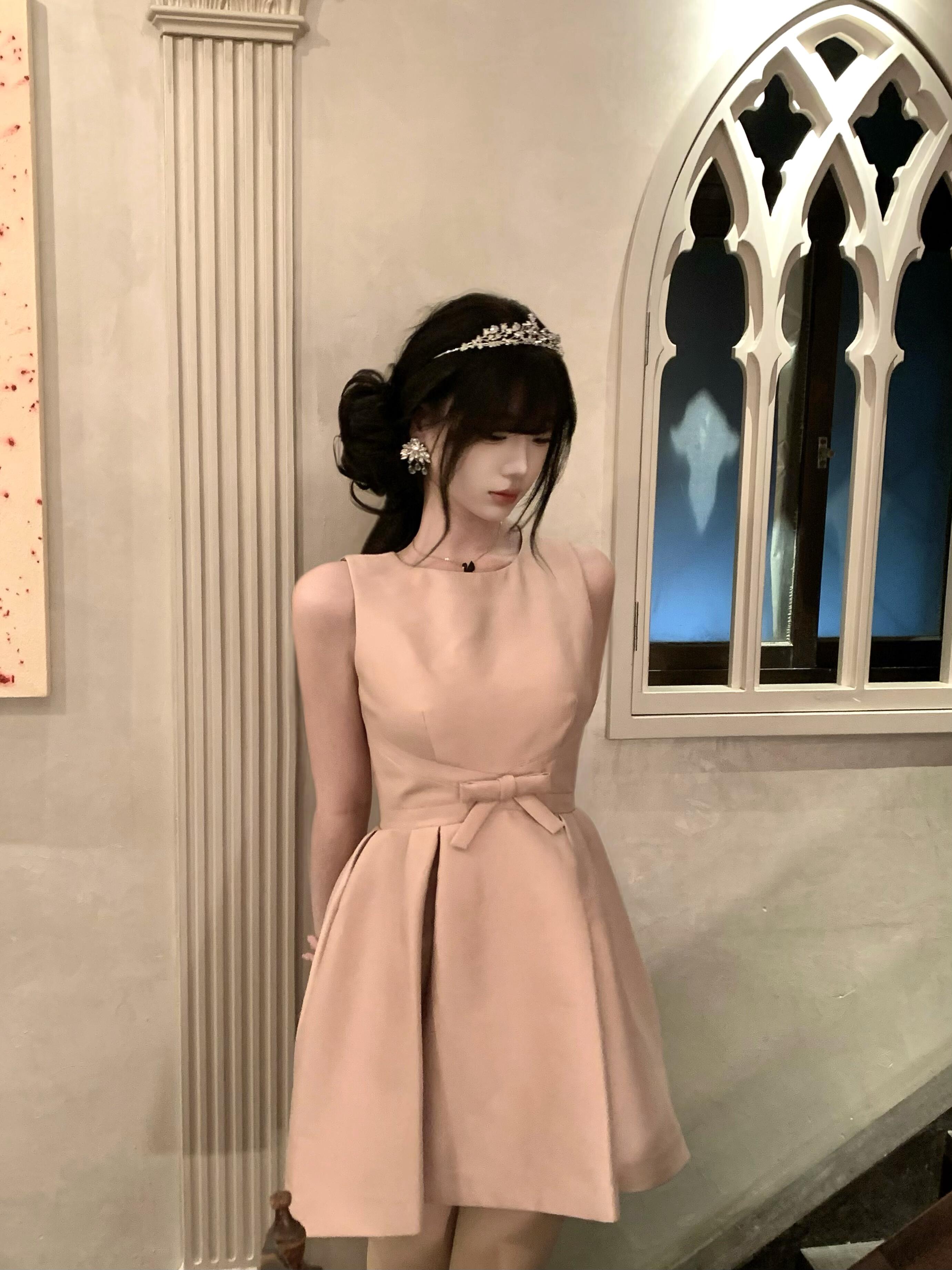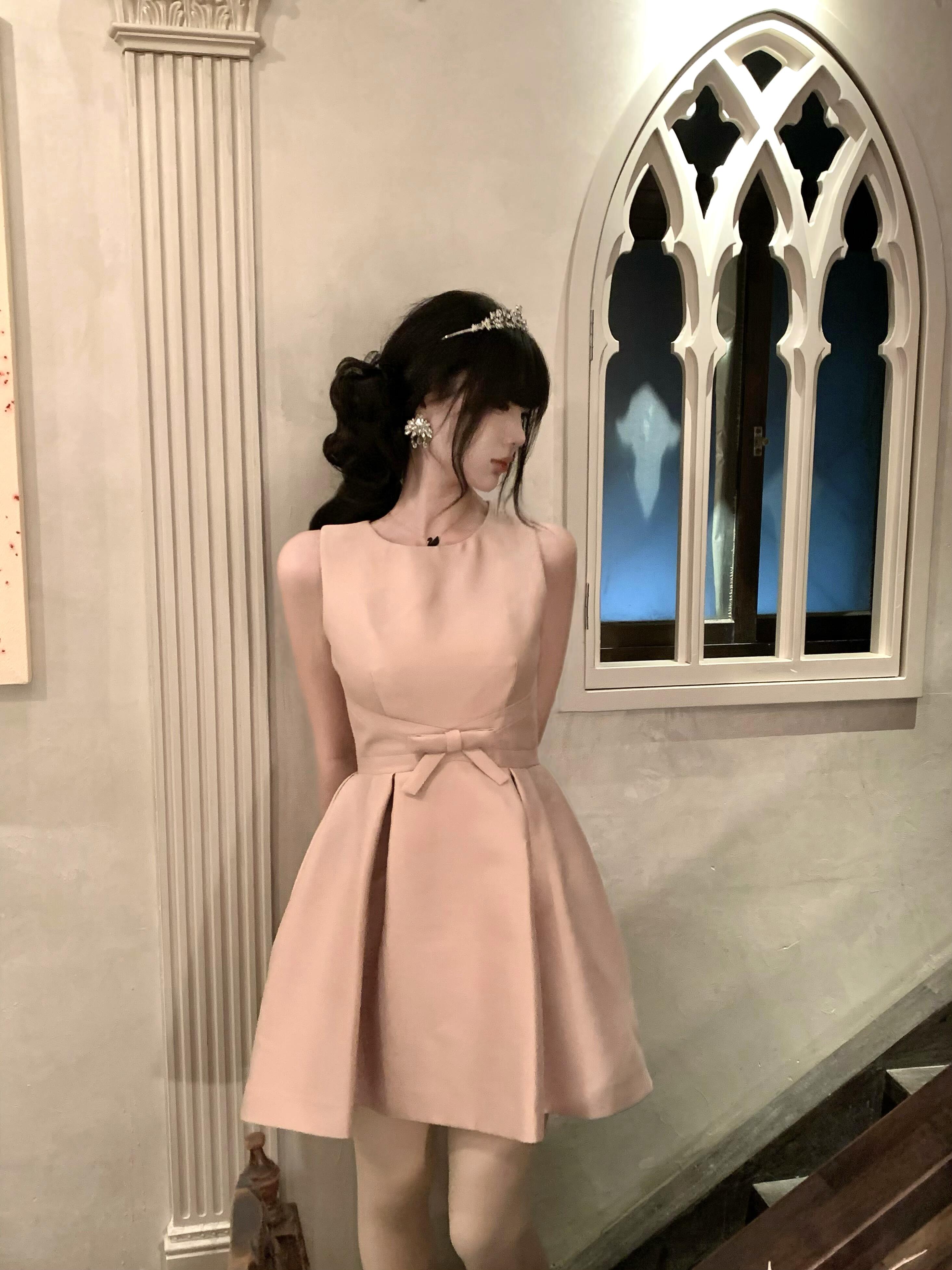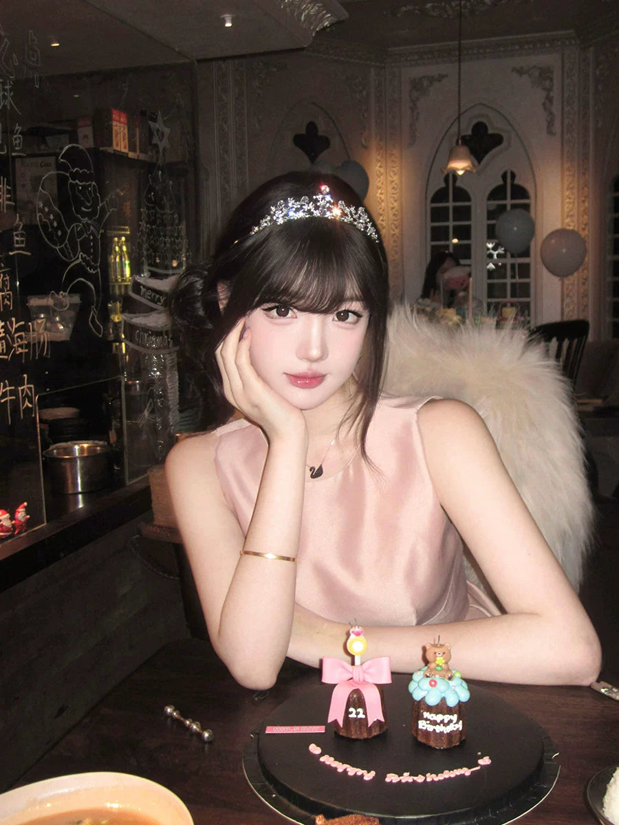 Pink Satin Birthday Dress – Elegant Cinched-Waist Coming-of-Age Gown