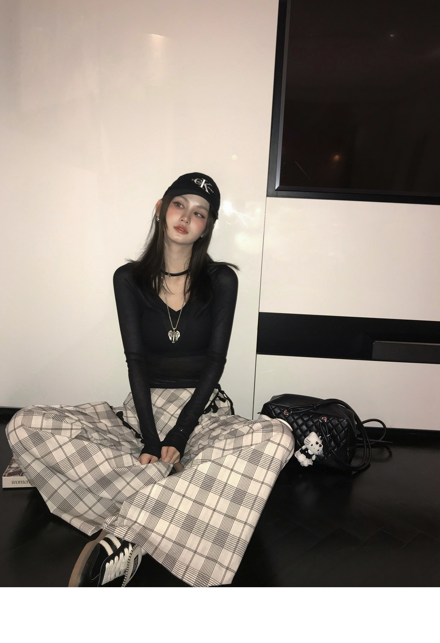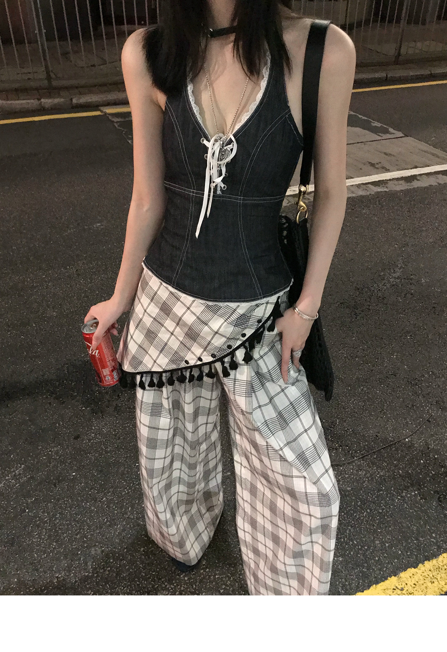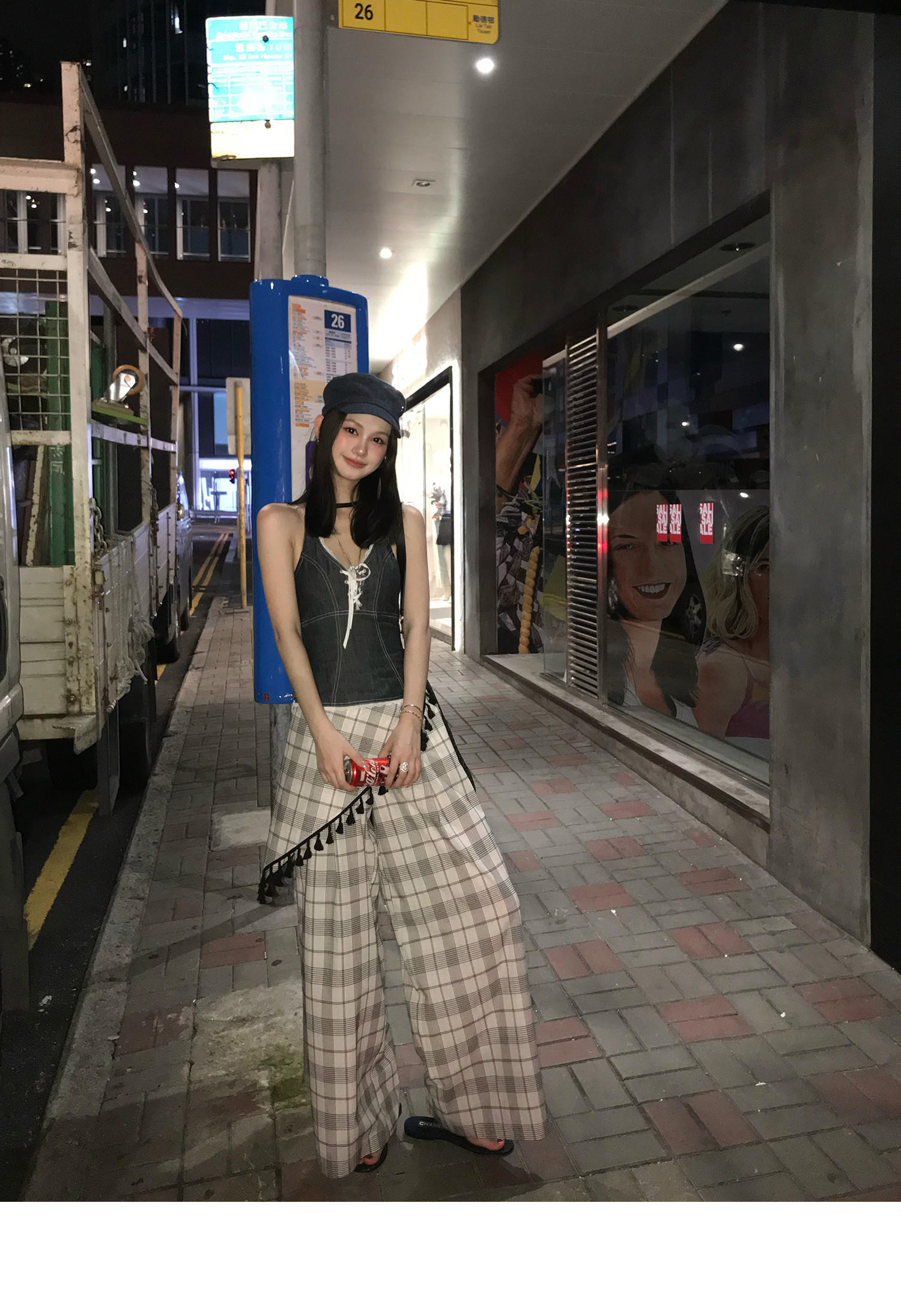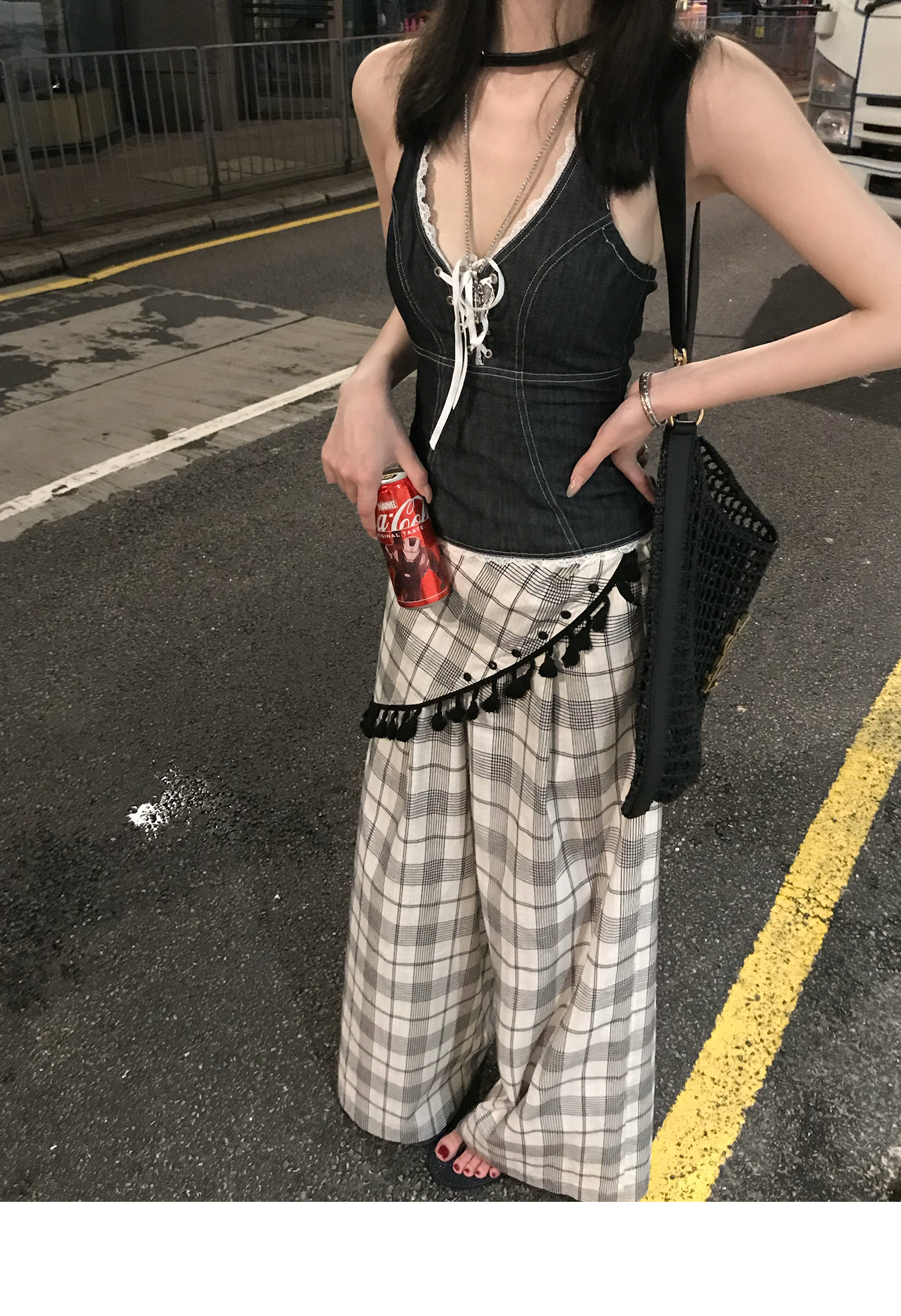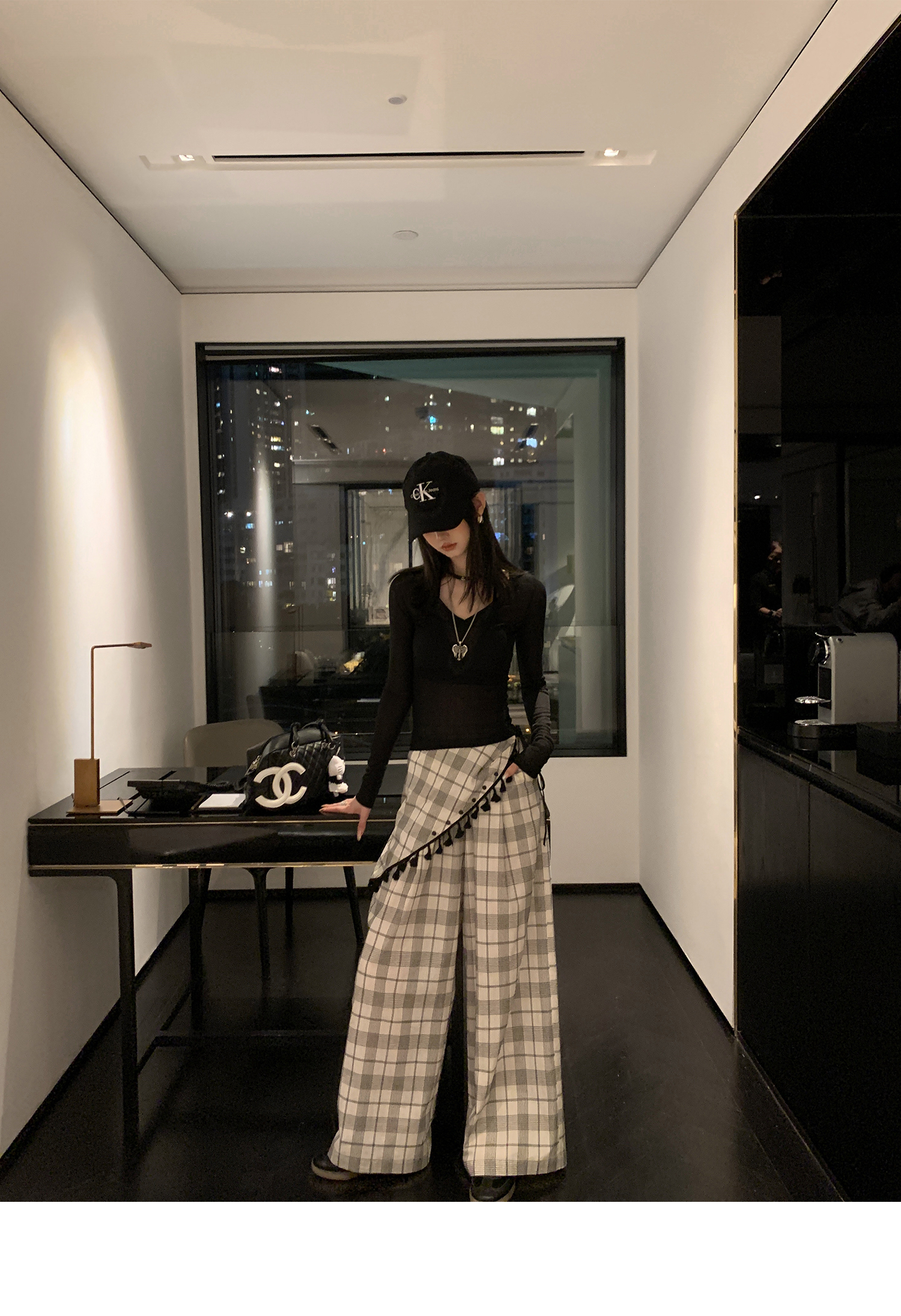 Plaid Slim Fit Wide-Leg Pants - Women's Summer Casual Style