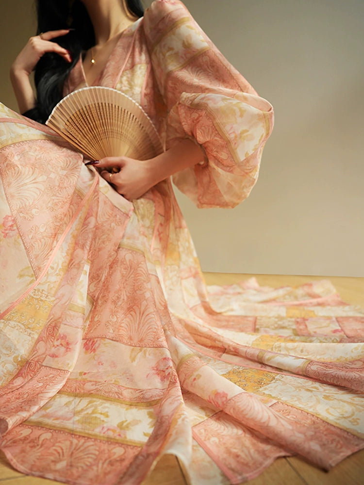 Porcelain Blossom Slim Tea Dress – Romantic French Style