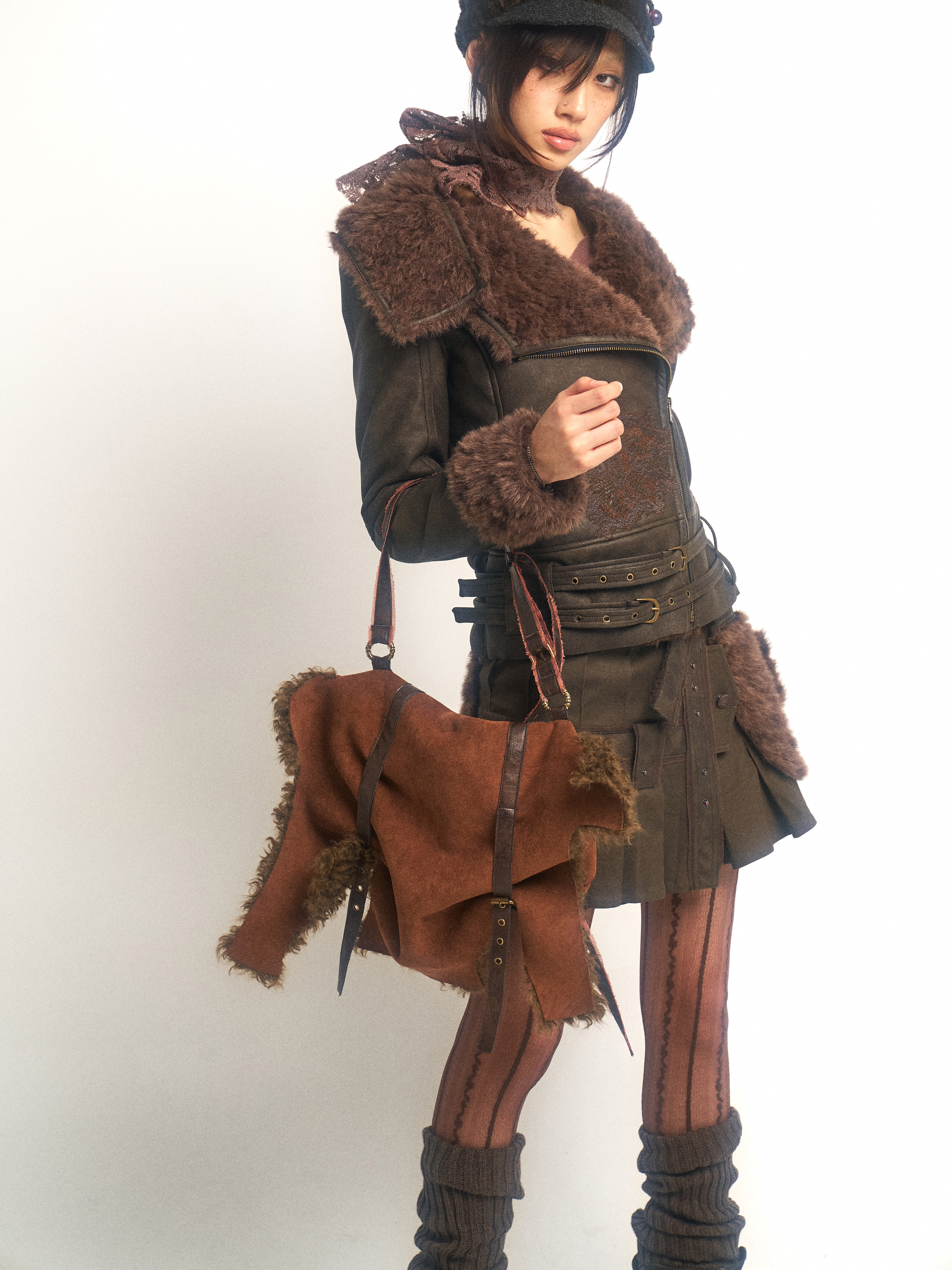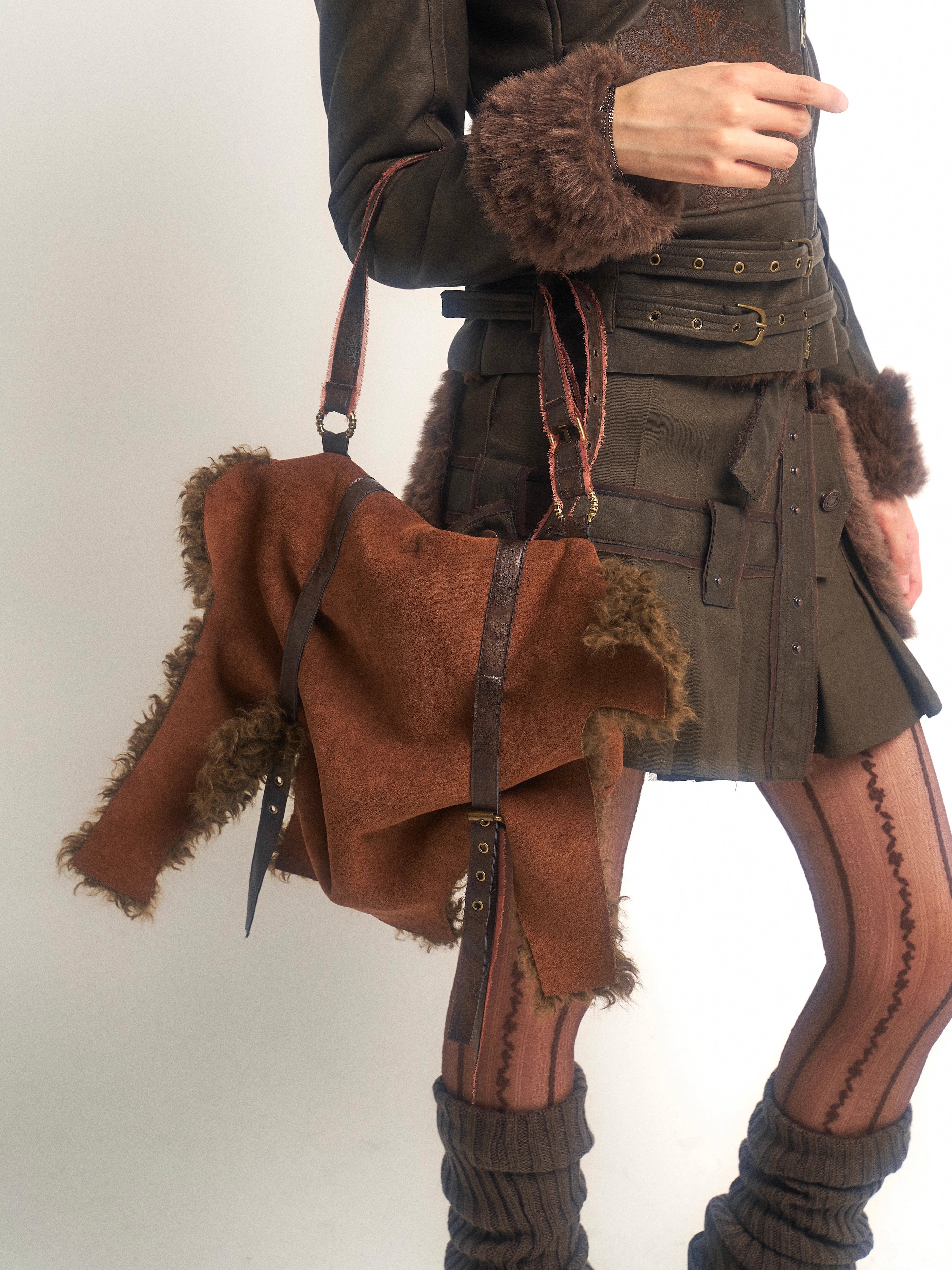 Vintage Suede Fur Crossbody Bag – Chic Pre-Loved Piece