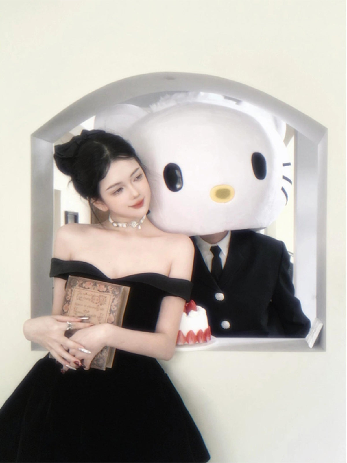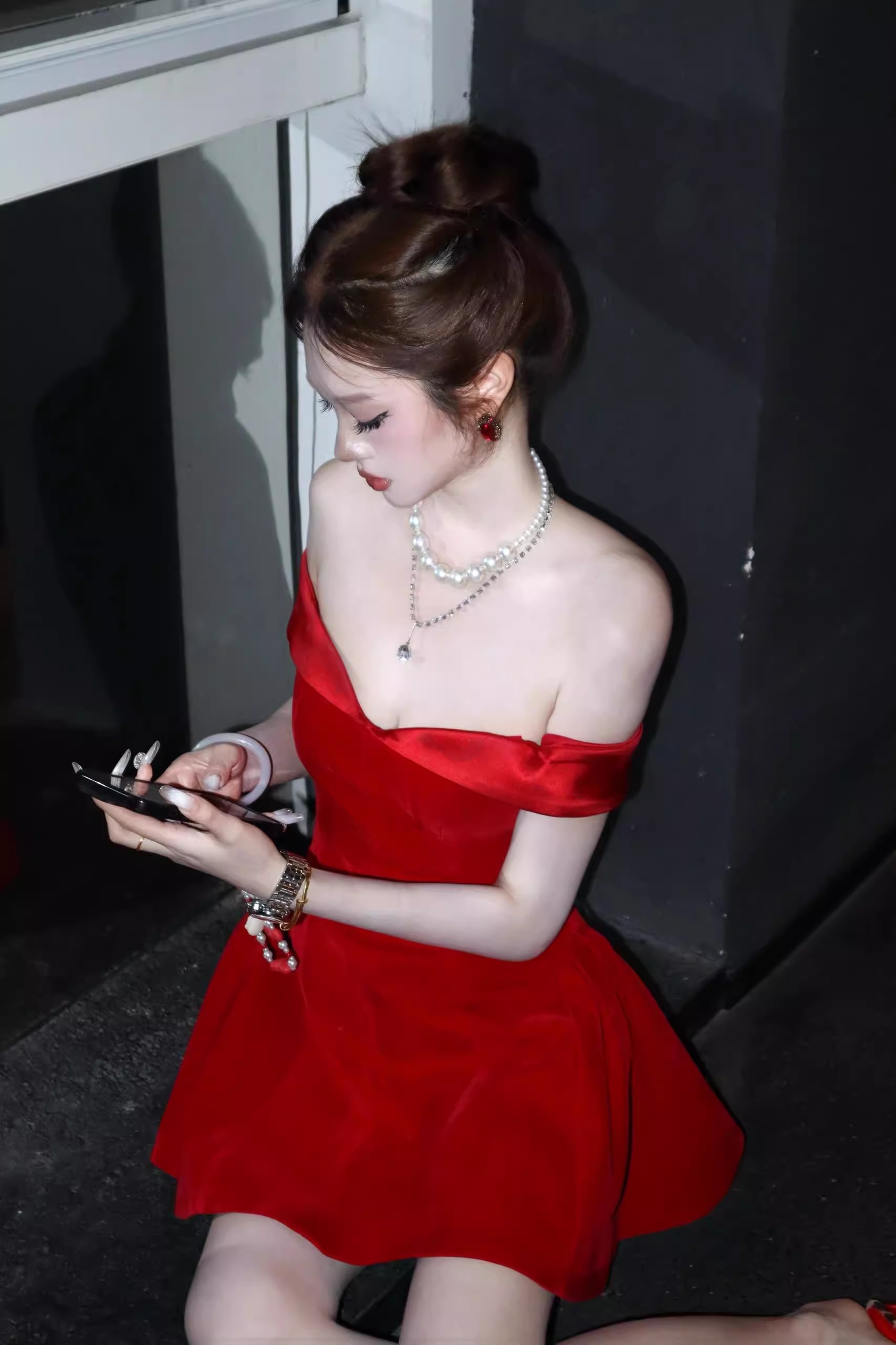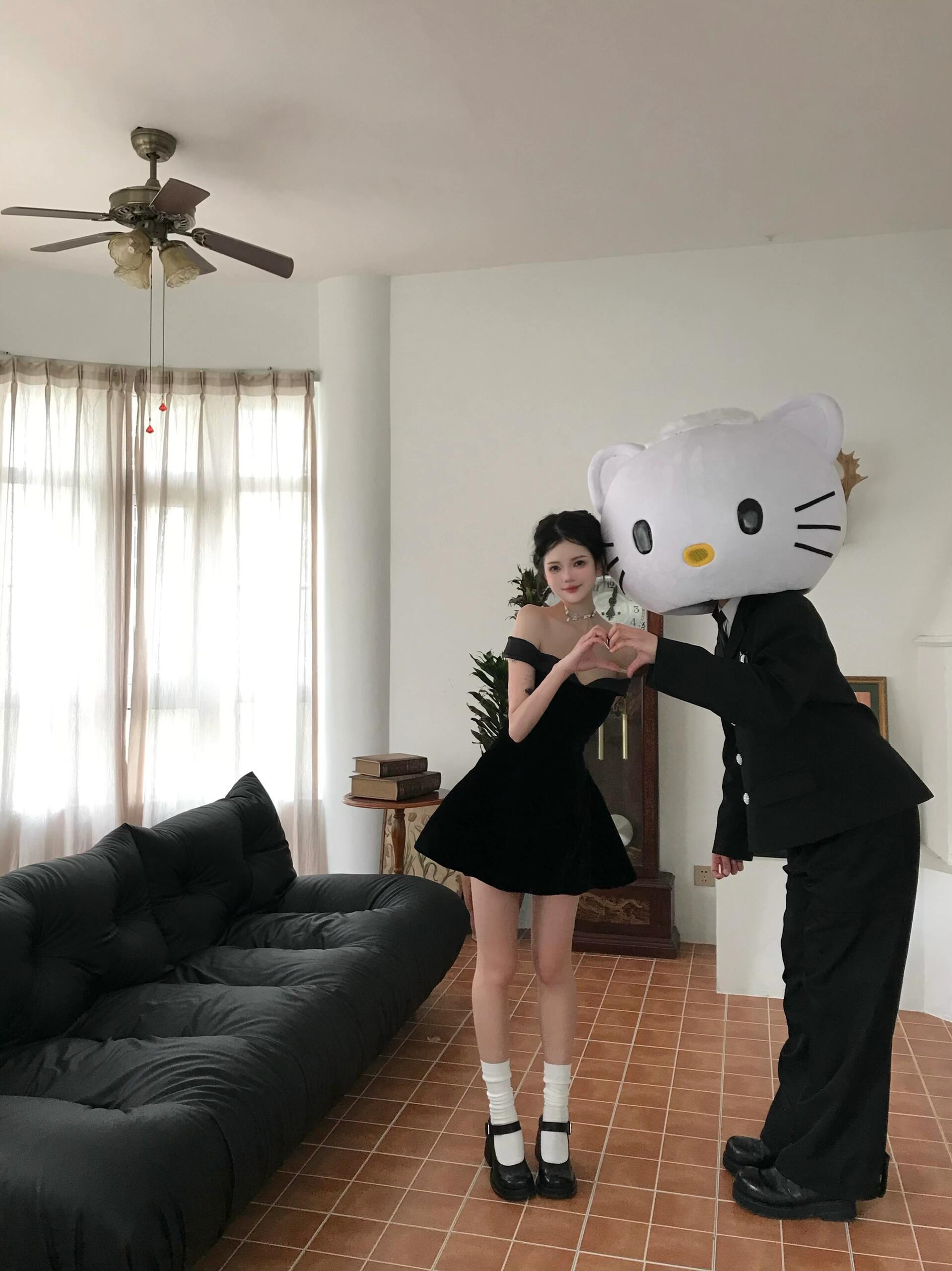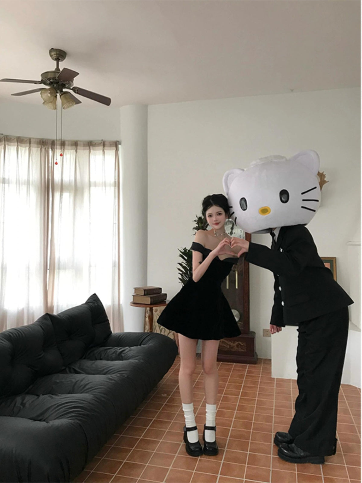 Princess Tuft Dress – High-End Black Satin Bandeau Birthday Gown
